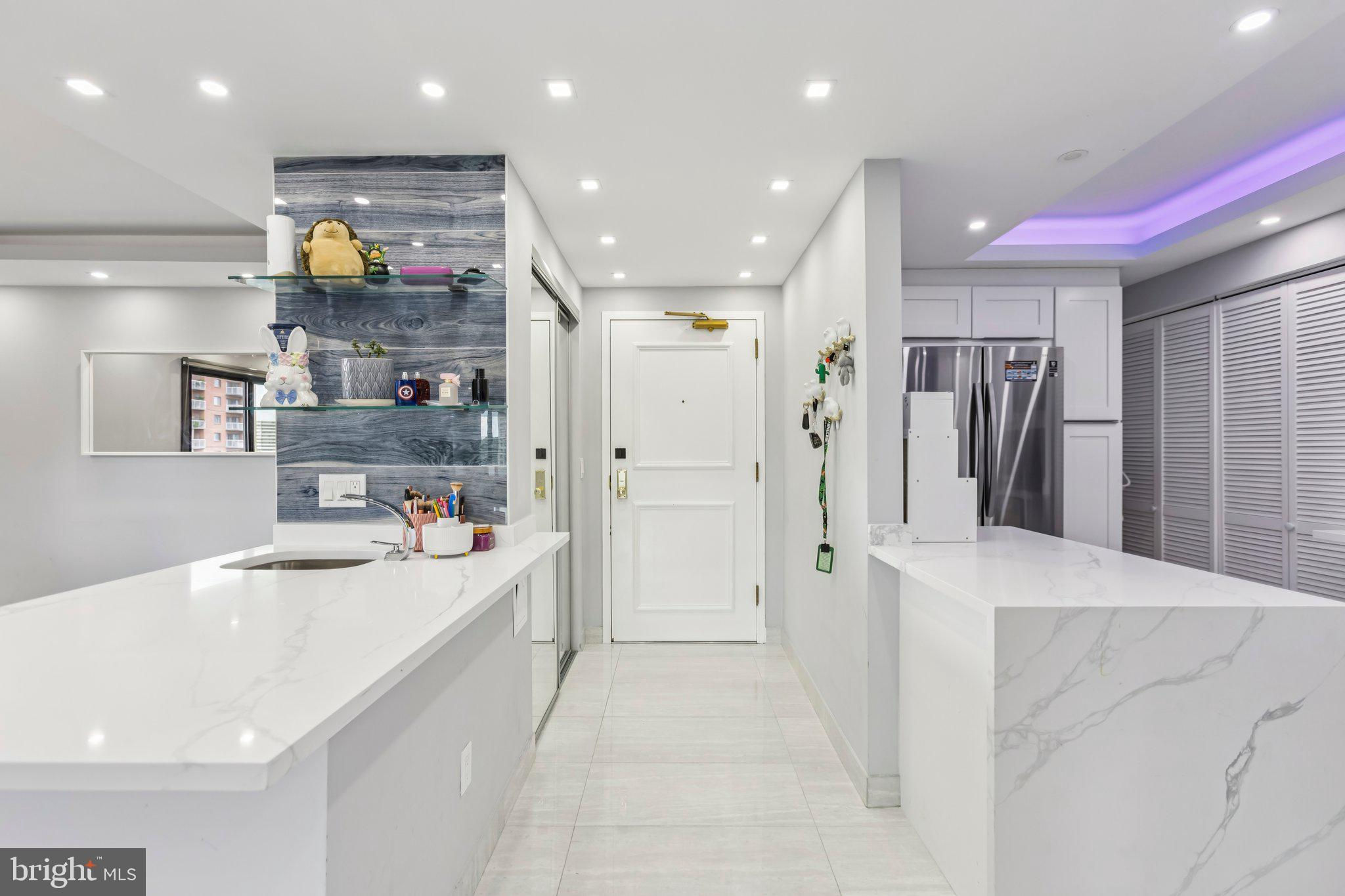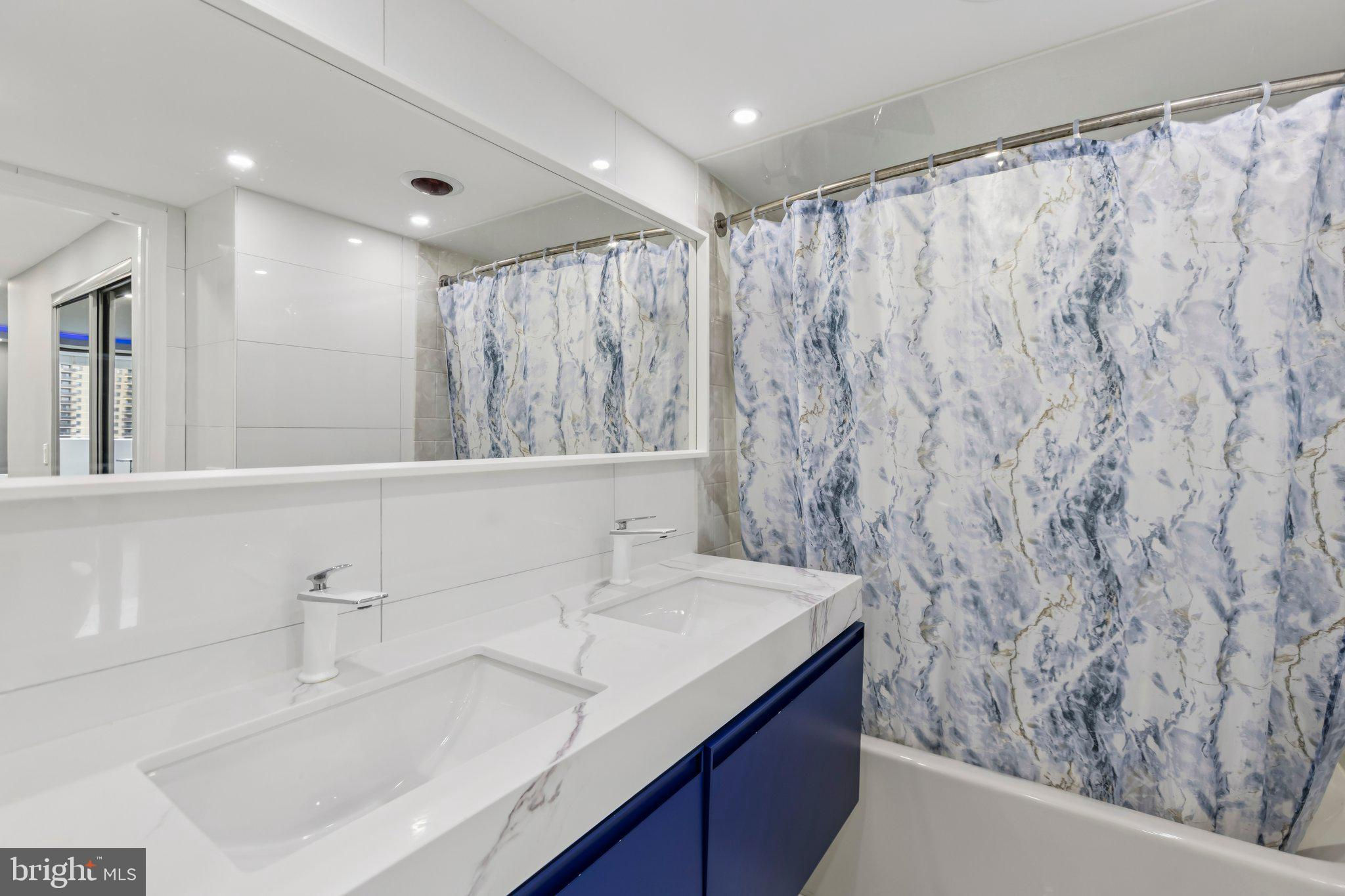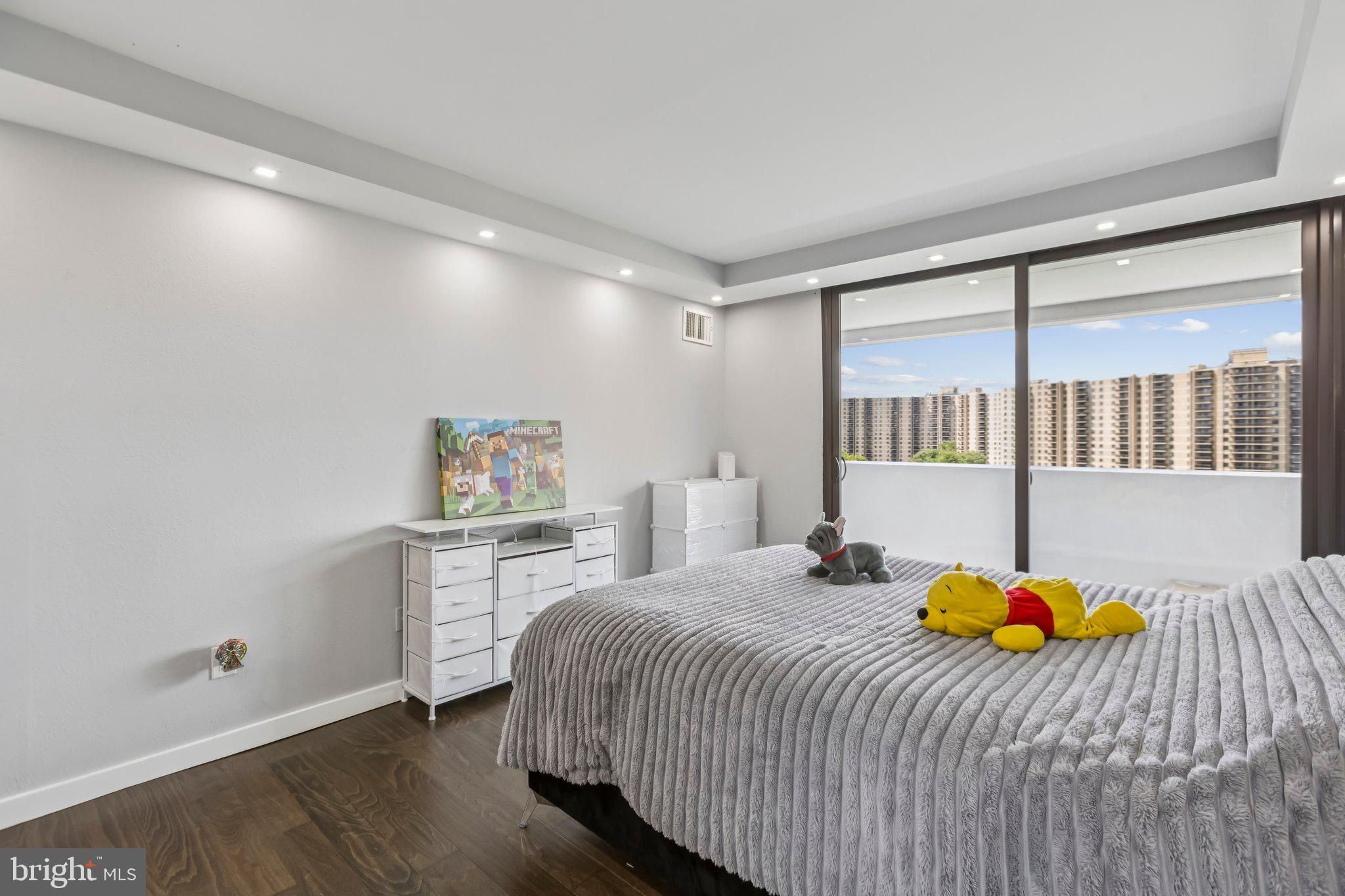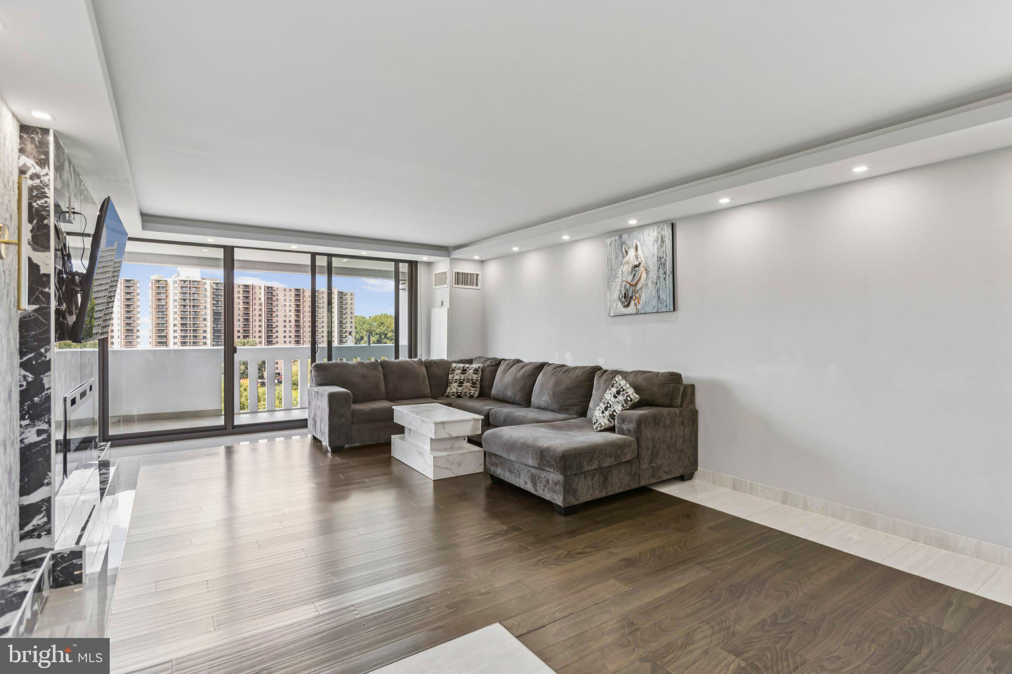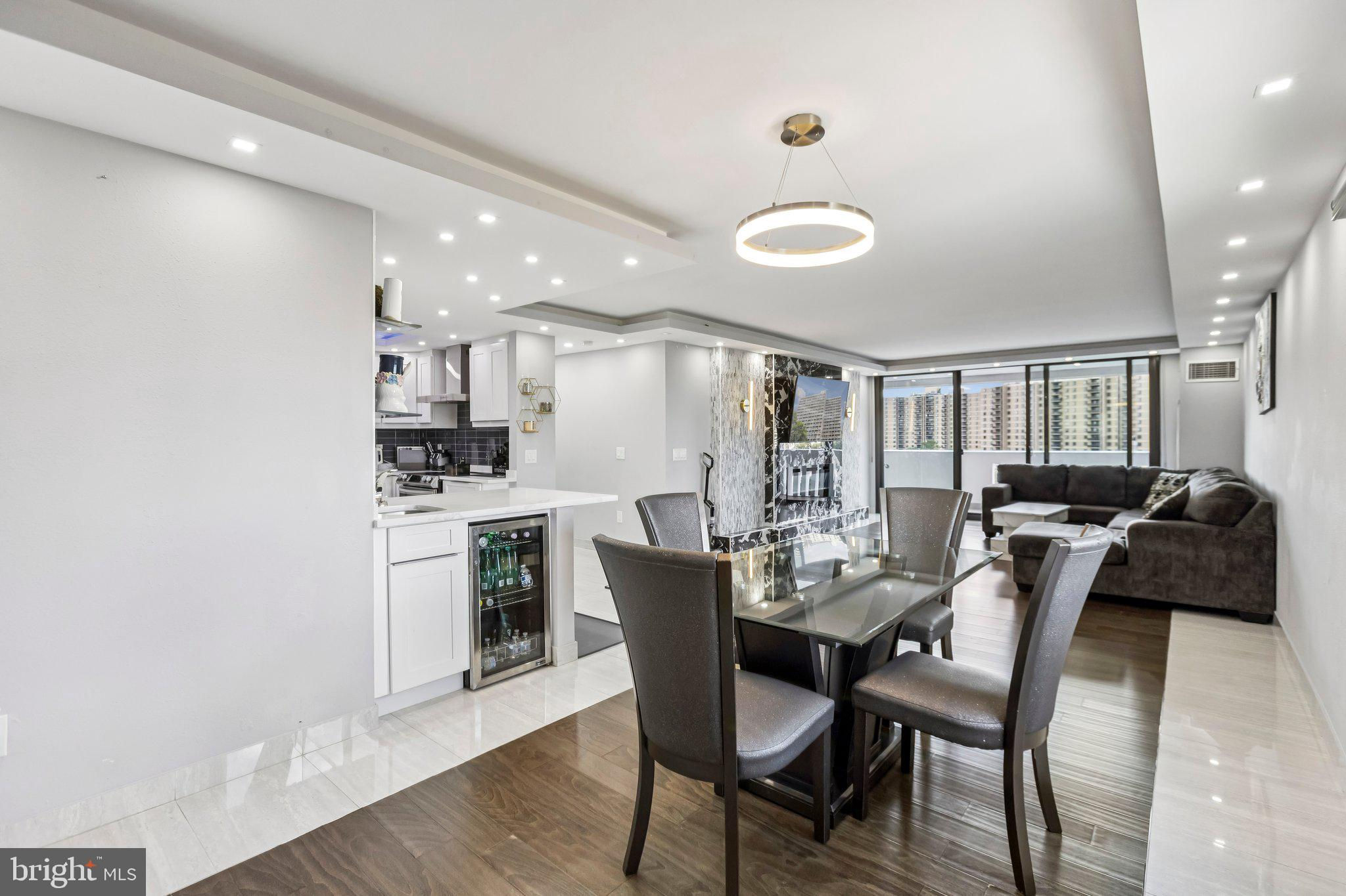 Once in a while a condo comes along that feels more like a lifestyle upgrade than just a place to live and this is one of those homes. Fully renovated with modern finishes, this 2BR 2BA residence blends style with everyday convenience and all utilities are included in the condo fee. The kitchen is a centerpiece with quartz counters, a waterfall island, stainless steel appliances, tile backsplash, and custom lighting that set the tone for the open layout. Wide plank floors flow through the dining and living areas, creating a seamless space filled with natural light. Floor to ceiling glass doors open to a private 40 foot balcony offering an inviting outdoor extension of the home, perfect for morning coffee, evening sunsets, or entertaining friends. Both bedrooms are generously sized, including a primary suite with a custom walk in closet and spa inspired bath with a dual vanity and walk in shower. The second bedroom and updated hall bath provide flexibility for guests or office use, and the in unit washer and dryer add everyday convenience. Thoughtful upgrades throughout make the home as functional as it is stylish. The community adds to the experience with a pool, fitness center, tennis courts, billiards, party room, a pet area, and secure app based entry. All of this just minutes to I-395 I-495 Van Dorn Metro Old Town The Pentagon and DC. More than a condo, this is a turnkey upgrade to everyday life.