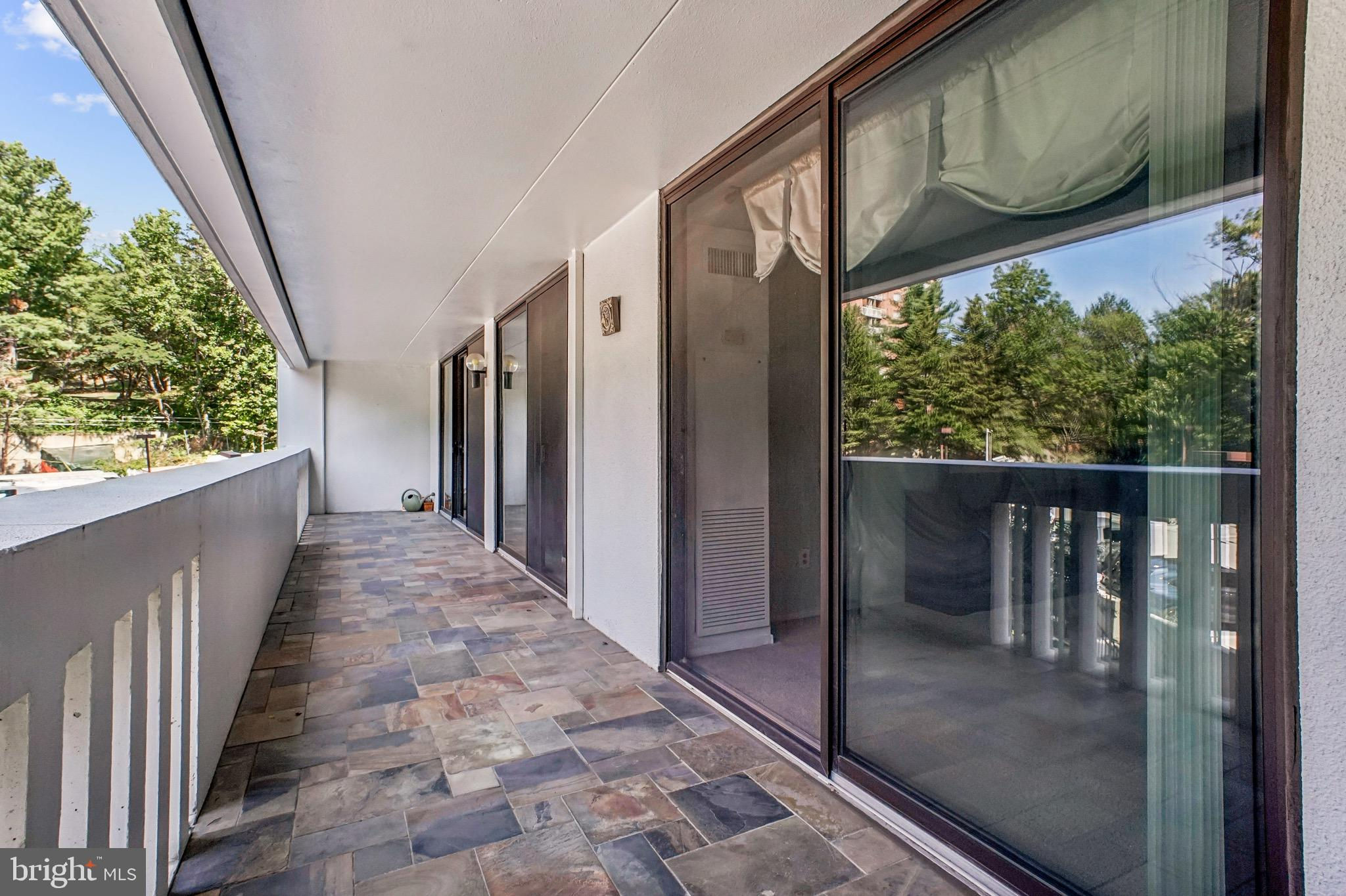 Floor to Ceiling Windows run the length of this spacious END-UNIT real 2 bed 2 bath at the Alexandria Knolls. Open sight lines of trees from the windows and a generous outside space running the length of the unit on a private patio. Family room and dining room have hardwood floors, updated kitchen has slab granite countertops with plenty of space for preparing meals. Both bathrooms have recently been renovated. For ease of convenience, all rooms have access to the patio outside (runs the length of the entire condo unit). A reserved parking space conveys. The upscale high-rise building offers top amenities like 24/7 concierge services, a fitness center, saunas, party rooms, billiard rooms, outdoor pool and tennis court. All utilities are included. It is centrally located less than 7 miles from the Pentagon and DC Border, 3 miles to vibrant Old Town Alexandria with top restaurants and stores/retailers around. Multiple commuting options: I-495, I-395, Van Dorn Metro Station at about 1.3 miles away and plenty of Metro-bus services.