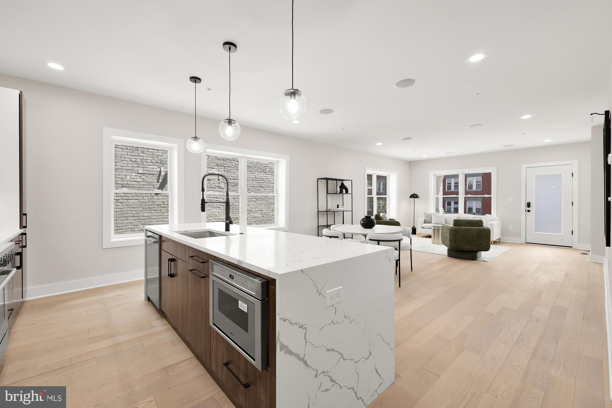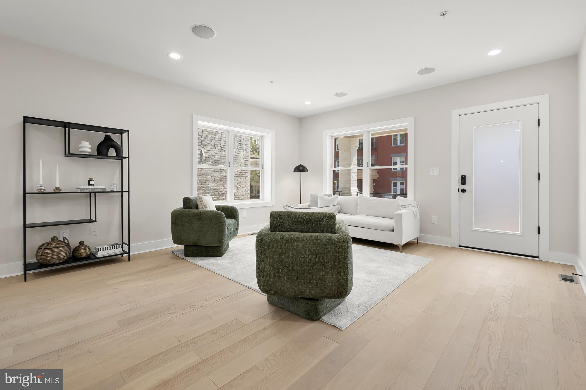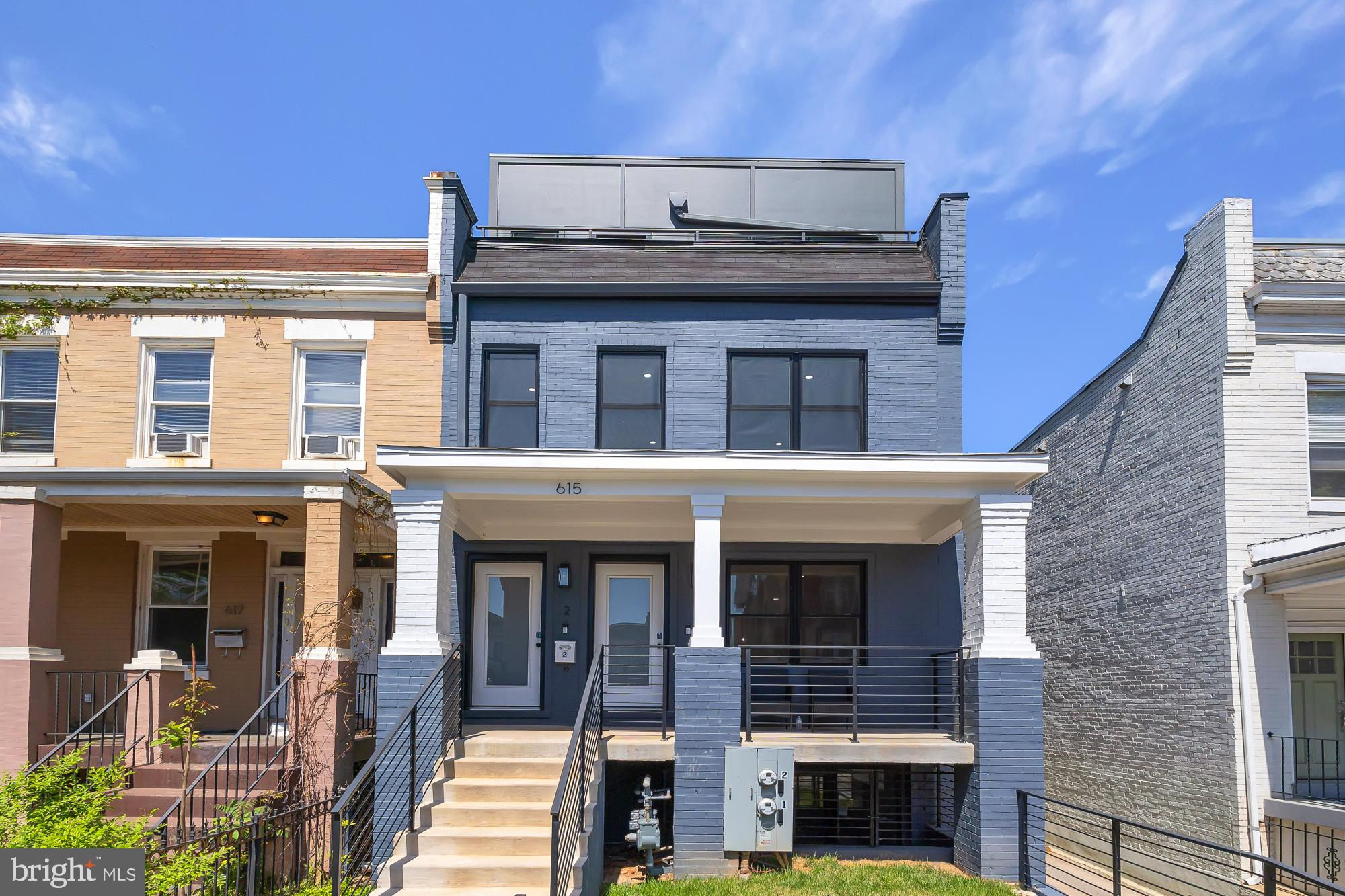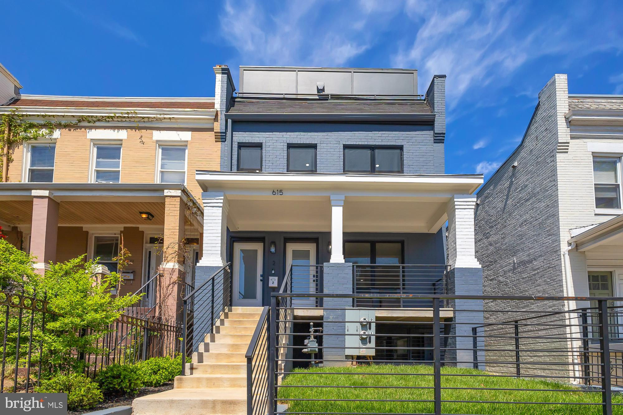 Lender incentive- $5,250 lender credit and free appraisal Welcome to 615 Irving Street Northwest, Unit 1, a stunning modern 2- Level residence located in the vibrant Park View neighborhood of Washington, DC. This newly constructed home offers an elegant and warm ambiance, with 4 bedrooms and 3 bathrooms spread across a spacious 2464 square feet. Upon entering, you'll be greeted by a thoughtfully designed interior that seamlessly blends contemporary style with functionality. The main level features an open floor plan, accentuated by an abundance of natural light and hardwood flooring throughout. The gourmet kitchen features custom two-tone cabinetry, quartz countertops with a waterfall edge, a full Bosch appliance package, and an oversized pantry. Throughout the home, enjoy the convenience of surround sound ceiling speakers, adding a modern touch to the living experience. The main level is graced with an oversized primary bedroom featuring large windows, a balcony, and an adjoining gorgeous spa bathroom, as well as access to the private backyard. As you retreat downstairs you will find 3 more bedrooms-2 of the 3 bedrooms offering outdoor space, an open den with a custom wet bar and additional entertainment/sitting area for all your relaxation needs as well as ample closet space in each bedroom and throughout the hallway. Step outside onto the deck and discover your own private outdoor oasis, complete with a large deep yard, offering ample space for outdoor entertainment, relaxation, & green space. Enjoy people watching on your front porch while sipping your coffee. For a more elevated experience, the common roof deck provides sweeping views of the surrounding neighborhood, breathtaking views of the Washington Monument and the Catholic University Basilica, creating a perfect setting for relaxation and entertainment. The home is equipped with modern conveniences, including a washer/dryer, Smart Thermostat , ring doorbell for included security providing peace of mind and convenience. Conveniently located within walking distance to the Petworth and Columbia Heights Metro stations, this residence offers easy access to all the amenities and attractions that the area has to offer. Additionally, the ample street parking ensures that you and your guests will always find a space nearby. Don't miss the opportunity to make this exceptional property your own and experience the epitome of modern urban living in one of DC's most sought-after neighborhoods. Schedule a showing today and envision the possibilities of calling 615 Irving Street Northwest, Unit 1, your new home. Low condo fees! Buy and Invest today and watch your equity grow as the NEW Reservoir District Development is coming soon along with all the new developments on Georgia Ave NW and a superbly revitalized Parkview Recreation center.