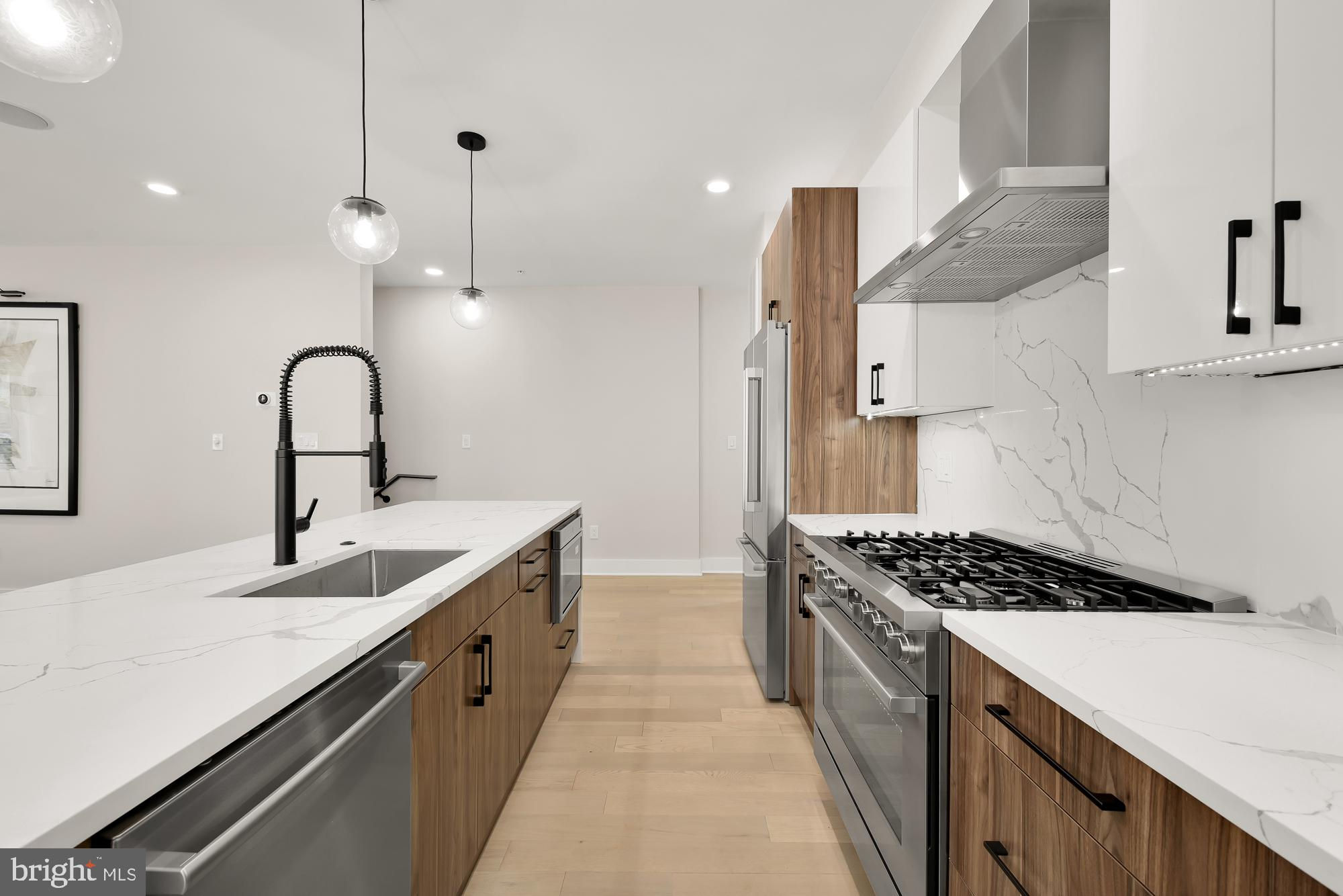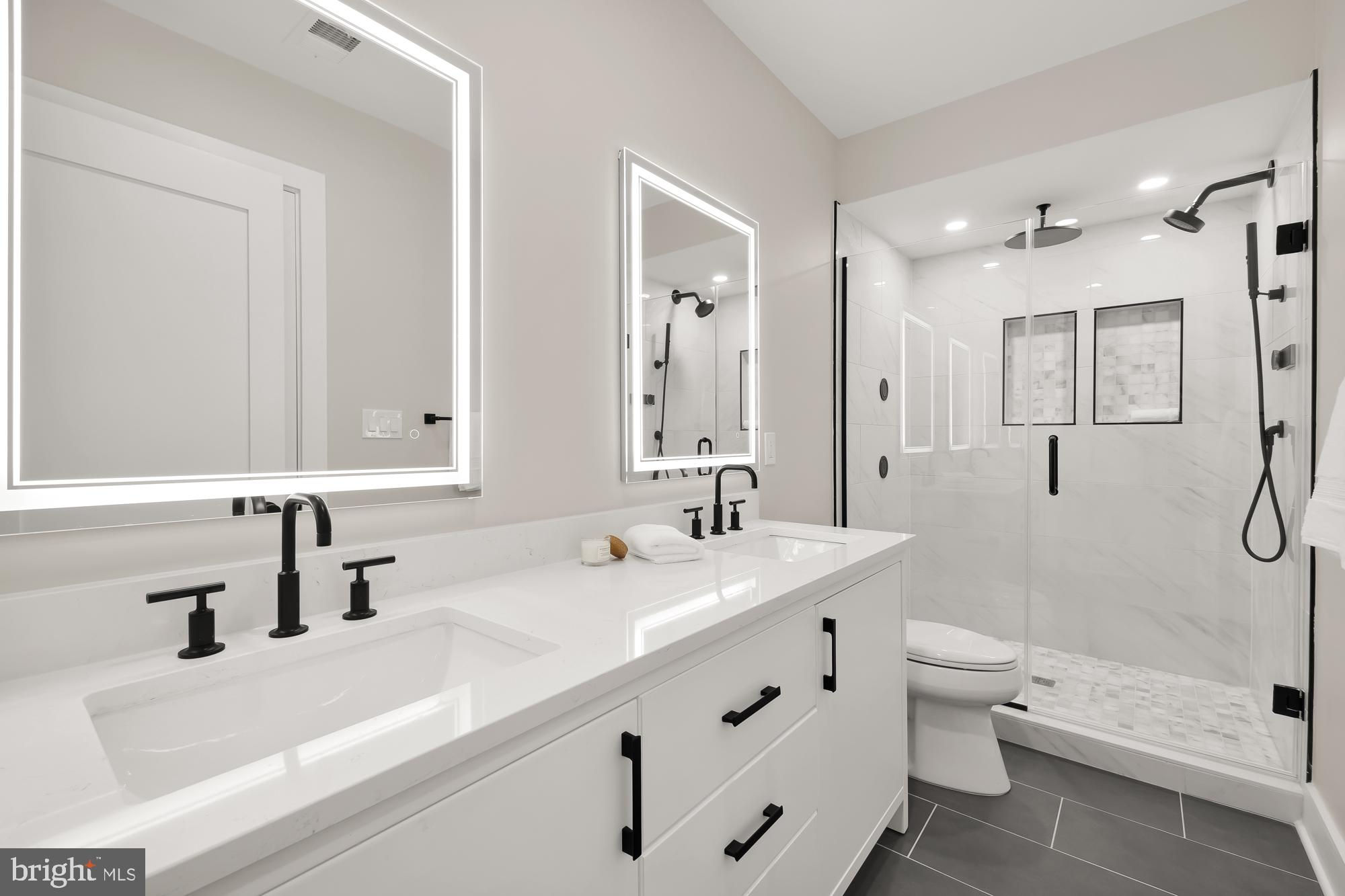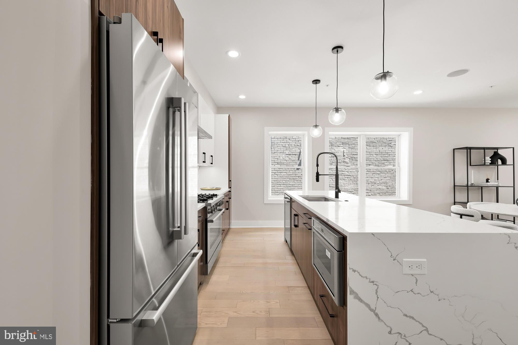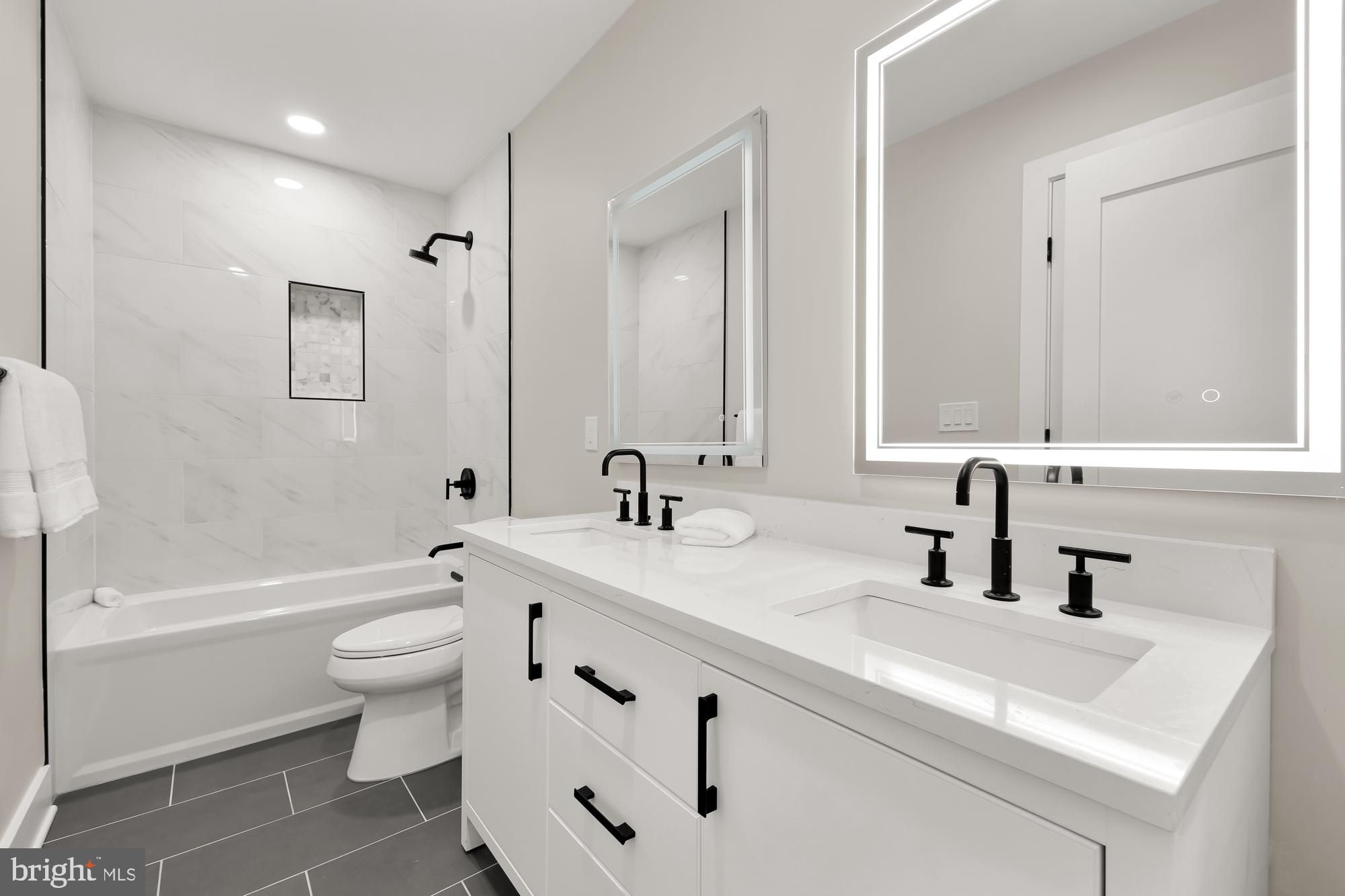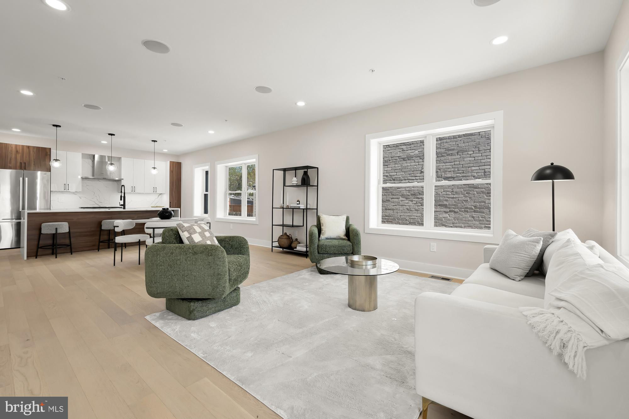 Lender incentive- $5,250 lender credit and free appraisal Welcome to 615 Irving Street Northwest, Unit 1, a stunning modern 2- Level residence located in the vibrant Park View neighborhood of Washington, DC. This newly constructed home offers an elegant and warm ambiance, with 4 bedrooms and 3 bathrooms spread across a spacious 2464 square feet. Upon entering, you'll be greeted by a thoughtfully designed interior that seamlessly blends contemporary style with functionality. The main level features an open floor plan, accentuated by an abundance of natural light and hardwood flooring throughout. The gourmet kitchen features custom two-tone cabinetry, quartz countertops with a waterfall edge, a full Bosch appliance package, and an oversized pantry. Throughout the home, enjoy the convenience of surround sound ceiling speakers, adding a modern touch to the living experience. The main level is graced with an oversized primary bedroom featuring large windows, a balcony, and an adjoining gorgeous spa bathroom, as well as access to the private backyard. As you retreat downstairs you will find 3 more bedrooms-2 of the 3 bedrooms offering outdoor space, an open den with a custom wet bar and additional entertainment/sitting area for all your relaxation needs as well as ample closet space in each bedroom and throughout the hallway. Step outside onto the deck and discover your own private outdoor oasis, complete with a large deep yard, offering ample space for outdoor entertainment, relaxation, & green space. Enjoy people watching on your front porch while sipping your coffee. For a more elevated experience, the common roof deck provides sweeping views of the surrounding neighborhood, breathtaking views of the Washington Monument and the Catholic University Basilica, creating a perfect setting for relaxation and entertainment. The home is equipped with modern conveniences, including a washer/dryer, Smart Thermostat , ring doorbell for included security providing peace of mind and convenience. Conveniently located within walking distance to the Petworth and Columbia Heights Metro stations, this residence offers easy access to all the amenities and attractions that the area has to offer. Additionally, the ample street parking ensures that you and your guests will always find a space nearby. Don't miss the opportunity to make this exceptional property your own and experience the epitome of modern urban living in one of DC's most sought-after neighborhoods. Schedule a showing today and envision the possibilities of calling 615 Irving Street Northwest, Unit 1, your new home. Low condo fees! Buy and Invest today and watch your equity grow as the NEW Reservoir District Development is coming soon along with all the new developments on Georgia Ave NW and a superbly revitalized Parkview Recreation center.