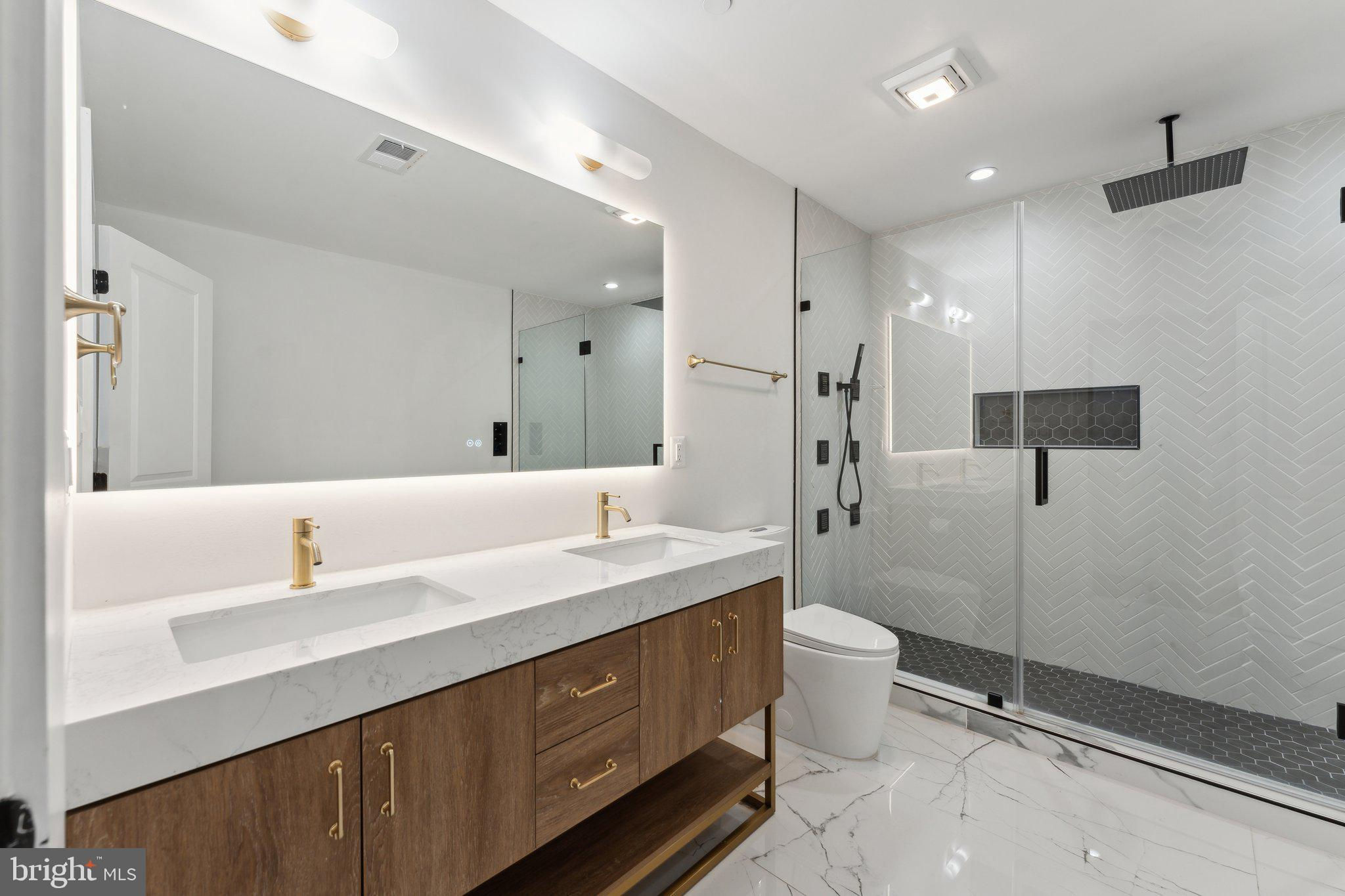 Welcome to Park Rd! This enormous 2-level 3 bed 3.5 bath condo is located in the Columbia Heights neighborhood near all of your public amenities and conveniences and boasts over 2600 SQAURE FEET! Check out details for PARKING. Throughout the main level you have a great open floor plan space with a seamless flow from the living room to dinning room to the grand kitchen for a very cohesive lay out. Step into your all white kitchen with high end features which include white quartz counters, stainless steel appliances, tall white cabinetry, black fixtures and an oversized waterfall center island with barstool seating. You have your enourmous master suite that features tall ceilings, direct outdoor access to your private patio and a large walk-in closet that seeps into your master en-suite bathroom. The master bathroom has all of your desired custom updates which include a walk-in oversized shower with a built-in bench, double vanity with black finishes and beautiful white quartz counters. On the lower level there are two additional spacious bedrooms with the continuation of the tall ceilings throughout, each with their very own private bathrooms. Both bathrooms have include an oversized walk-in showers with beautiful tile work and modern finishes throughout. In addition you have two private outdoor patios for relaxing afternoons with ample space to customize to your liking. *THE ROOF TOP IS A COMMON SPACE* 2 parking spaces - comes with the purchase of the home.