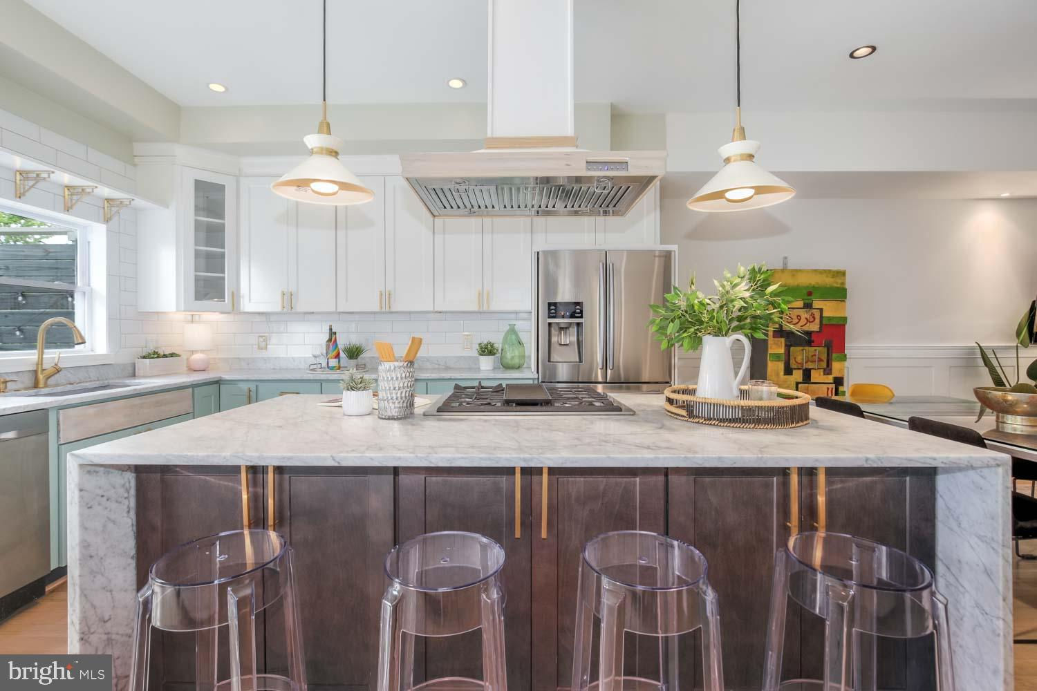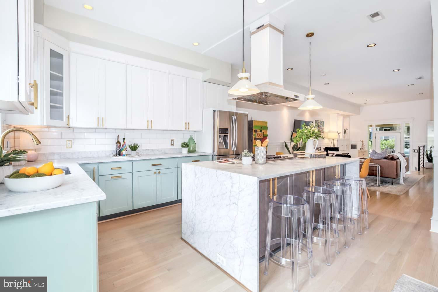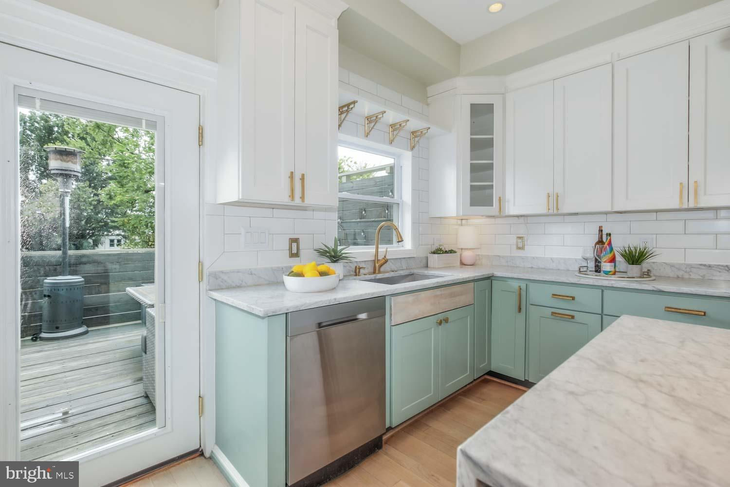 Gorgeously renovated throughout, this LARGE, deep rowhome on a quiet, treed street offers it all! Main level with step-up entry to LR, dining area, gourmet Instagram-ready kitchen w/ abundant cabinets, quartz counters & oversized island, private rear deck, powder room. Upstairs off skylit-hall are 2BR+DEN (nursery/office) including primary suite with vaulted ceiling, reclaimed wood closet, and updated sky-lit bath w/ vanity; full hall bath & laundry. BONUS connected (in-law/au pair) SUITE w/ high ceilings, full kitchen, full bath, windowed BR, additional storage & laundry space - with own front & back entrances! Off-street PKG while still maintaining private outdoor space is possible! All this and upgraded & improved endlessly by the sellers throughout, 618 Jefferson is the perfect, centrally-located offering close to city amenities while maintaining a serene, neighborhood retreat!