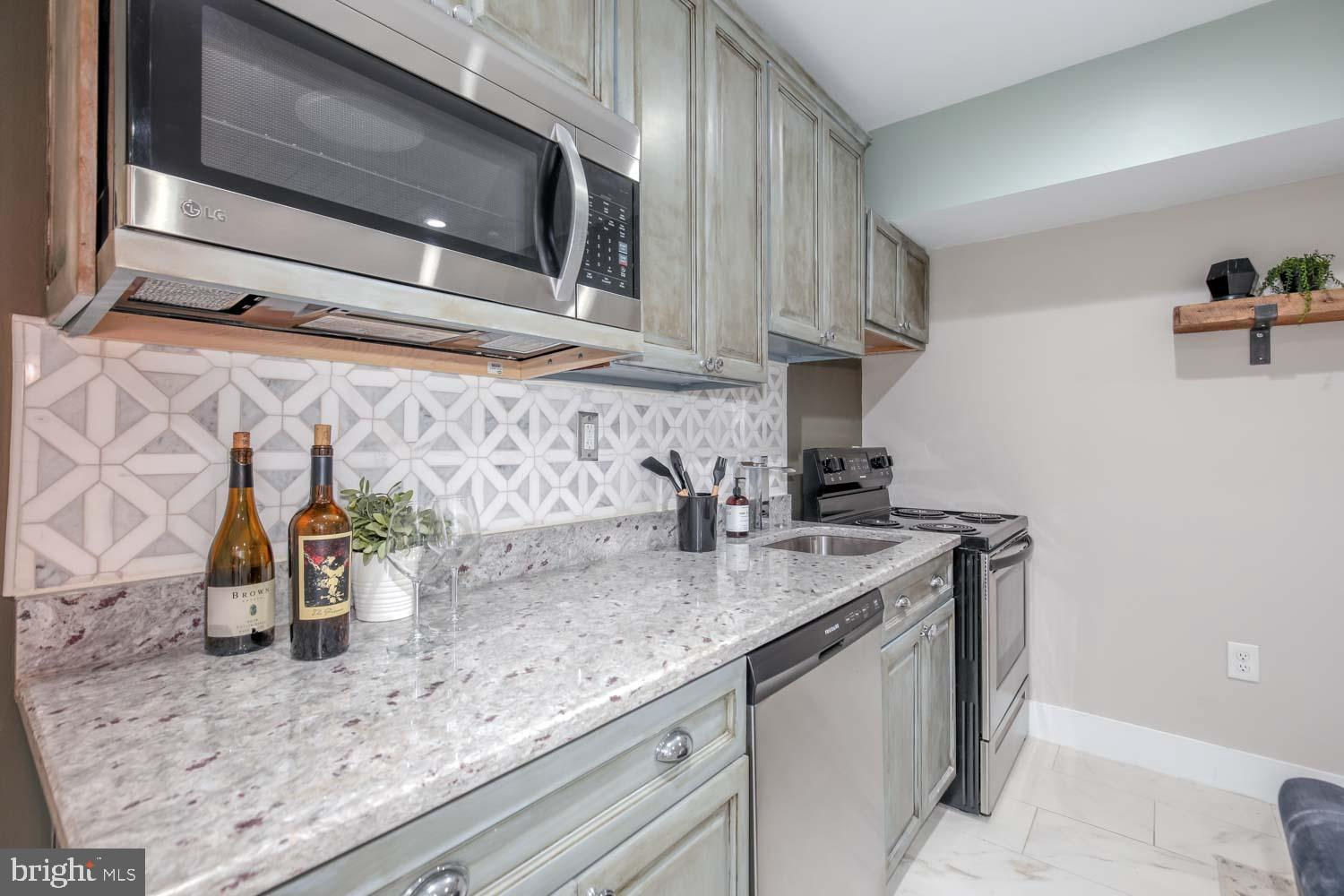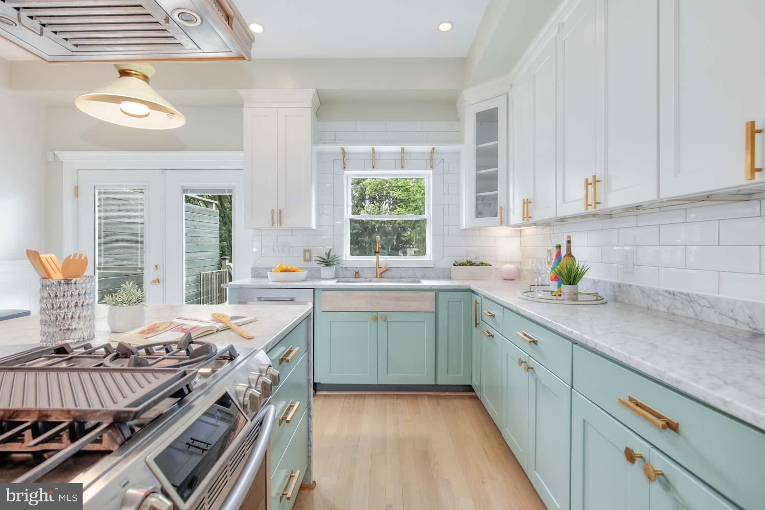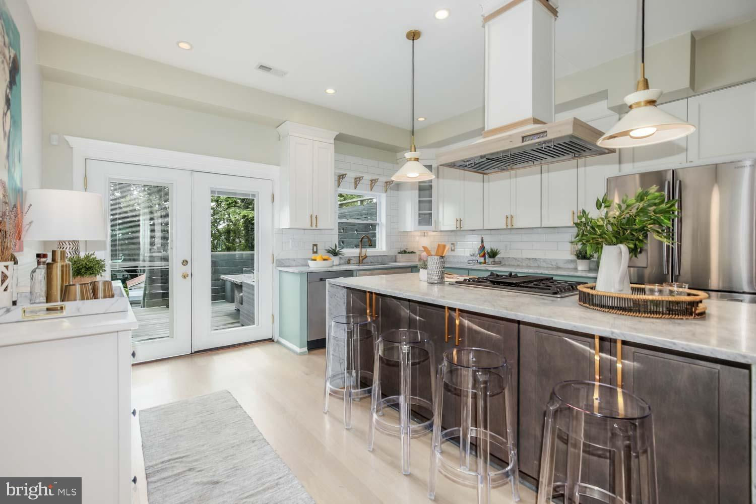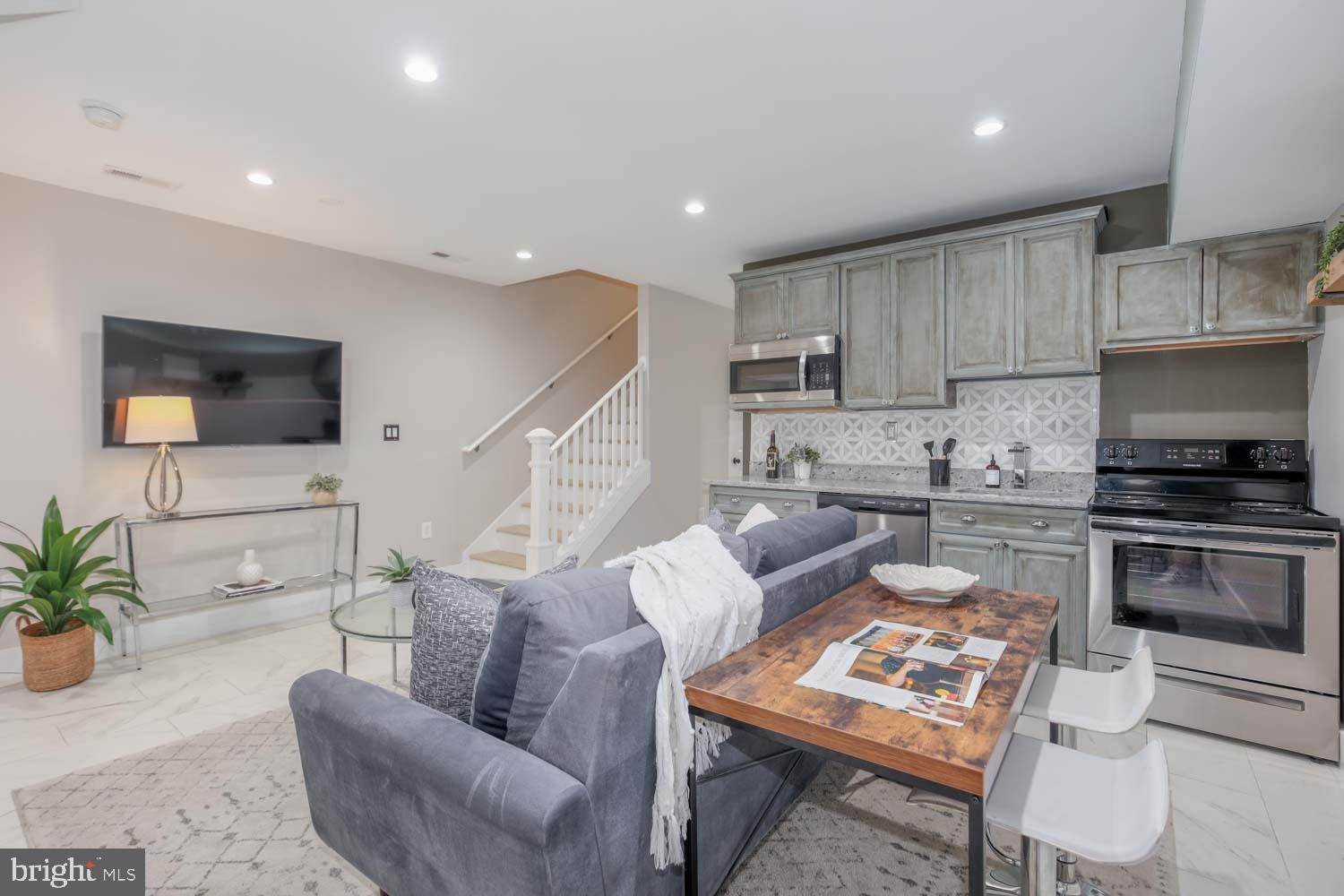 Gorgeously renovated throughout, this LARGE, deep rowhome on a quiet, treed street offers it all! Main level with step-up entry to LR, dining area, gourmet Instagram-ready kitchen w/ abundant cabinets, quartz counters & oversized island, private rear deck, powder room. Upstairs off skylit-hall are 2BR+DEN (nursery/office) including primary suite with vaulted ceiling, reclaimed wood closet, and updated sky-lit bath w/ vanity; full hall bath & laundry. BONUS connected (in-law/au pair) SUITE w/ high ceilings, full kitchen, full bath, windowed BR, additional storage & laundry space - with own front & back entrances! Off-street PKG while still maintaining private outdoor space is possible! All this and upgraded & improved endlessly by the sellers throughout, 618 Jefferson is the perfect, centrally-located offering close to city amenities while maintaining a serene, neighborhood retreat!