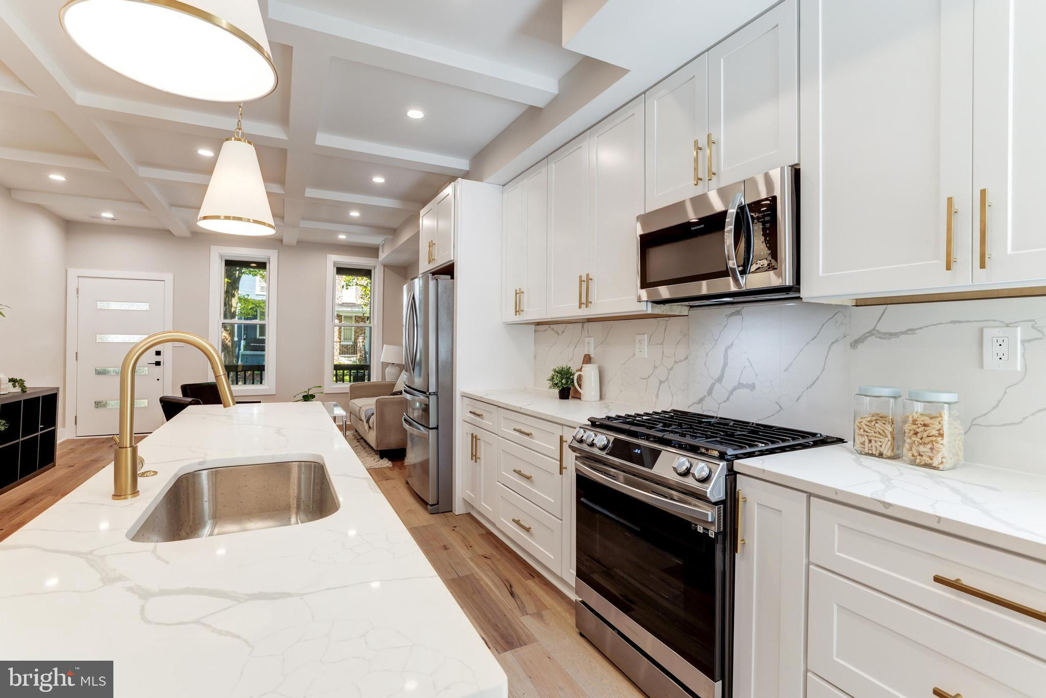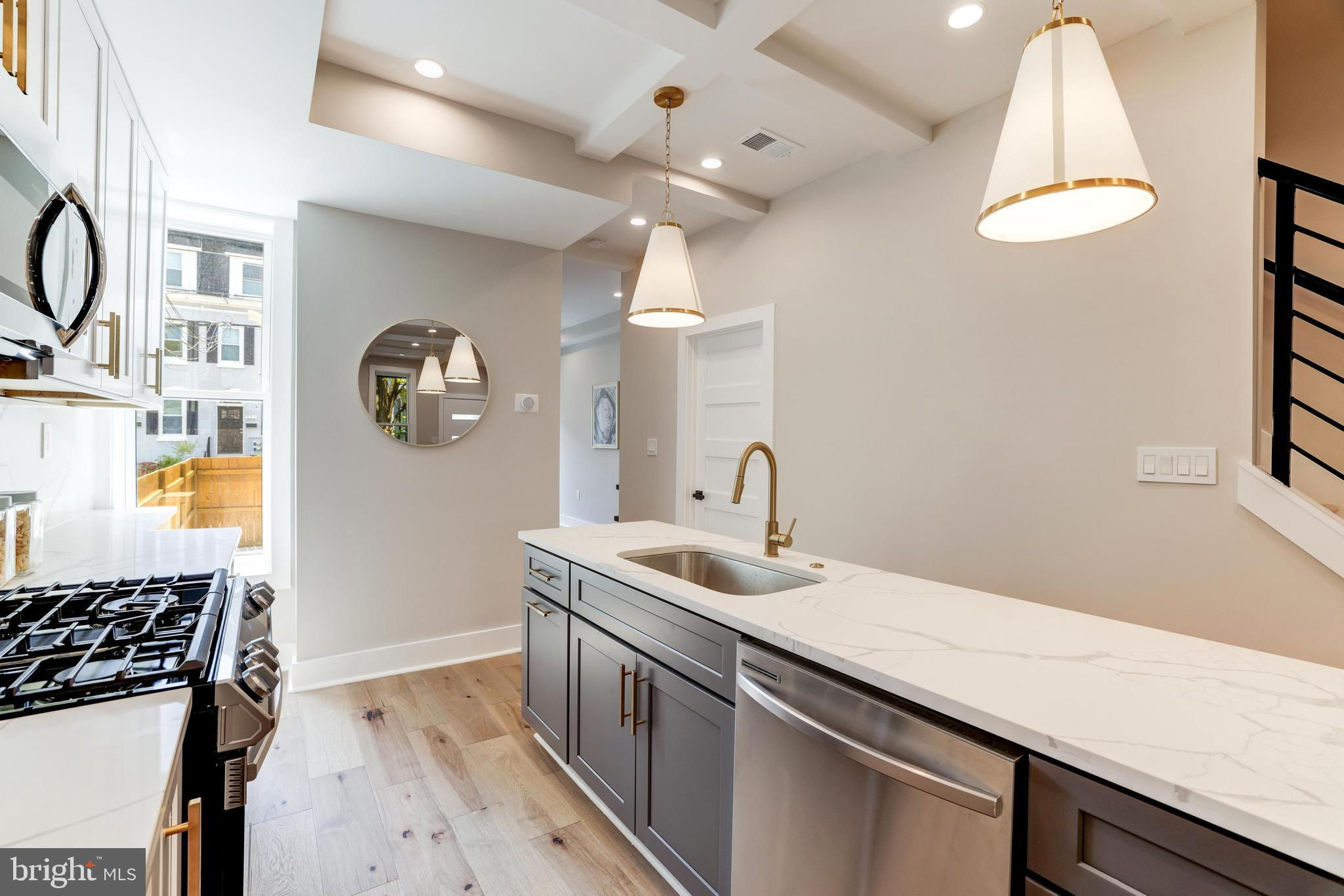 For those desiring to celebrate an open concept luxury modern design and urban lifestyle. Welcome to this LARGE 2,252 SqFt 3 LEVELS, 4 Beds, 3.5 Baths Townhome with A SEPARATED AUXILIARY DWELLING UNIT (ADU) in the basement. This home boast 3 Levels with abundant natural light. Once inside, you’ll appreciate all the natural light afforded by the wall’s numerous windows. You’ll begin to make yourself at home as you step onto the wide front porch to relax in summer. The main floor offers a concept open floor-plan with a gourmet kitchen. Featuring stainless steel appliances with Kolkata countertops, backsplash, and an island to delight friends and family. In the Upper levels, the owner’s bedroom highlights, a beautiful dual sink, luxe glass-enclosed shower, generous size additional bedrooms. The lower level has a permitted Auxiliary Dwelling Unit; with its private entrance, 1 bedrooms, 1 full bathroom, kitchen, laundry, water heater, HVAC system, and electric meter. It's ideally suited for a rental unit or in-law suite. REMARKABLE CRAFTSMANSHIP throughout. Don't miss out on this opportunity of owning this great property in DC!