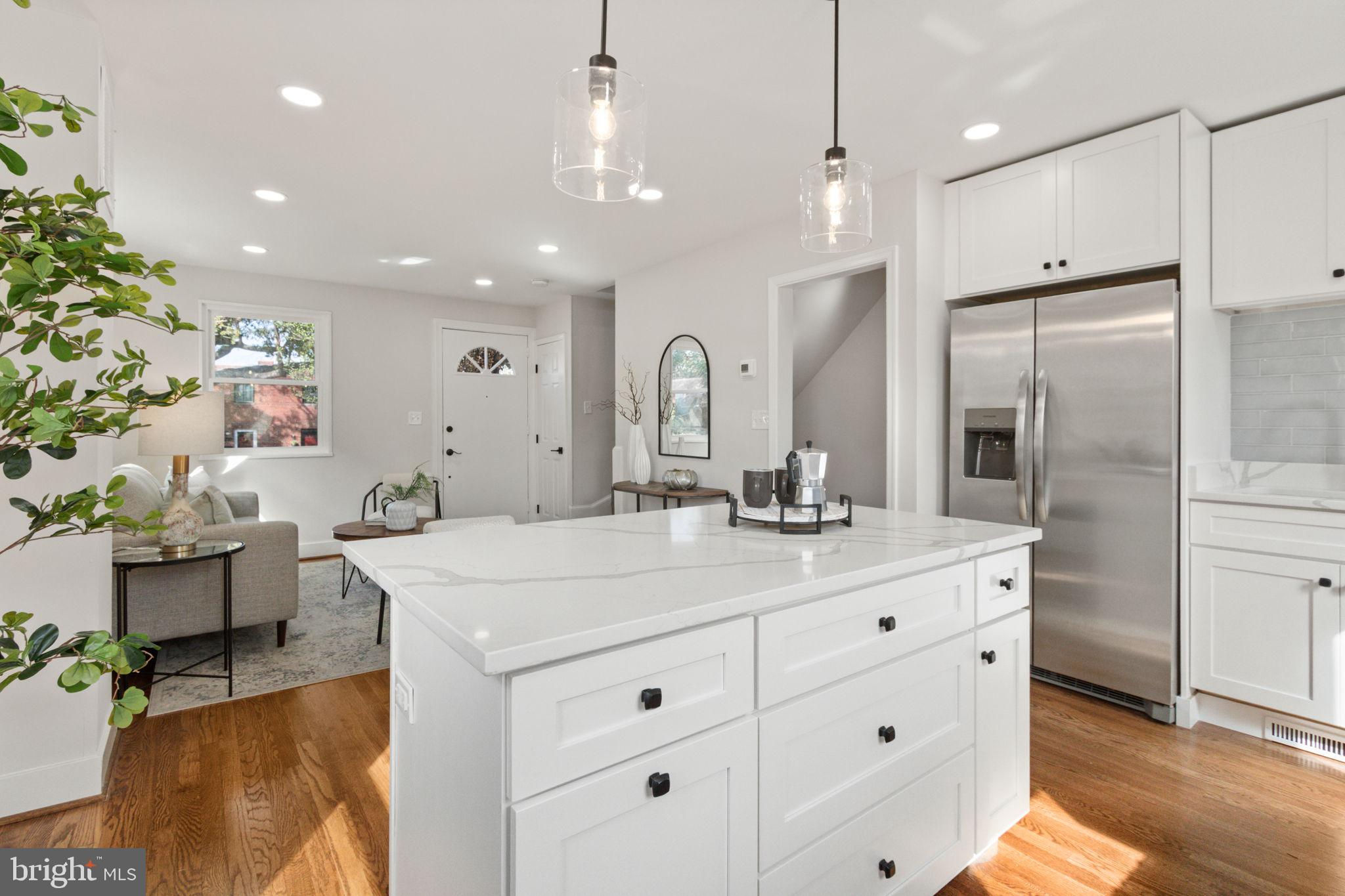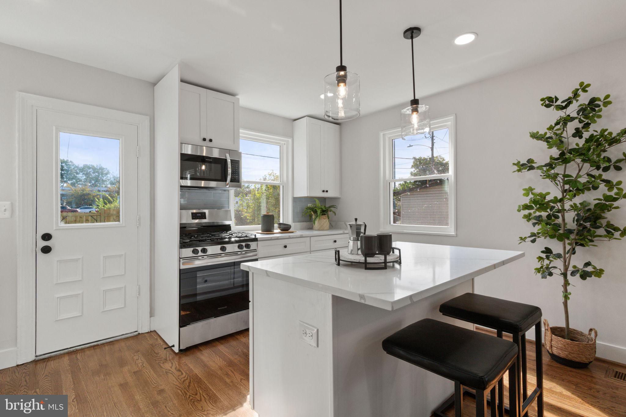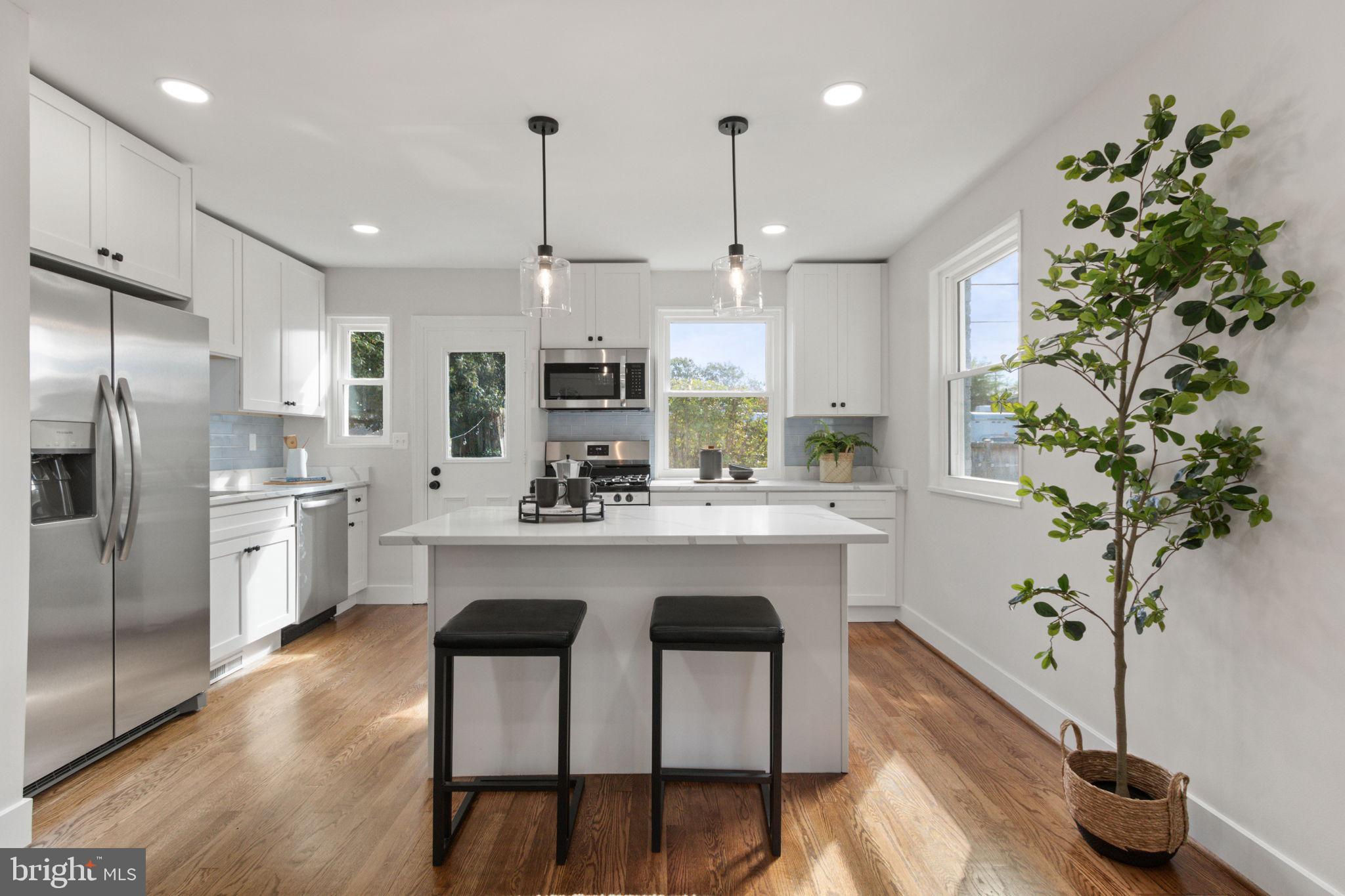 Stunning 3 level brick townhouse in a super convenient location. Welcome home to 622 S Henry Street! The quiet part of S Henry Street. Recently renovated, this light and bright 2 bedroom 2 full bath retreat offers it all. This end unit home provides one of the larger front, side and rear yards in the area. Make your way inside and you're greeted with gleaming real hardwood floors on the main and upper levels, recessed lighting, fresh paint throughout and brand new vinyl windows. On the main level, the living room is open to the kitchen in the rear of the home, complete with an abundance of white shaker cabinetry, quartz counters, tiled backsplash, stainless steel appliances and a cozy kitchen island complete with seating for 2. Upstairs you'll find 2 good sized bedrooms, one of which boasts two closets (hard to find that extra closet space in this part of town) and a full bathroom complete with tub and shower. The lower level has a nice and versatile rec room, a brand new bathroom complete with new washer and dryer, a separate storage area, and has a separate walk-out/walk-up entrance too. Walking distance to Duke Street, King St and less than 1 mile to the King Street Metro and Amtrak station. Also walking distance and/or a short drive to Old Town shopping and dining. For commuting, you're a stone's throw to Route 1, I-495 access, and close to the GW Parkway. Minutes away from Reagan National Airport, The Pentagon, and Crystal City too. All building permits have been finalized and closed out with City of Alexandria.