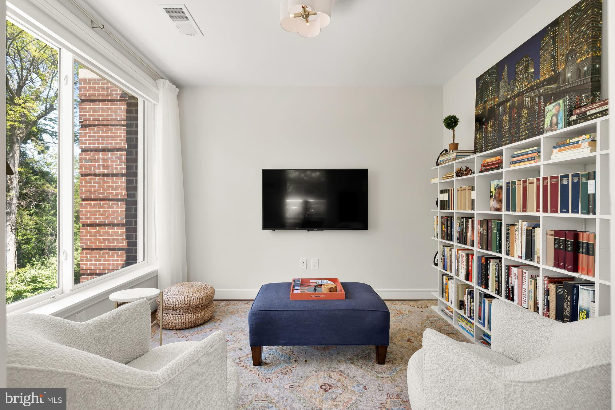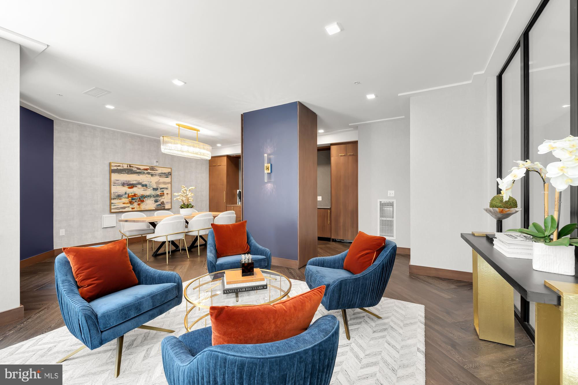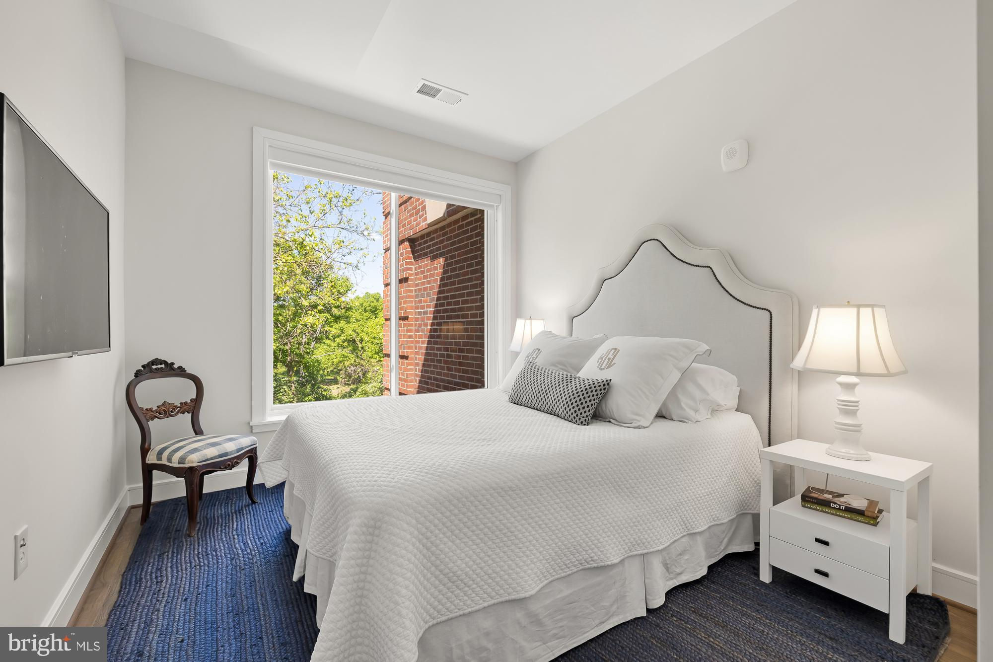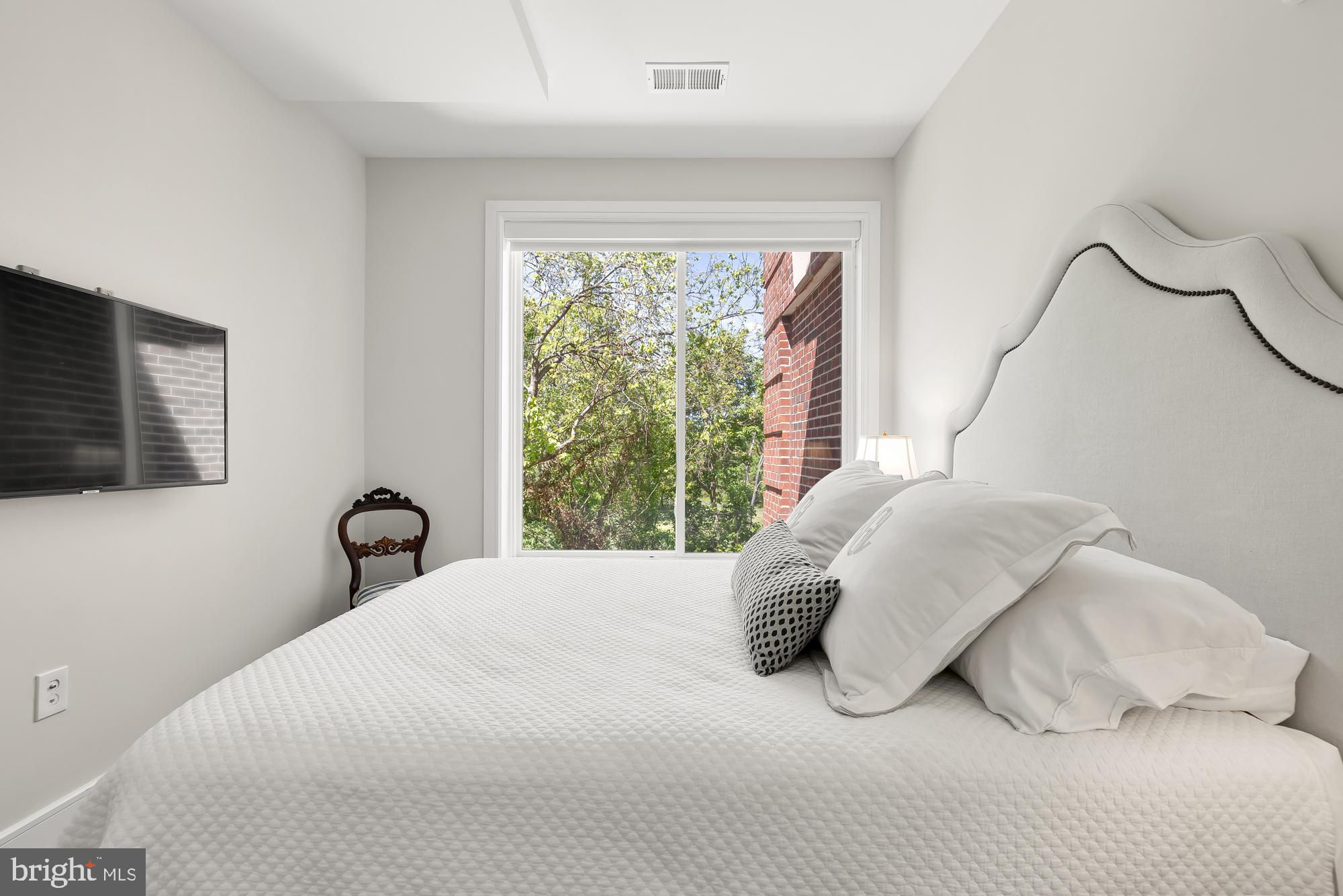 Welcome to 625 Slaters Lane, Unit 104! This is a stunning and sophisticated residence offering an elegant, modern lifestyle in the heart of Alexandria, VA. This exceptional corner unit boasts 1532 square feet of luxury living space, featuring 2 spacious bedrooms + a den and large scale windows that frame breathtaking 180-degree views of the surrounding greenery, creating a serene and picture-perfect environment. Upon entering, you are greeted by the grandeur of a proper foyer with storage. Before you access the kitchen and main living area you have the 2nd bedroom complete with an en suite to your right. The kitchen is equipped a 5 burner stove, quartz counter tops, and a large pantry with plenty of cabinet space and the perfect breakfast bar accessed from the dining area. The living space is absolutely breathtaking and offers abundant light and space which are perfect for both entertaining or just relaxing. The Primary suite has everything you need to recharge and relax. Walk in closet, En suite, with his and her quartz vanities. The den or additional rec room offers many options, including a TV room, Workout room, Office Space or additional flex space. Residents of this mid rise building enjoy access to an array of upscale amenities, including a full-time concierge, a gym, yoga studio, and a resident's lounge. The common media/recreation room and club house provide additional spaces for relaxation and entertainment. For added convenience, private storage is included, and laundry facilities are available in every unit. This home is truly a haven for those seeking a modern and sophisticated lifestyle, with panoramic views and a sense of tranquility that is unmatched.