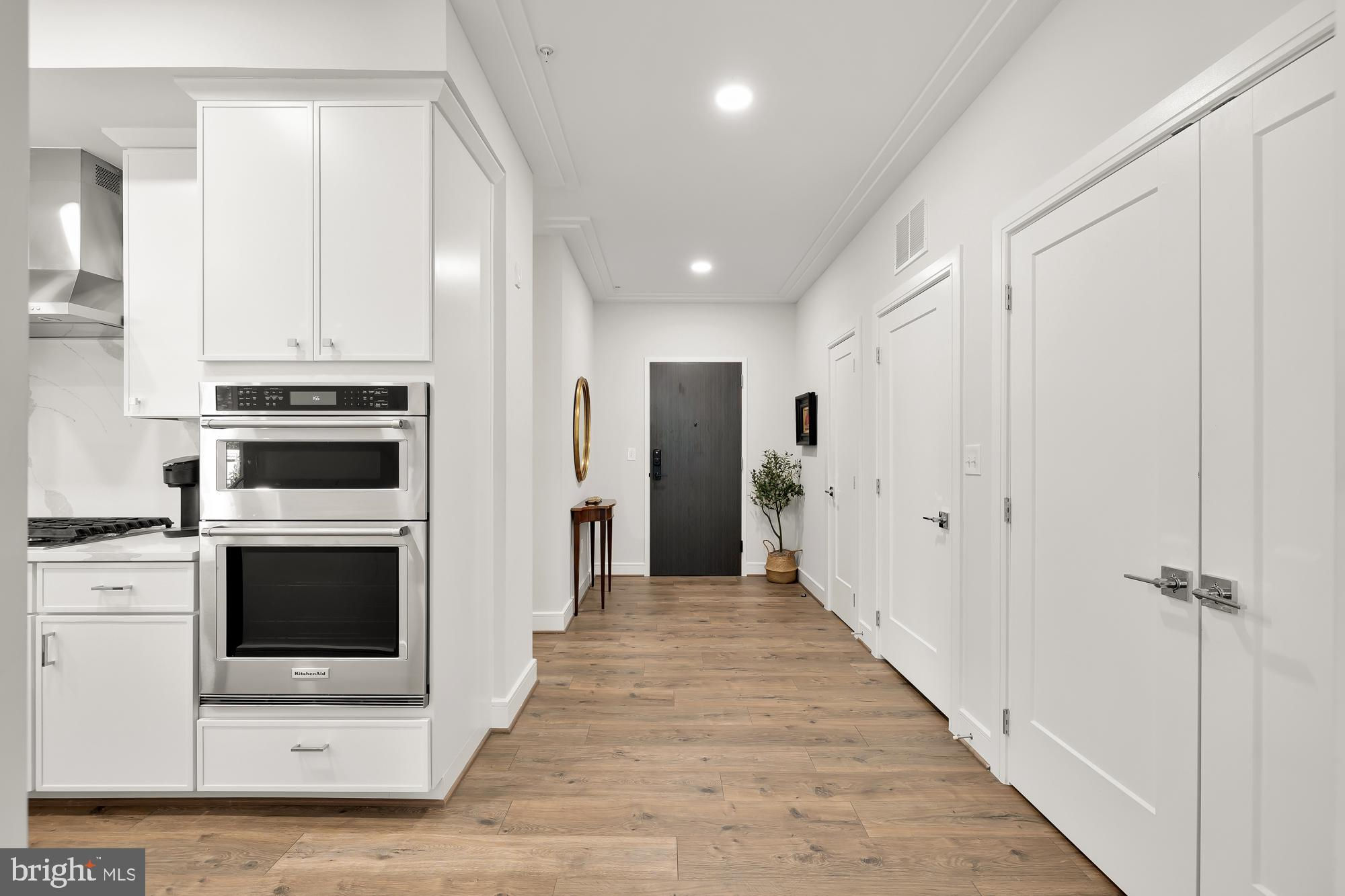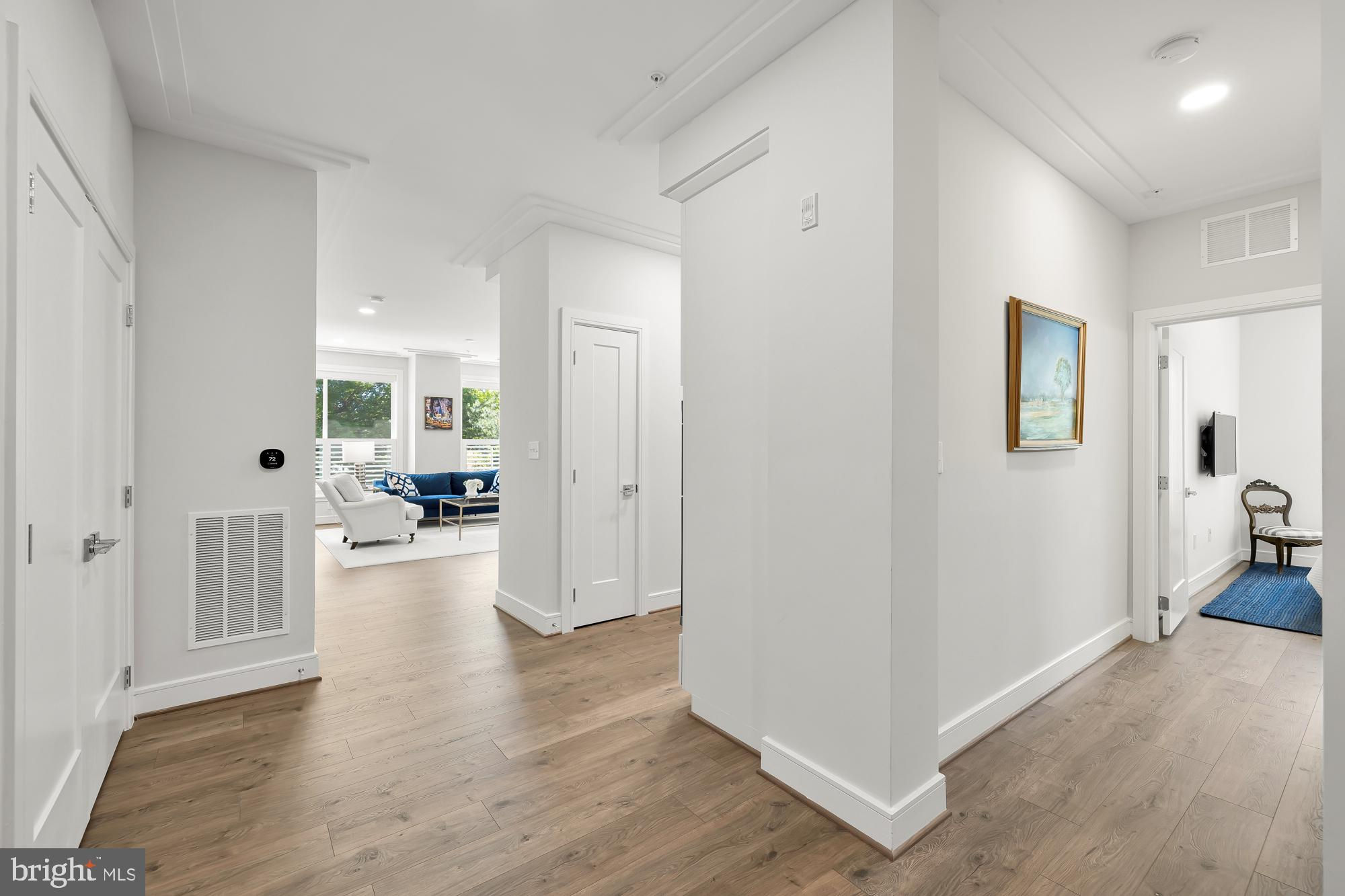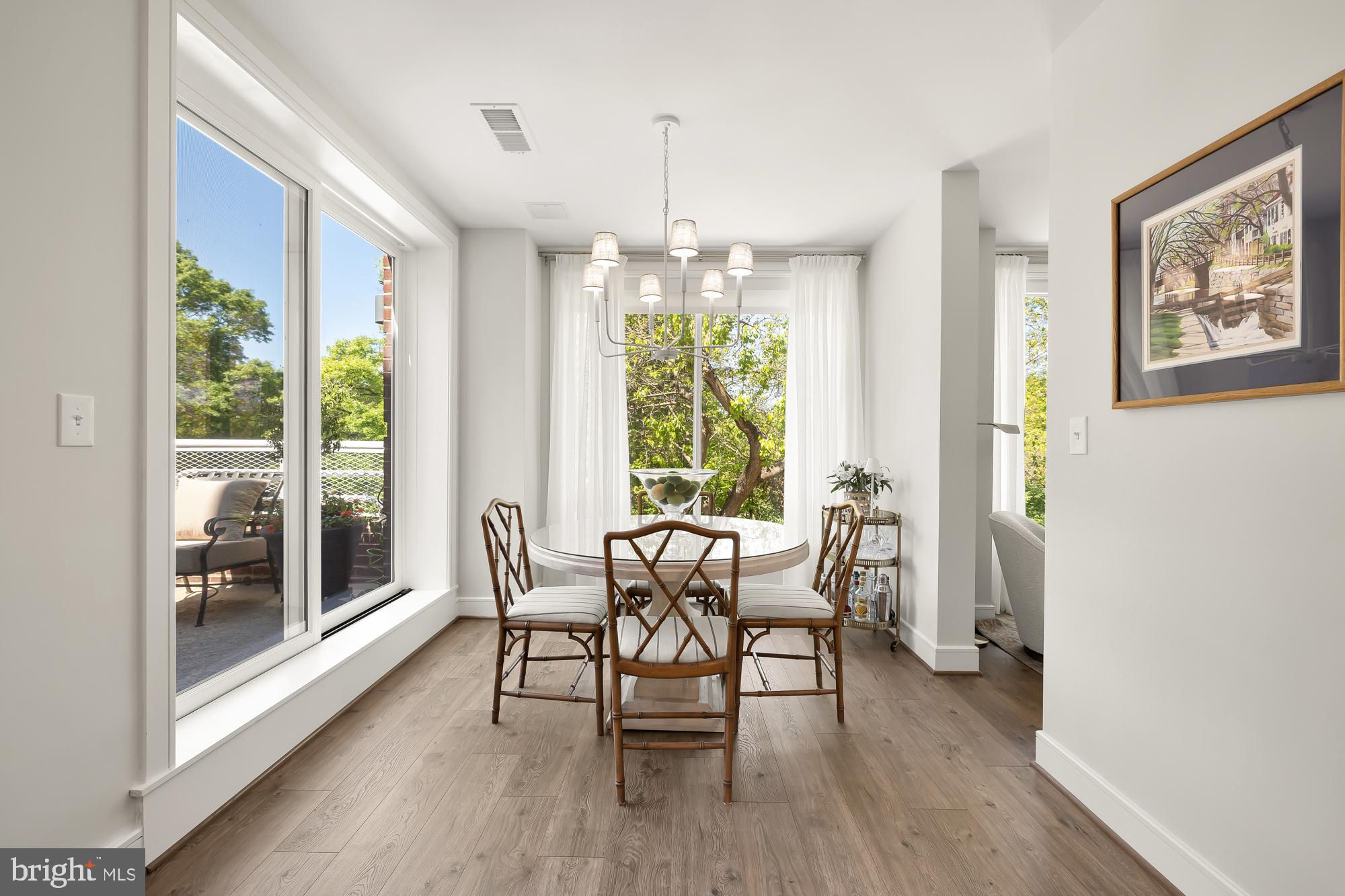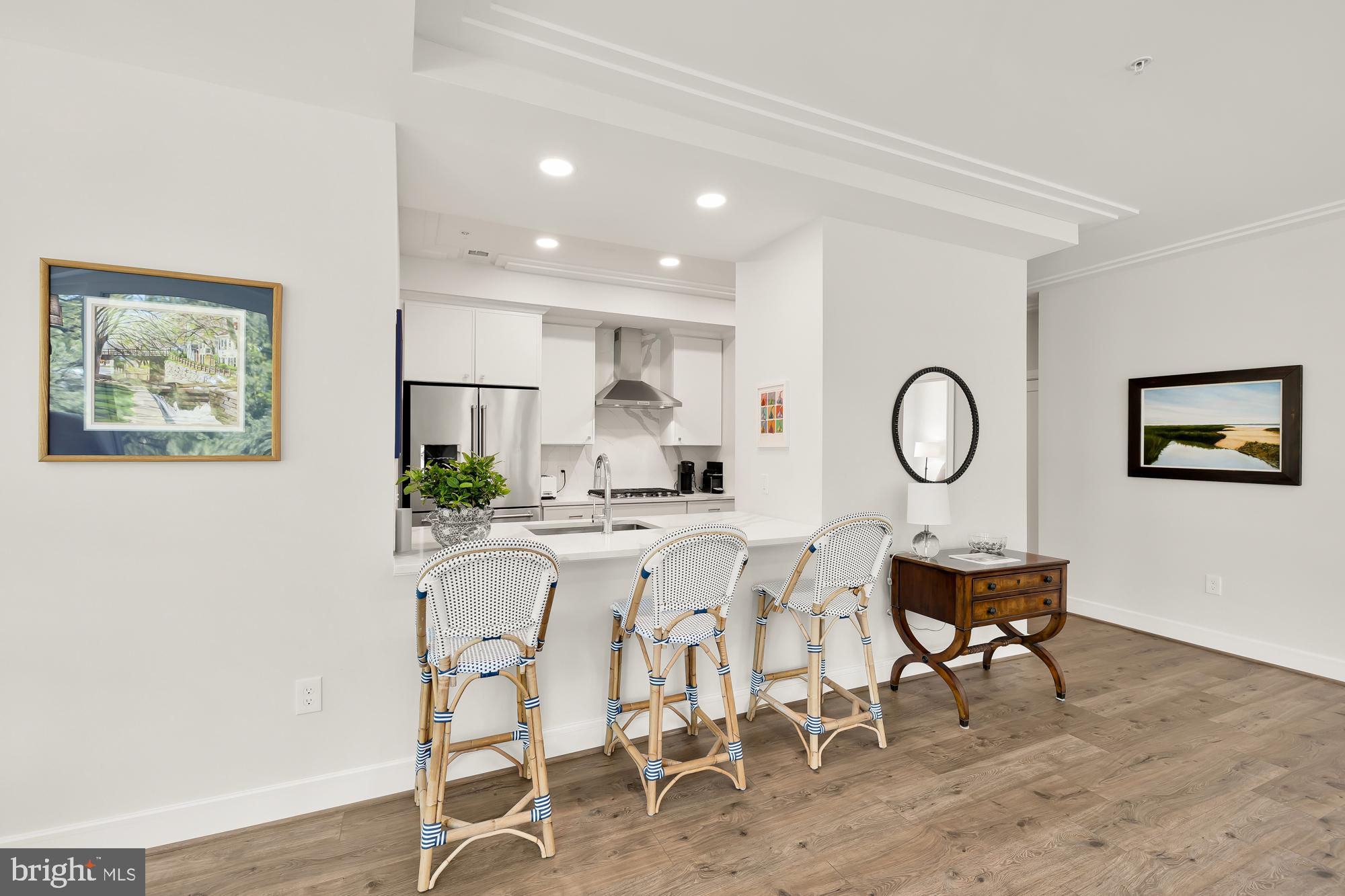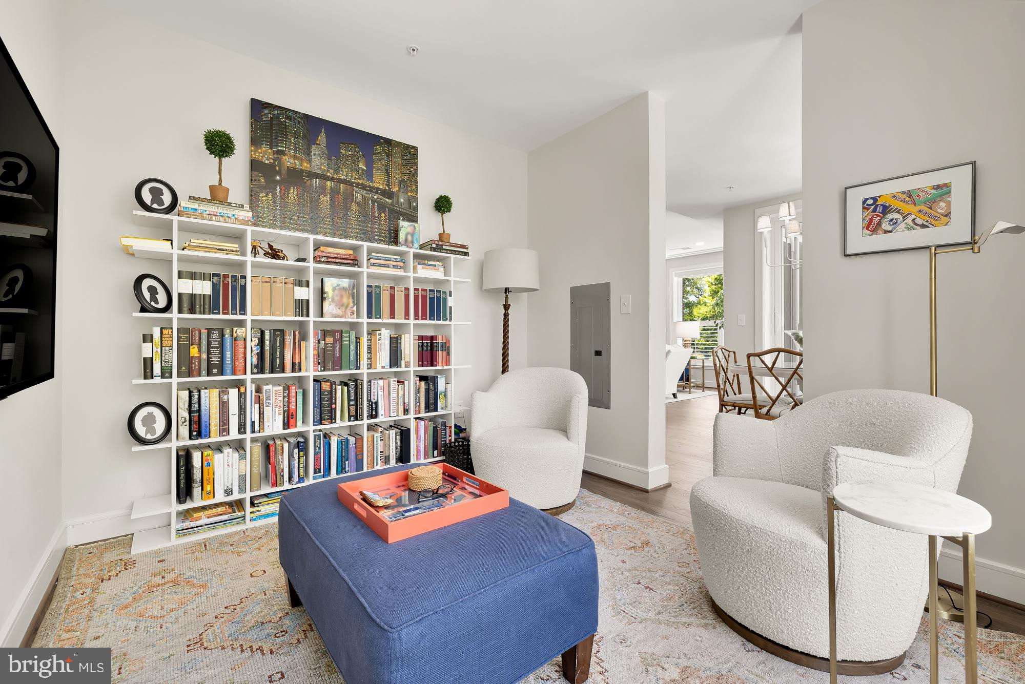 Welcome to 625 Slaters Lane, Unit 104! This is a stunning and sophisticated residence offering an elegant, modern lifestyle in the heart of Alexandria, VA. This exceptional corner unit boasts 1532 square feet of luxury living space, featuring 2 spacious bedrooms + a den and large scale windows that frame breathtaking 180-degree views of the surrounding greenery, creating a serene and picture-perfect environment. Upon entering, you are greeted by the grandeur of a proper foyer with storage. Before you access the kitchen and main living area you have the 2nd bedroom complete with an en suite to your right. The kitchen is equipped a 5 burner stove, quartz counter tops, and a large pantry with plenty of cabinet space and the perfect breakfast bar accessed from the dining area. The living space is absolutely breathtaking and offers abundant light and space which are perfect for both entertaining or just relaxing. The Primary suite has everything you need to recharge and relax. Walk in closet, En suite, with his and her quartz vanities. The den or additional rec room offers many options, including a TV room, Workout room, Office Space or additional flex space. Residents of this mid rise building enjoy access to an array of upscale amenities, including a full-time concierge, a gym, yoga studio, and a resident's lounge. The common media/recreation room and club house provide additional spaces for relaxation and entertainment. For added convenience, private storage is included, and laundry facilities are available in every unit. This home is truly a haven for those seeking a modern and sophisticated lifestyle, with panoramic views and a sense of tranquility that is unmatched.