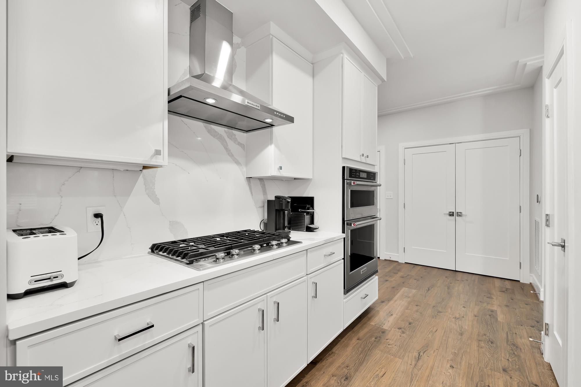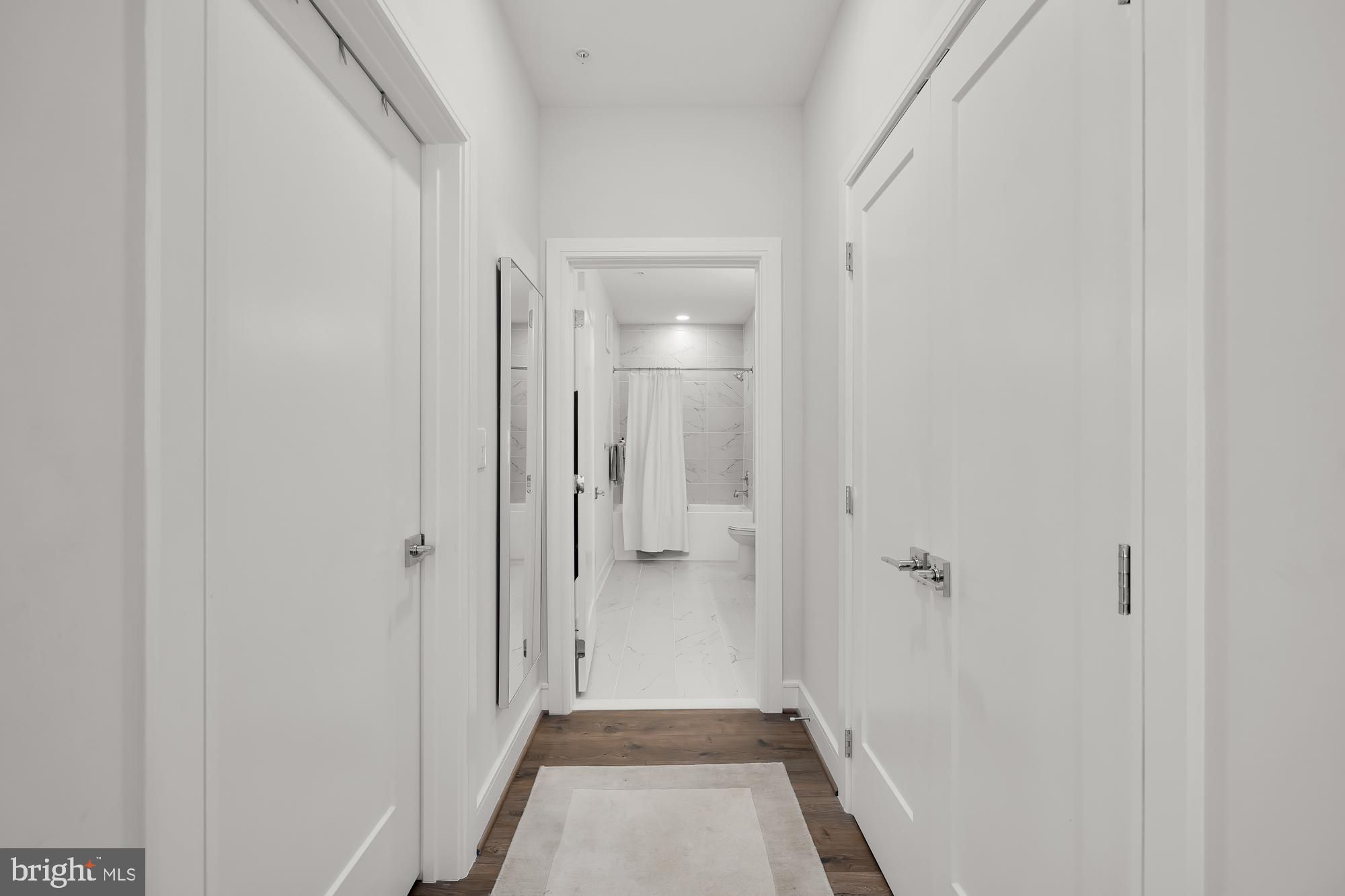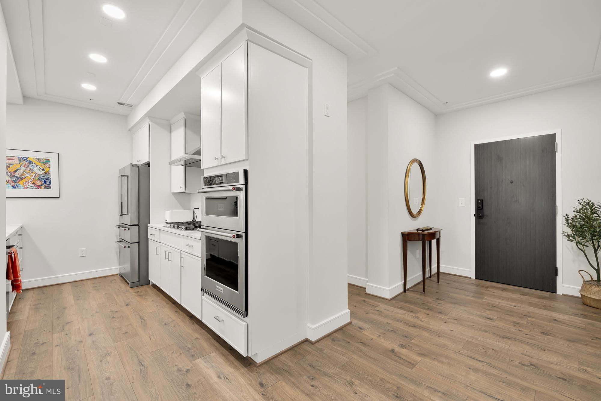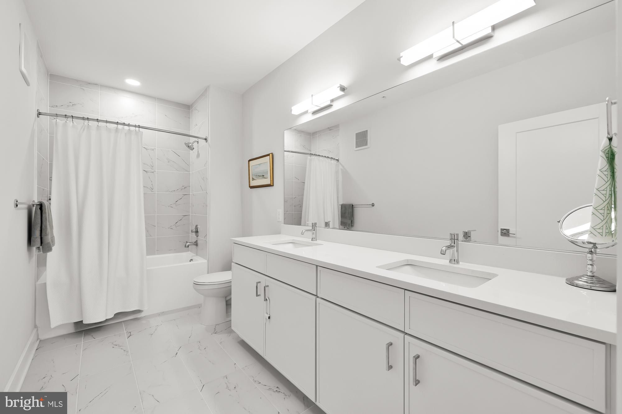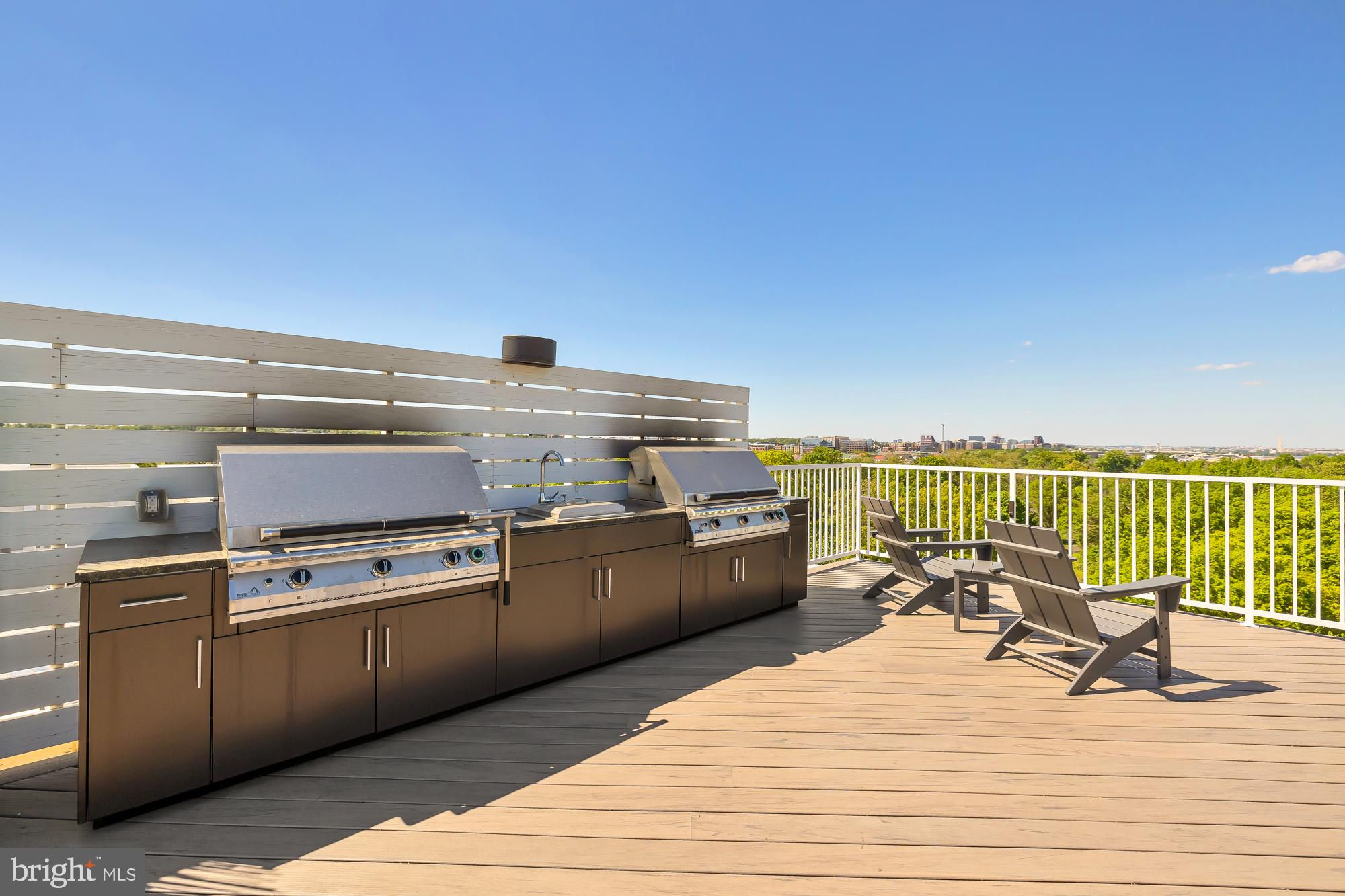 Welcome to 625 Slaters Lane, Unit 104! This is a stunning and sophisticated residence offering an elegant, modern lifestyle in the heart of Alexandria, VA. This exceptional corner unit boasts 1532 square feet of luxury living space, featuring 2 spacious bedrooms + a den and large scale windows that frame breathtaking 180-degree views of the surrounding greenery, creating a serene and picture-perfect environment. Upon entering, you are greeted by the grandeur of a proper foyer with storage. Before you access the kitchen and main living area you have the 2nd bedroom complete with an en suite to your right. The kitchen is equipped a 5 burner stove, quartz counter tops, and a large pantry with plenty of cabinet space and the perfect breakfast bar accessed from the dining area. The living space is absolutely breathtaking and offers abundant light and space which are perfect for both entertaining or just relaxing. The Primary suite has everything you need to recharge and relax. Walk in closet, En suite, with his and her quartz vanities. The den or additional rec room offers many options, including a TV room, Workout room, Office Space or additional flex space. Residents of this mid rise building enjoy access to an array of upscale amenities, including a full-time concierge, a gym, yoga studio, and a resident's lounge. The common media/recreation room and club house provide additional spaces for relaxation and entertainment. For added convenience, private storage is included, and laundry facilities are available in every unit. This home is truly a haven for those seeking a modern and sophisticated lifestyle, with panoramic views and a sense of tranquility that is unmatched.