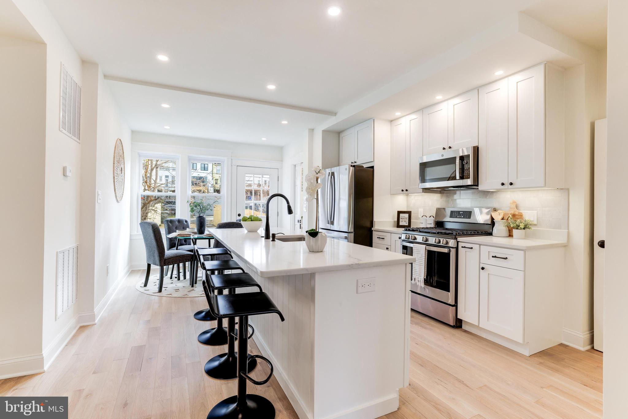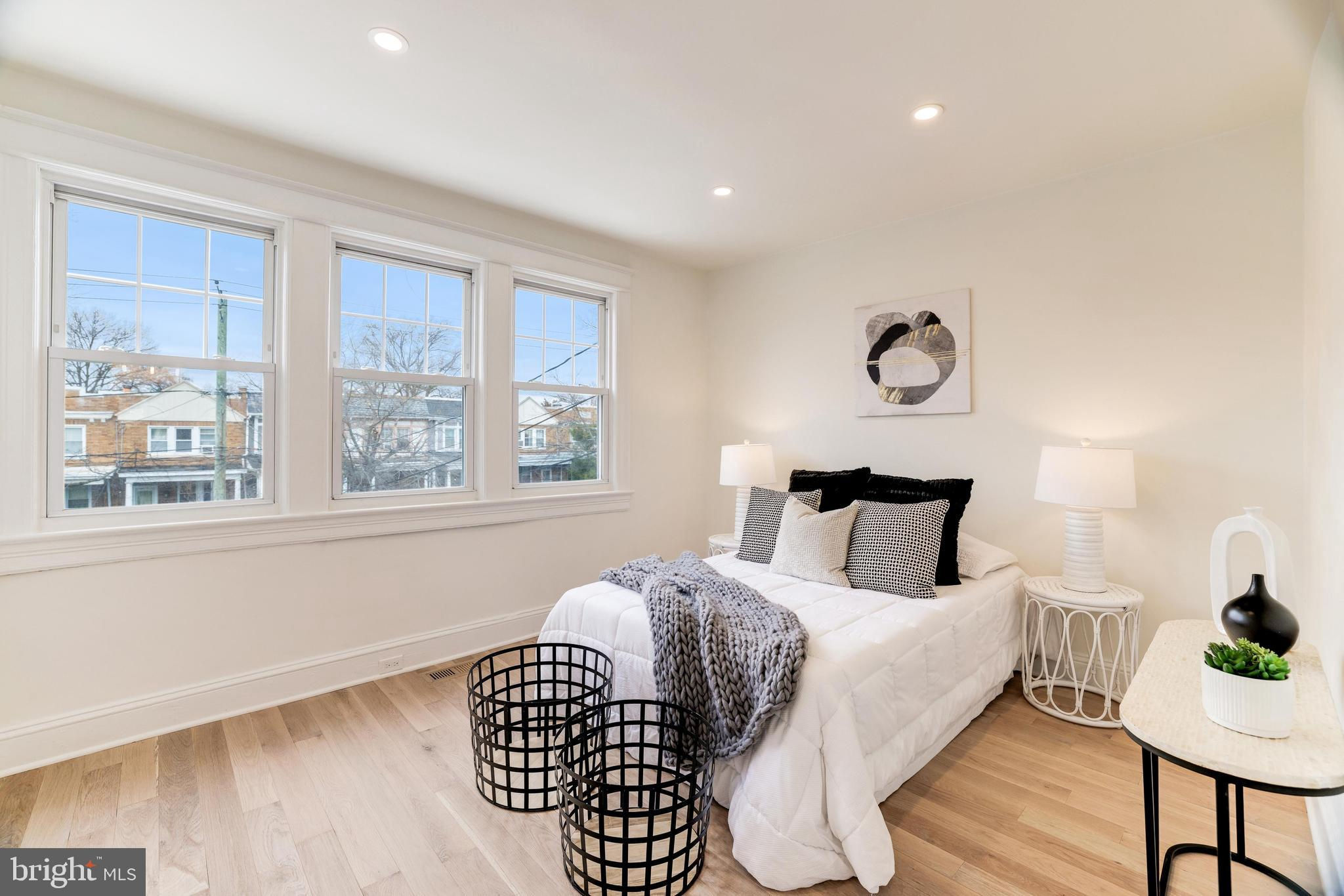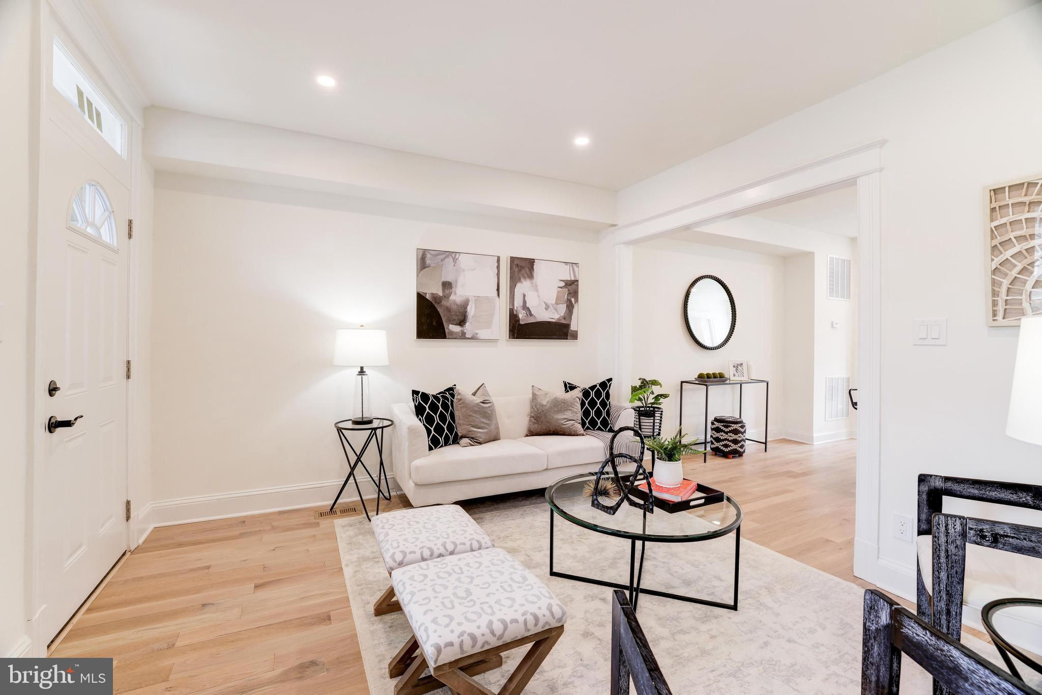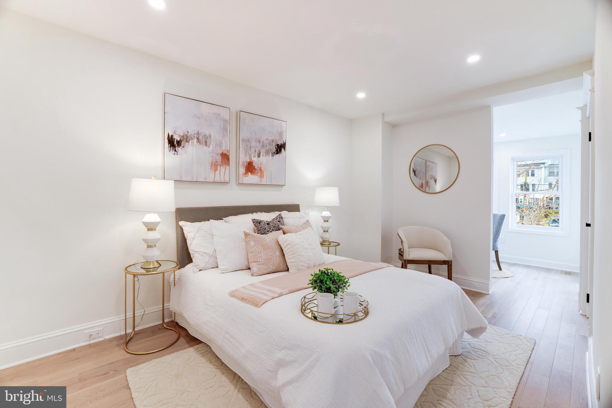 Welcome to 626 Hamilton, a fully renovated three level rowhouse with an extra deep lot on one of Petworth’s most desirable streets! The charming, private front porch leads into a sunny and open main level with both traditional and updated moldings. The warm and inviting living room spills into a modern kitchen with an embarrassment of cabinetry, a stainless steel GE appliance package, and an expansive center island. The eat-in kitchen offers seating at both the island and the rear breakfast nook. The back landing deck leads to a fenced patio, a deep grassy lot, and a two car parking pad. The owner's suite offers unique features, including a separate study, a truly rare walk-in closet, and en suite bathroom. The roomy front bedroom includes easy access to a second upgraded full bathroom. The lower level has a large flex space/third bedroom with its own private full bathroom and laundry facilities. There is a separate exterior access from the lower level to the rear lot. Many more upgrades throughout, including LVP flooring, recessed lighting, and custom tilework. Easy access to commuter roads, Fort Totten Metro, shops and restaurants.