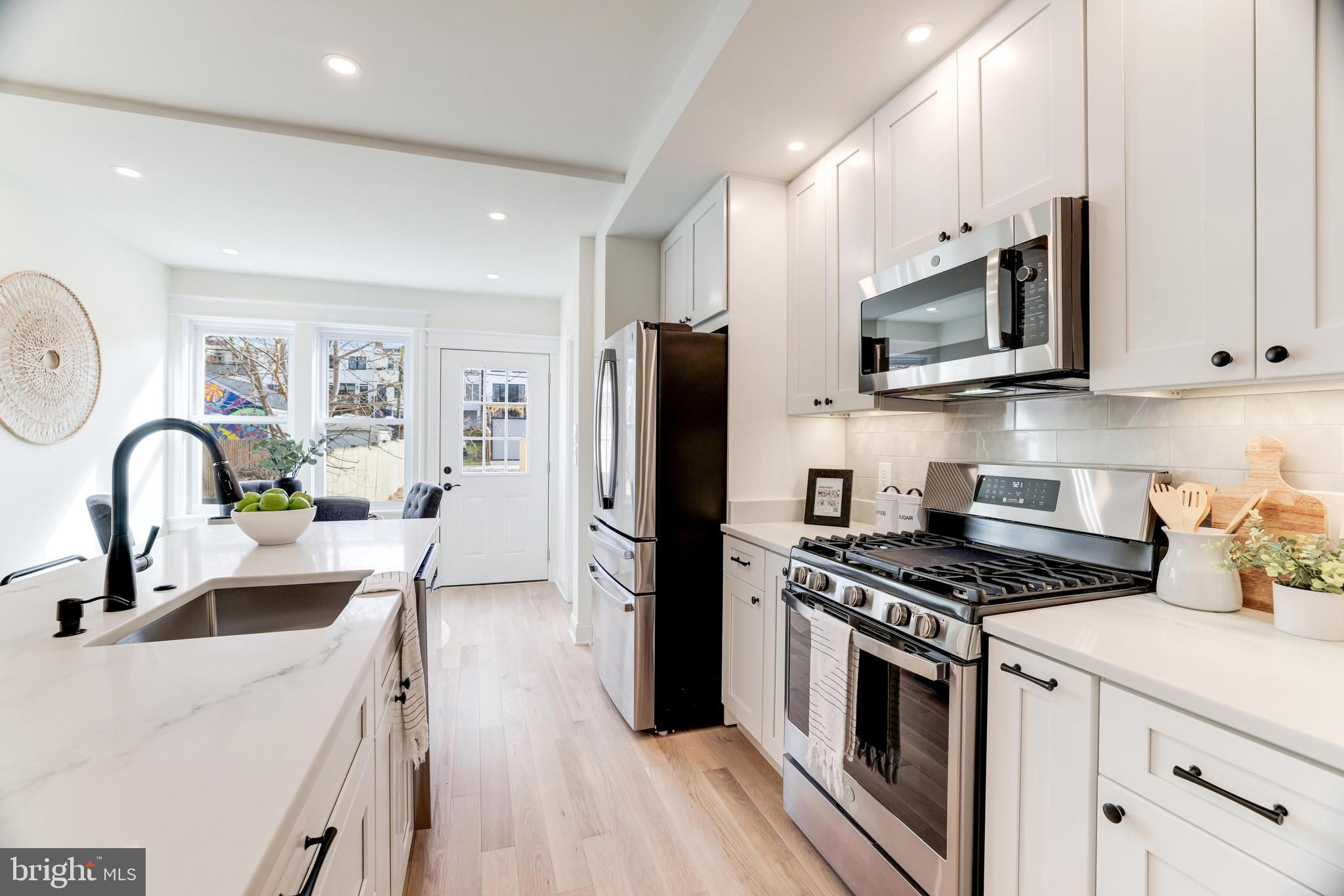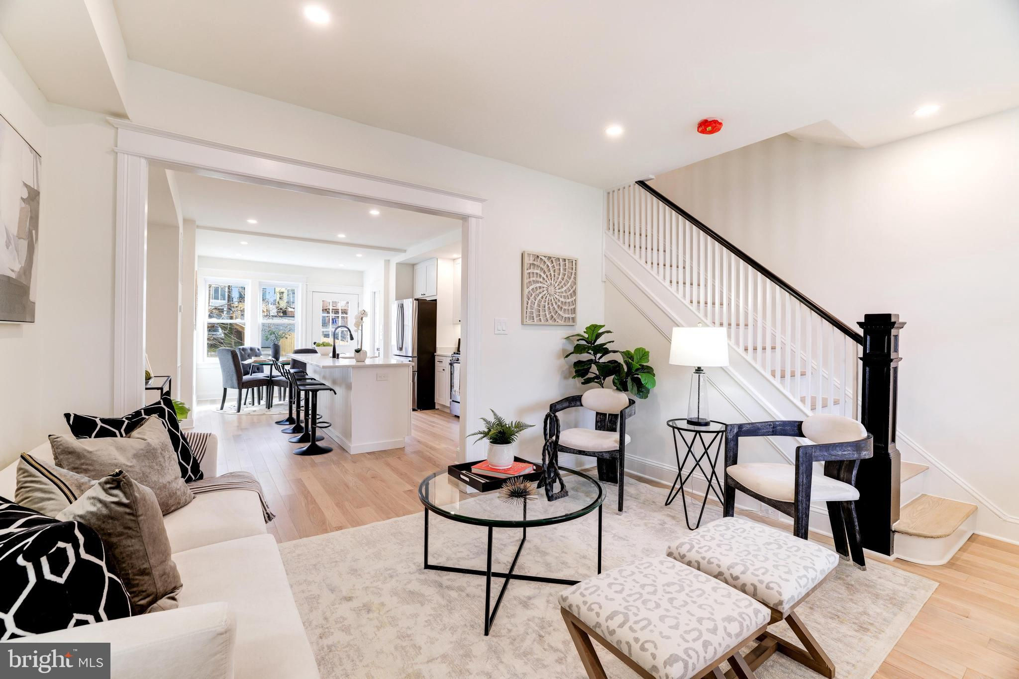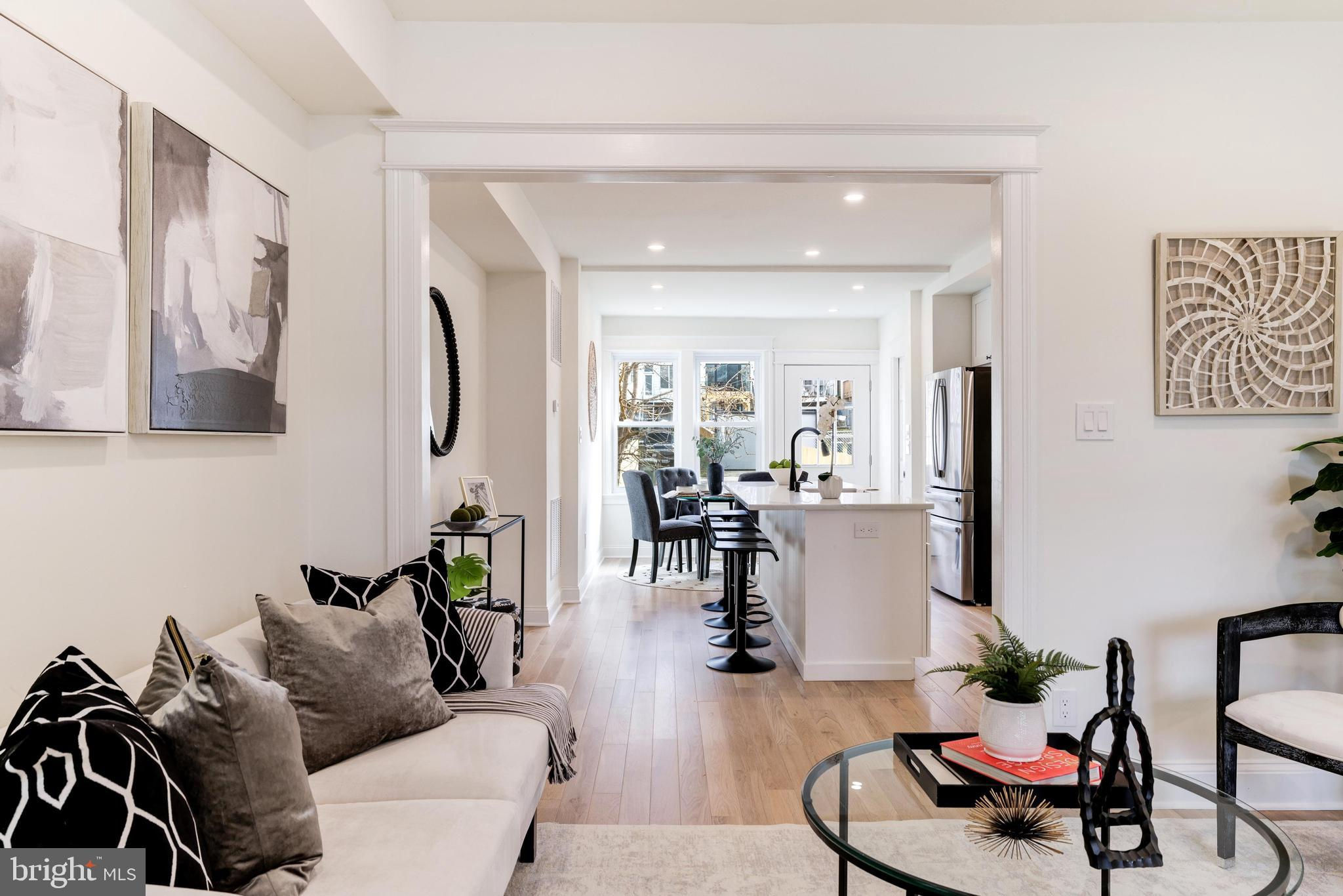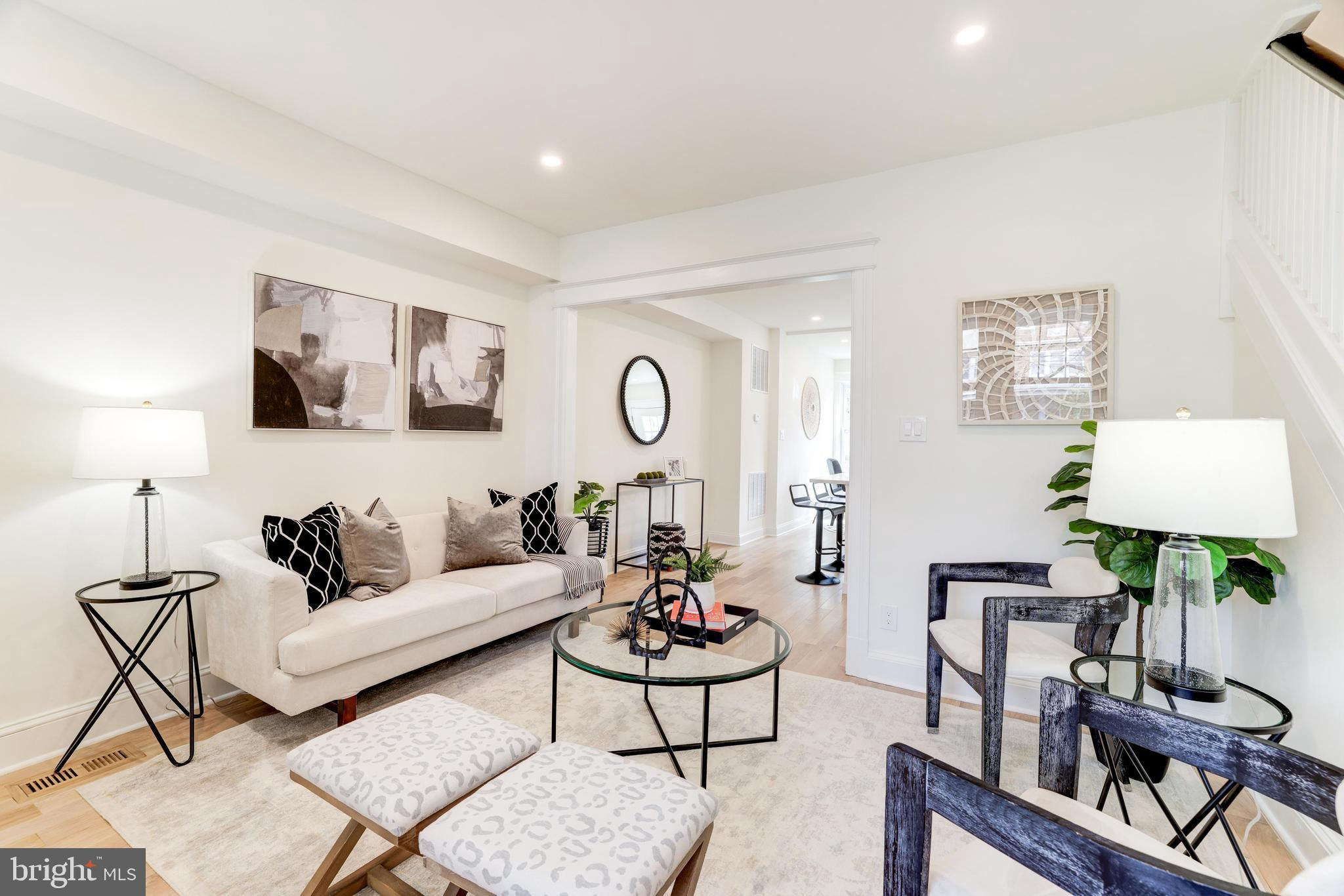 Welcome to 626 Hamilton, a fully renovated three level rowhouse with an extra deep lot on one of Petworth’s most desirable streets! The charming, private front porch leads into a sunny and open main level with both traditional and updated moldings. The warm and inviting living room spills into a modern kitchen with an embarrassment of cabinetry, a stainless steel GE appliance package, and an expansive center island. The eat-in kitchen offers seating at both the island and the rear breakfast nook. The back landing deck leads to a fenced patio, a deep grassy lot, and a two car parking pad. The owner's suite offers unique features, including a separate study, a truly rare walk-in closet, and en suite bathroom. The roomy front bedroom includes easy access to a second upgraded full bathroom. The lower level has a large flex space/third bedroom with its own private full bathroom and laundry facilities. There is a separate exterior access from the lower level to the rear lot. Many more upgrades throughout, including LVP flooring, recessed lighting, and custom tilework. Easy access to commuter roads, Fort Totten Metro, shops and restaurants.