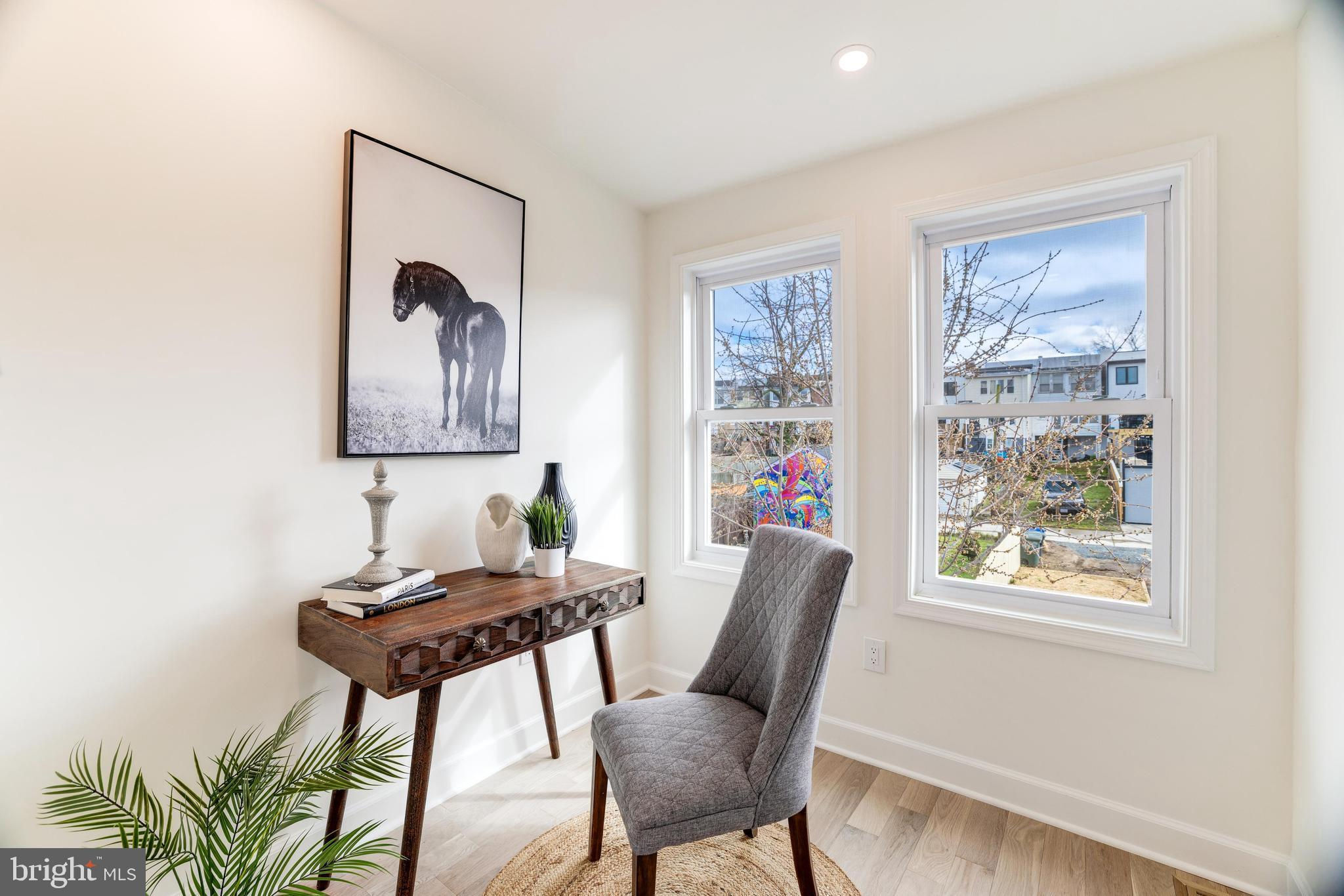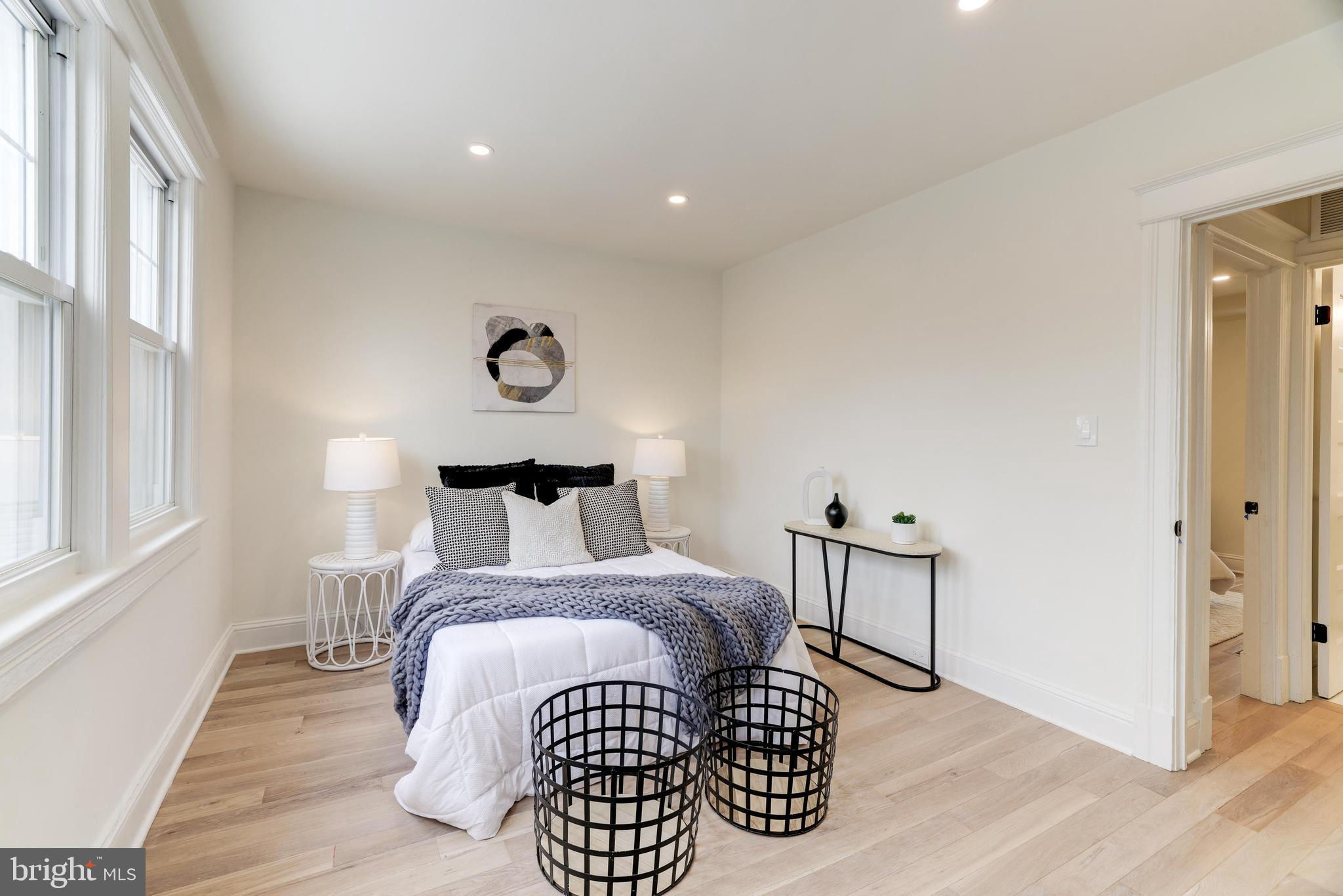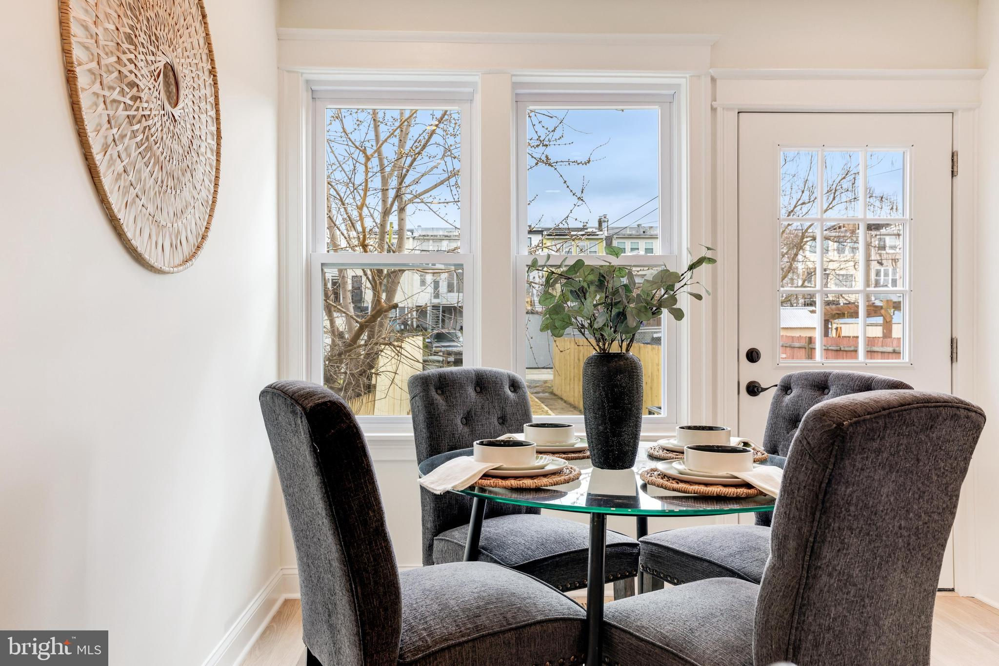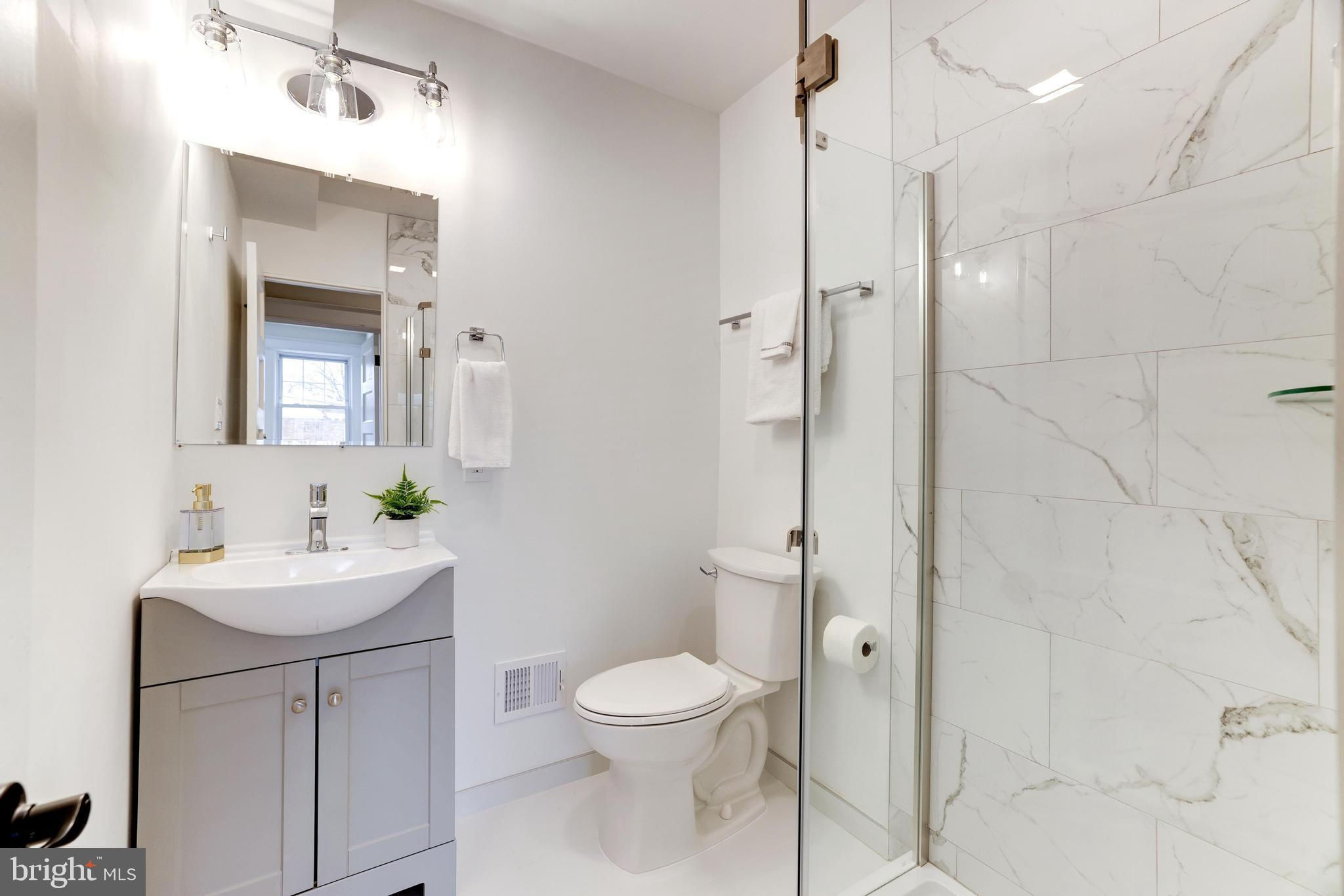 Welcome to 626 Hamilton, a fully renovated three level rowhouse with an extra deep lot on one of Petworth’s most desirable streets! The charming, private front porch leads into a sunny and open main level with both traditional and updated moldings. The warm and inviting living room spills into a modern kitchen with an embarrassment of cabinetry, a stainless steel GE appliance package, and an expansive center island. The eat-in kitchen offers seating at both the island and the rear breakfast nook. The back landing deck leads to a fenced patio, a deep grassy lot, and a two car parking pad. The owner's suite offers unique features, including a separate study, a truly rare walk-in closet, and en suite bathroom. The roomy front bedroom includes easy access to a second upgraded full bathroom. The lower level has a large flex space/third bedroom with its own private full bathroom and laundry facilities. There is a separate exterior access from the lower level to the rear lot. Many more upgrades throughout, including LVP flooring, recessed lighting, and custom tilework. Easy access to commuter roads, Fort Totten Metro, shops and restaurants.