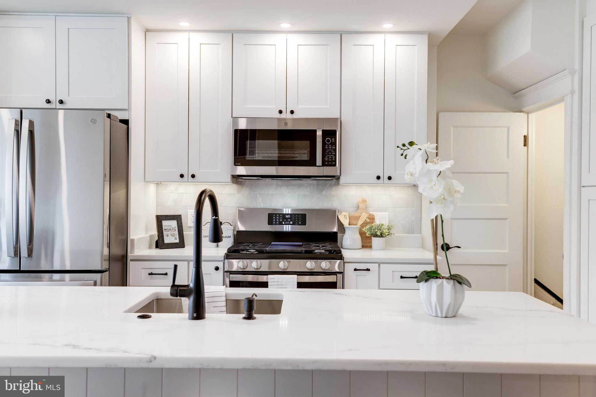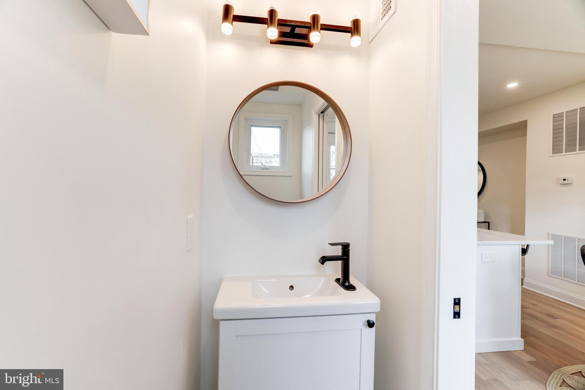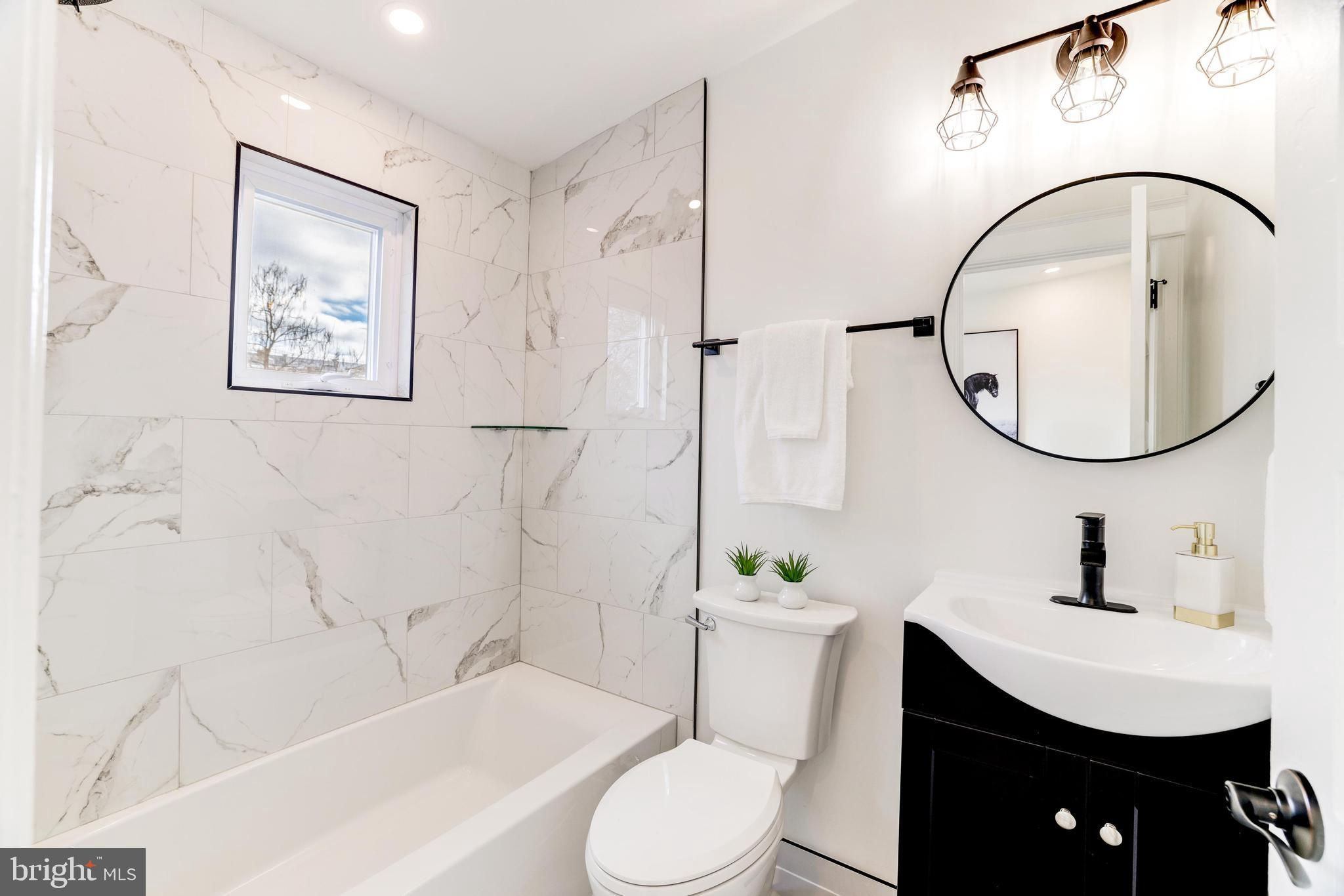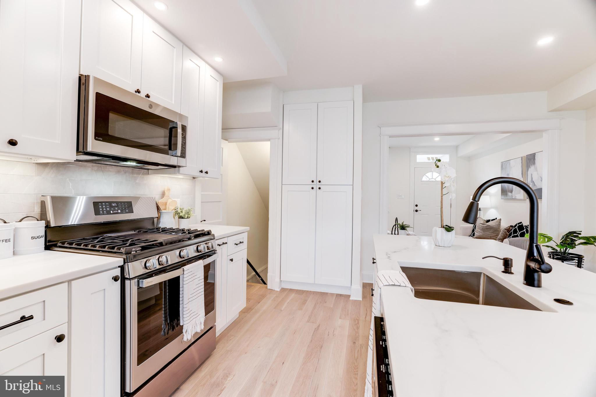 Welcome to 626 Hamilton, a fully renovated three level rowhouse with an extra deep lot on one of Petworth’s most desirable streets! The charming, private front porch leads into a sunny and open main level with both traditional and updated moldings. The warm and inviting living room spills into a modern kitchen with an embarrassment of cabinetry, a stainless steel GE appliance package, and an expansive center island. The eat-in kitchen offers seating at both the island and the rear breakfast nook. The back landing deck leads to a fenced patio, a deep grassy lot, and a two car parking pad. The owner's suite offers unique features, including a separate study, a truly rare walk-in closet, and en suite bathroom. The roomy front bedroom includes easy access to a second upgraded full bathroom. The lower level has a large flex space/third bedroom with its own private full bathroom and laundry facilities. There is a separate exterior access from the lower level to the rear lot. Many more upgrades throughout, including LVP flooring, recessed lighting, and custom tilework. Easy access to commuter roads, Fort Totten Metro, shops and restaurants.