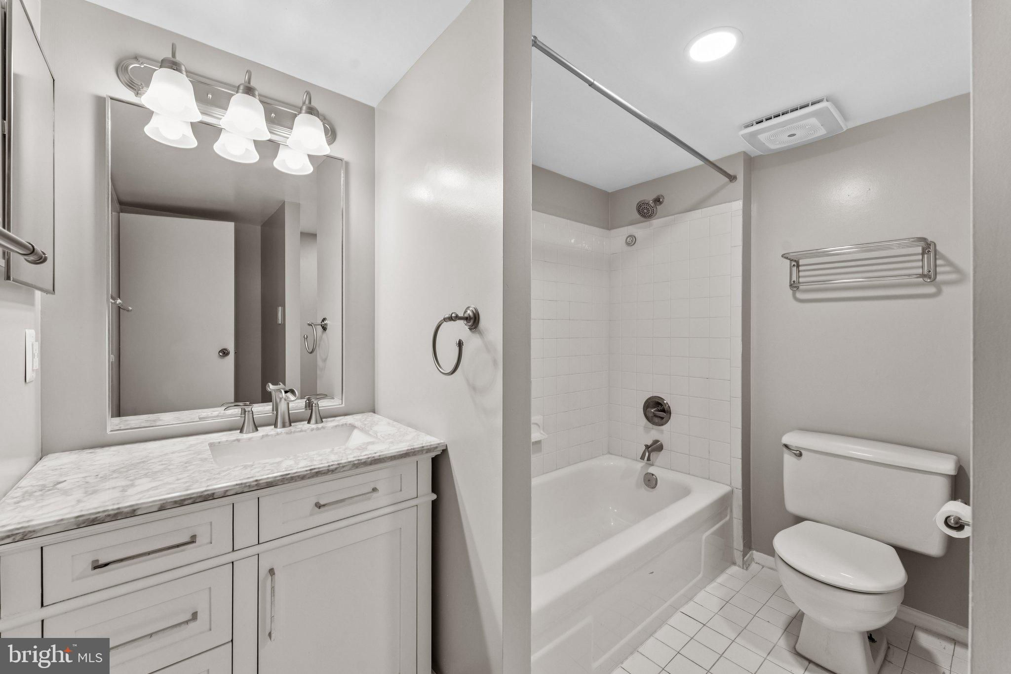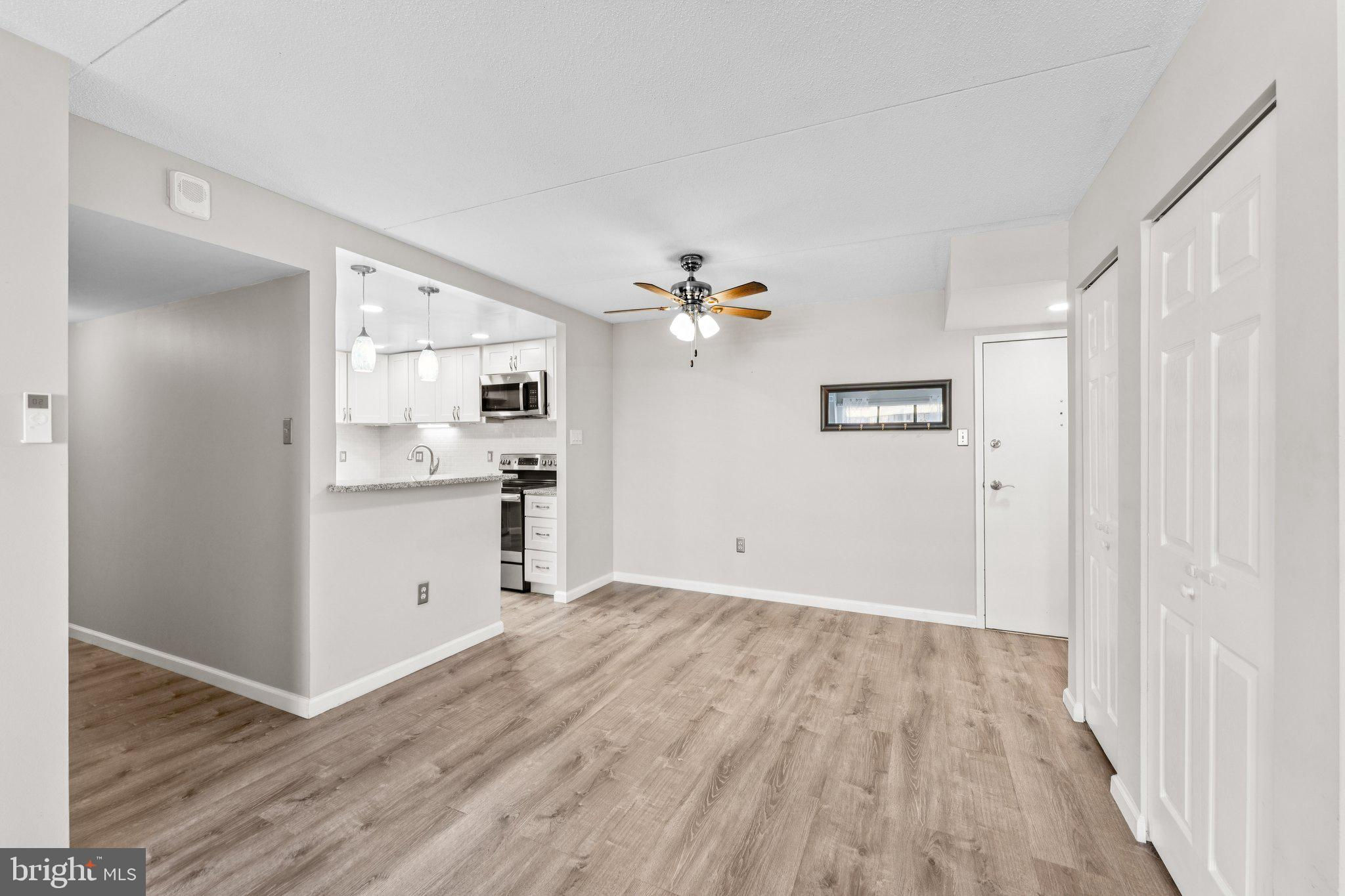 Perched on the 6th floor of The Sentinel of Landmark, this 2 bed, 2 bath condo has been meticulously updated throughout. Enjoy fresh carpet in the bedrooms, whole-home paint (2022), and kitchen upgrades including updated appliances (2019–2022), a touchless faucet, and under-cabinet lighting. The living room features automated Shangri blinds for effortless light control, and both bathrooms were refreshed in 2022 with new vanities, faucets, fixtures, a Bluetooth fan with speakers, and added lighting for all your needs. The layout provides two generous bedrooms, one with an ensuite and ample closet space with built-in shelving. The second bedroom sits opposite the hall bath, and there is a stackable washer and dryer in unit for convenience. Step outside to a private balcony, and take advantage of two parking spaces. Commuting is easy with quick access to I-395, I-495, and Old Town. With the West End development expected to near completion in 2027, this home presents a compelling opportunity in a growing area.