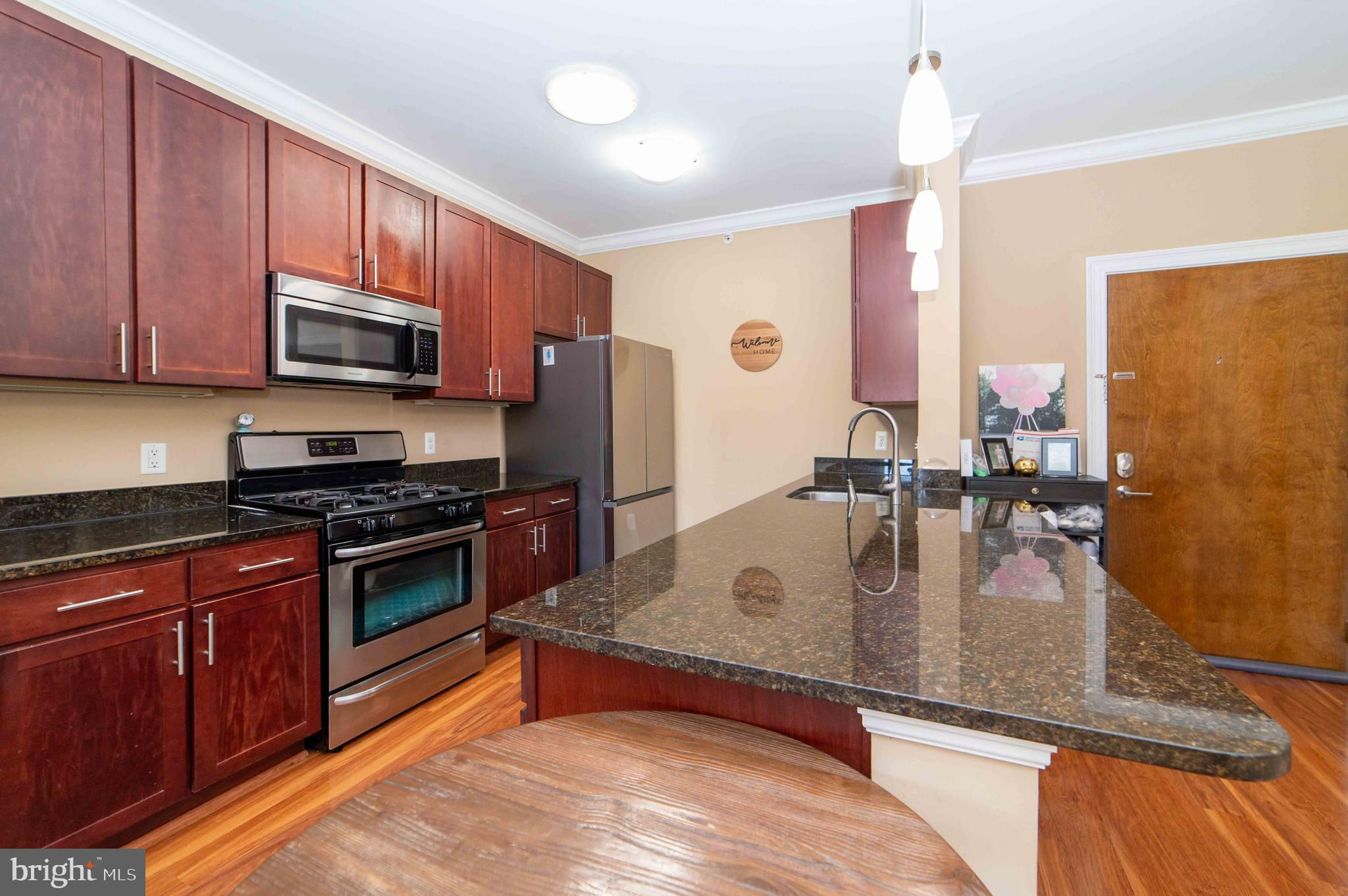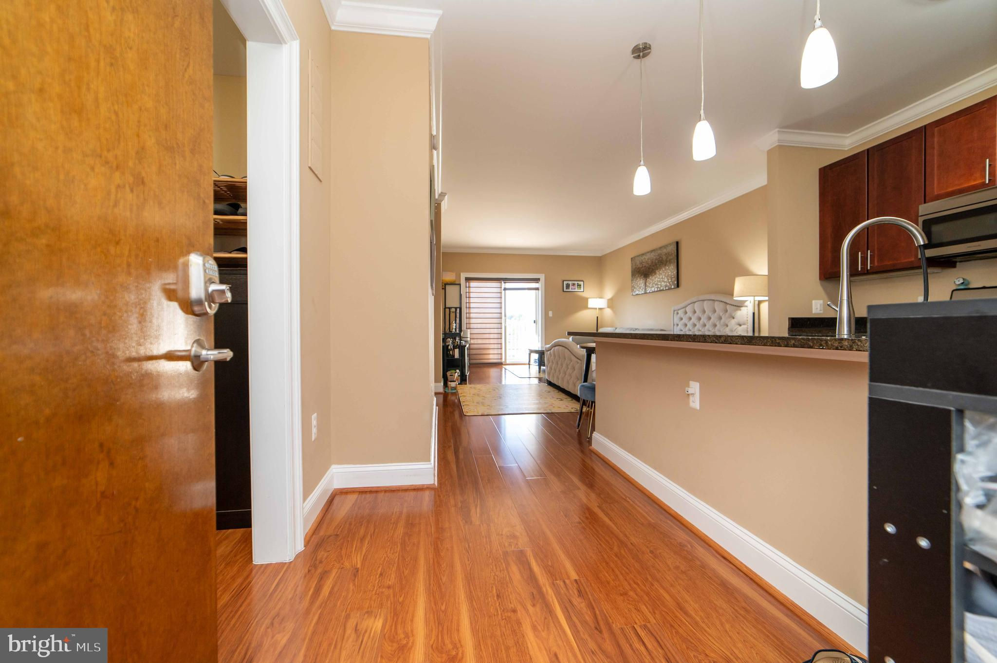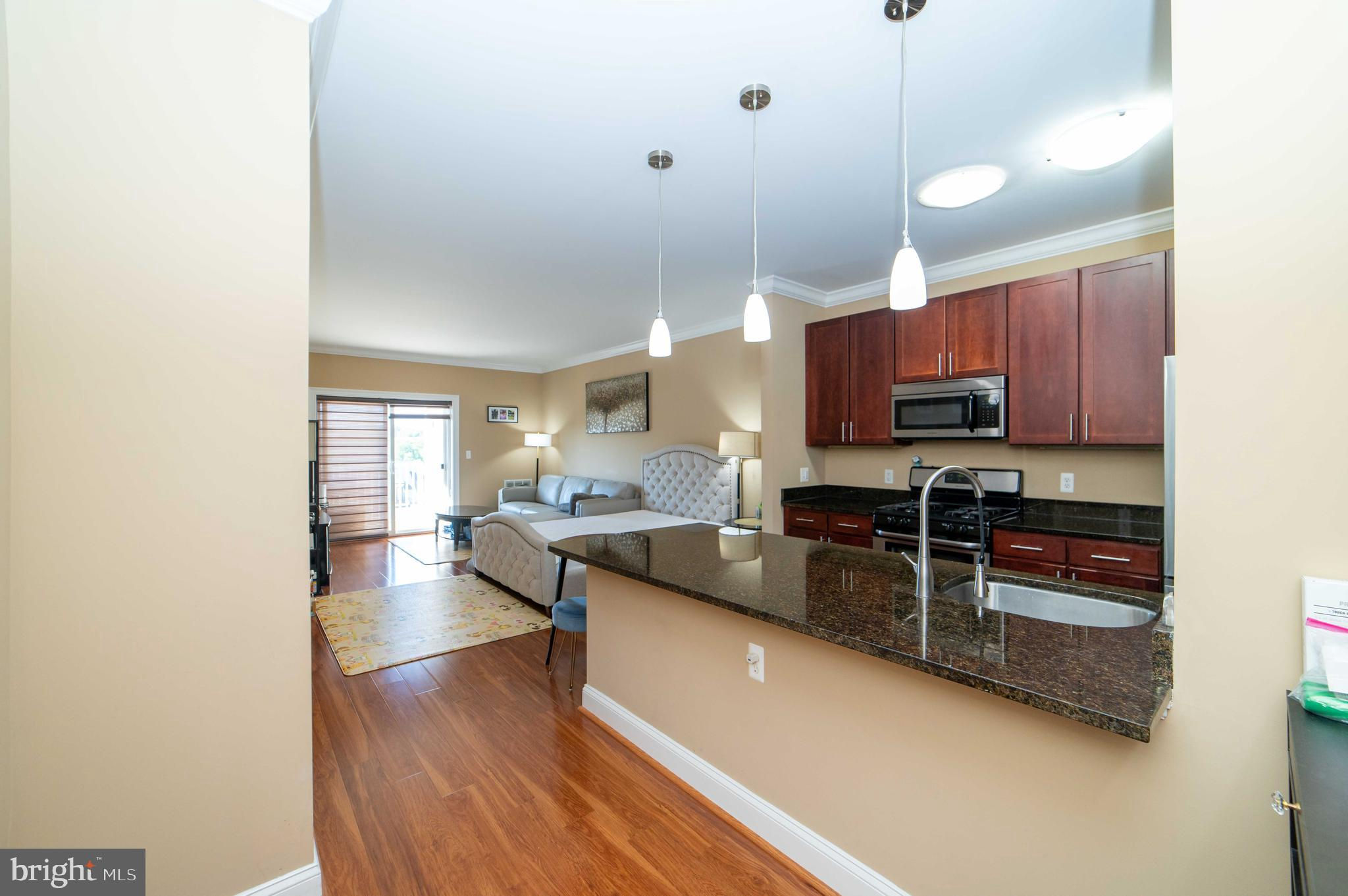This community is equipped with security features that include a gated entrance and an added security code to enter the building. The lockbox is located in front of building and code is required. The code for the gate is also required. Beautiful kitchen with granite countertops, gas cooking, stainless steel appliances, Upgrade Hardwood, Stunning sky lights!! One parking Spot in a Gate garage & Three Storage lockers. Enjoy the building amenities including a grand lobby with part-time concierge, 25-meter lap pool, gym, party room, community grills, tennis courts, dog park, membership with the Bren Mar Recreation Association (pool, tennis courts and ping pong). Commuters dream! Close to I-95, I-495, I-395, Express Lanes to DC, and shuttle to the Van Dorn Metro. Thx 4 Showing!