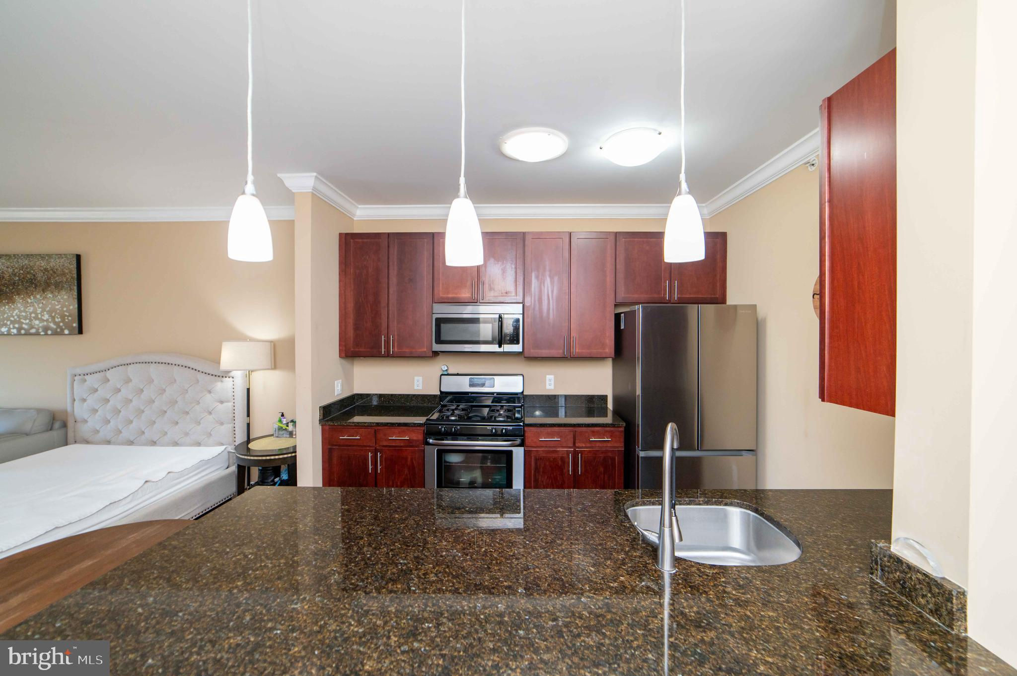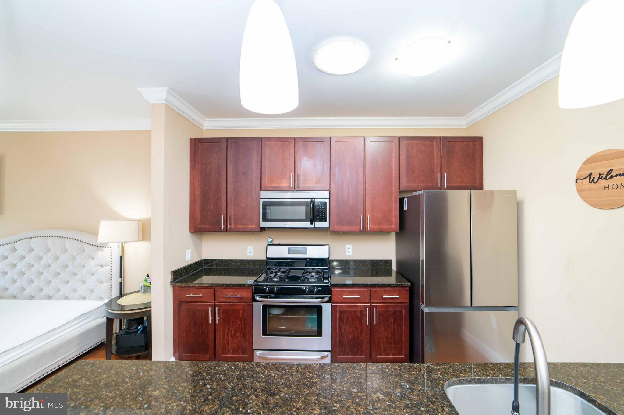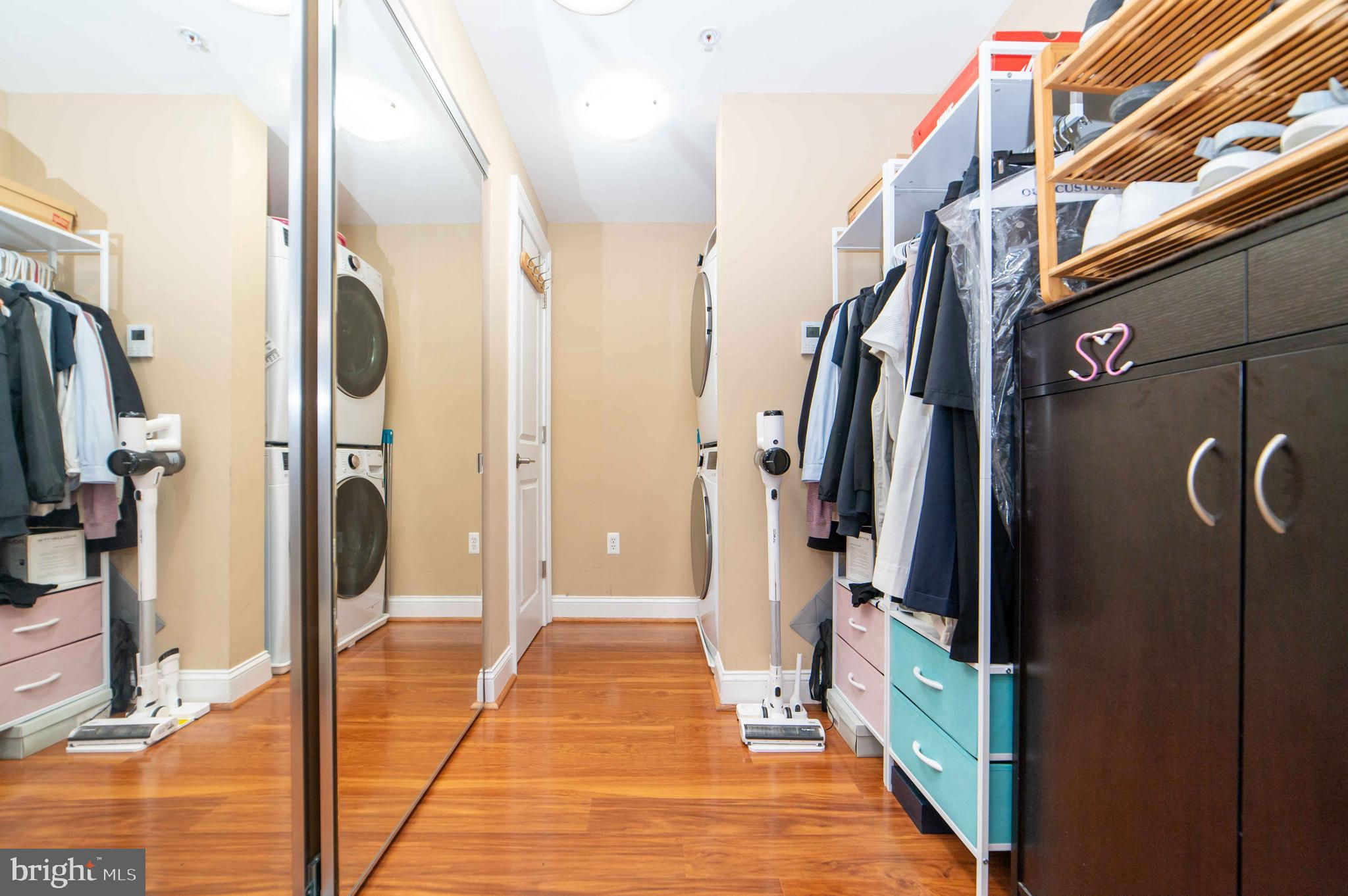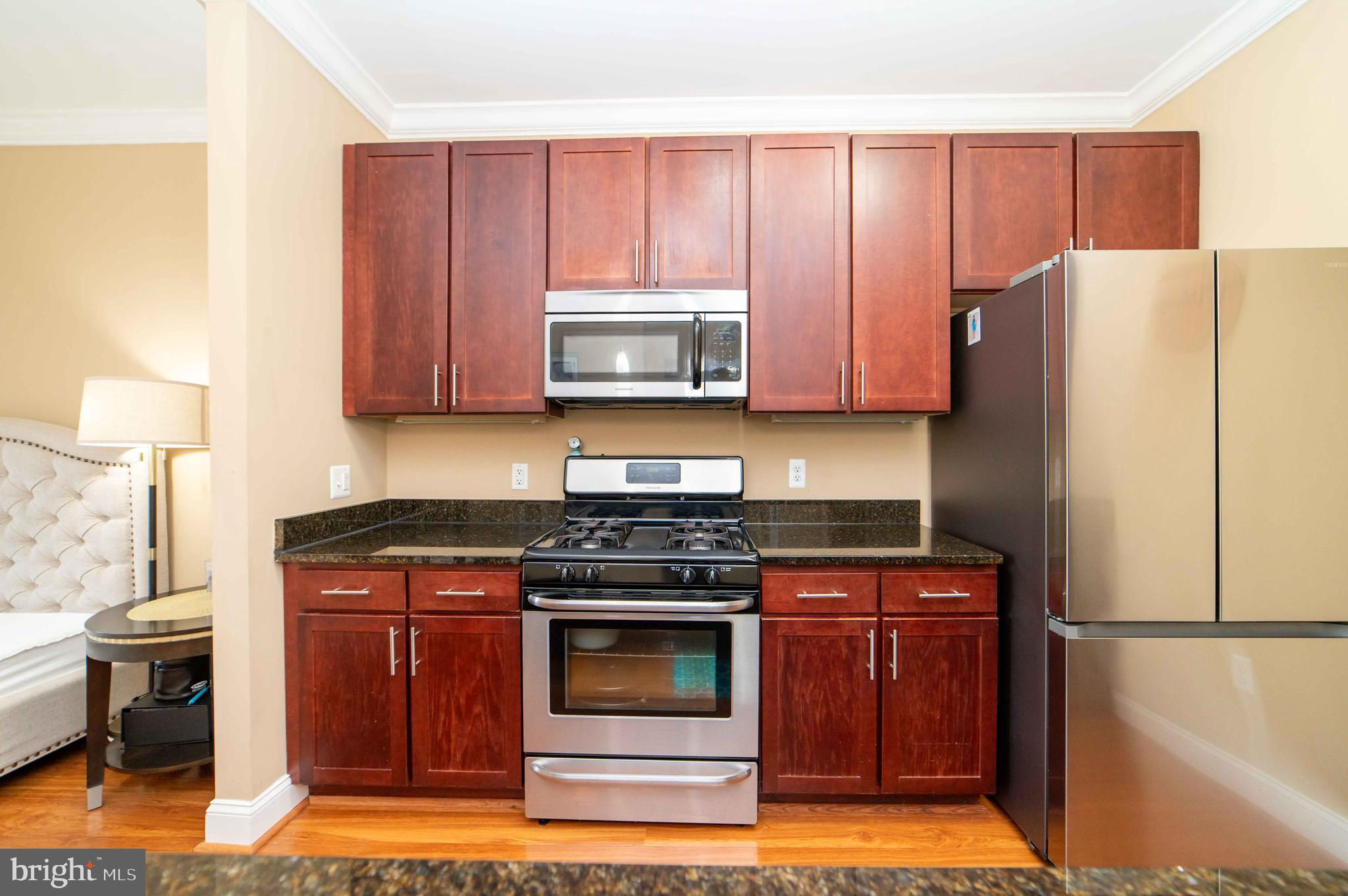 This community is equipped with security features that include a gated entrance and an added security code to enter the building. The lockbox is located in front of building and code is required. The code for the gate is also required. Beautiful kitchen with granite countertops, gas cooking, stainless steel appliances, Upgrade Hardwood, Stunning sky lights!! One parking Spot in a Gate garage & Three Storage lockers. Enjoy the building amenities including a grand lobby with part-time concierge, 25-meter lap pool, gym, party room, community grills, tennis courts, dog park, membership with the Bren Mar Recreation Association (pool, tennis courts and ping pong). Commuters dream! Close to I-95, I-495, I-395, Express Lanes to DC, and shuttle to the Van Dorn Metro. Thx 4 Showing!
