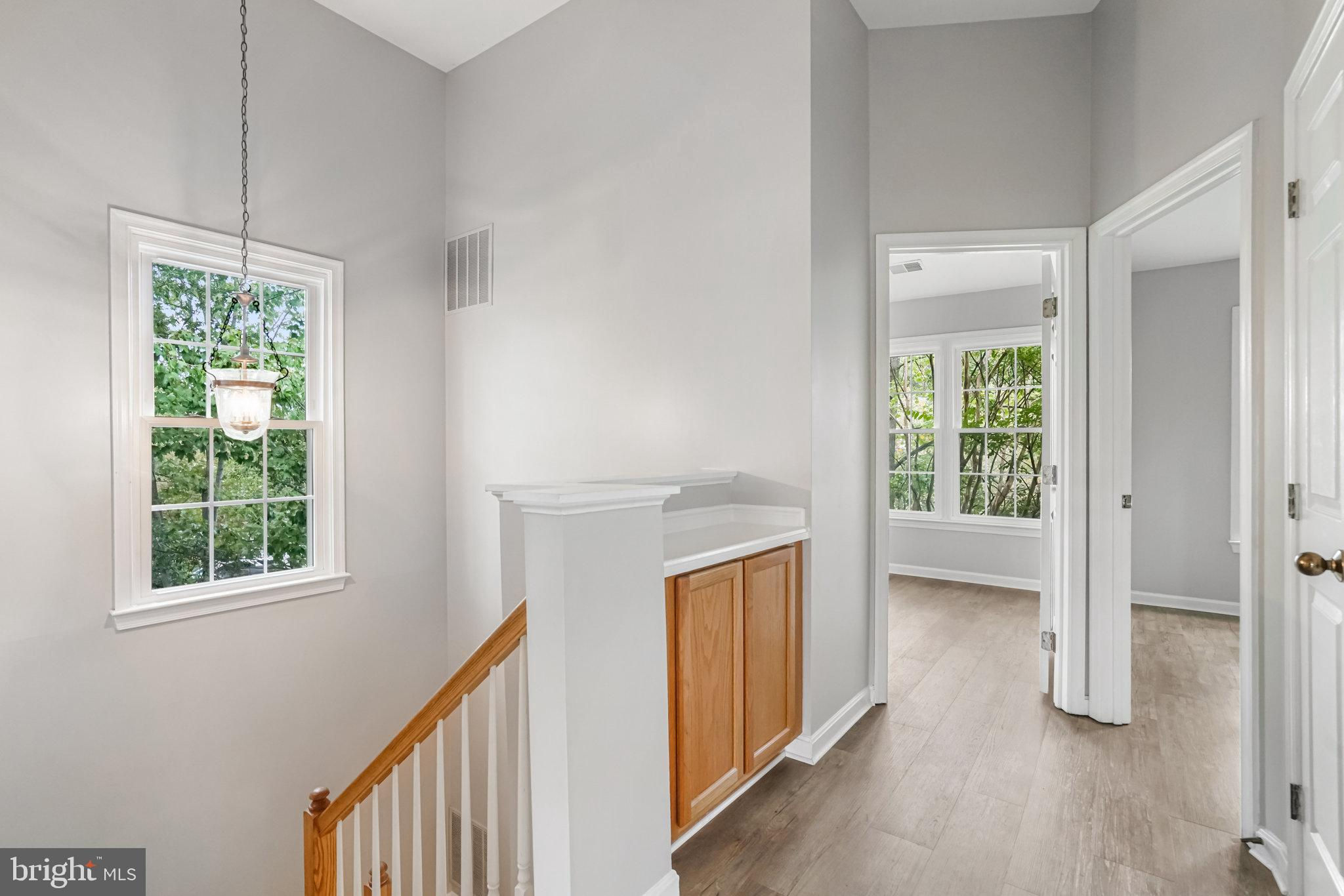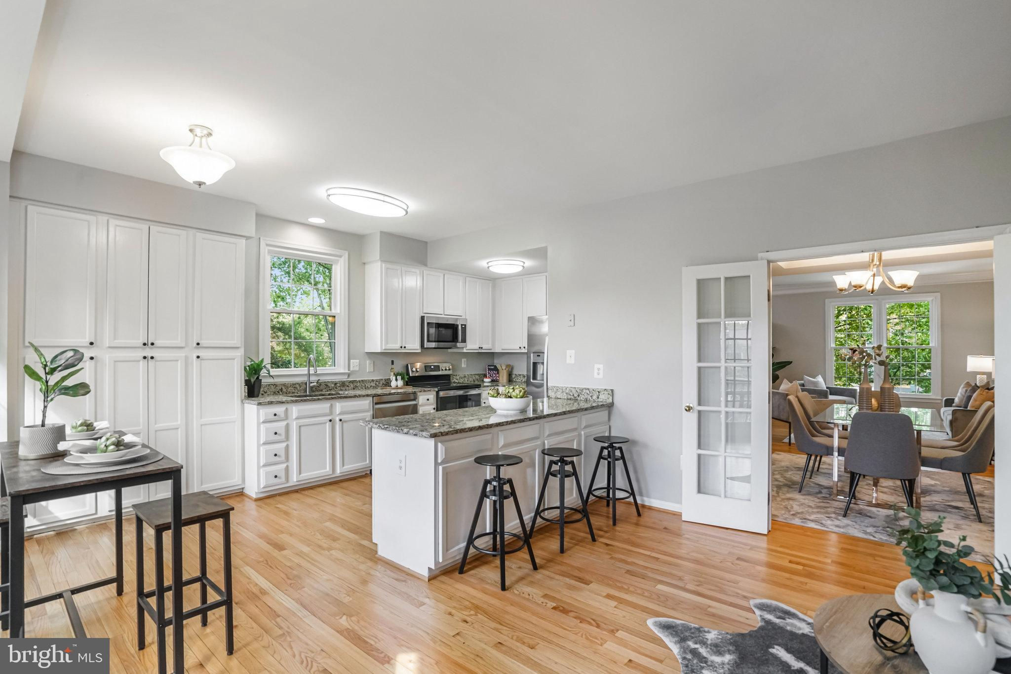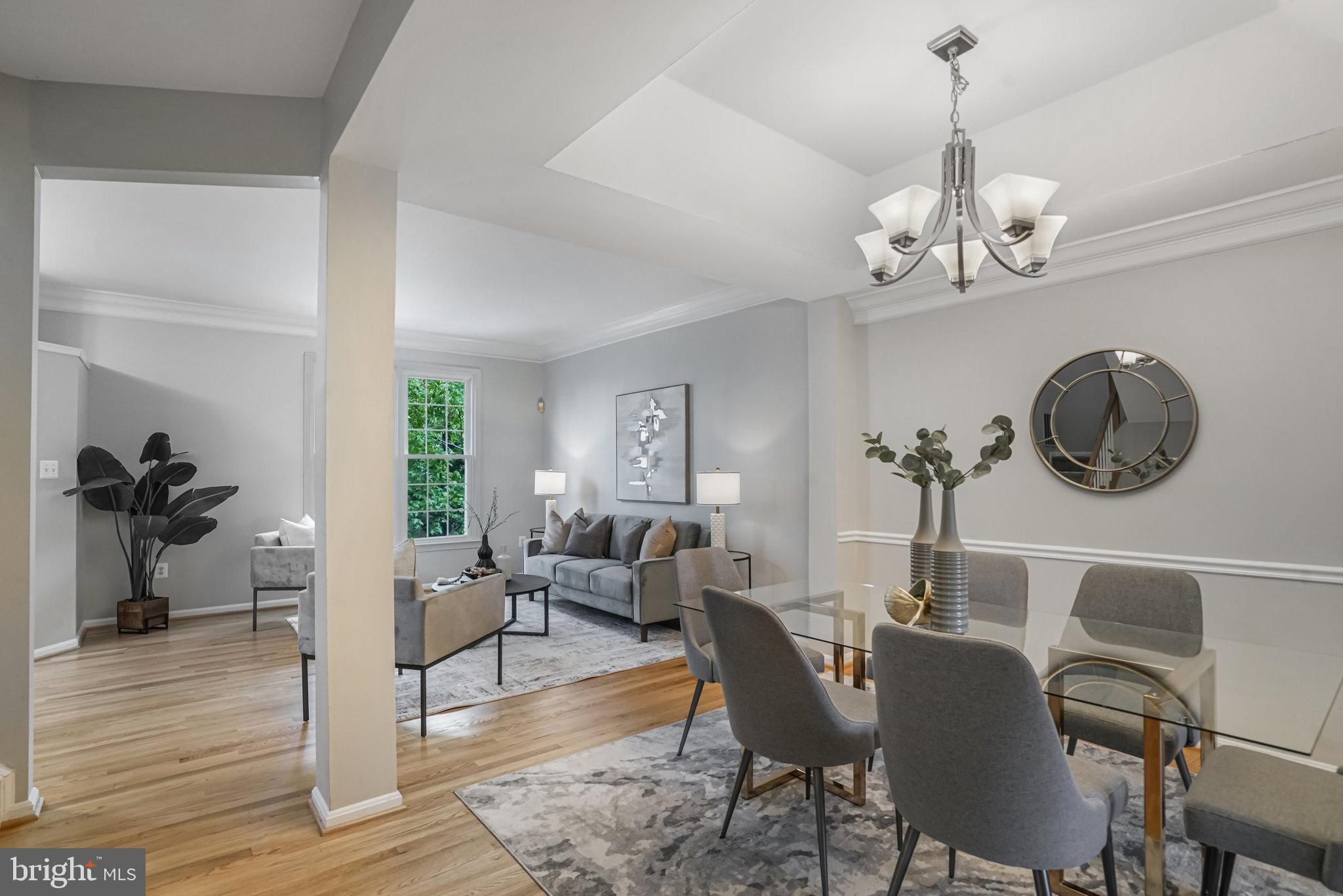 Welcome home to this end-unit townhouse that lives like a detached home! Surrounded by mature trees, this charming home is tucked into the quiet Hidden Glen community in the highly convenient greater Franconia area. From the moment you step inside, it simply feels like home. The main level offers a bright, open living and dining area—perfect for gatherings—with high ceilings and a convenient coat closet and powder room nearby. The kitchen is a chef's dream featuring white cabinets to the ceiling with granite countertops, stainless steel appliances (2022-2024), a spacious peninsula with storage, and plenty of room for dining, whether you prefer a cozy breakfast nook, a full table setup or just an additional cozy living area. The kitchen opens to a lovely deck with composite boards (2023) overlooking the fenced-in backyard (new fence 2023) and serene treed view—ideal for morning coffee or evening relaxation. Upstairs, the generous primary suite with soaring ceiling and seating area bump out also includes a large walk-in closet and ensuite bath. Two additional sunny bedrooms and a full hall bath complete this level. The lower level offers even more flexibility with a spacious rec room featuring a gas fireplace and walkout access to the backyard and lower deck, plus a full bathroom, laundry room, and one-car garage with extra storage and a brand new door (2025). Ready for you to just move in! New windows (2024), recently refinished hardwoods on the main (2025) and easy-to-care-for LVP on the upper and lower levels (2023), newer water heater (2023), gutter guards (2021) and roof (2016). Attic insulation upgraded (2025). This home has been lovingly maintained. You’ll love the unbeatable location—just minutes to Kingstowne and Springfield, with immediate access to I-95, I-395, and I-495 for an easy commute to the Pentagon, National Landing, Alexandria, and DC.