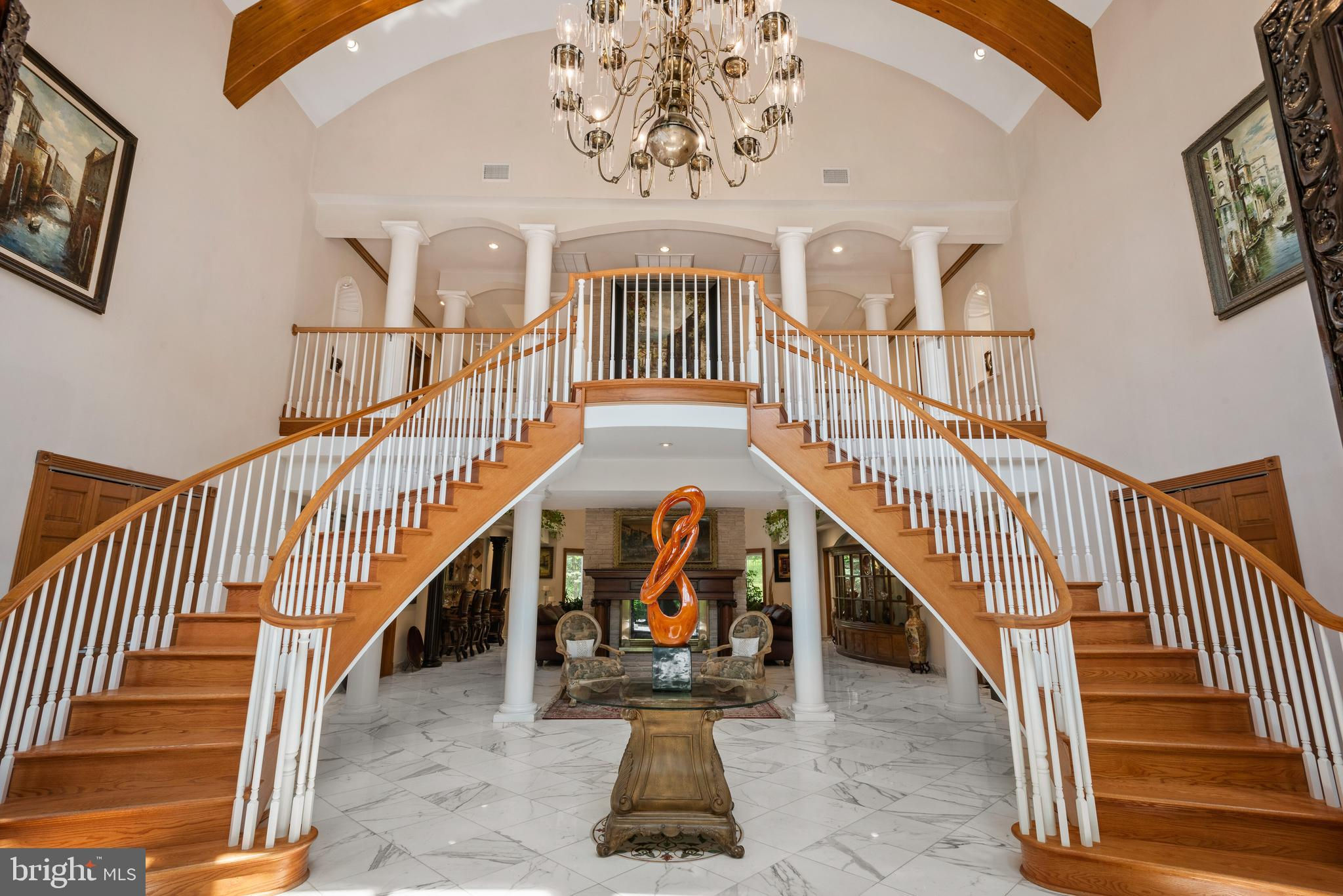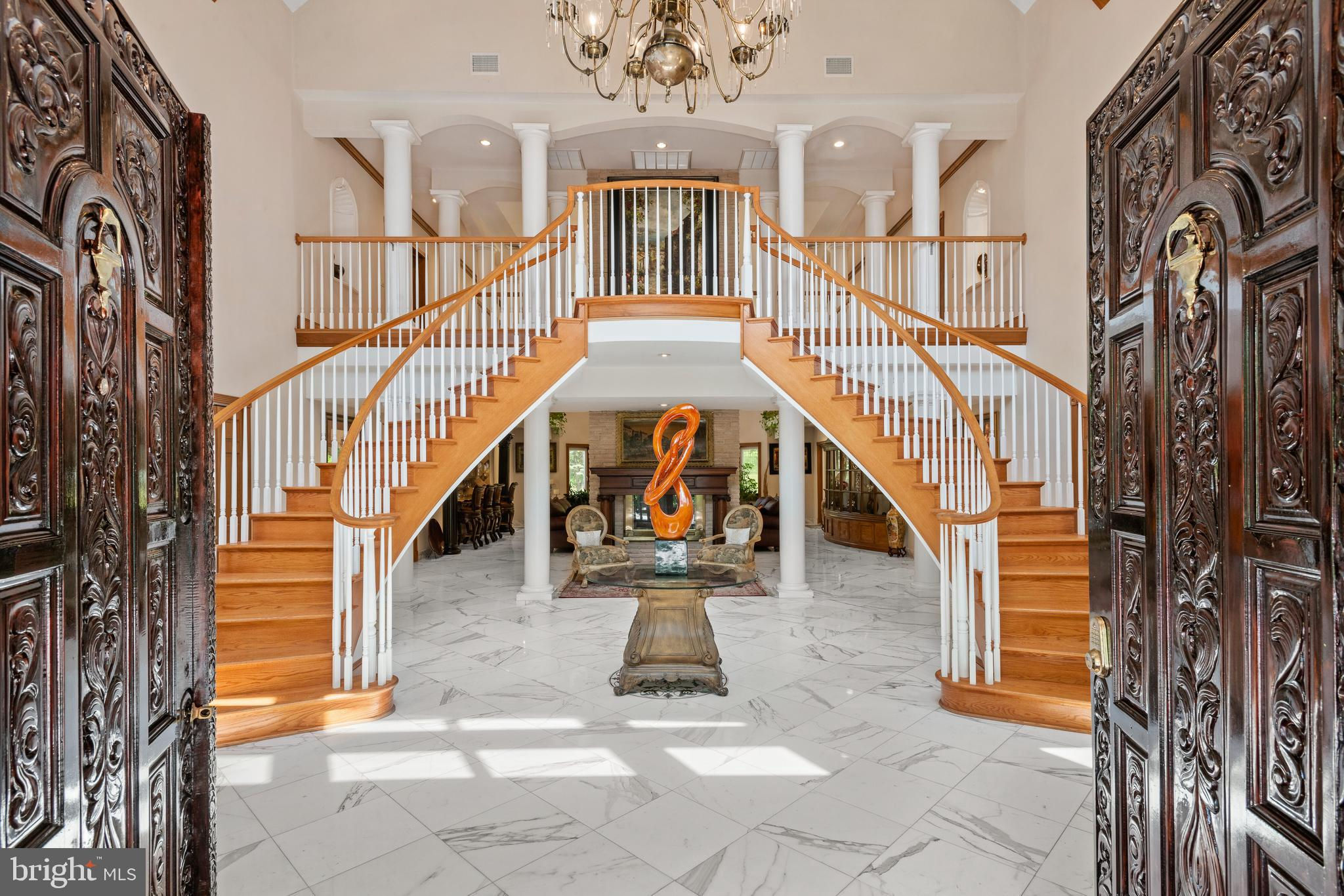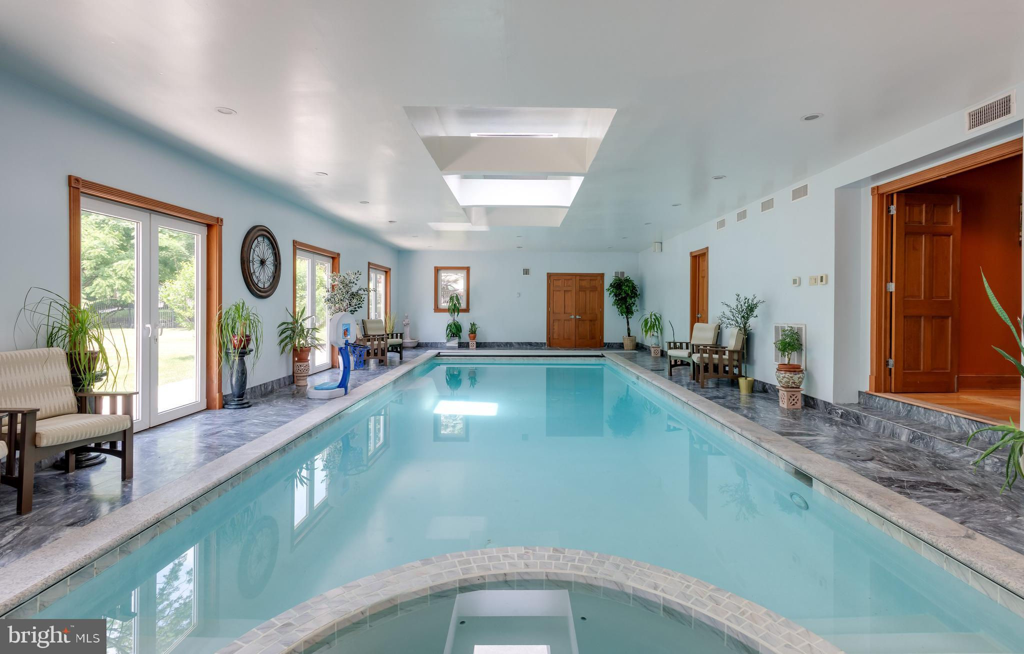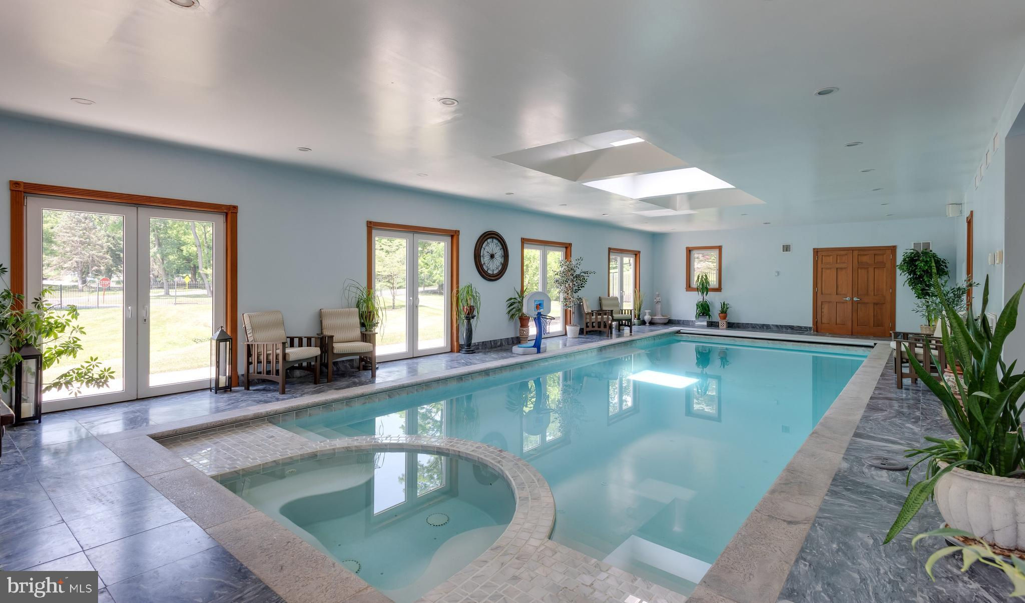 If you are looking to purchase a home, have you ever said to yourself about a house that you like, I just wish the kitchen and/or family room was bigger or I wish the bedrooms were larger or had ensuite bathrooms. Or I wish it had a private office with a separate entrance or I wish it had an exercise room-a steam shower, a dance floor, a hot tub and/or a pool? These objections have stopped you from making an offer! Well 635 S. Ithan Ave is an extraordinary home that overcomes all of these objections! It has it all. With a focus on extraordinary properties, Gordon L Todd Associates, Architects & Planners designed this home built by A. L. Hellmann Custom Builders with the best materials many sourced from around the world thus creating a home that is architecturally interesting as well as highly functional. What's more the marble and wood flooring throughout the home has radiant heat! Drive through the gated entrance up the paver driveway and feel an added layer of security and privacy, and a sense of exclusivity. As you approach the front entrance you will note the solid hand carved 6x8 teak wood double doors above which is a portico highlighted by decorative hand carved stone fencing. The large, imported German WERU windows swing and tilt and have eye-catching hand carved stone trim. Once inside you will be wowed by the imported white Italian Calacatta gold marble floors, the soaring 30-foot ceilings, the two-sided fireplace highlighted with hand chiseled stone, 4 magnificent ballroom chandeliers, a dramatic butterfly staircase and a custom-built wet bar. If dramatic is what you like the columns and catwalk above the main floor will be a delight. Sunshine abounds in the great room dining room from the walls of windows melding the outside beauty with the inside beauty. On to the truly gourmet kitchen designed by the owner, a former restauranteur and cook extraordinaire. This space has it all--6 burner GE stove including 2 burner griddle, professional high powered hood vent, twin door Sub-zero Refrigerator, new KitchenAid dishwasher, microwave/oven combo, pot faucet above stove, 2 islands with twin sinks and a separate large pot cleaning sink, granite floors and counter tops, and an abundance of floor to ceiling furniture quality cabinets. Next to the kitchen is and informal powder room and a spacious family room with a gas fireplace. A huge, oversized closet is good for storing away games, puzzles or even being a homework closet! Just off the kitchen is an inside access 3-car garage w/ built in car vacuum & wash station. On the other side of the great room on the main floor is an en-suite bedroom for overnight guests, a private two room office with built-in furniture quality floor to ceiling shelves, an attached full bathroom and a separate entrance. Down the hall is a sitting room that leads to the beautiful indoor 32,000-gallon heated pool with hot tub and granite deck. While the pool is considered an indoor pool there are walls of doors that open to the outside and skylights above giving the feeling of being in an outdoor pool. The second floor consists of two wings-one with the master bedroom suite and the other with the secondary bedrooms and upstairs laundry room. The huge master bedroom suite is equipped with a gas fireplace, a sitting room and two customized separate large closets. The luxurious master bathroom has an oversized shower, a soaking tub, radiant heat flooring, a steam shower., sauna and full gym with white Italian marble on the floors and walls. Bedrooms 2, 3 and 4 feature double closets and en-suite bathrooms. The fully finished basement has an additional bedroom, a pool hall, an 18 seat huge movie theater, music area and dance floor. All with Radnor schools & close to country clubs, shopping and dining!