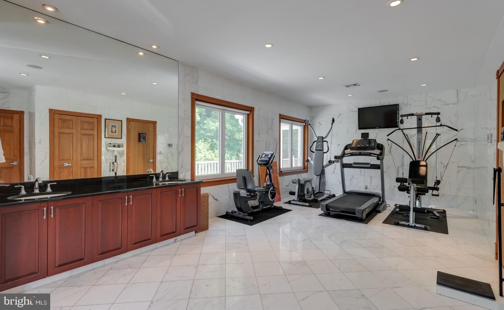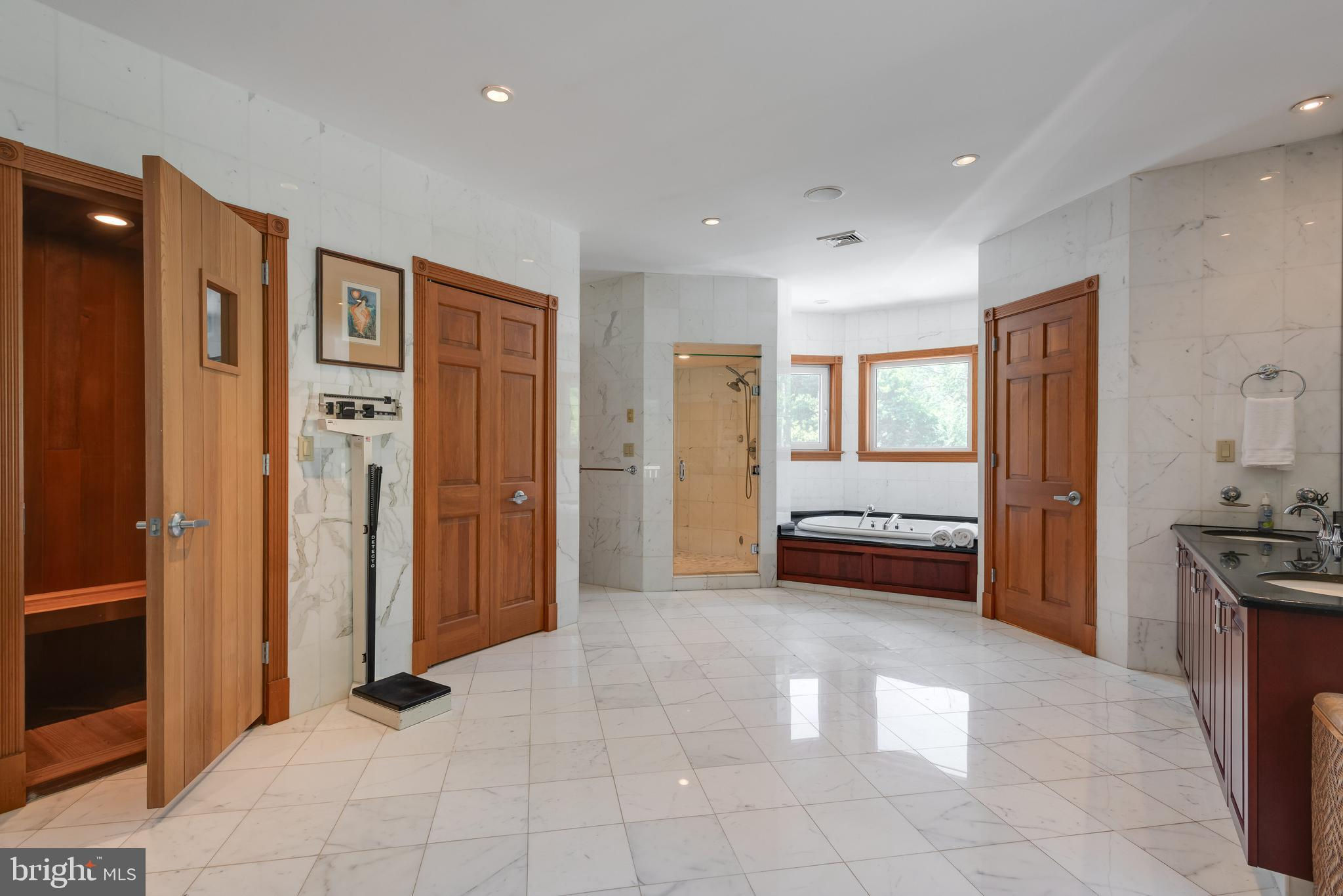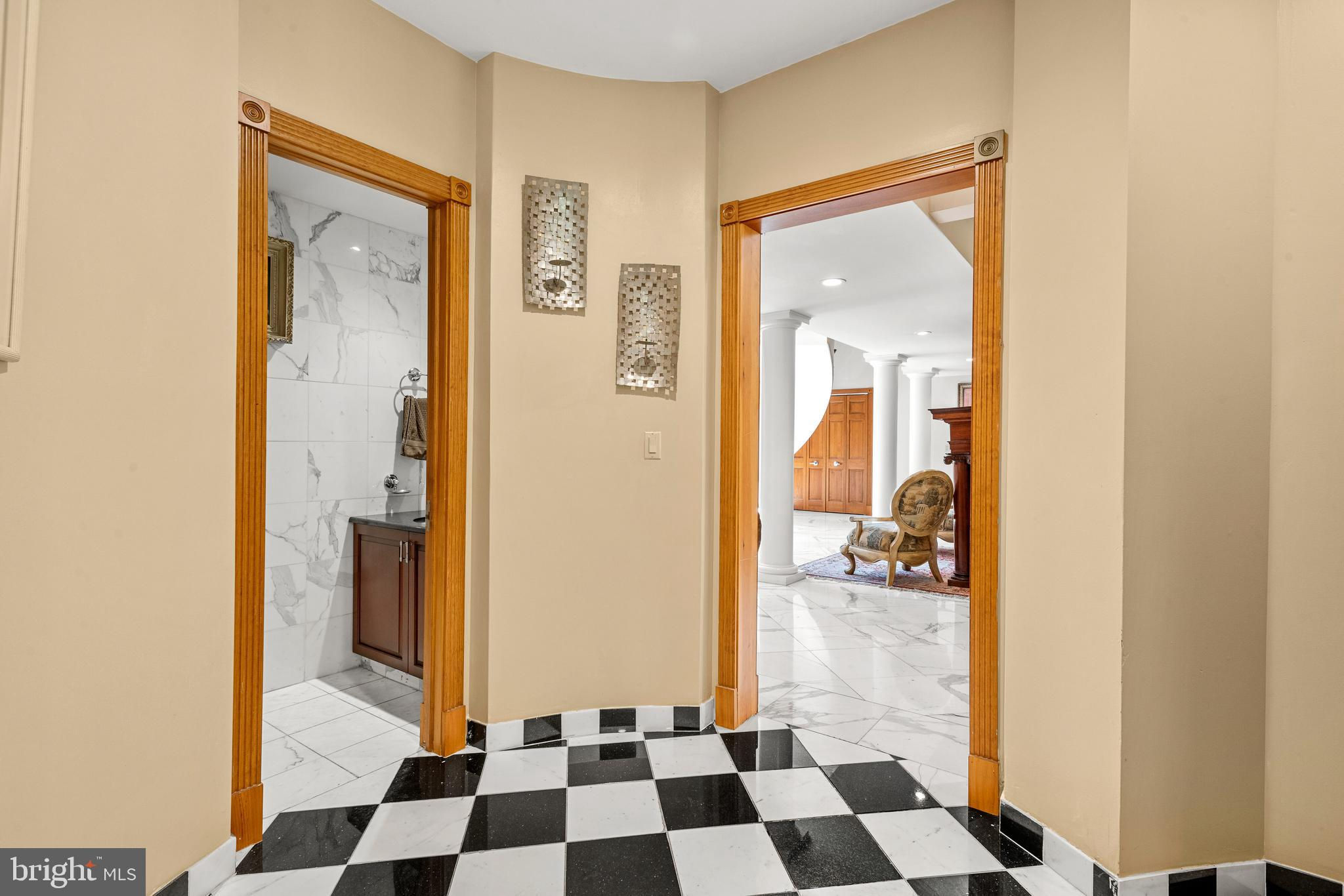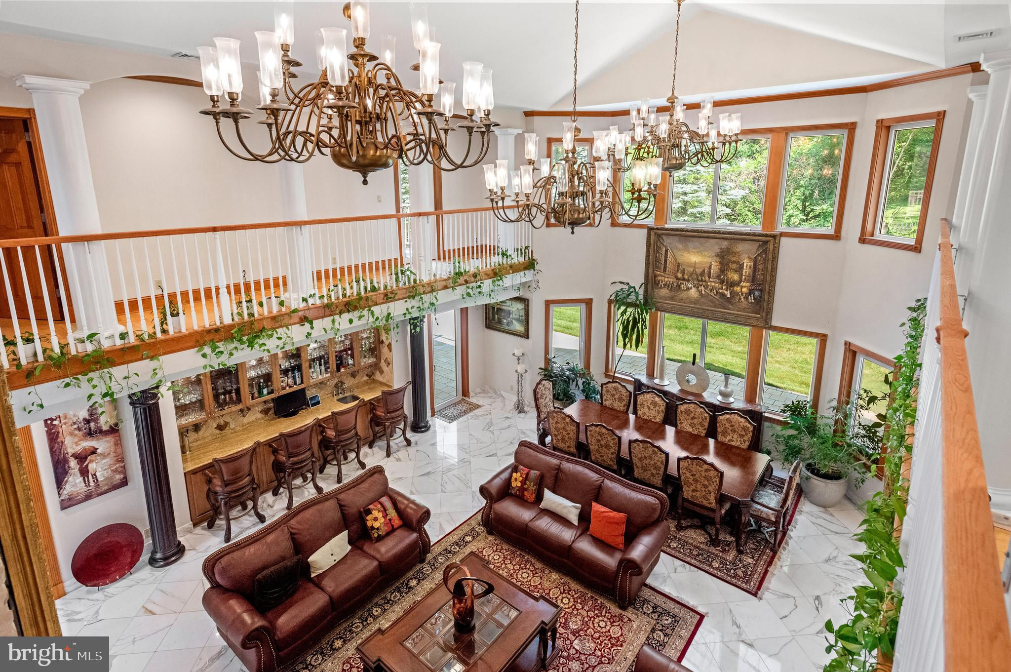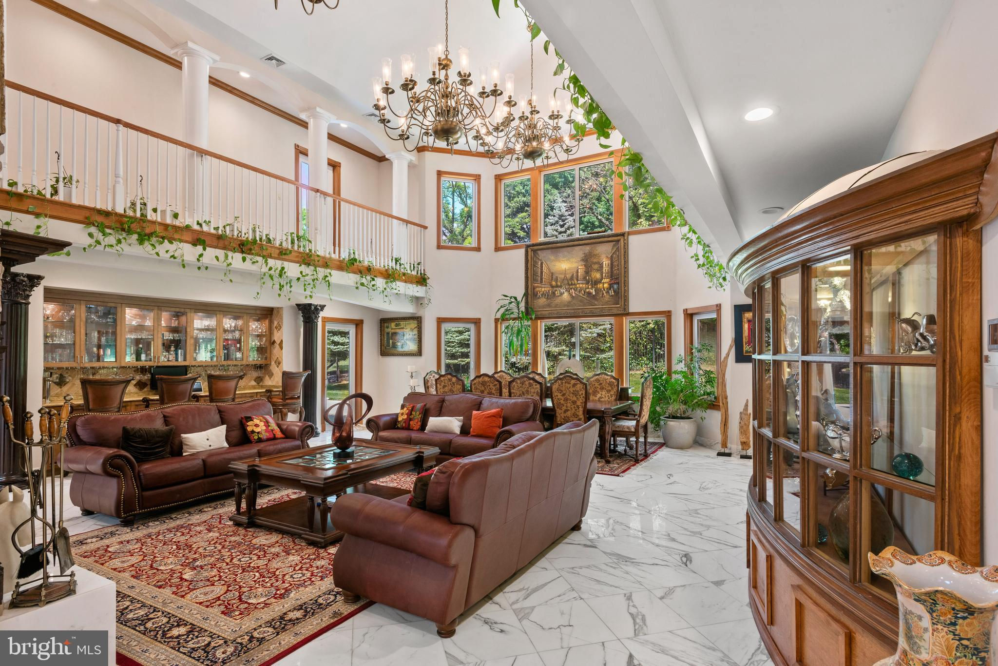 If you are looking to purchase a home, have you ever said to yourself about a house that you like, I just wish the kitchen and/or family room was bigger or I wish the bedrooms were larger or had ensuite bathrooms. Or I wish it had a private office with a separate entrance or I wish it had an exercise room-a steam shower, a dance floor, a hot tub and/or a pool? These objections have stopped you from making an offer! Well 635 S. Ithan Ave is an extraordinary home that overcomes all of these objections! It has it all. With a focus on extraordinary properties, Gordon L Todd Associates, Architects & Planners designed this home built by A. L. Hellmann Custom Builders with the best materials many sourced from around the world thus creating a home that is architecturally interesting as well as highly functional. What's more the marble and wood flooring throughout the home has radiant heat! Drive through the gated entrance up the paver driveway and feel an added layer of security and privacy, and a sense of exclusivity. As you approach the front entrance you will note the solid hand carved 6x8 teak wood double doors above which is a portico highlighted by decorative hand carved stone fencing. The large, imported German WERU windows swing and tilt and have eye-catching hand carved stone trim. Once inside you will be wowed by the imported white Italian Calacatta gold marble floors, the soaring 30-foot ceilings, the two-sided fireplace highlighted with hand chiseled stone, 4 magnificent ballroom chandeliers, a dramatic butterfly staircase and a custom-built wet bar. If dramatic is what you like the columns and catwalk above the main floor will be a delight. Sunshine abounds in the great room dining room from the walls of windows melding the outside beauty with the inside beauty. On to the truly gourmet kitchen designed by the owner, a former restauranteur and cook extraordinaire. This space has it all--6 burner GE stove including 2 burner griddle, professional high powered hood vent, twin door Sub-zero Refrigerator, new KitchenAid dishwasher, microwave/oven combo, pot faucet above stove, 2 islands with twin sinks and a separate large pot cleaning sink, granite floors and counter tops, and an abundance of floor to ceiling furniture quality cabinets. Next to the kitchen is and informal powder room and a spacious family room with a gas fireplace. A huge, oversized closet is good for storing away games, puzzles or even being a homework closet! Just off the kitchen is an inside access 3-car garage w/ built in car vacuum & wash station. On the other side of the great room on the main floor is an en-suite bedroom for overnight guests, a private two room office with built-in furniture quality floor to ceiling shelves, an attached full bathroom and a separate entrance. Down the hall is a sitting room that leads to the beautiful indoor 32,000-gallon heated pool with hot tub and granite deck. While the pool is considered an indoor pool there are walls of doors that open to the outside and skylights above giving the feeling of being in an outdoor pool. The second floor consists of two wings-one with the master bedroom suite and the other with the secondary bedrooms and upstairs laundry room. The huge master bedroom suite is equipped with a gas fireplace, a sitting room and two customized separate large closets. The luxurious master bathroom has an oversized shower, a soaking tub, radiant heat flooring, a steam shower., sauna and full gym with white Italian marble on the floors and walls. Bedrooms 2, 3 and 4 feature double closets and en-suite bathrooms. The fully finished basement has an additional bedroom, a pool hall, an 18 seat huge movie theater, music area and dance floor. All with Radnor schools & close to country clubs, shopping and dining!