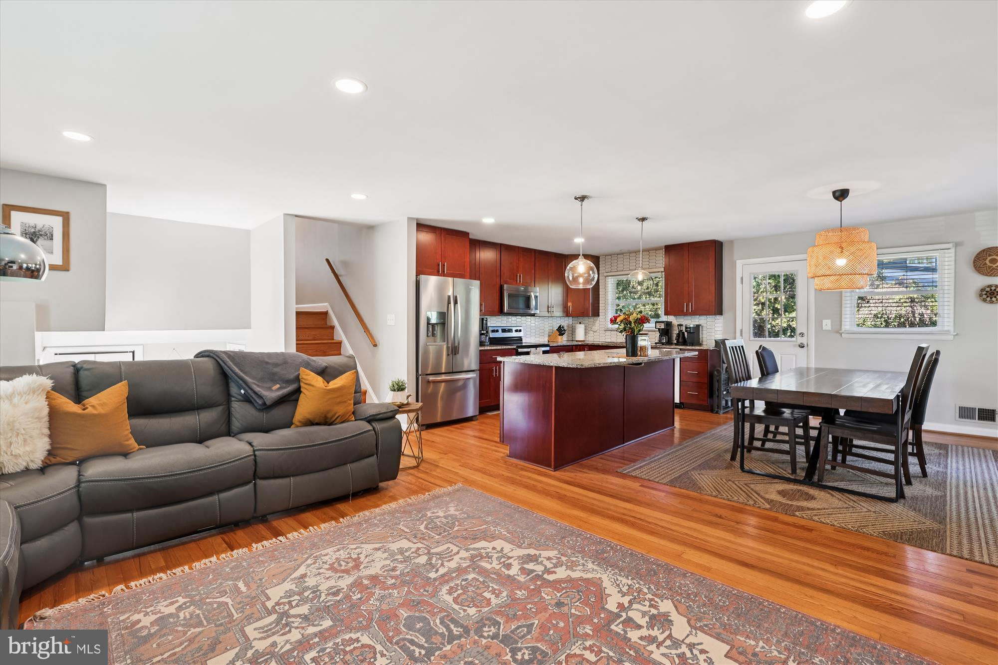 Beautiful Belle Haven Terrace! Everything you are looking for in your new home. Spacious Open Floor Plan! The gourmet kitchen is elegantly equipped with granite, stainless appliances plus the large island for entertaining. The kitchen opens to the dining and living areas with a comfortability rating of 100%. Truly a Great Room with hardwoods and fireplace. Add the Sunroom and Deck overlooking the fully fenced backyard and you have it all. Stunning and comfortable with a natural flow The upper-level Primary Suite includes a custom bath and wall of closets. Add 2 more bedrooms with closet organizers and a full bath. And hardwoods! Entry level has lovely sunny foyer plus the surprise of the 4th bedroom and powder room plus private entrance to the garage. The garage is extra deep with built-in shelving lots of room for tools, bikes, kayaks – lots of sporting goods! The lower level is huge! Open and ready for your personal gym, media room, yoga studio……you name it plus it even has a fireplace! Get ready to open the door to the storage room you’ve always wanted! Imagine 21 X 11 with windows and an outside entrance.
