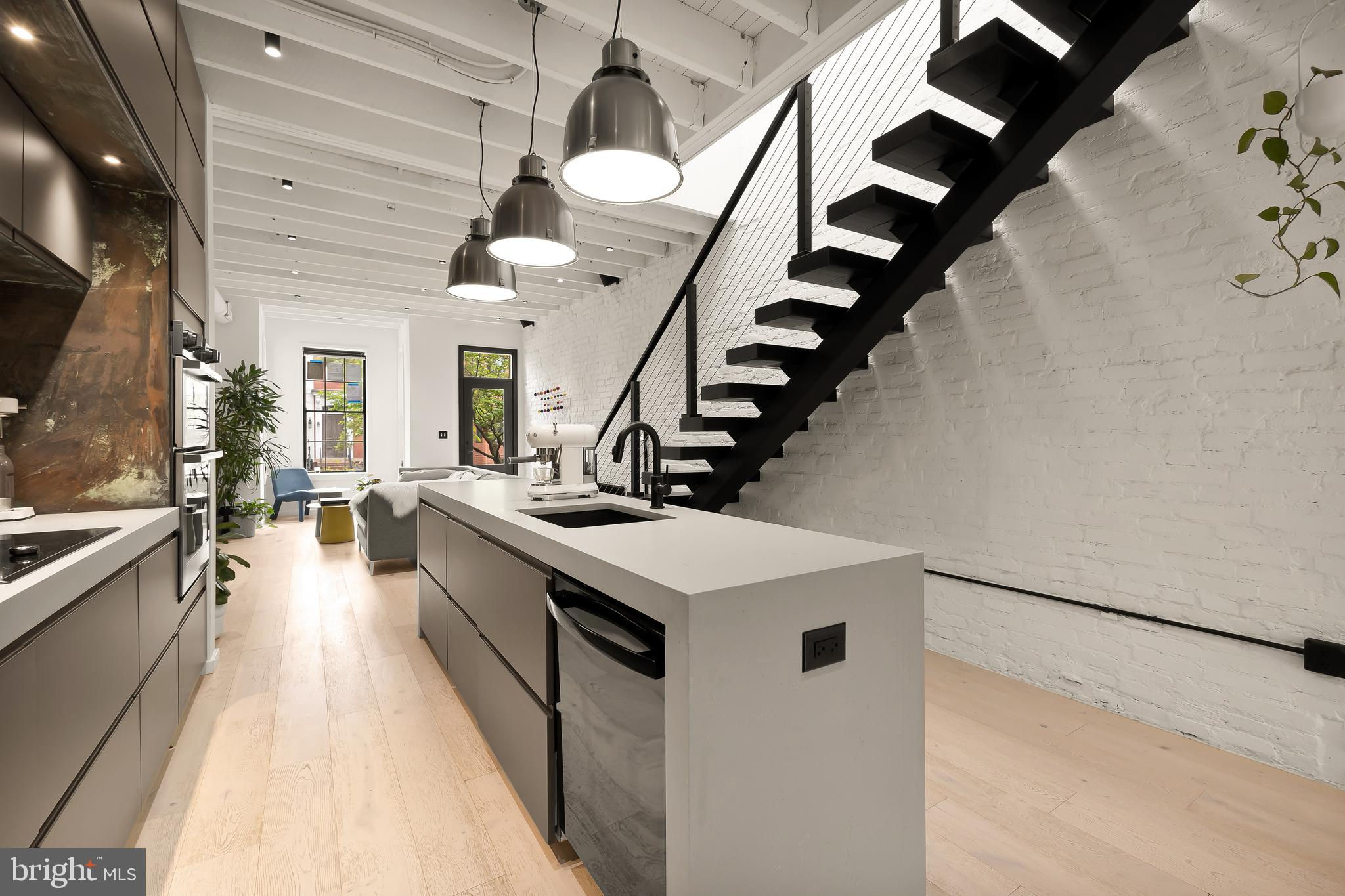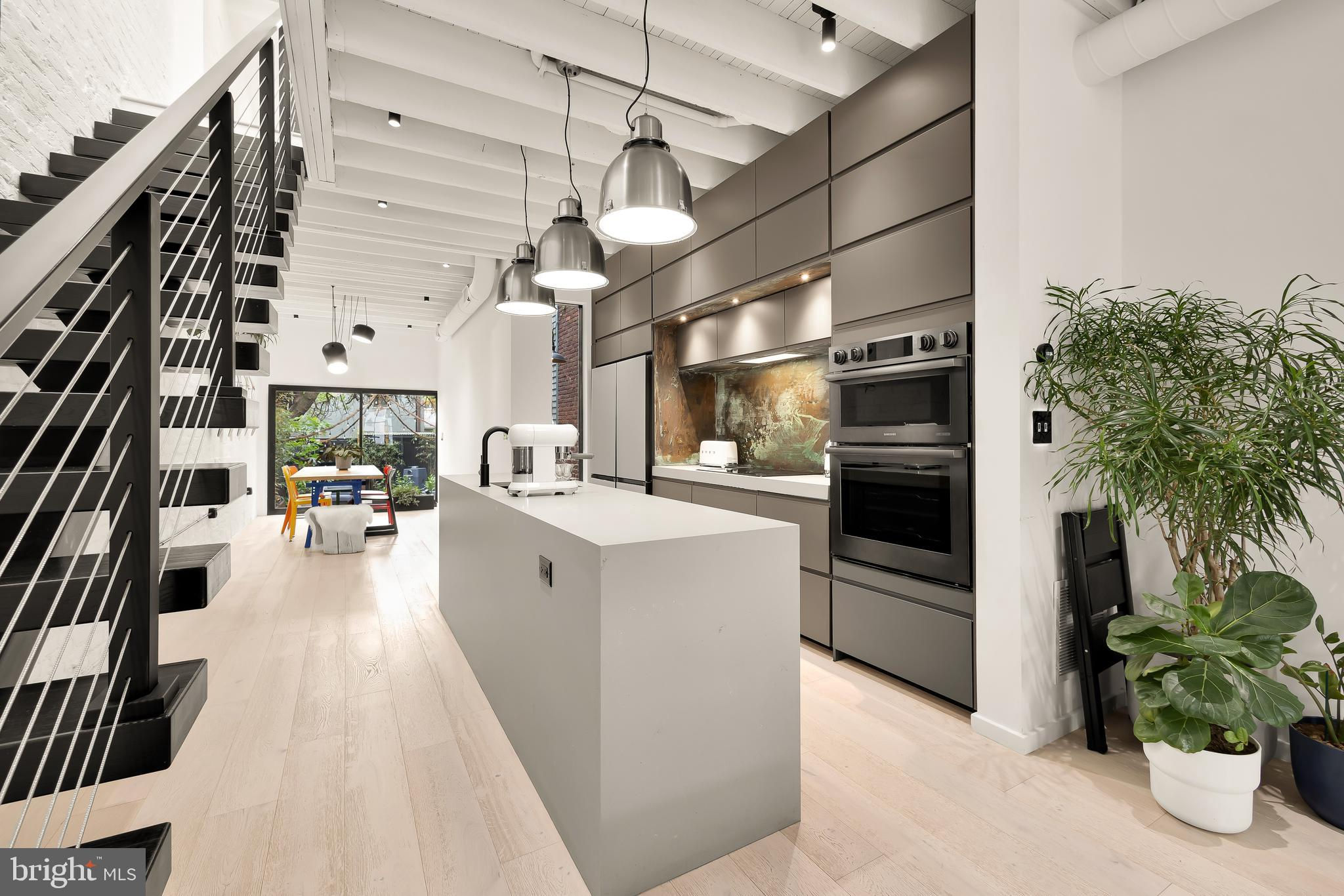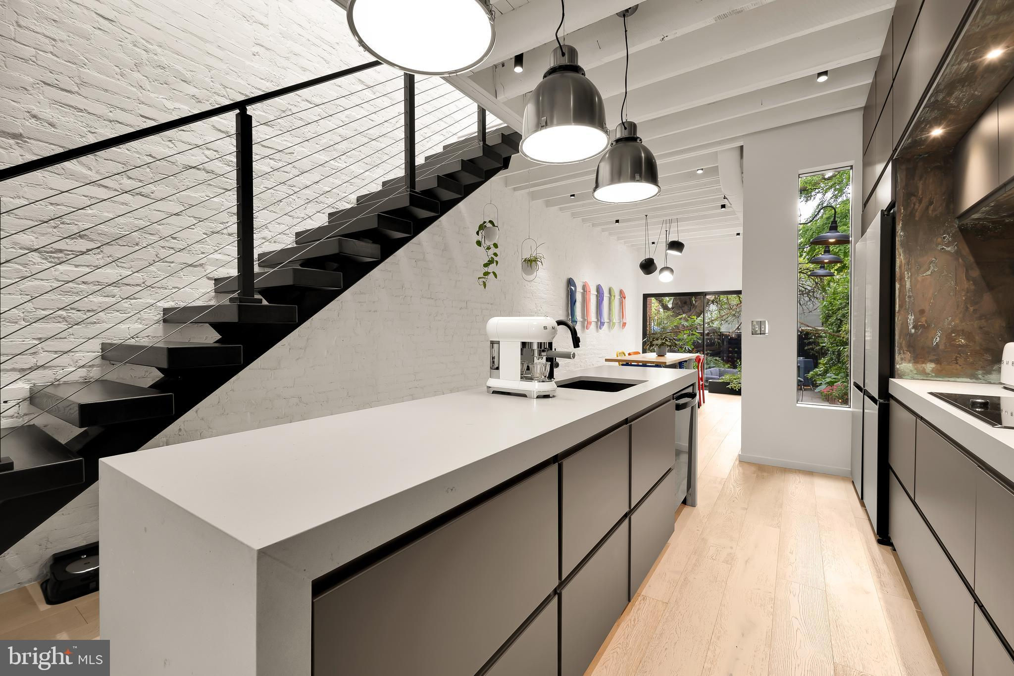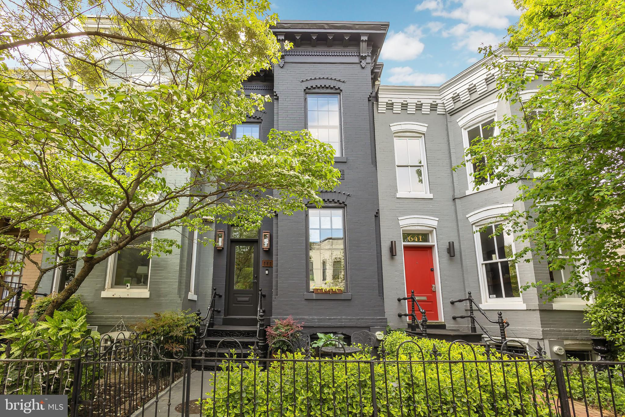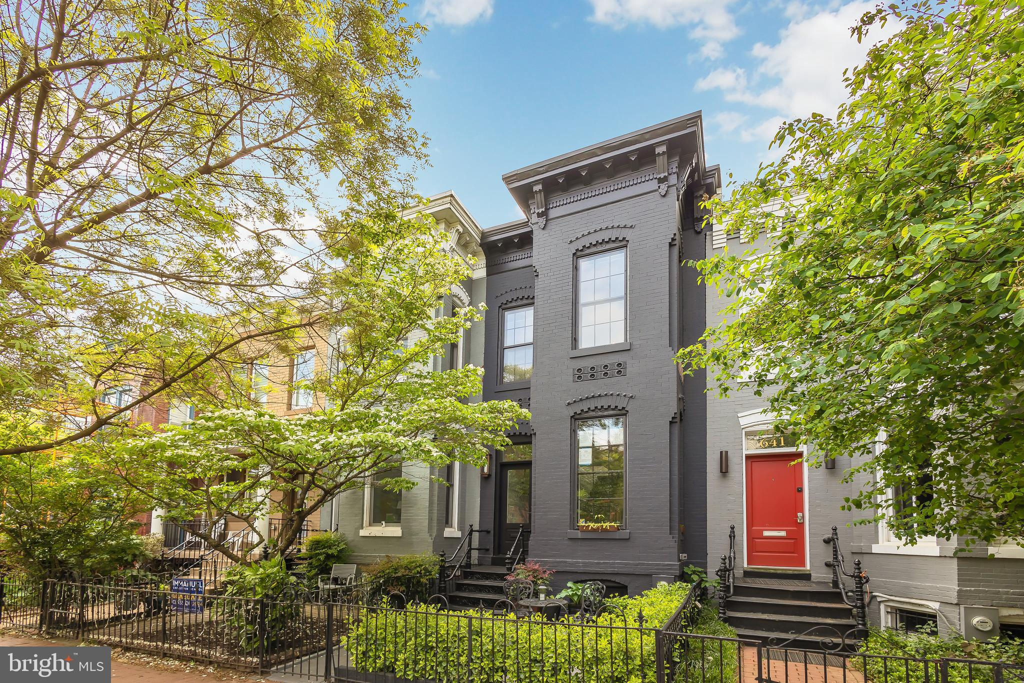 A classic Victorian with a modern soul, where the past and present elegantly intertwine. This meticulously renovated 1908 row home is only one block away from historic and vibrant Eastern Market and has had over $400k invested in its restoration. This stately residence seamlessly blends classic charm with modern luxury. A Parisian-inspired terrace greets you and invites you to discover what is inside. The interior features a wide open floor plan with gorgeous light oak engineered hardwood flooring throughout. The kitchen is a masterpiece of culinary design, boasting state-of-the-art Samsung Chef Collection appliances and a spacious Caesarstone island setting the state for epicurean creativity. The floating staircase leads to two oversized bedrooms and two lavish full bathrooms, where spa-like indulgence awaits with a freestanding bath and a generous walk-in shower. A fully renovated basement allows an additional 450sf, transformed into a private movie theater and gym, complete with a convenient kitchenette and smart drink fridge for ultimate comfort and entertainment. This home is not just beautiful, it's intelligent too. With a new HVAC system, smart home controls, voice-activated assistants, and a Hue lighting system that offers 16 million color possibilities to set the perfect ambiance for any occasion - from cozy movie nights to vibrant gatherings. Luxury and convenience are seamlessly integrated into every corner. Outside, the enchantment continues in the serene backyard oasis, shaded by mature trees and adorned with lush plantings, creating a tranquil retreat for relaxation and entertaining. Atmospheric lighting from lanterns dramatically illuminates the bold gray facade. A wide gate leads to Browns Court providing access for bikes and strollers and to little-known public alley parking. Don't miss this rare opportunity to own a transformed piece of Capitol Hill's history.