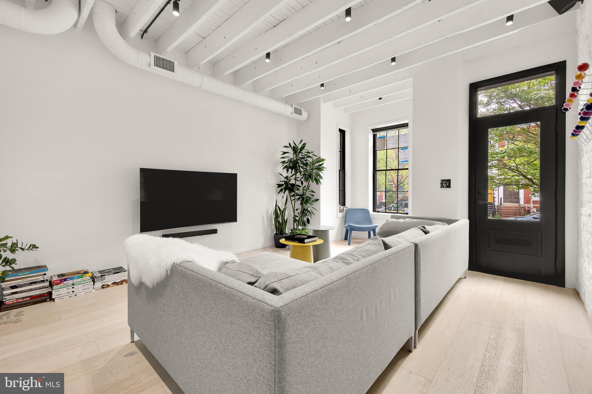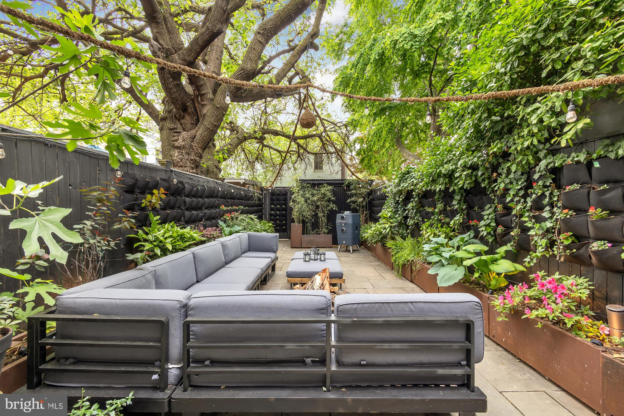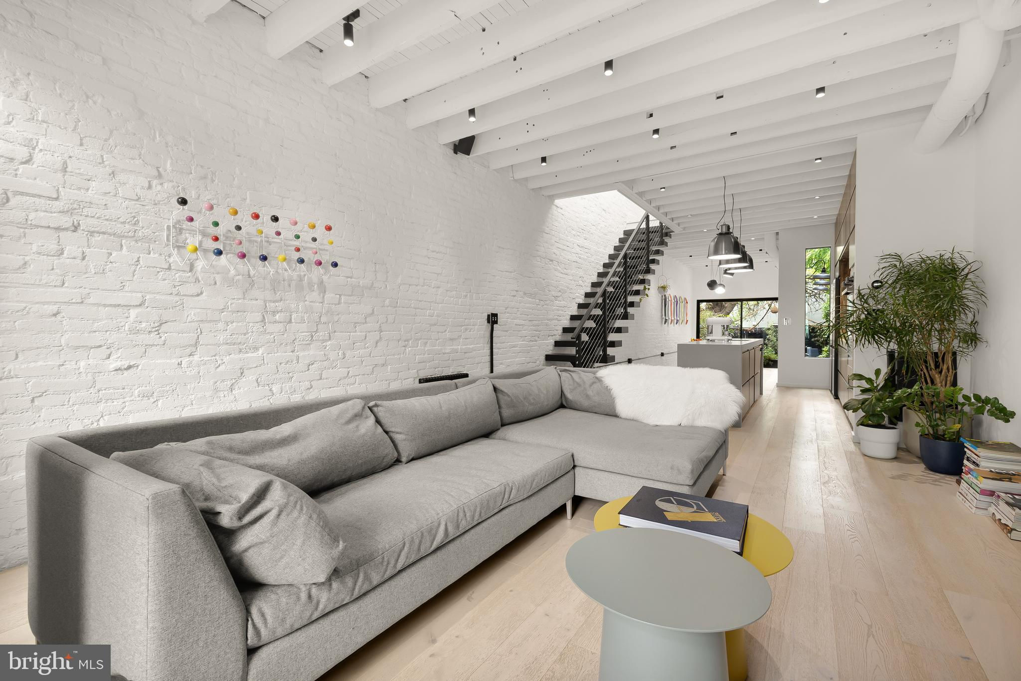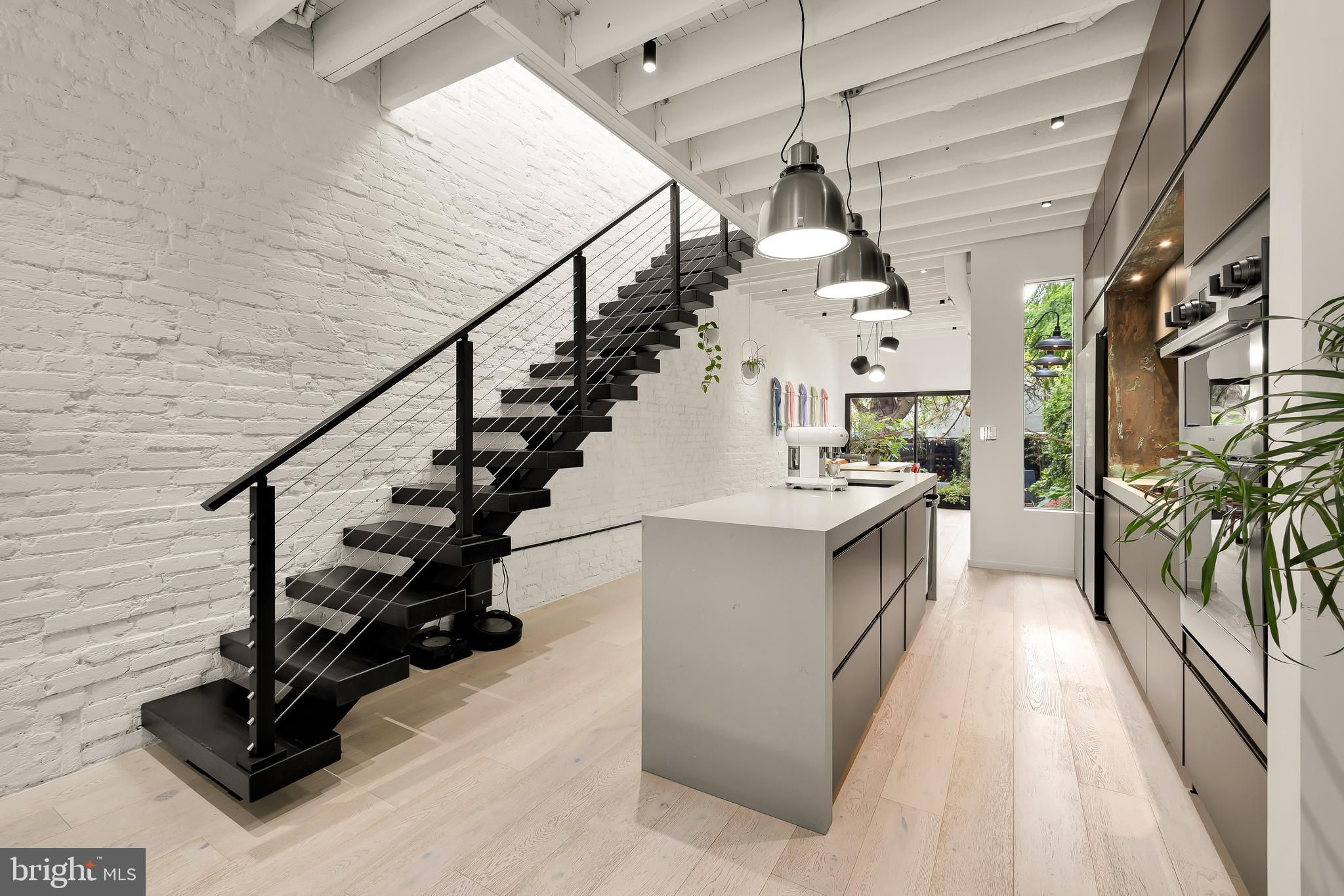 A classic Victorian with a modern soul, where the past and present elegantly intertwine. This meticulously renovated 1908 row home is only one block away from historic and vibrant Eastern Market and has had over $400k invested in its restoration. This stately residence seamlessly blends classic charm with modern luxury. A Parisian-inspired terrace greets you and invites you to discover what is inside. The interior features a wide open floor plan with gorgeous light oak engineered hardwood flooring throughout. The kitchen is a masterpiece of culinary design, boasting state-of-the-art Samsung Chef Collection appliances and a spacious Caesarstone island setting the state for epicurean creativity. The floating staircase leads to two oversized bedrooms and two lavish full bathrooms, where spa-like indulgence awaits with a freestanding bath and a generous walk-in shower. A fully renovated basement allows an additional 450sf, transformed into a private movie theater and gym, complete with a convenient kitchenette and smart drink fridge for ultimate comfort and entertainment. This home is not just beautiful, it's intelligent too. With a new HVAC system, smart home controls, voice-activated assistants, and a Hue lighting system that offers 16 million color possibilities to set the perfect ambiance for any occasion - from cozy movie nights to vibrant gatherings. Luxury and convenience are seamlessly integrated into every corner. Outside, the enchantment continues in the serene backyard oasis, shaded by mature trees and adorned with lush plantings, creating a tranquil retreat for relaxation and entertaining. Atmospheric lighting from lanterns dramatically illuminates the bold gray facade. A wide gate leads to Browns Court providing access for bikes and strollers and to little-known public alley parking. Don't miss this rare opportunity to own a transformed piece of Capitol Hill's history.