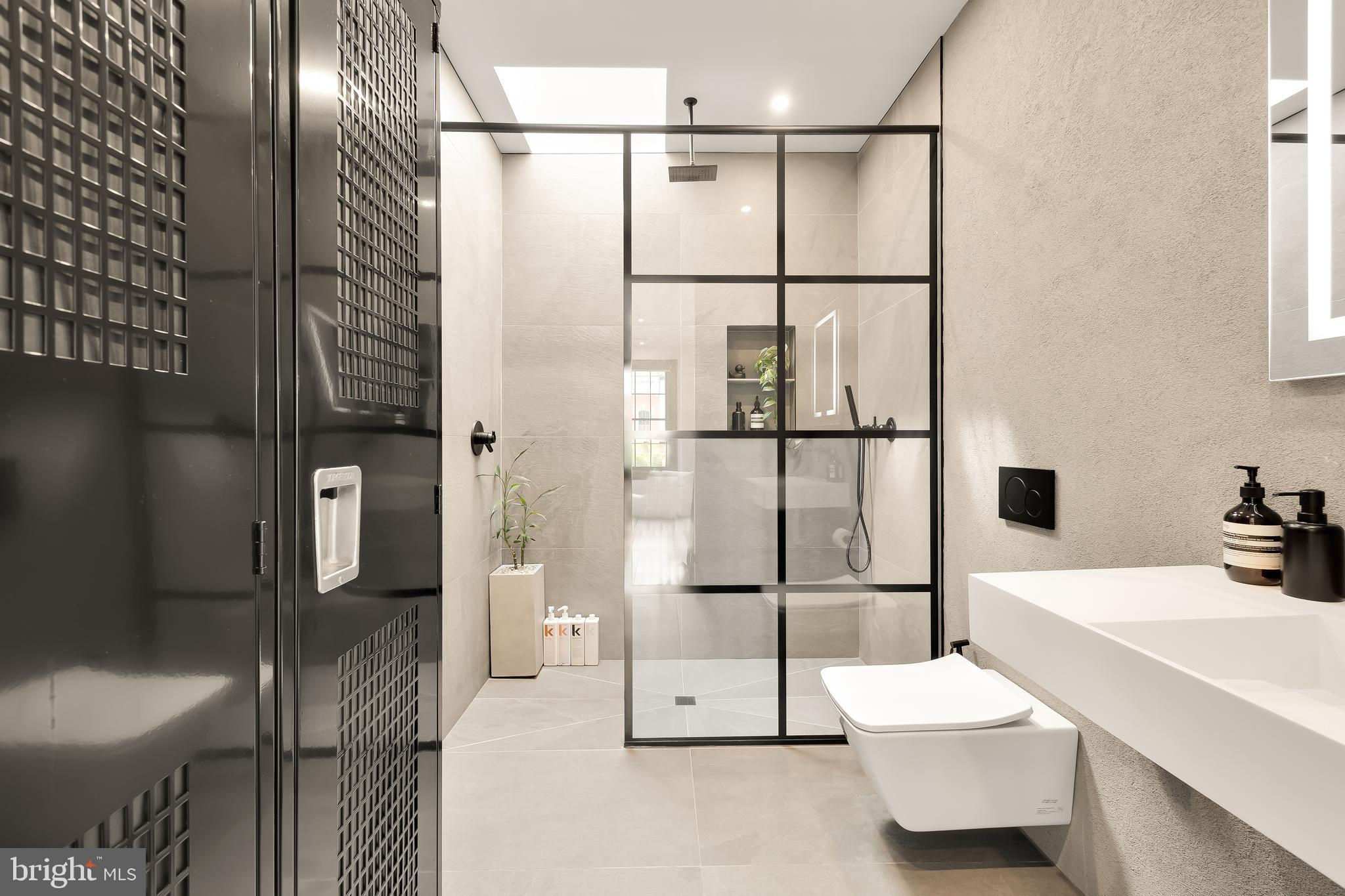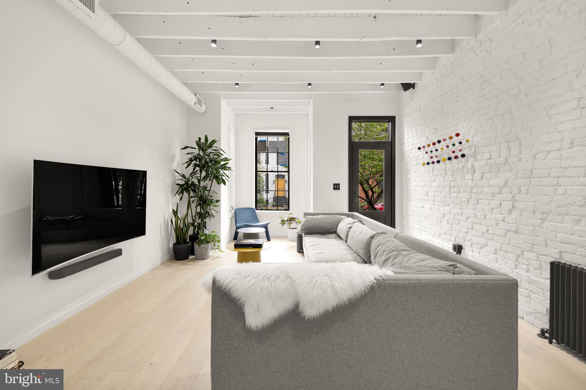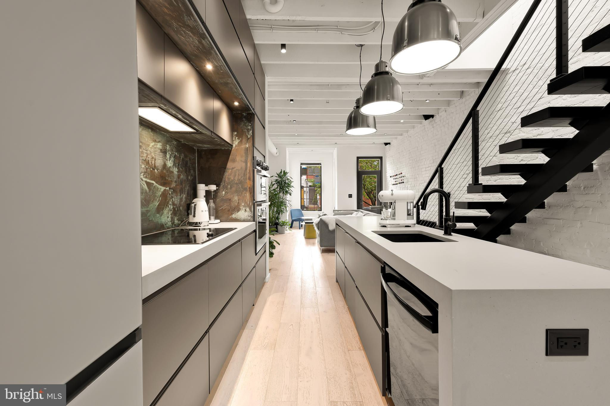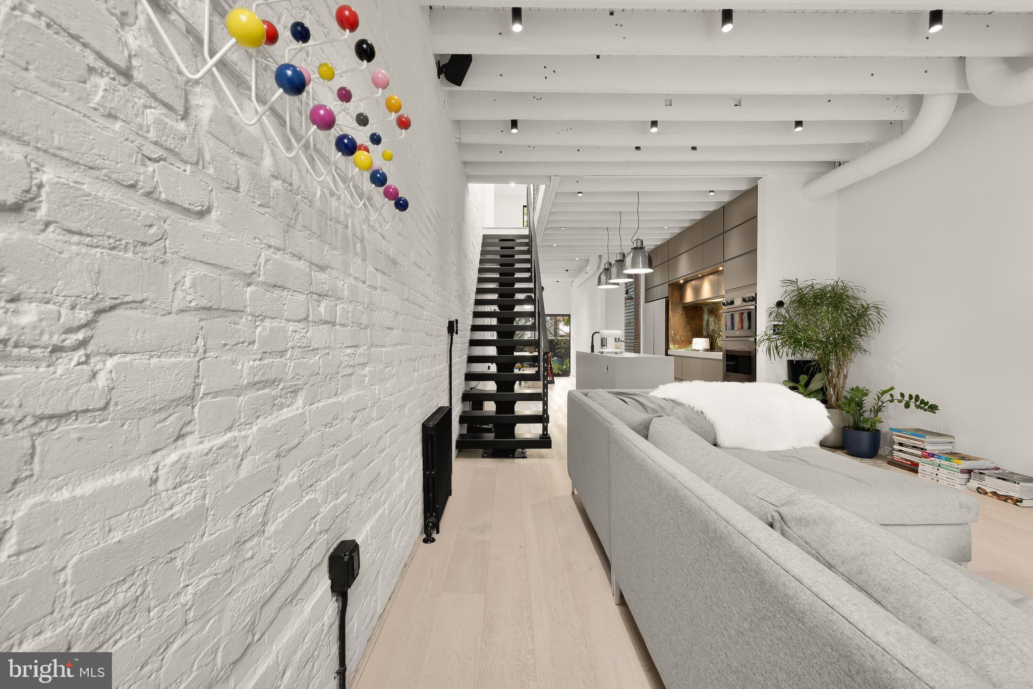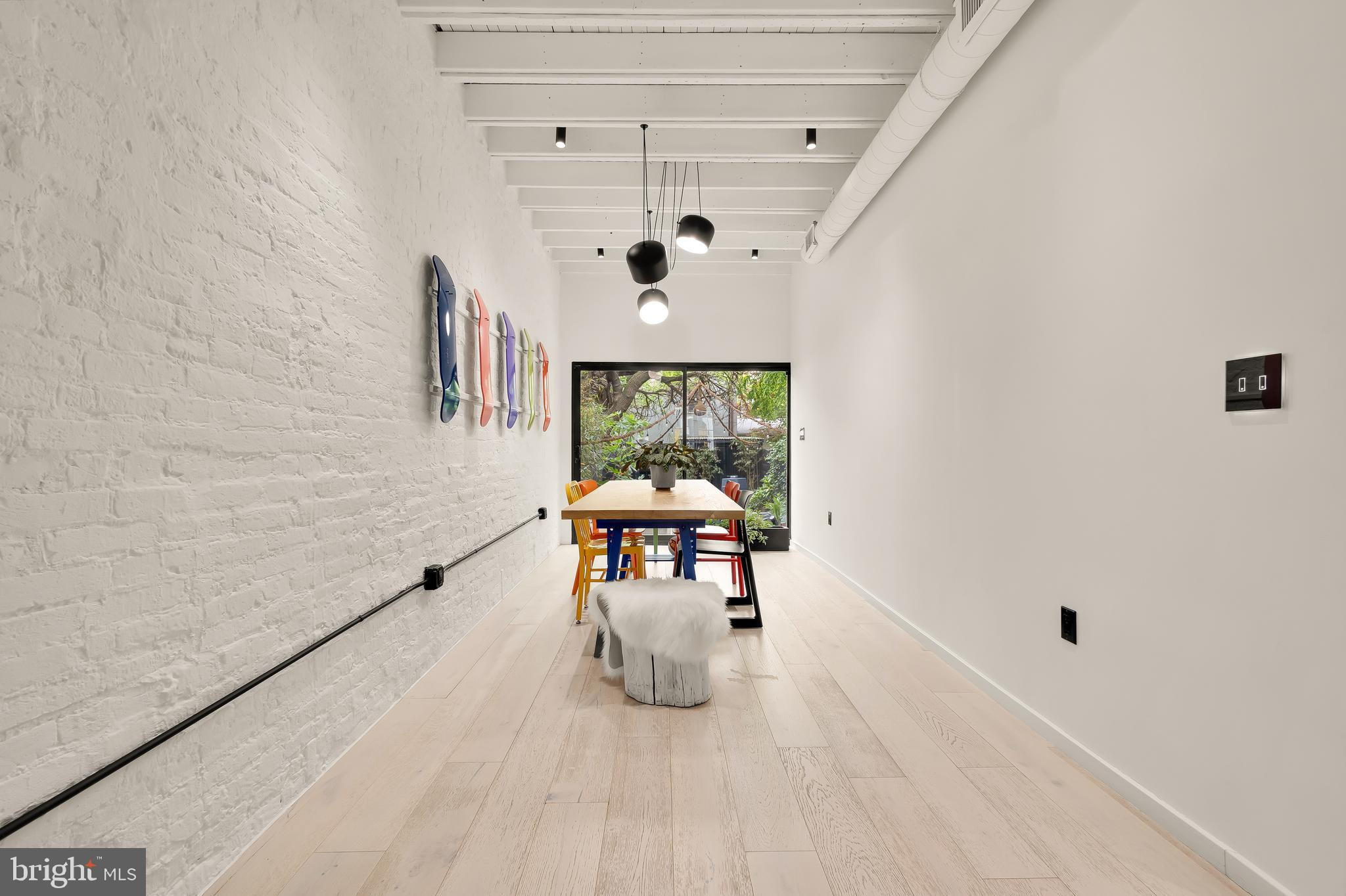 A classic Victorian with a modern soul, where the past and present elegantly intertwine. This meticulously renovated 1908 row home is only one block away from historic and vibrant Eastern Market and has had over $400k invested in its restoration. This stately residence seamlessly blends classic charm with modern luxury. A Parisian-inspired terrace greets you and invites you to discover what is inside. The interior features a wide open floor plan with gorgeous light oak engineered hardwood flooring throughout. The kitchen is a masterpiece of culinary design, boasting state-of-the-art Samsung Chef Collection appliances and a spacious Caesarstone island setting the state for epicurean creativity. The floating staircase leads to two oversized bedrooms and two lavish full bathrooms, where spa-like indulgence awaits with a freestanding bath and a generous walk-in shower. A fully renovated basement allows an additional 450sf, transformed into a private movie theater and gym, complete with a convenient kitchenette and smart drink fridge for ultimate comfort and entertainment. This home is not just beautiful, it's intelligent too. With a new HVAC system, smart home controls, voice-activated assistants, and a Hue lighting system that offers 16 million color possibilities to set the perfect ambiance for any occasion - from cozy movie nights to vibrant gatherings. Luxury and convenience are seamlessly integrated into every corner. Outside, the enchantment continues in the serene backyard oasis, shaded by mature trees and adorned with lush plantings, creating a tranquil retreat for relaxation and entertaining. Atmospheric lighting from lanterns dramatically illuminates the bold gray facade. A wide gate leads to Browns Court providing access for bikes and strollers and to little-known public alley parking. Don't miss this rare opportunity to own a transformed piece of Capitol Hill's history.