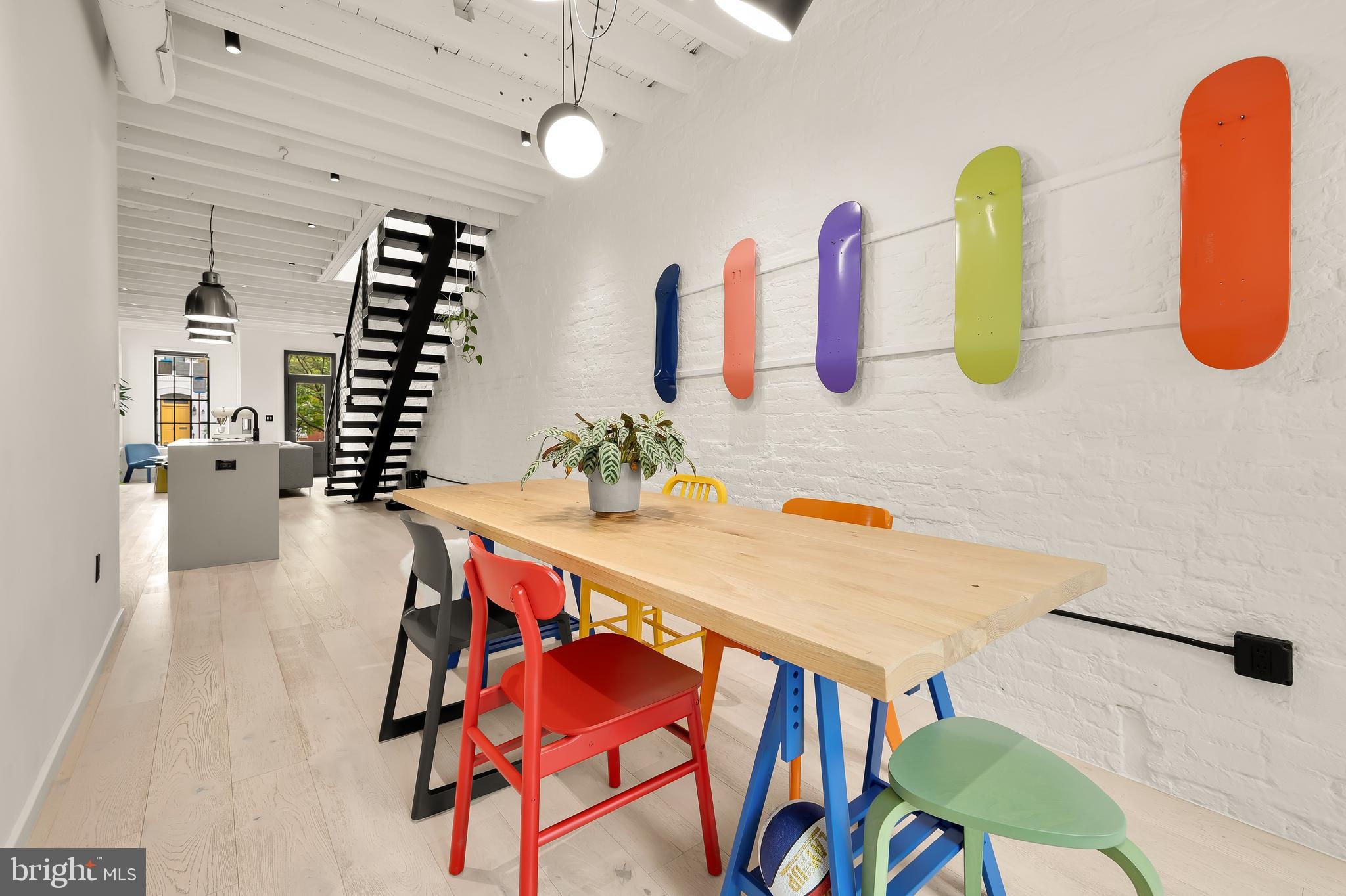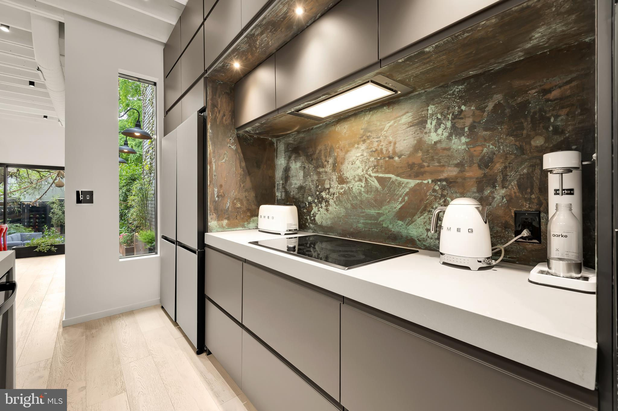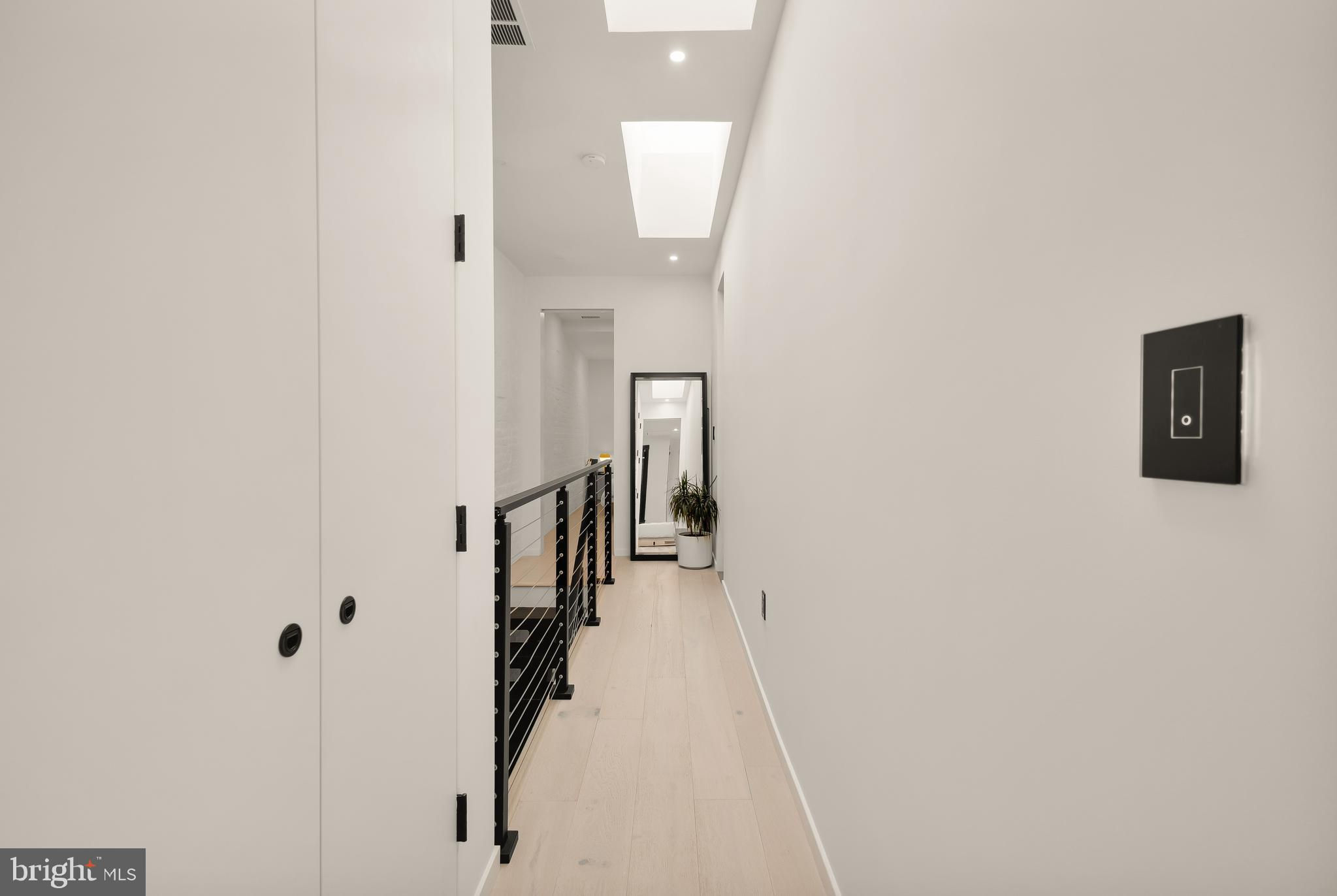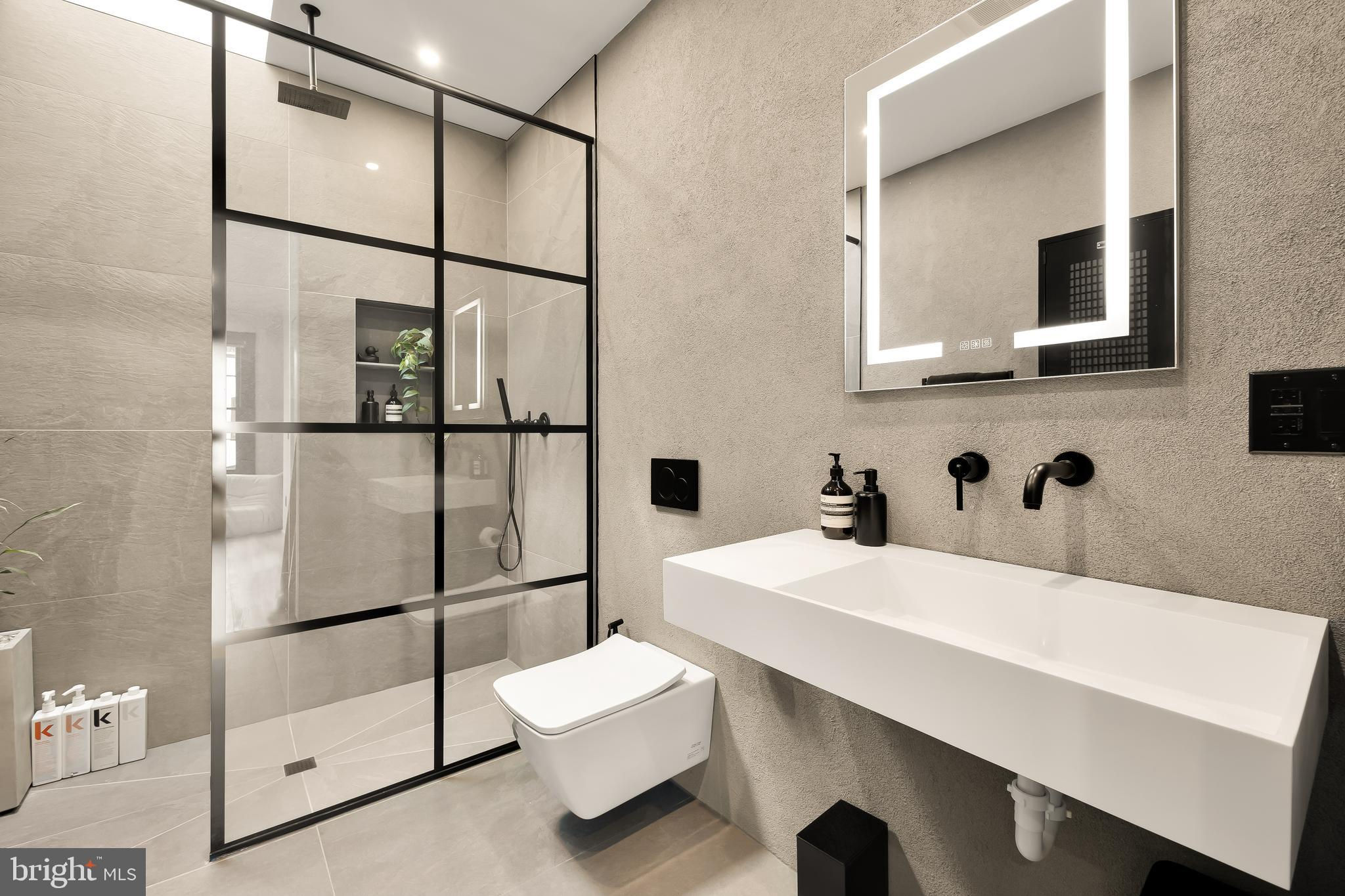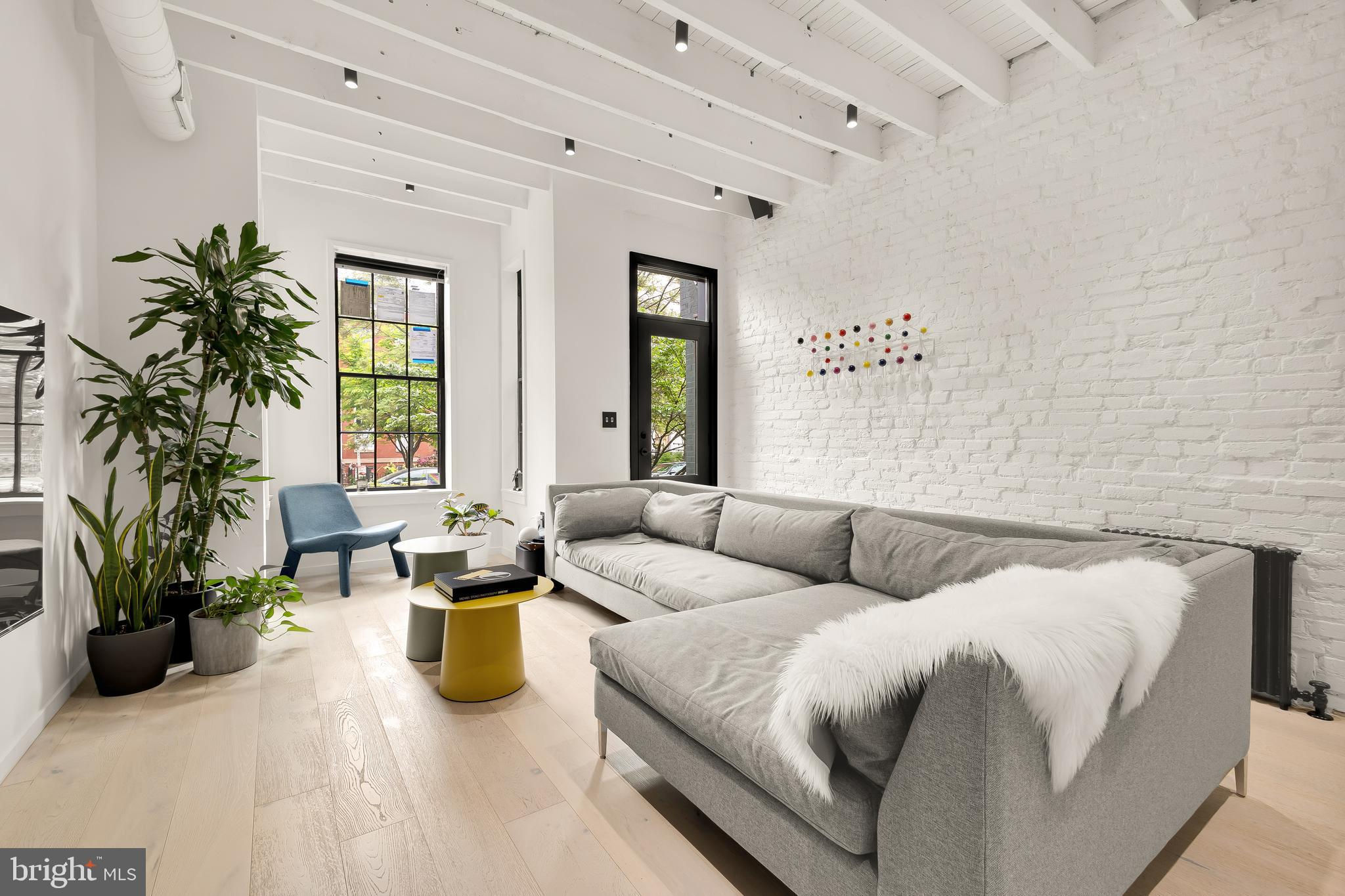 A classic Victorian with a modern soul, where the past and present elegantly intertwine. This meticulously renovated 1908 row home is only one block away from historic and vibrant Eastern Market and has had over $400k invested in its restoration. This stately residence seamlessly blends classic charm with modern luxury. A Parisian-inspired terrace greets you and invites you to discover what is inside. The interior features a wide open floor plan with gorgeous light oak engineered hardwood flooring throughout. The kitchen is a masterpiece of culinary design, boasting state-of-the-art Samsung Chef Collection appliances and a spacious Caesarstone island setting the state for epicurean creativity. The floating staircase leads to two oversized bedrooms and two lavish full bathrooms, where spa-like indulgence awaits with a freestanding bath and a generous walk-in shower. A fully renovated basement allows an additional 450sf, transformed into a private movie theater and gym, complete with a convenient kitchenette and smart drink fridge for ultimate comfort and entertainment. This home is not just beautiful, it's intelligent too. With a new HVAC system, smart home controls, voice-activated assistants, and a Hue lighting system that offers 16 million color possibilities to set the perfect ambiance for any occasion - from cozy movie nights to vibrant gatherings. Luxury and convenience are seamlessly integrated into every corner. Outside, the enchantment continues in the serene backyard oasis, shaded by mature trees and adorned with lush plantings, creating a tranquil retreat for relaxation and entertaining. Atmospheric lighting from lanterns dramatically illuminates the bold gray facade. A wide gate leads to Browns Court providing access for bikes and strollers and to little-known public alley parking. Don't miss this rare opportunity to own a transformed piece of Capitol Hill's history.