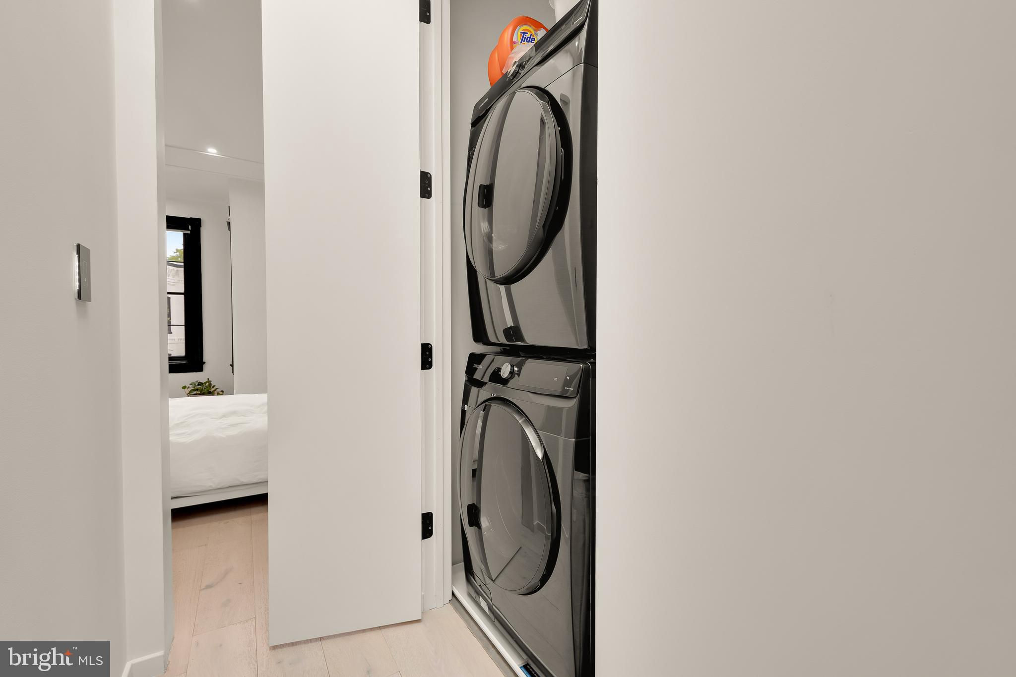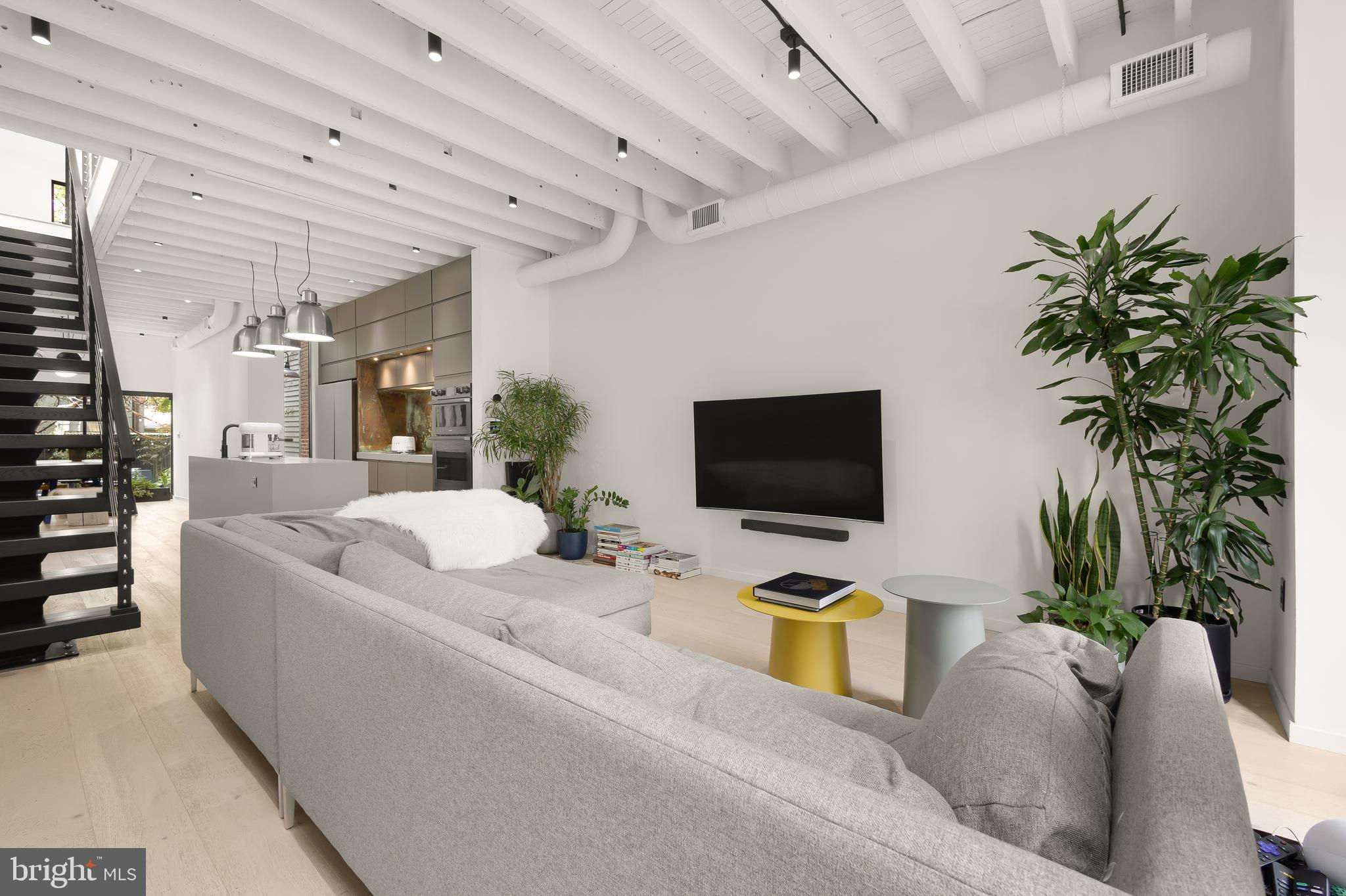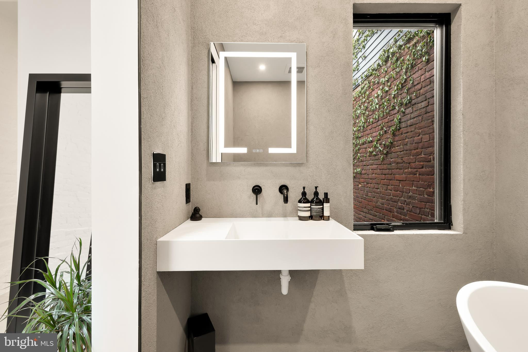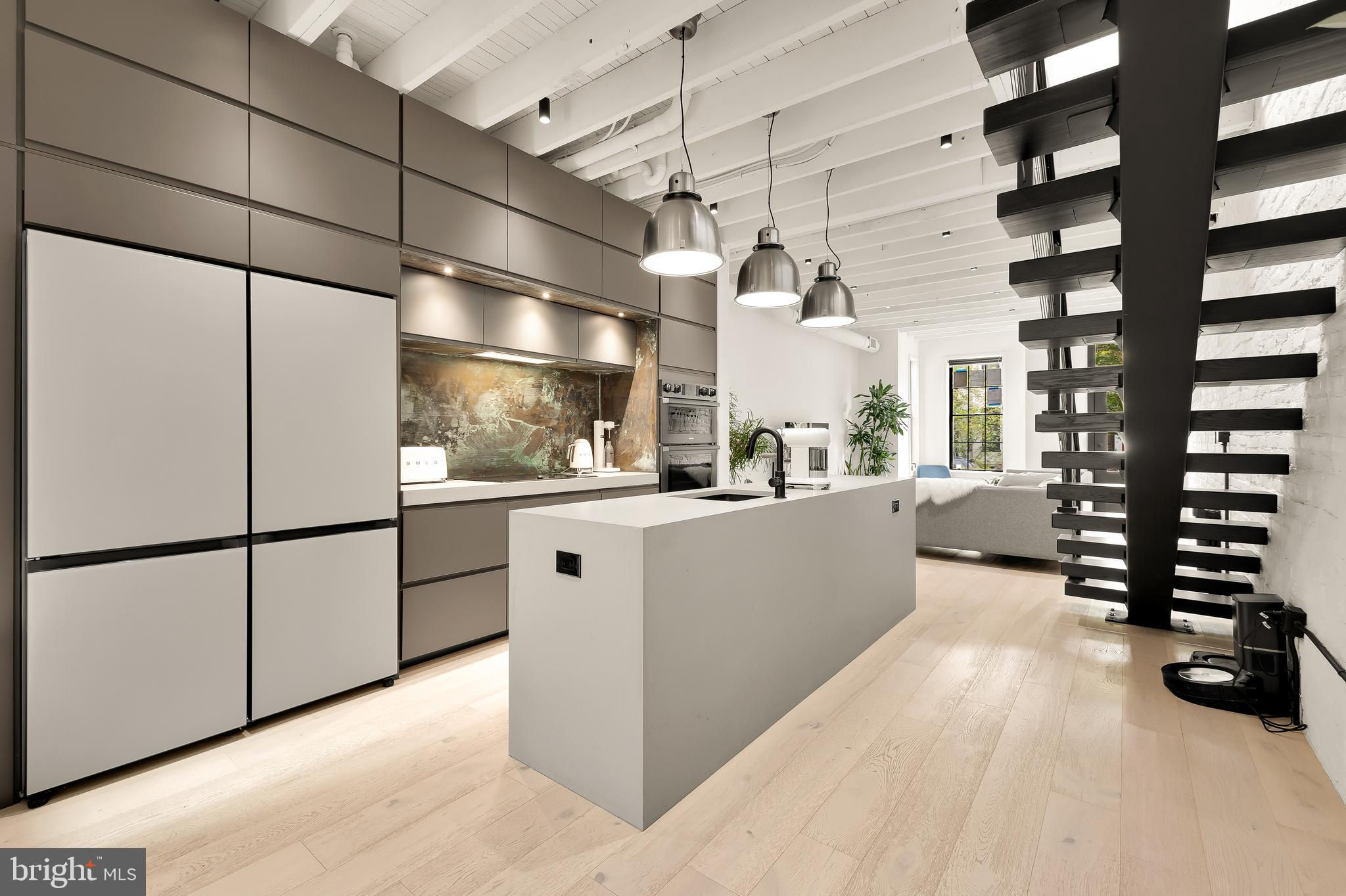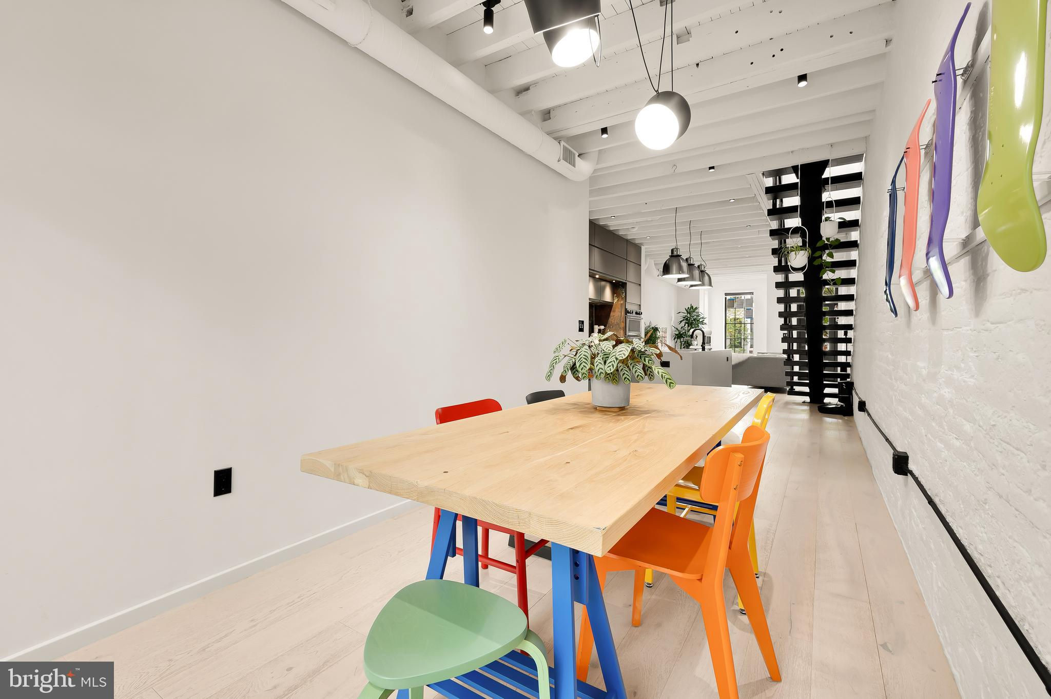 A classic Victorian with a modern soul, where the past and present elegantly intertwine. This meticulously renovated 1908 row home is only one block away from historic and vibrant Eastern Market and has had over $400k invested in its restoration. This stately residence seamlessly blends classic charm with modern luxury. A Parisian-inspired terrace greets you and invites you to discover what is inside. The interior features a wide open floor plan with gorgeous light oak engineered hardwood flooring throughout. The kitchen is a masterpiece of culinary design, boasting state-of-the-art Samsung Chef Collection appliances and a spacious Caesarstone island setting the state for epicurean creativity. The floating staircase leads to two oversized bedrooms and two lavish full bathrooms, where spa-like indulgence awaits with a freestanding bath and a generous walk-in shower. A fully renovated basement allows an additional 450sf, transformed into a private movie theater and gym, complete with a convenient kitchenette and smart drink fridge for ultimate comfort and entertainment. This home is not just beautiful, it's intelligent too. With a new HVAC system, smart home controls, voice-activated assistants, and a Hue lighting system that offers 16 million color possibilities to set the perfect ambiance for any occasion - from cozy movie nights to vibrant gatherings. Luxury and convenience are seamlessly integrated into every corner. Outside, the enchantment continues in the serene backyard oasis, shaded by mature trees and adorned with lush plantings, creating a tranquil retreat for relaxation and entertaining. Atmospheric lighting from lanterns dramatically illuminates the bold gray facade. A wide gate leads to Browns Court providing access for bikes and strollers and to little-known public alley parking. Don't miss this rare opportunity to own a transformed piece of Capitol Hill's history.
