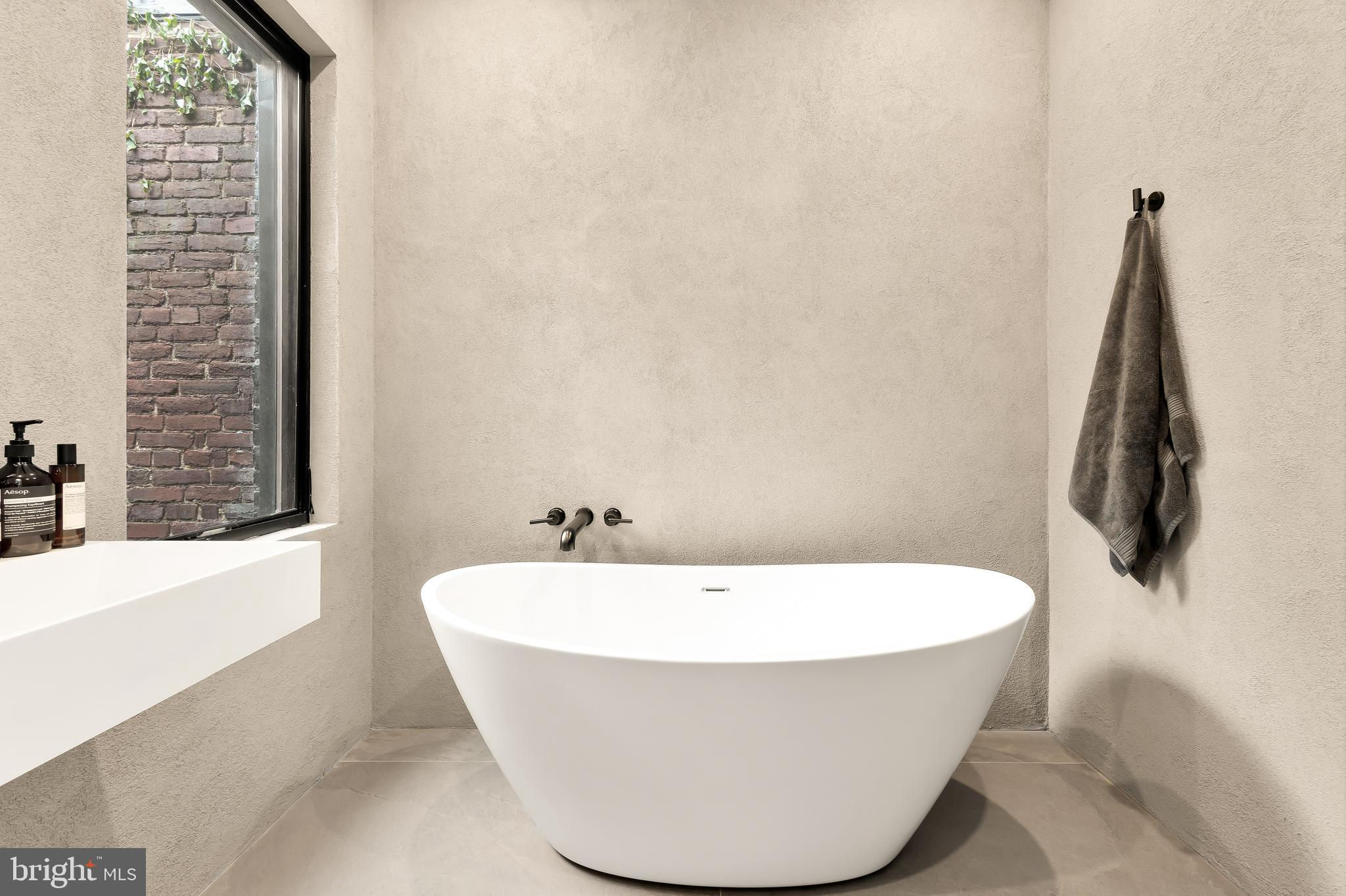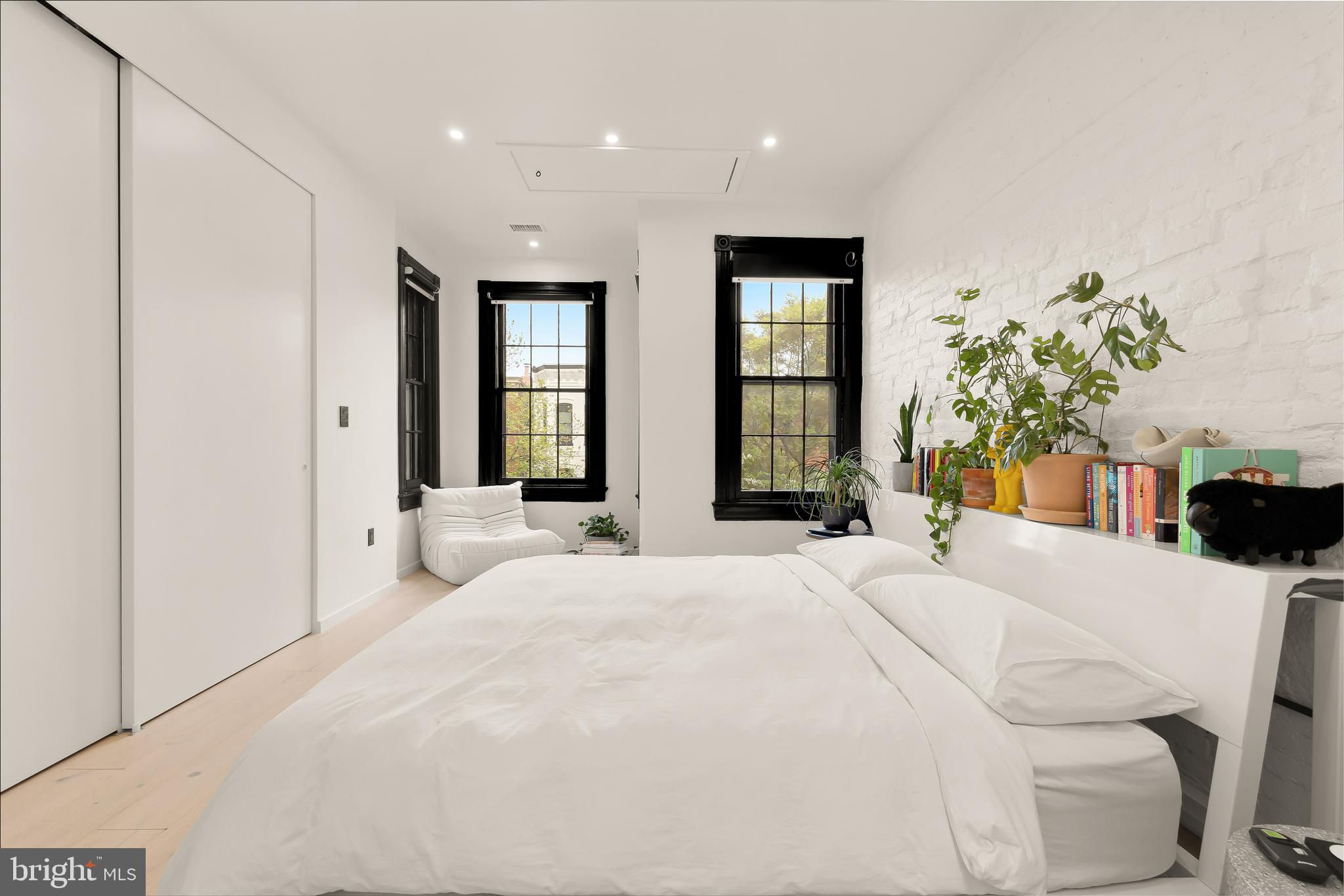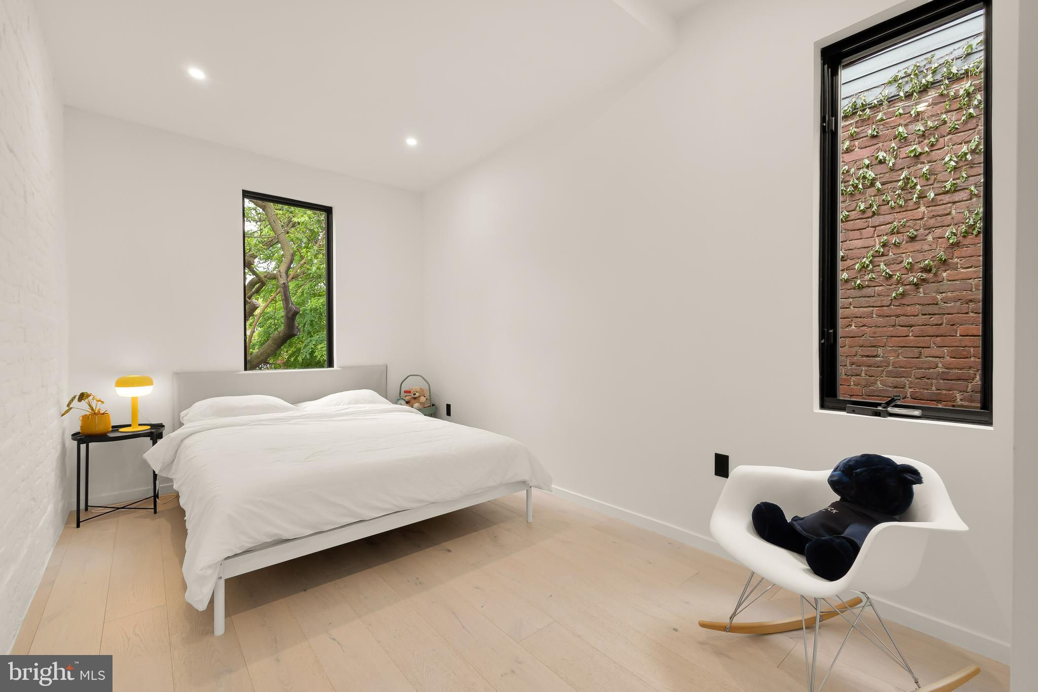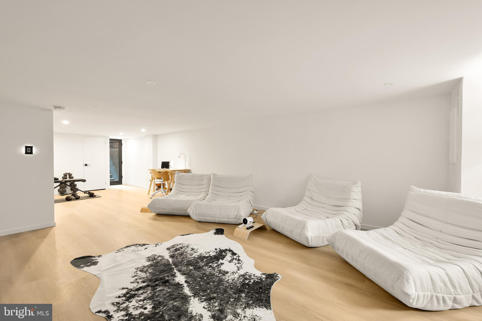 A classic Victorian with a modern soul, where the past and present elegantly intertwine. This meticulously renovated 1908 row home is only one block away from historic and vibrant Eastern Market and has had over $400k invested in its restoration. This stately residence seamlessly blends classic charm with modern luxury. A Parisian-inspired terrace greets you and invites you to discover what is inside. The interior features a wide open floor plan with gorgeous light oak engineered hardwood flooring throughout. The kitchen is a masterpiece of culinary design, boasting state-of-the-art Samsung Chef Collection appliances and a spacious Caesarstone island setting the state for epicurean creativity. The floating staircase leads to two oversized bedrooms and two lavish full bathrooms, where spa-like indulgence awaits with a freestanding bath and a generous walk-in shower. A fully renovated basement allows an additional 450sf, transformed into a private movie theater and gym, complete with a convenient kitchenette and smart drink fridge for ultimate comfort and entertainment. This home is not just beautiful, it's intelligent too. With a new HVAC system, smart home controls, voice-activated assistants, and a Hue lighting system that offers 16 million color possibilities to set the perfect ambiance for any occasion - from cozy movie nights to vibrant gatherings. Luxury and convenience are seamlessly integrated into every corner. Outside, the enchantment continues in the serene backyard oasis, shaded by mature trees and adorned with lush plantings, creating a tranquil retreat for relaxation and entertaining. Atmospheric lighting from lanterns dramatically illuminates the bold gray facade. A wide gate leads to Browns Court providing access for bikes and strollers and to little-known public alley parking. Don't miss this rare opportunity to own a transformed piece of Capitol Hill's history.