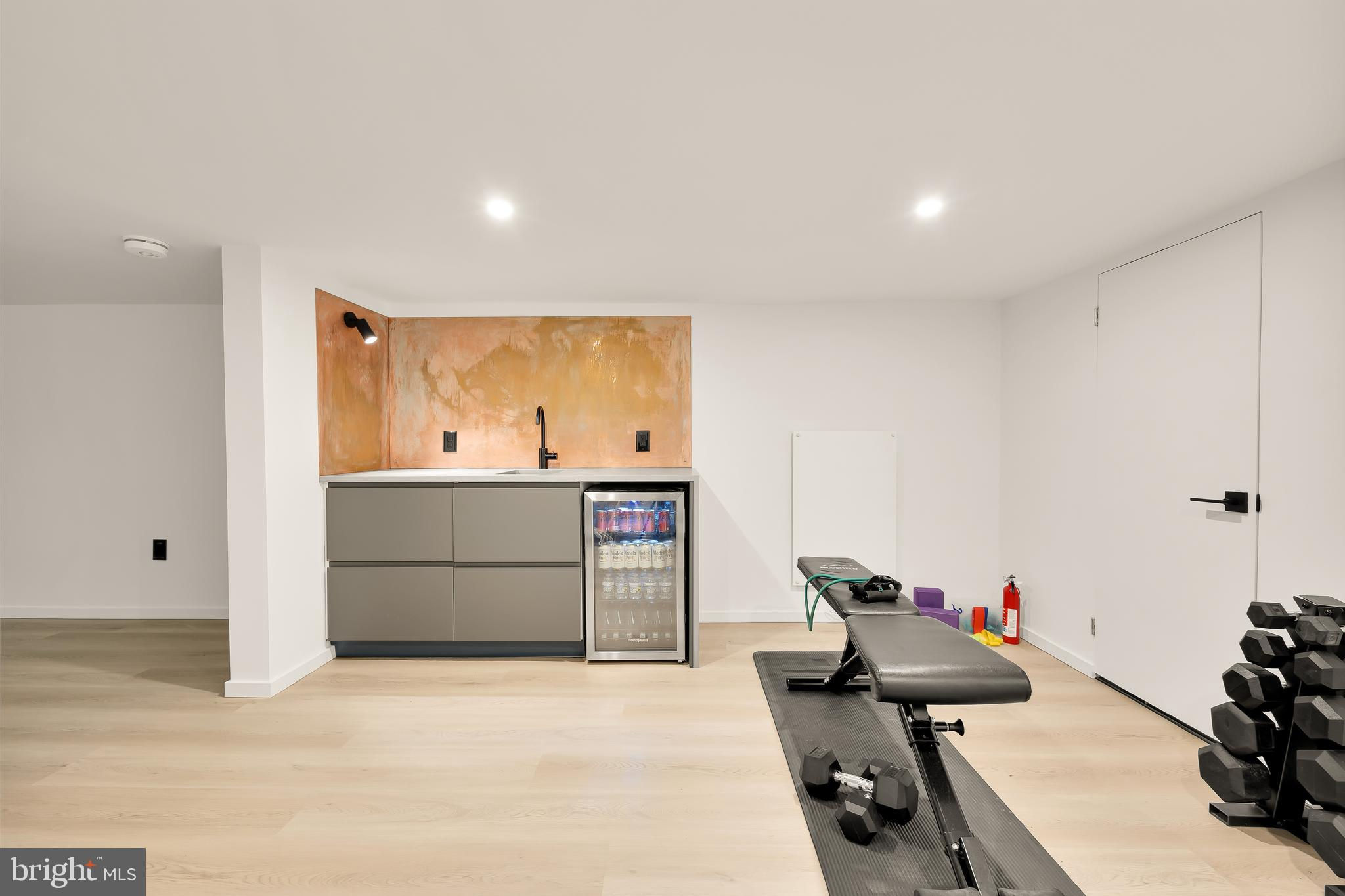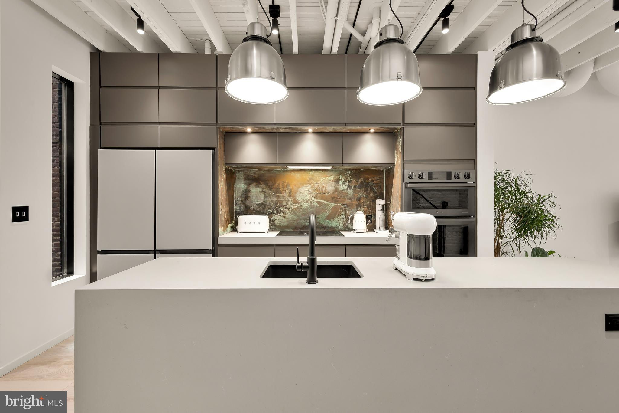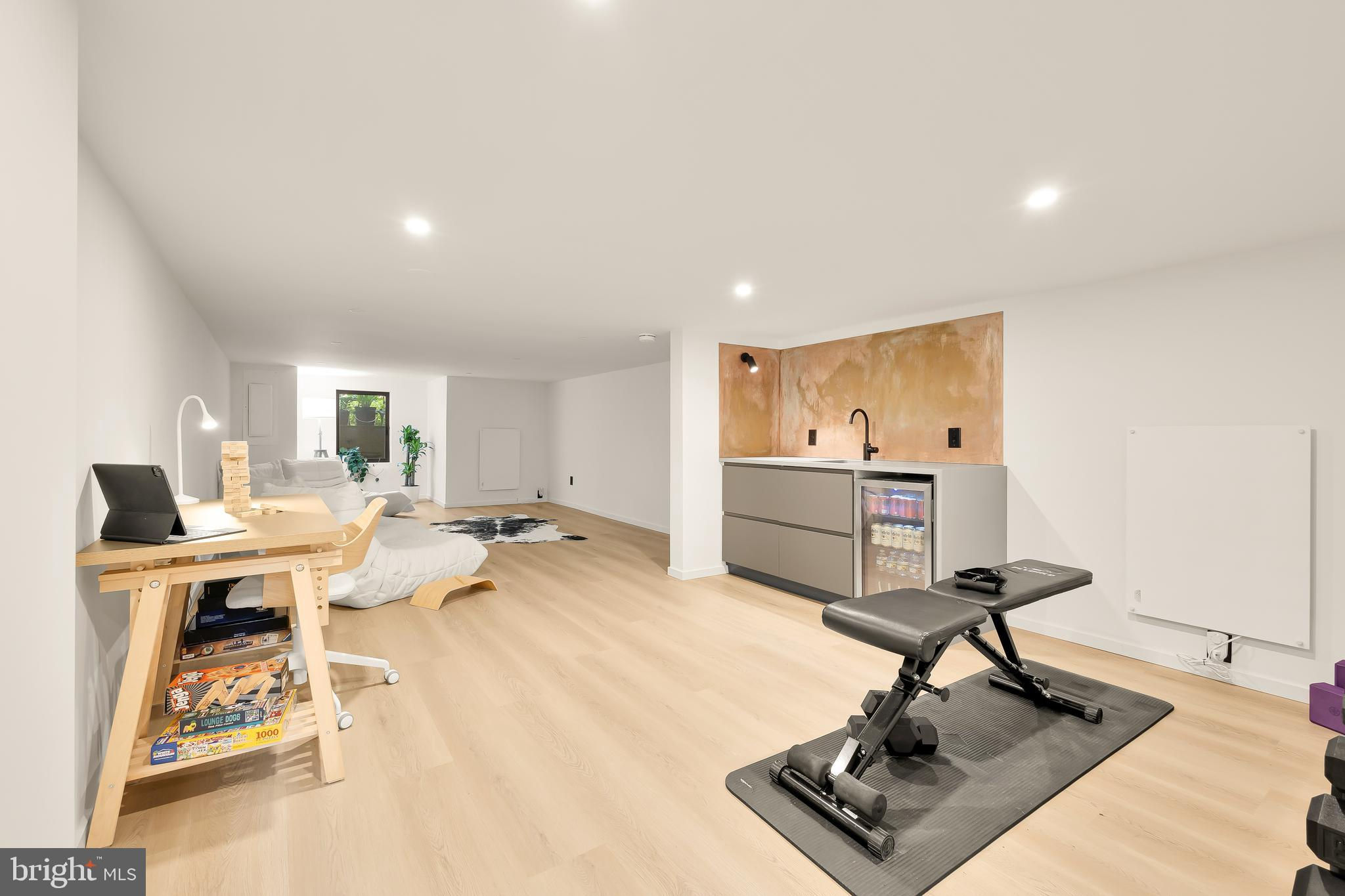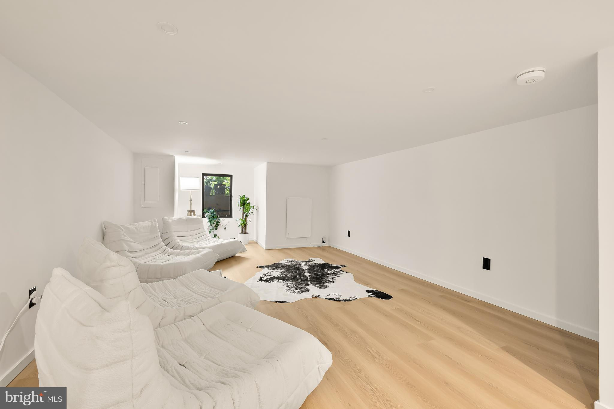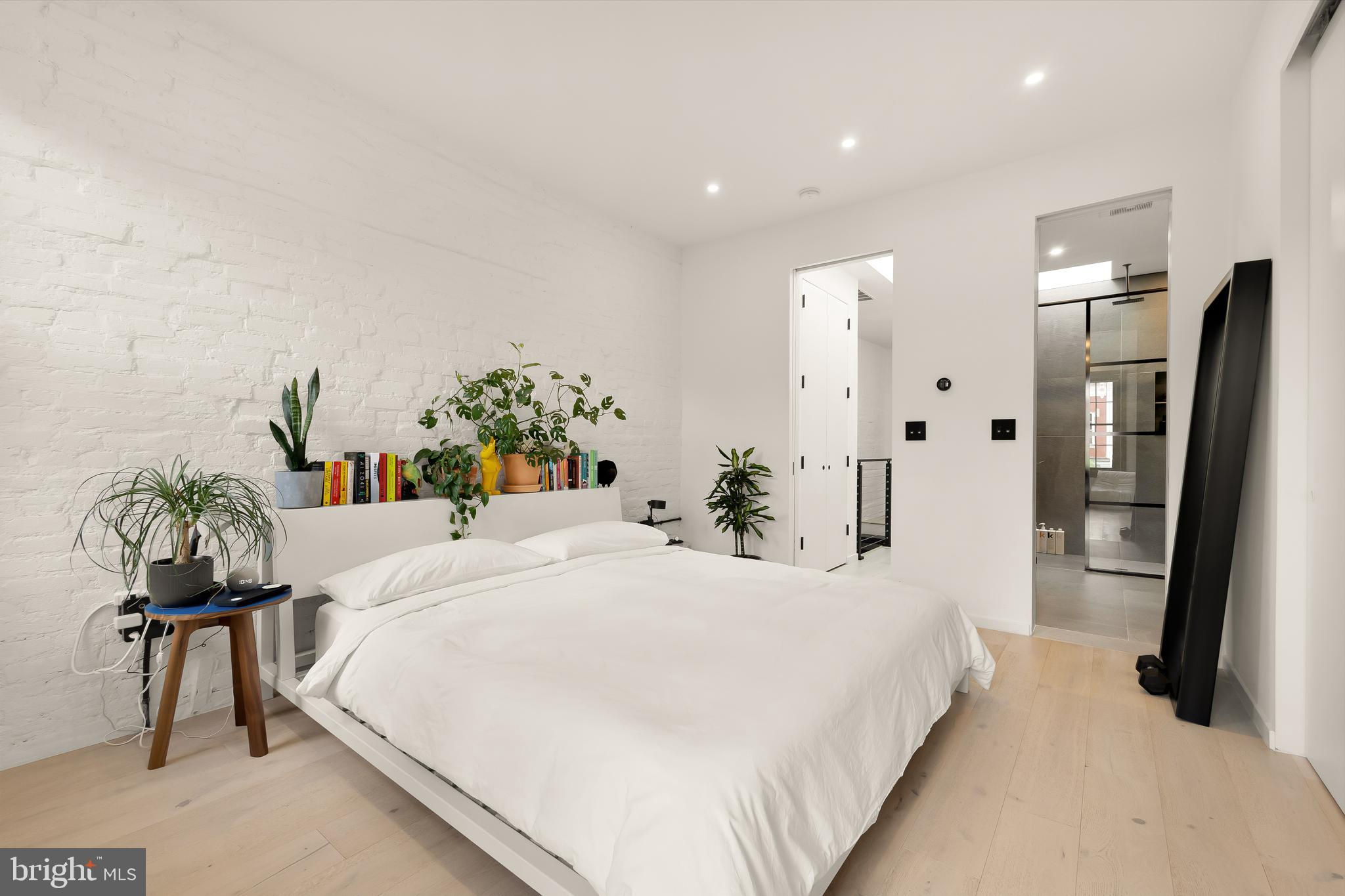 A classic Victorian with a modern soul, where the past and present elegantly intertwine. This meticulously renovated 1908 row home is only one block away from historic and vibrant Eastern Market and has had over $400k invested in its restoration. This stately residence seamlessly blends classic charm with modern luxury. A Parisian-inspired terrace greets you and invites you to discover what is inside. The interior features a wide open floor plan with gorgeous light oak engineered hardwood flooring throughout. The kitchen is a masterpiece of culinary design, boasting state-of-the-art Samsung Chef Collection appliances and a spacious Caesarstone island setting the state for epicurean creativity. The floating staircase leads to two oversized bedrooms and two lavish full bathrooms, where spa-like indulgence awaits with a freestanding bath and a generous walk-in shower. A fully renovated basement allows an additional 450sf, transformed into a private movie theater and gym, complete with a convenient kitchenette and smart drink fridge for ultimate comfort and entertainment. This home is not just beautiful, it's intelligent too. With a new HVAC system, smart home controls, voice-activated assistants, and a Hue lighting system that offers 16 million color possibilities to set the perfect ambiance for any occasion - from cozy movie nights to vibrant gatherings. Luxury and convenience are seamlessly integrated into every corner. Outside, the enchantment continues in the serene backyard oasis, shaded by mature trees and adorned with lush plantings, creating a tranquil retreat for relaxation and entertaining. Atmospheric lighting from lanterns dramatically illuminates the bold gray facade. A wide gate leads to Browns Court providing access for bikes and strollers and to little-known public alley parking. Don't miss this rare opportunity to own a transformed piece of Capitol Hill's history.