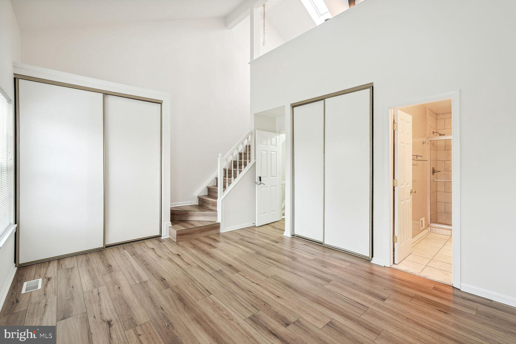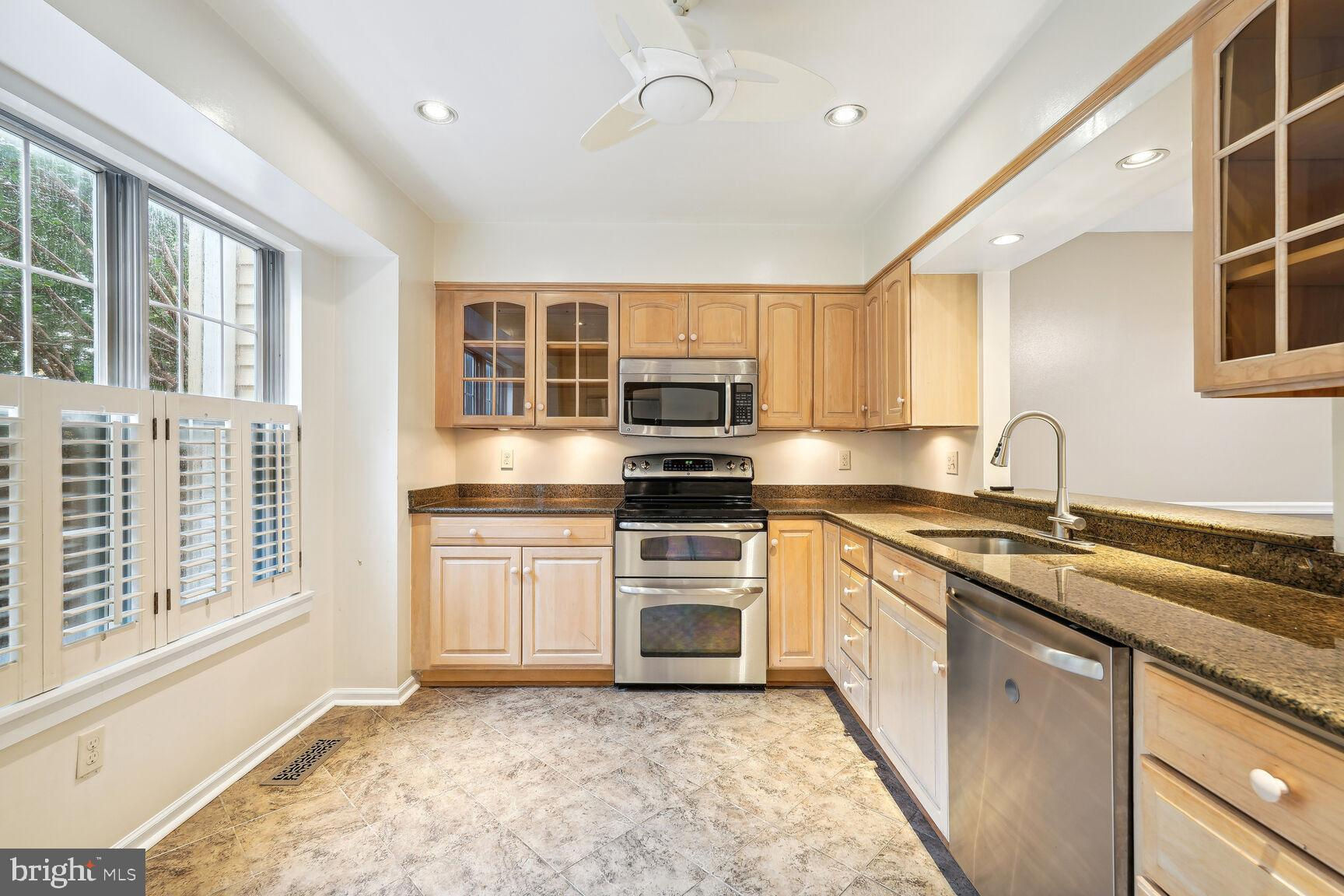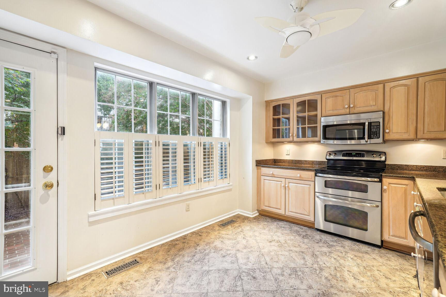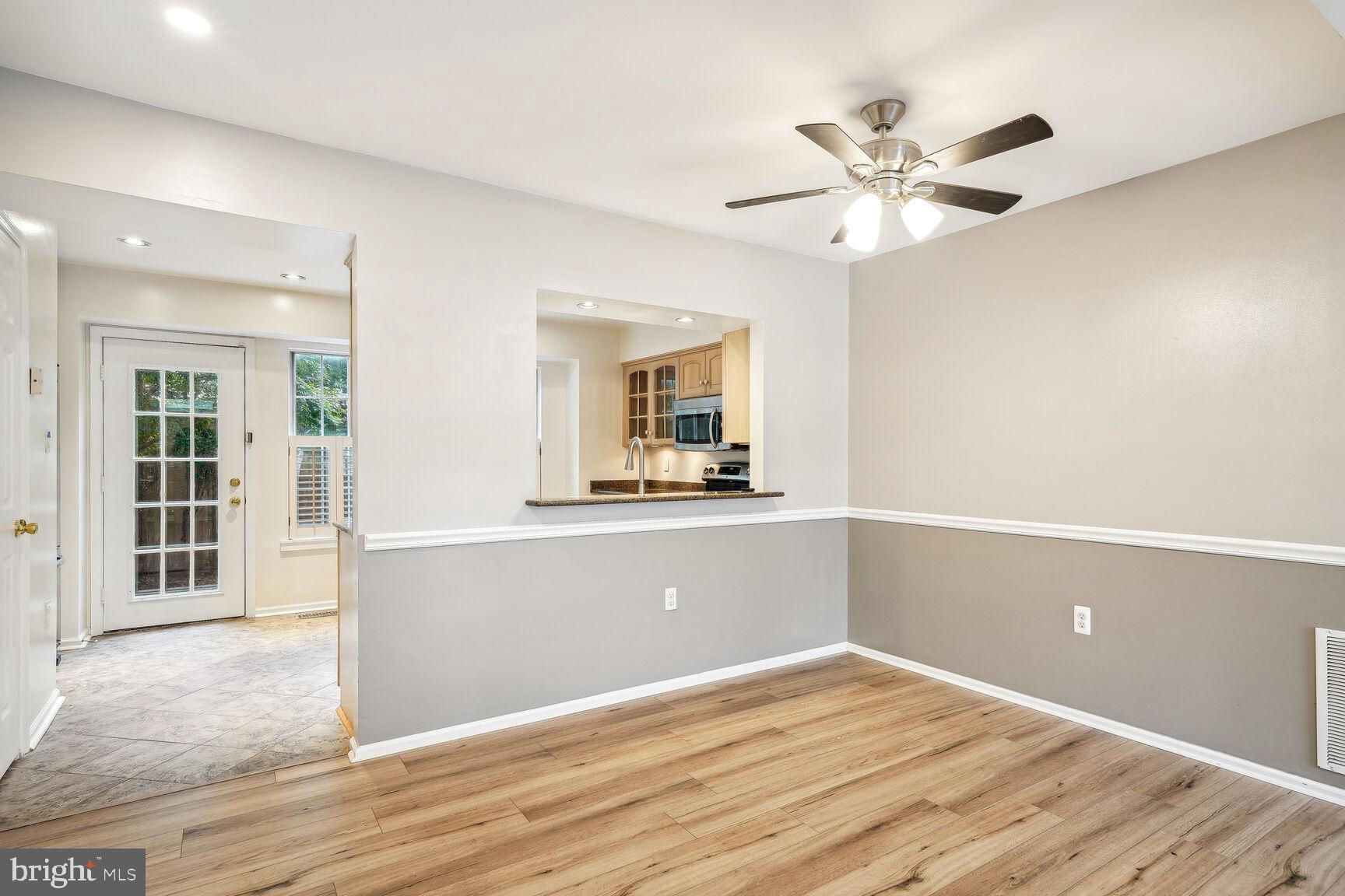 Fantastic 4 level townhome that has been updated from top to bottom in wonderful community and unbeatable, convenient location! LVP Flooring throughout the main and upper levels * Updated paint throughout * Light-filled open floor plan * Living room with bay window and recessed lighting * Upgraded eat-in kitchen features stainless steel appliances and granite counters * Relaxing fenced back yard with beautiful landscaping and brick patio * Primary bedroom has two closets, renovated private bath, and upper level loft with skylights and ceiling fan * Second bedroom with private updated bath * Lower level family room has cozy wood fireplace and recessed lighting * Newer lower level full bath * Utility room has washer and dryer, HVAC system (2016), and water heater (2016) * New roof in 2016 * Reserved parking plus abundant extra parking * Beautiful community with lots of green space, walking trails, pond, tennis, and tot lots * Perfect location with easy access to shopping and major commuting routes * Plus more!