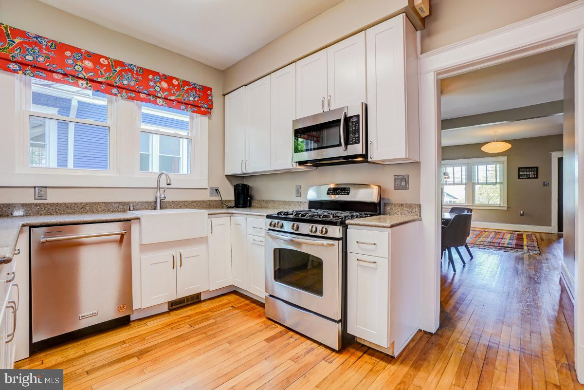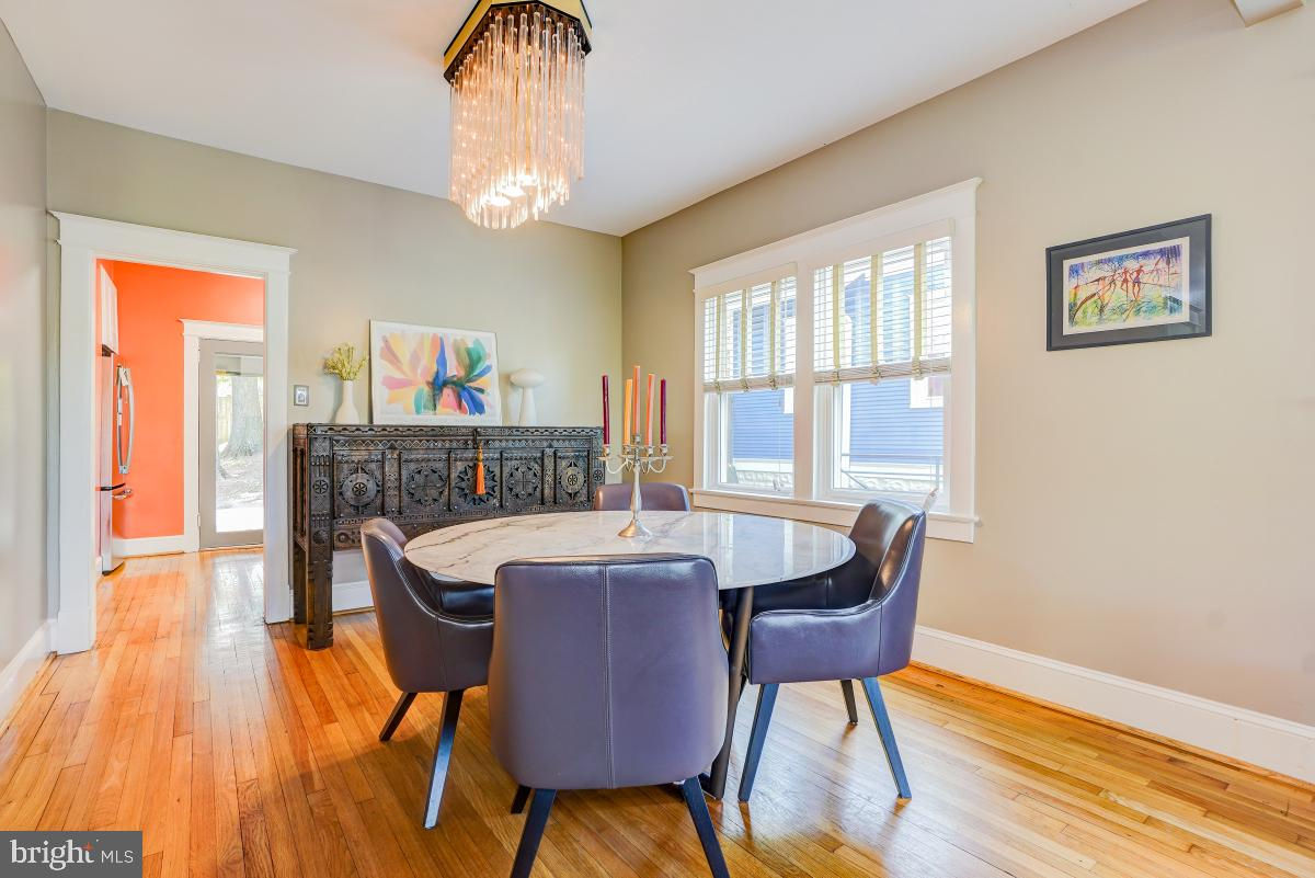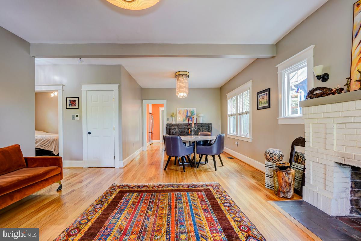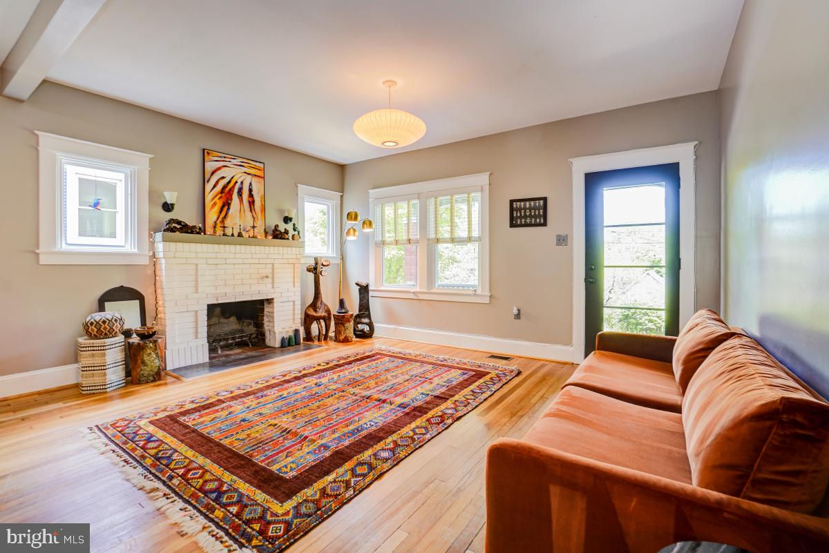 Welcome to 6618 Eastern Avenue NW, a charming Takoma Bungalow steeped in history. Built in 1918, this home exudes character with its timeless architectural details, including a classic covered front porch, a traditional floor plan, and original hardwood floors. Step inside to discover a handsome living room adorned with a wood-burning fireplace. The adjacent open dining room features a dangling crystal chandelier, perfect for hosting gatherings and special occasions. The dining room flows into the lovingly updated kitchen, creating an ideal layout for entertaining. The bright kitchen boasts quartz countertops, stainless steel appliances, handsome cabinetry, a five-burner gas range, and a porcelain farm sink. Accessible from the kitchen is a versatile mudroom, providing convenient entry to the deck and yard. The main level of the home is complete with three bedrooms and a full bathroom with a claw tub and charming beadboard accent walls. Upstairs, you'll find the primary bedroom retreat, featuring a cozy sitting room, a walk-in closet, and a private updated bathroom. Additionally, an open bonus room with a second walk-in closet and additional wall closets offers flexibility for various needs. Laundry facilities are conveniently located on this level, along with access to attic storage. While the lower level remains unfinished, it presents ample storage, offering potential for future expansion or customization to suit your needs. Outside, the fenced private yard boasts mature plantings and a deck, providing a serene outdoor retreat. This picturesque home offers a wonderful blend of historic charm and modern convenience, making it a delightful place to call home. Relish the warm sense of community as well as ready access to shopping, restaurants, and entertainment. Just 0.6 miles to the Takoma Metro Station! Steps to the major redevelopment at Walter Reed, the local farmer’s market, and Takoma Rec Center. Easy convenient urban living at its best!