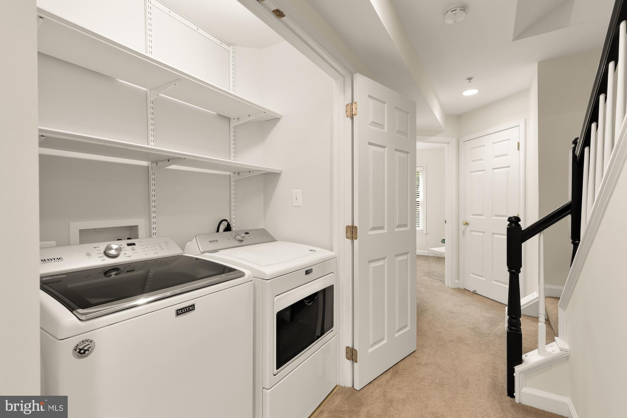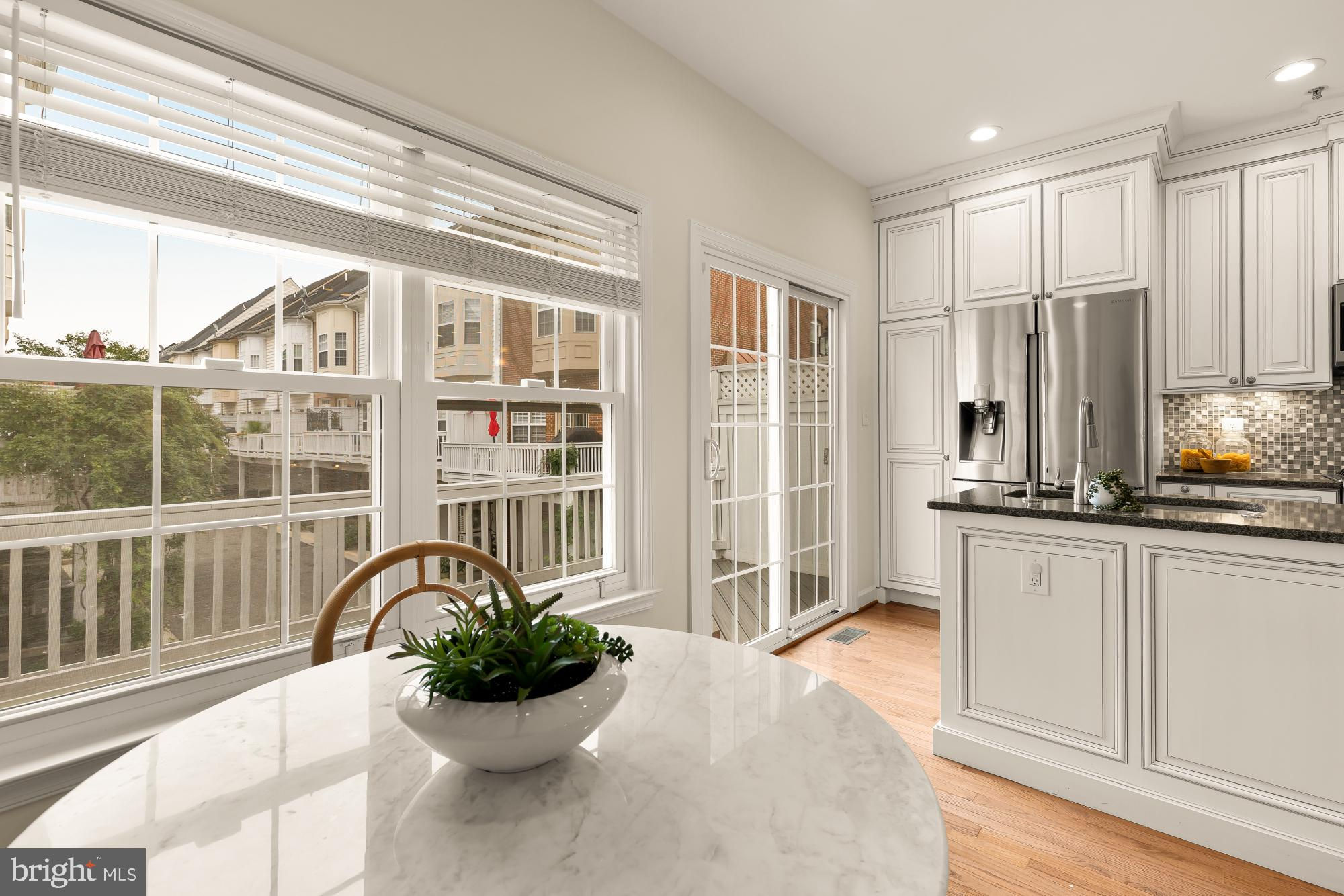 Incredible location tucked away in a quiet enclave yet just steps from the vibrant Wharf! From the welcoming entry foyer find a versatile main-level bedroom or den, with a full bath, as well as direct access to the two-car garage! Upstairs, the sun-filled living room boasts crown molding and a cozy gas fireplace, while the adjacent dining room features custom built-ins and flows seamlessly into the eat-in kitchen. Complete with a breakfast bar, kitchen island, and stainless appliances, this space is ideal for everyday living and entertaining. A rear deck off the kitchen provides the perfect spot for outdoor dining and gatherings. The second floor is home to the serene primary suite, featuring vaulted ceilings, a walk-in closet, and a spa-like en-suite bath with dual vanities. An additional bedroom, hall bath, and laundry complete this level. The top floor offers a fantastic bonus loft space with skylights — perfect for a home office, playroom, or additional bedroom. Unbeatable location with easy access to three Metro stations — Waterfront (Green), L’Enfant Plaza (Green/Yellow), and Federal Center SW (Orange/Blue/Silver) — as well as Safeway and all the restaurants, shops, and entertainment The Wharf has to offer.