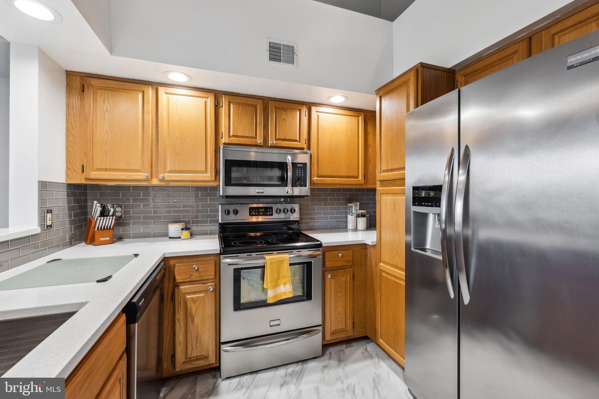 Welcome to luxury living in Kingstowne! This stunning two-level condo has two primary suites, each on a different level, for maximum privacy and comfort. It has soaring 12 and 17 foot ceilings making this condo feel even more spacious and grand. You'll love the open and airy layout, perfect for entertaining or relaxing. The first primary suite is located on the main level, while the second primary suite offers a peaceful retreat on the upper level. Each suite features its own bathroom and ample closet space. In addition to the primary suites, this condo has plenty of living space, with a dining room off the kitchen and bright and sunny living room with a cozy fireplace for ambiance. Enjoy your morning coffee or evening cocktail on the private balcony, with serene views of the surrounding tree-lined streets. This condo also features a stackable laundry set, an additional storage unit and an assigned parking space. You will love living in Kingstowne, with its many amenities, including pools, tennis courts, pickleball courts, parks, trails, playgrounds, schools, nearby shopping, and dining. Within walking distance to Aldi, Walmart, Kingstowne Towne Center and so much more! A commuter's delight with short drives to Old Town Alexandria, Franconia/Springfield, Van Dorn and Eisenhower metro stations as well as quick access to I-395, I-495, I-95, and I-295 for all your commuting needs. Approximately 10 minutes to Fort Belvoir and less than 30 minutes to D.C., Maryland, the Pentagon, and Reagan National Airport! Do not miss out on this exceptional opportunity!