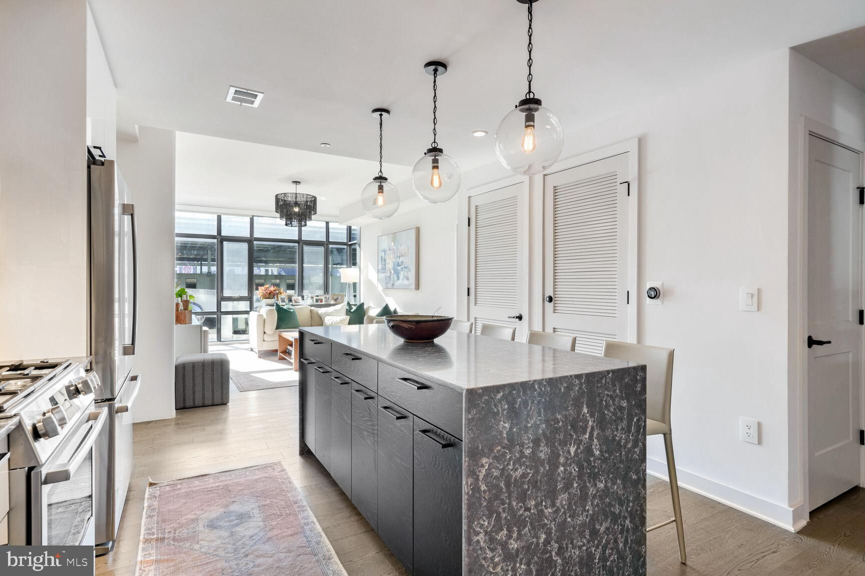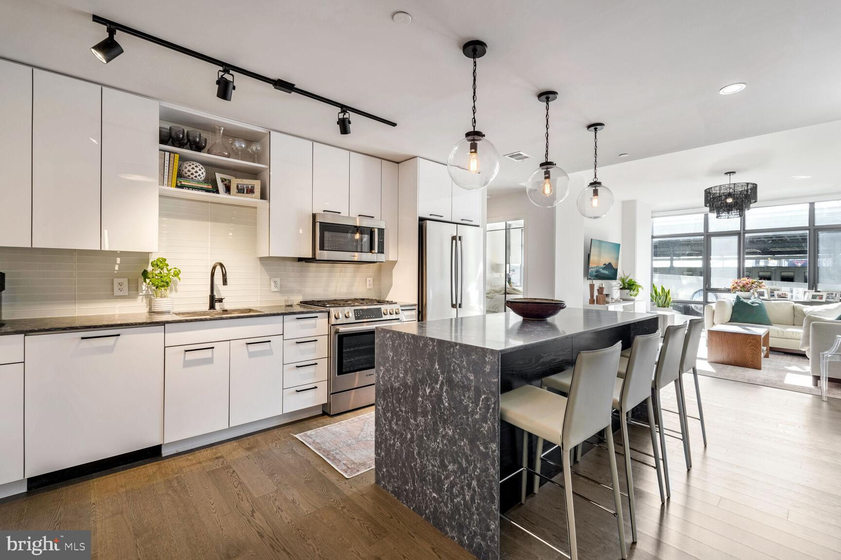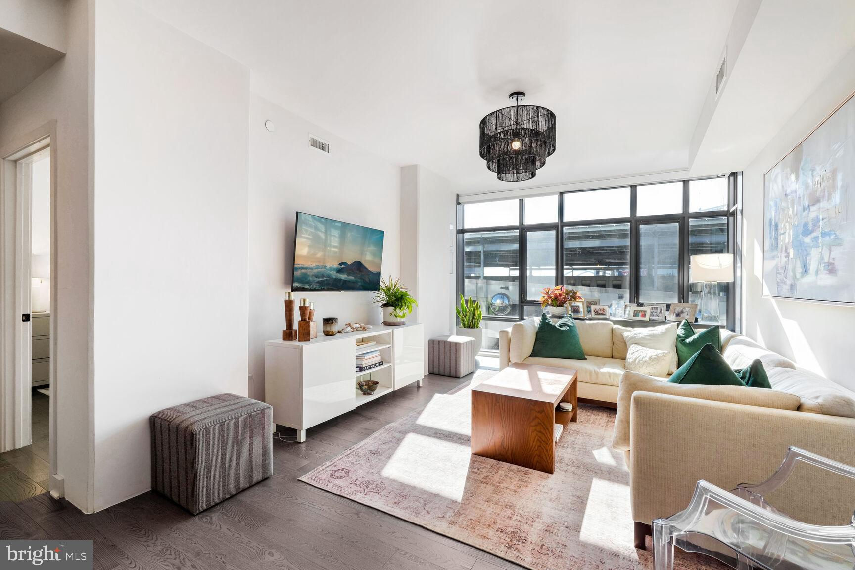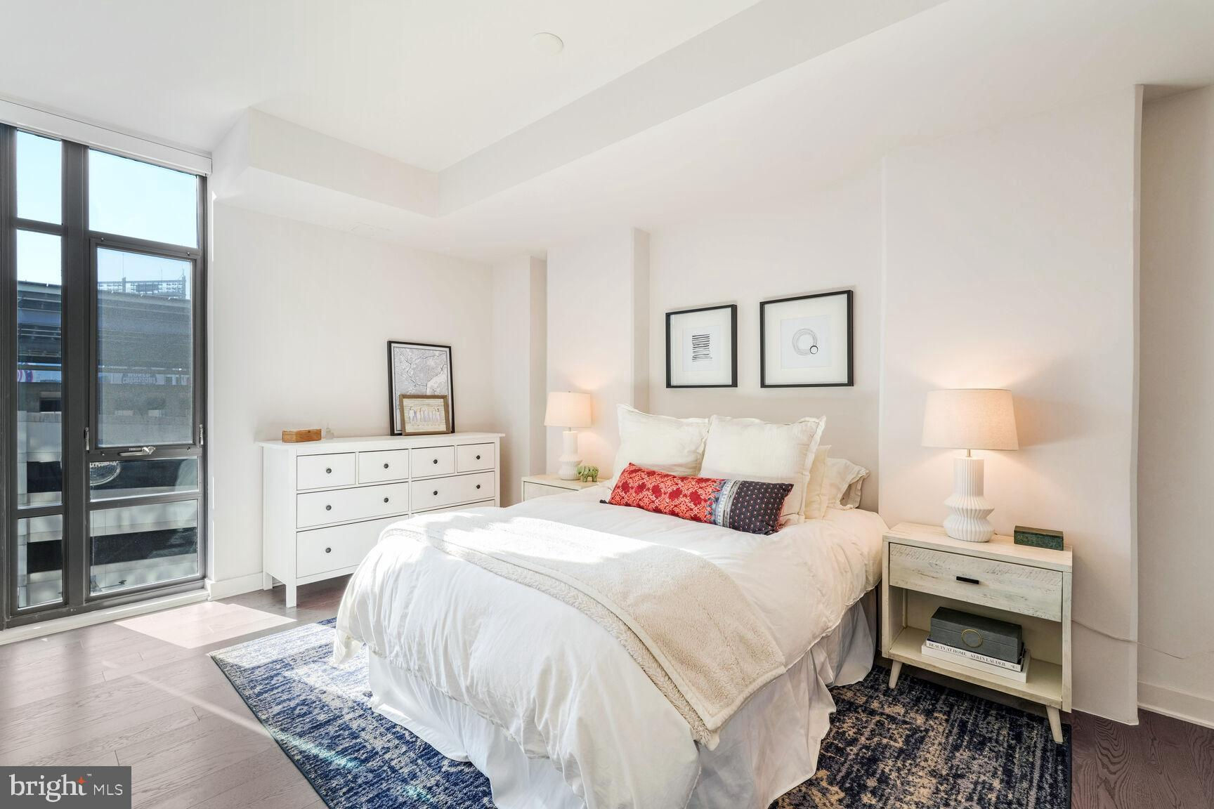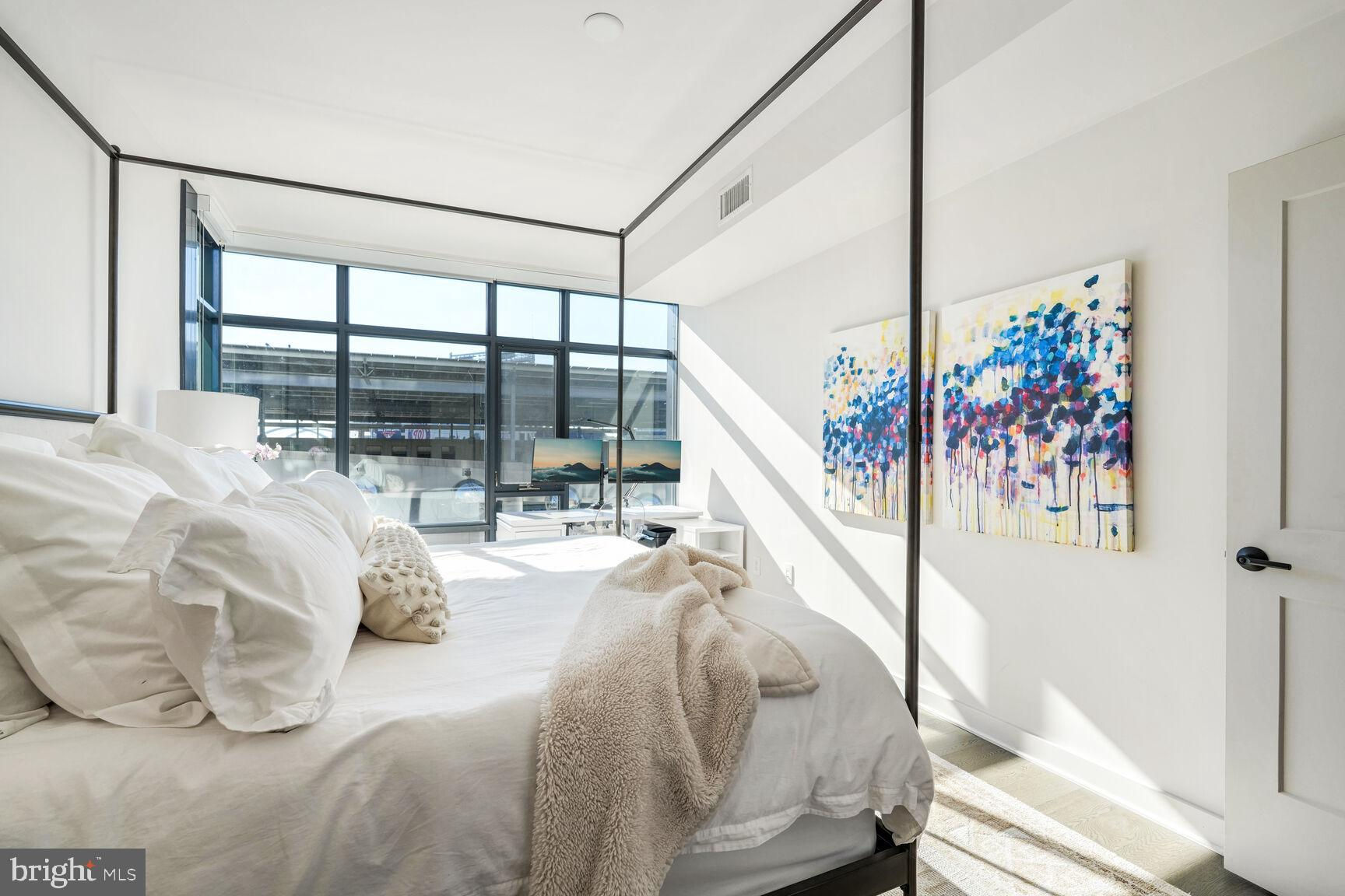 Shows like a model home!! Rare opportunity to own a true 2-bedroom inside a boutique luxury property with the best location in Southeast... right across from Nationals Park and just one block to the Navy Yard waterfront! This phenomenal unit features Bosch appliances, Silestone quartz countertops, Kahrs Canvas wood flooring, and conveys with one of the most desirable garage parking spots in the entire building, fully included in asking price. Floor-to-ceiling windows and a true Southern exposure provide spectacular natural lighting throughout the day, and both bedrooms enjoy spacious walk-through closets with baths en suite. Building amenities including on-site gym, communal game and lounge areas, rooftop pool access, and an inviting outdoor terrace overlooking Nats park are all at your fingertips. Watch concerts, baseball games, special events, and more without ever having to leave the building! With an unbeatable location sited immediately adjacent to Navy Yard, a block from Metro, and just a quick stroll from The Wharf, this property grants immediate access to some of the finest waterfront dining, entertainment, commuter, and recreational options anywhere in the city - a true urban, modern lifestyle.