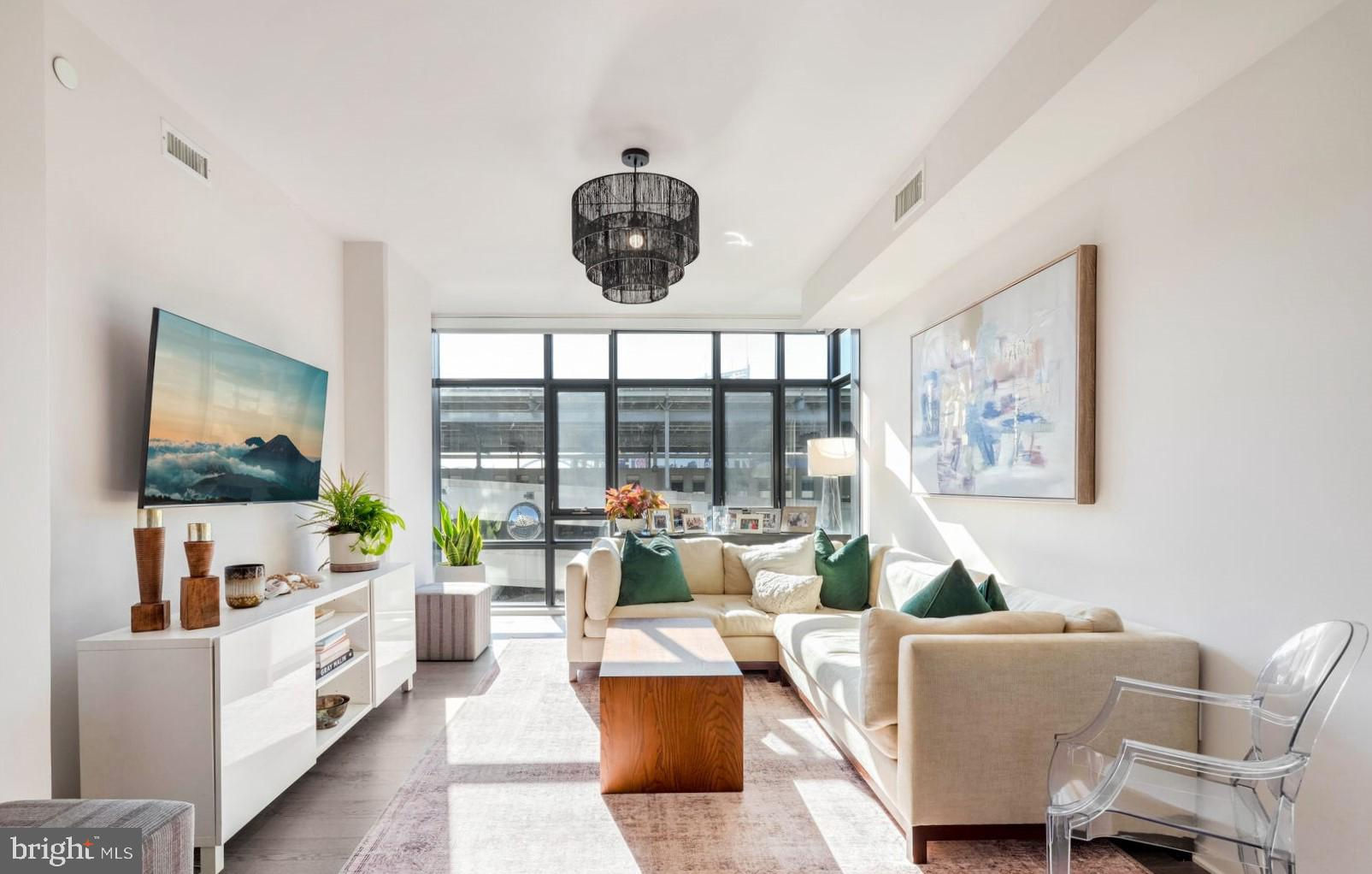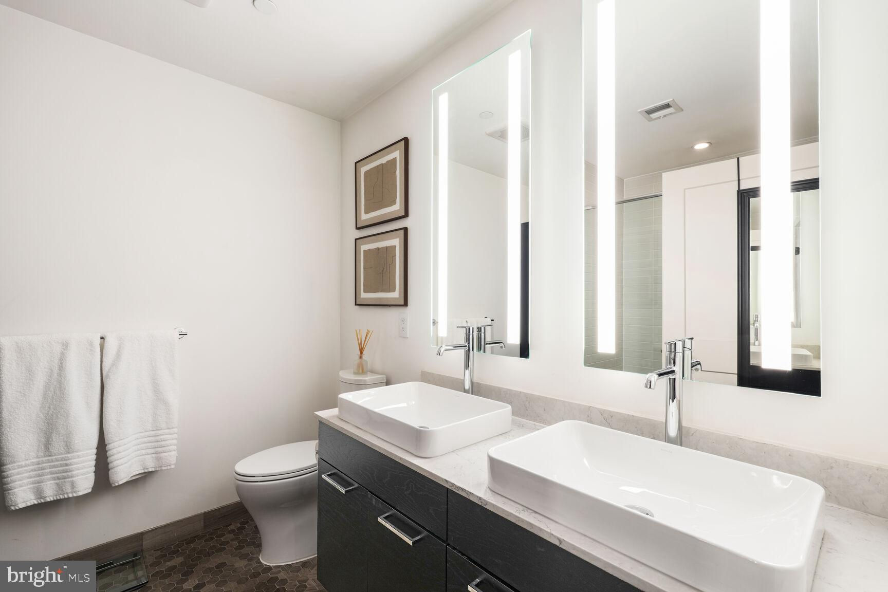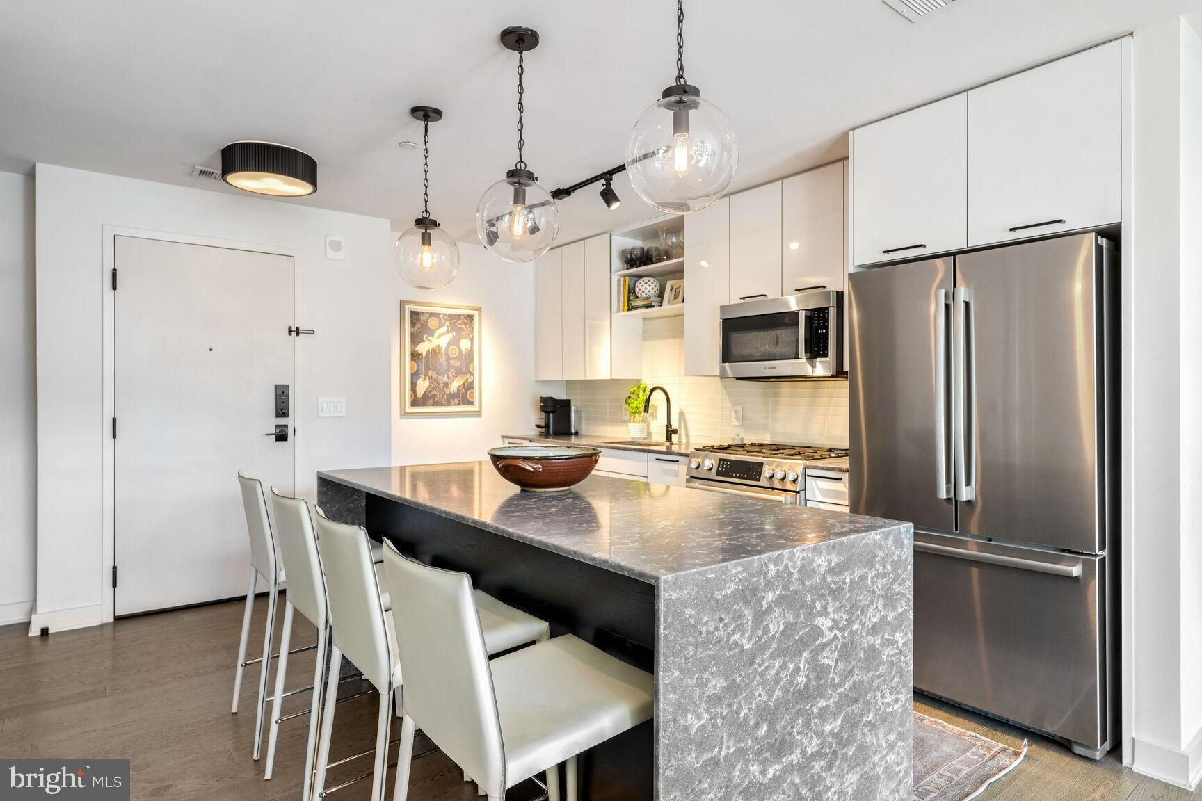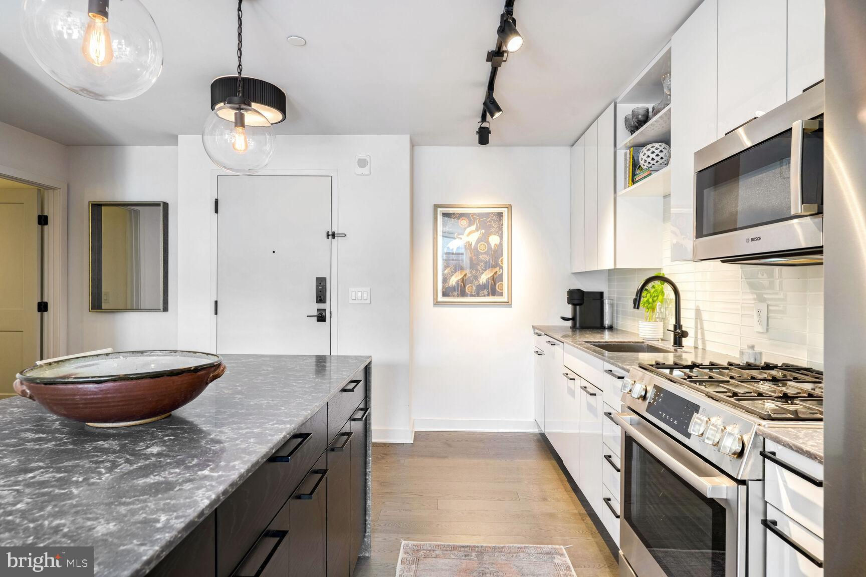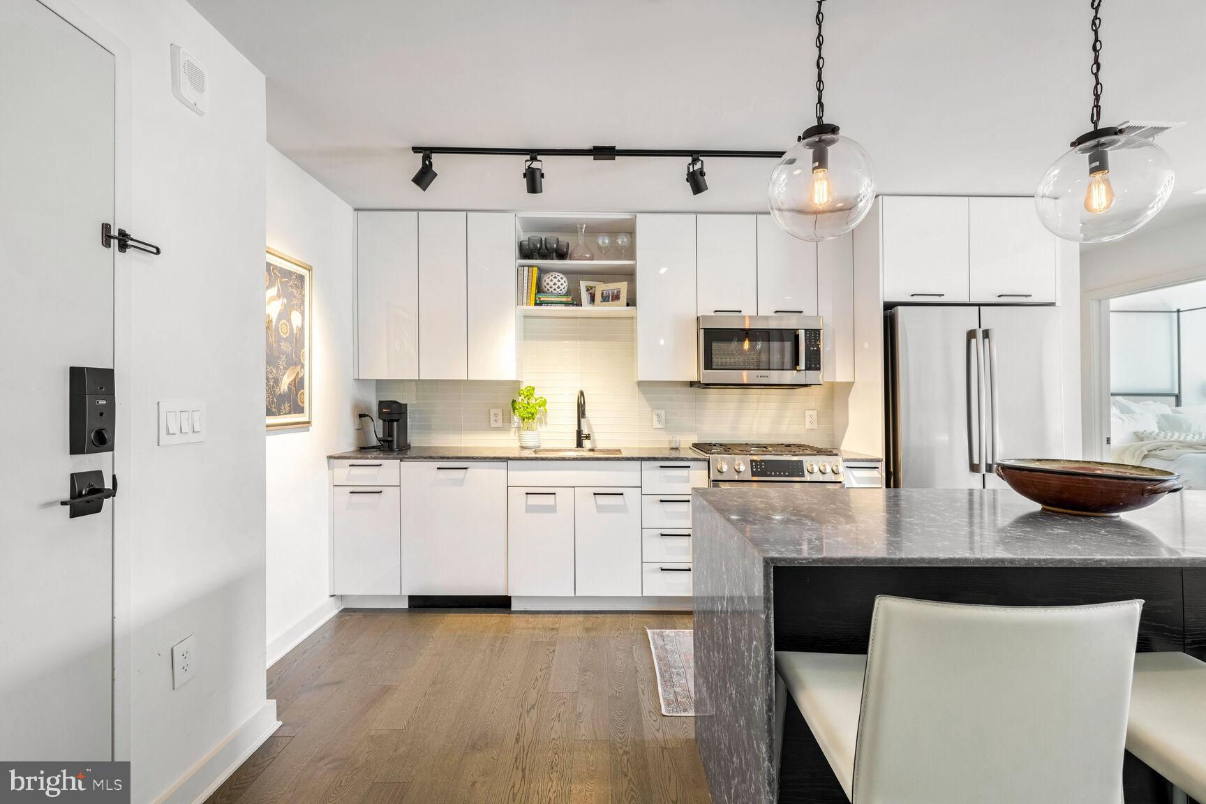 Shows like a model home!! Rare opportunity to own a true 2-bedroom inside a boutique luxury property with the best location in Southeast... right across from Nationals Park and just one block to the Navy Yard waterfront! This phenomenal unit features Bosch appliances, Silestone quartz countertops, Kahrs Canvas wood flooring, and conveys with one of the most desirable garage parking spots in the entire building, fully included in asking price. Floor-to-ceiling windows and a true Southern exposure provide spectacular natural lighting throughout the day, and both bedrooms enjoy spacious walk-through closets with baths en suite. Building amenities including on-site gym, communal game and lounge areas, rooftop pool access, and an inviting outdoor terrace overlooking Nats park are all at your fingertips. Watch concerts, baseball games, special events, and more without ever having to leave the building! With an unbeatable location sited immediately adjacent to Navy Yard, a block from Metro, and just a quick stroll from The Wharf, this property grants immediate access to some of the finest waterfront dining, entertainment, commuter, and recreational options anywhere in the city - a true urban, modern lifestyle.