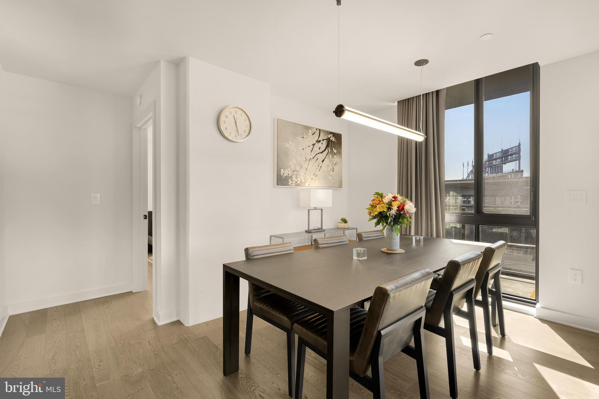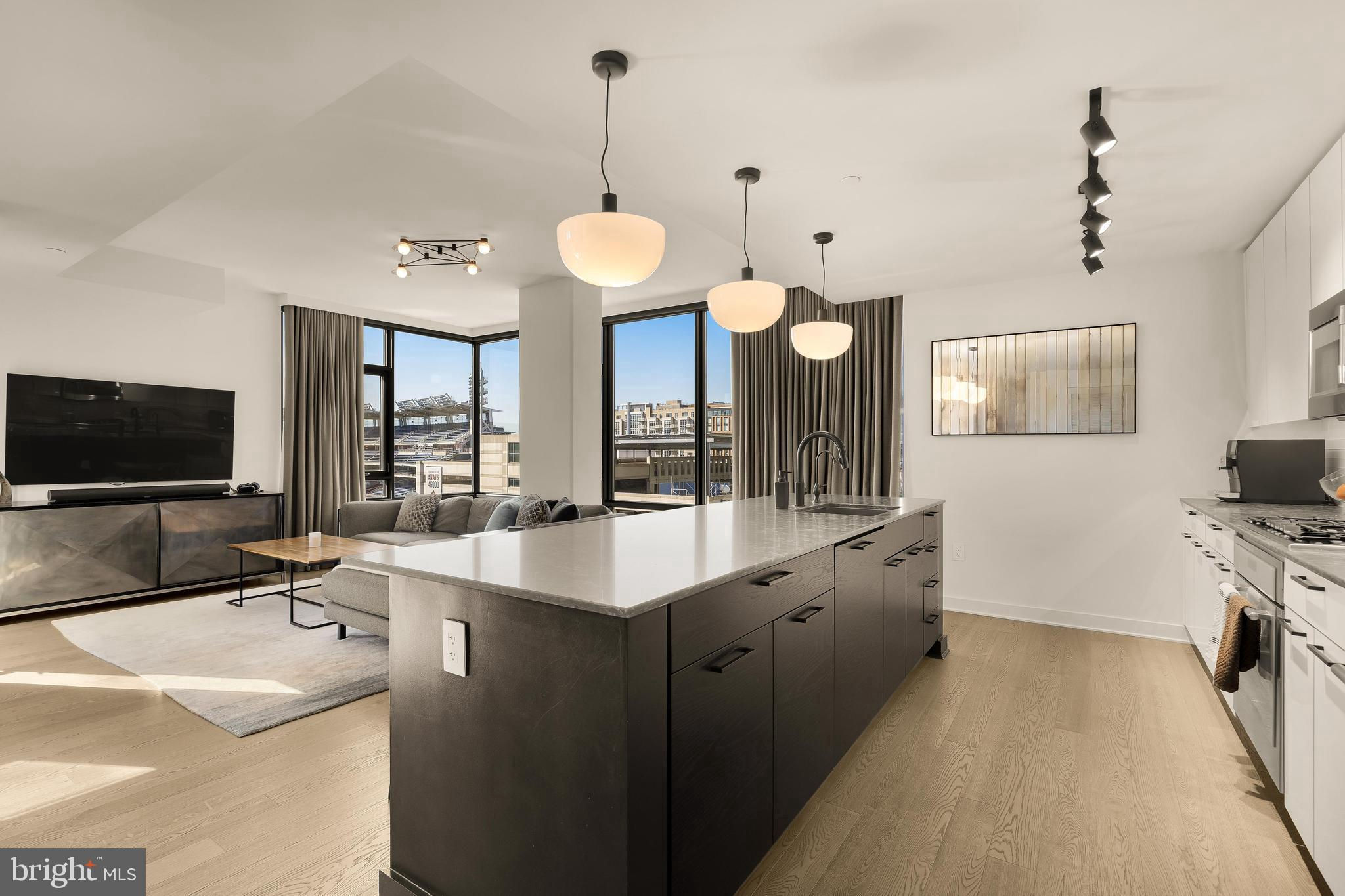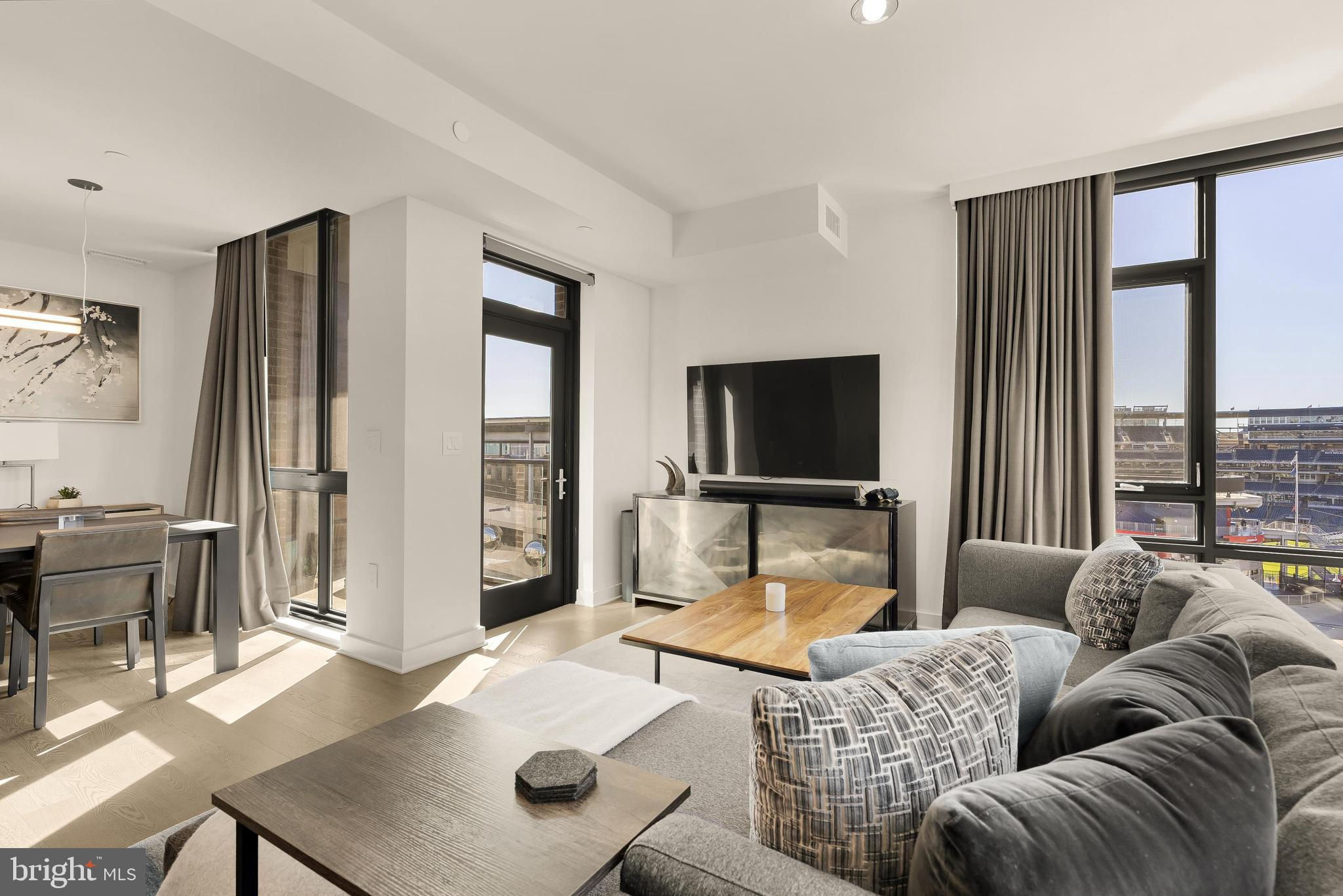 Experience life at the top at 70 N Street SE #601, where modern sophistication meets effortless style in the heart of Navy Yard. This stunning 2-bedroom, 2-bath corner residence with garage parking and storage unit at The EnVy offers a front-row seat to the city, with floor-to-ceiling windows framing sweeping views of Nationals Park, the Potomac River, and the skyline beyond. Bathed in natural light, the home’s open layout and soaring 10-foot ceilings create an atmosphere of refined spaciousness. Step onto your private balcony to catch a Nationals game, or draw the custom floor-to-ceiling shades and unwind in quiet luxury—from the gracious chef’s kitchen to the serene primary suite. The primary bathroom evokes a spa-like retreat with a dual vanity, freestanding soaking tub, and frameless glass shower—each element crafted with elegance and intention. Residents of The EnVy enjoy an unrivaled amenity collection, including a rooftop terrace with panoramic city views, outdoor grill stations, elegant entertaining spaces, private work suites, a state-of-the-art fitness center, and secure underground parking. Perfectly positioned between The Wharf and Capitol Hill, this home places you at the center of D.C.’s most dynamic corridor—where waterfront recreation, acclaimed dining, and cultural energy converge. 70 N Street SE #601 isn’t just an address; it’s a lifestyle defined by light, luxury, and location.