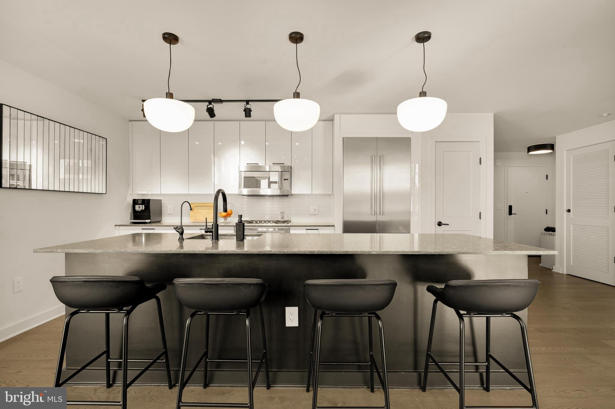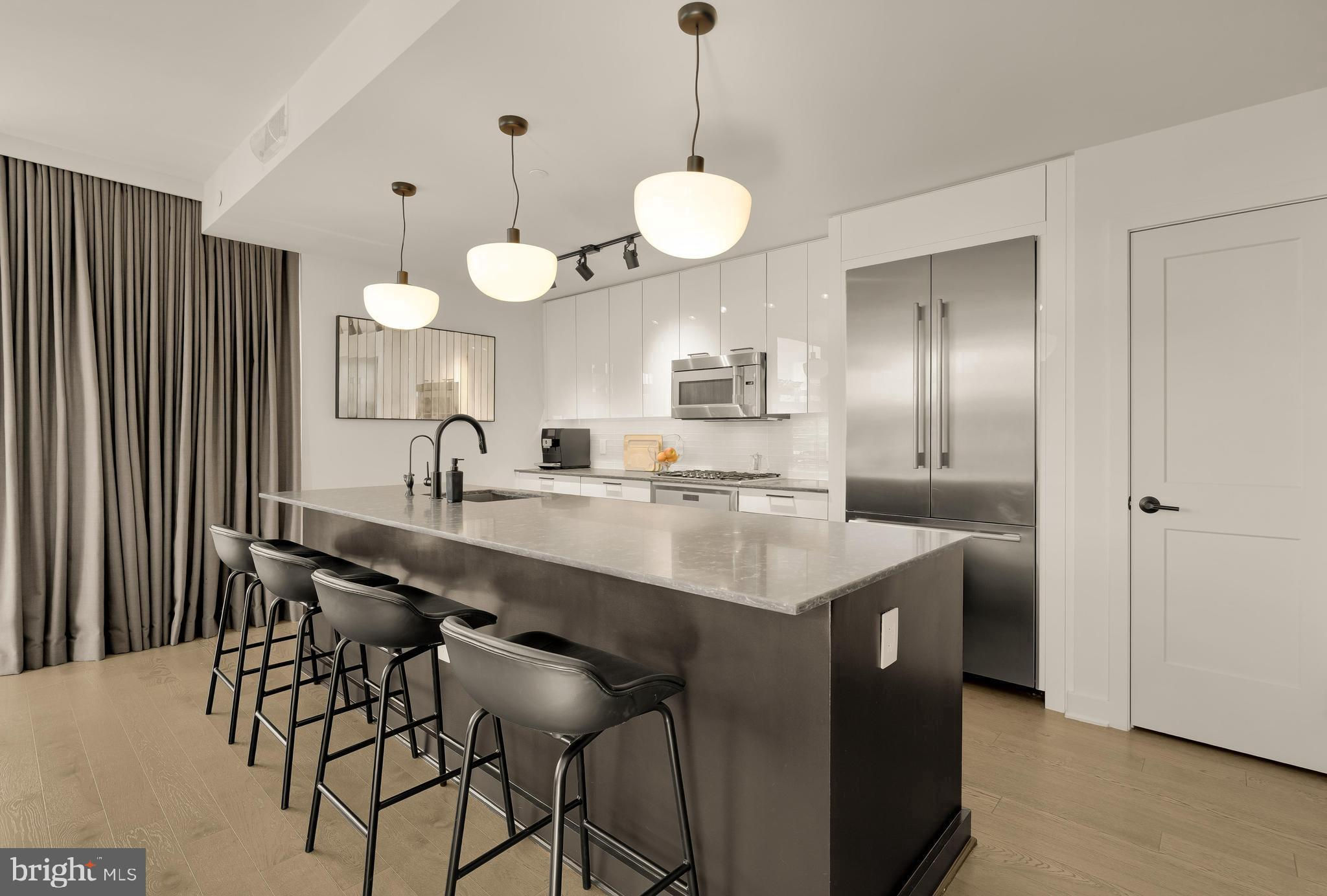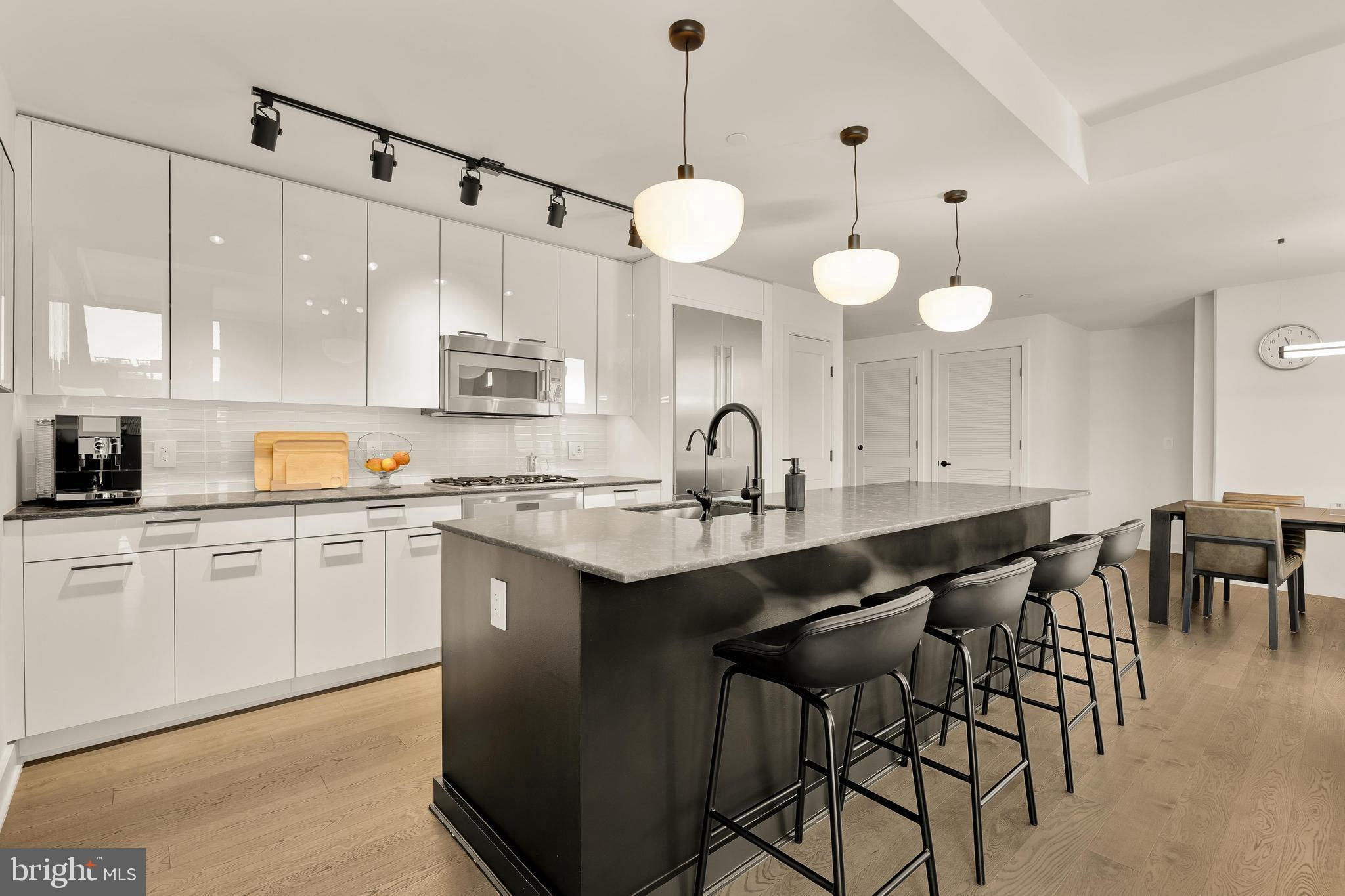 Experience life at the top at 70 N Street SE #601, where modern sophistication meets effortless style in the heart of Navy Yard. This stunning 2-bedroom, 2-bath corner residence with garage parking and storage unit at The EnVy offers a front-row seat to the city, with floor-to-ceiling windows framing sweeping views of Nationals Park, the Potomac River, and the skyline beyond. Bathed in natural light, the home’s open layout and soaring 10-foot ceilings create an atmosphere of refined spaciousness. Step onto your private balcony to catch a Nationals game, or draw the custom floor-to-ceiling shades and unwind in quiet luxury—from the gracious chef’s kitchen to the serene primary suite. The primary bathroom evokes a spa-like retreat with a dual vanity, freestanding soaking tub, and frameless glass shower—each element crafted with elegance and intention. Residents of The EnVy enjoy an unrivaled amenity collection, including a rooftop terrace with panoramic city views, outdoor grill stations, elegant entertaining spaces, private work suites, a state-of-the-art fitness center, and secure underground parking. Perfectly positioned between The Wharf and Capitol Hill, this home places you at the center of D.C.’s most dynamic corridor—where waterfront recreation, acclaimed dining, and cultural energy converge. 70 N Street SE #601 isn’t just an address; it’s a lifestyle defined by light, luxury, and location.