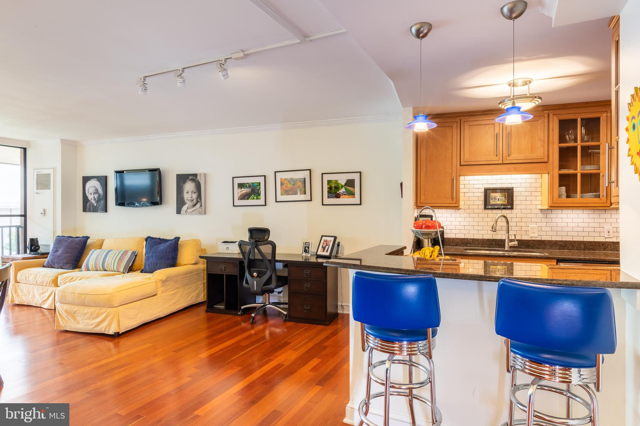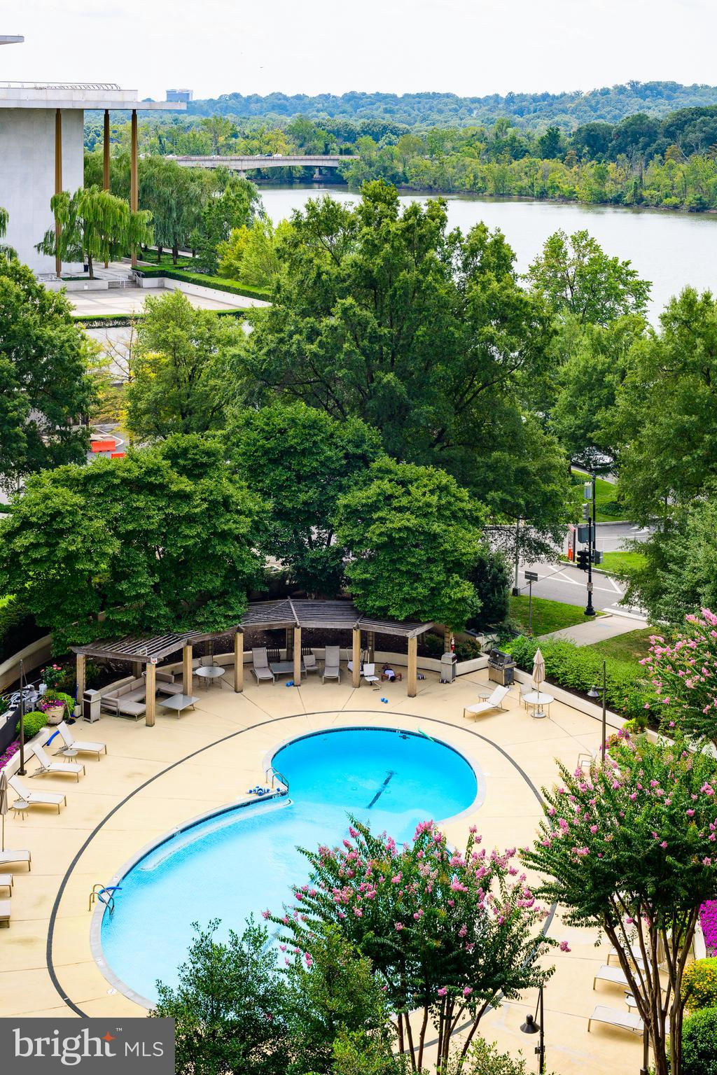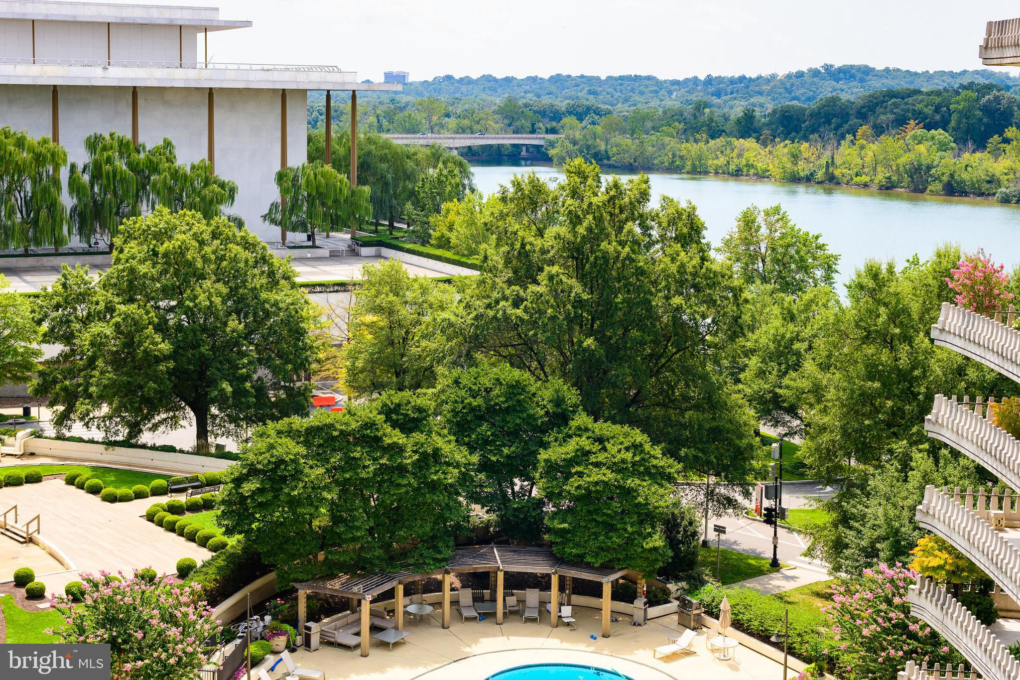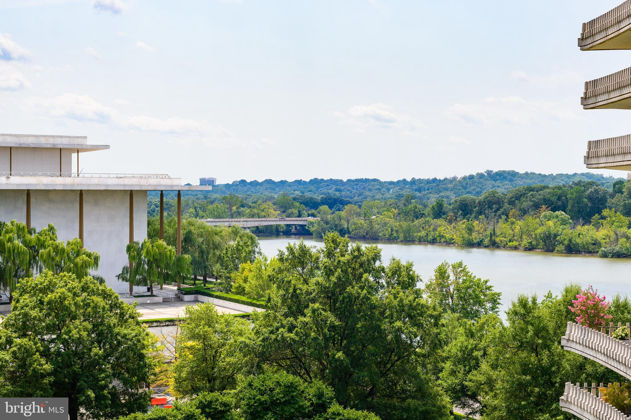 Floor to ceiling windows in every room offer an unobstructed view -even from sitting inside -of the Potomac River and Kennedy Center! 1390 Sq. ft 2 bedroom, 2 & 1/2 bath interior plan. Great floorplan with open kitchen. Open chef's kitchen features granite countertops, classic subway tile backsplash, fine light wood cabinetry with glass-front upper cabinets, and breakfast bar with pendant lighting. Top-of-the-line appliances include Viking Professional gas range, Bosch dishwasher, Sub-Zero refrigerator, Sub-Zero wine refrigerator, and GE Profile microwave. Powder room with beautiful marble countertop. Master suite with huge walk in closet. Master bath has soaking tub surround with tile detailing. Second bedroom has ensuite bath with white wood vanity, marble countertop, and subway tile surround. Additional storage room. One underground garage space included. Fee includes property taxes, utilities, maintenance of HVAC, basic cable, internet, and parking. Watergate amenities include exercise room, salt water pool, on-site shopping, 24 hour desk, roof deck. Walk to Foggy Bottom Metro, Kennedy Center, Whole Foods, and Georgetown Waterfront. Enjoy on-site shopping, restaurants, Watergate Hotel, and many more conveniences.
