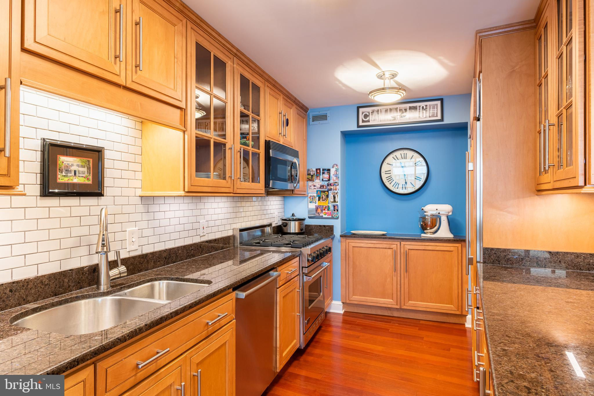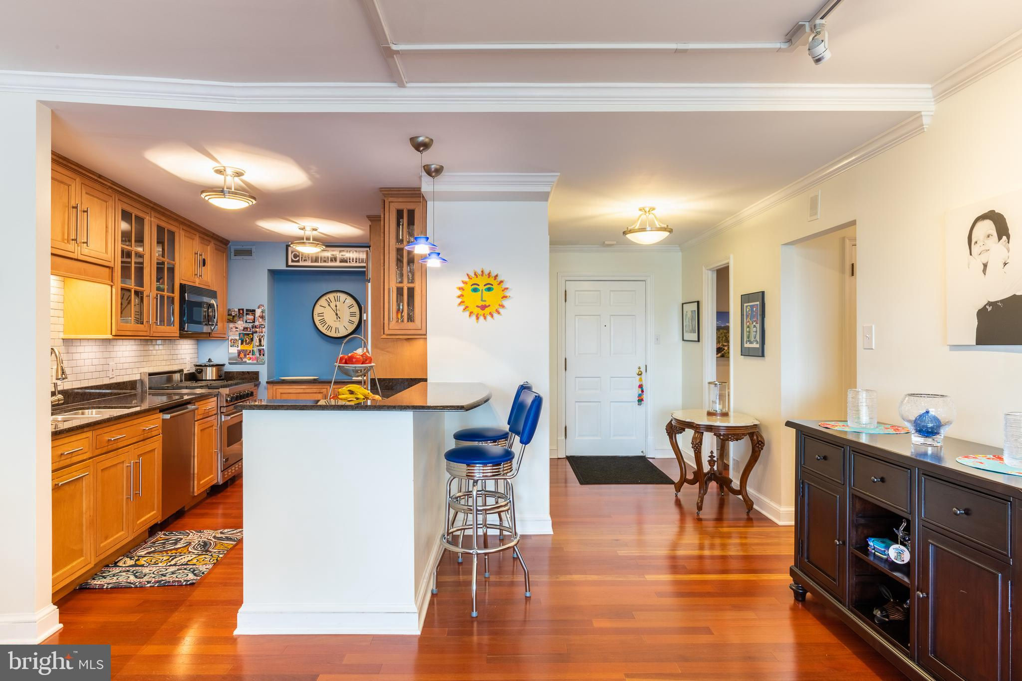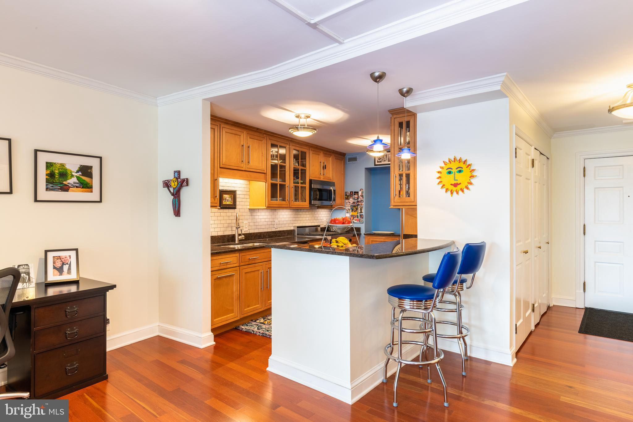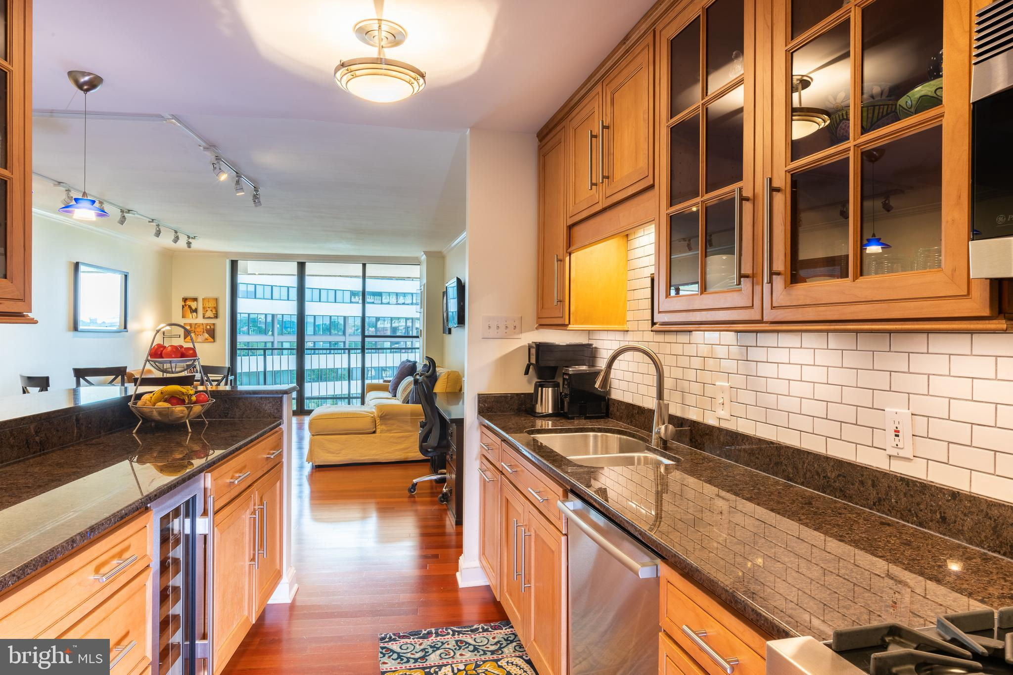Floor to ceiling windows in every room offer an unobstructed view -even from sitting inside -of the Potomac River and Kennedy Center! 1390 Sq. ft 2 bedroom, 2 & 1/2 bath interior plan. Great floorplan with open kitchen. Open chef's kitchen features granite countertops, classic subway tile backsplash, fine light wood cabinetry with glass-front upper cabinets, and breakfast bar with pendant lighting. Top-of-the-line appliances include Viking Professional gas range, Bosch dishwasher, Sub-Zero refrigerator, Sub-Zero wine refrigerator, and GE Profile microwave. Powder room with beautiful marble countertop. Master suite with huge walk in closet. Master bath has soaking tub surround with tile detailing. Second bedroom has ensuite bath with white wood vanity, marble countertop, and subway tile surround. Additional storage room. One underground garage space included. Fee includes property taxes, utilities, maintenance of HVAC, basic cable, internet, and parking. Watergate amenities include exercise room, salt water pool, on-site shopping, 24 hour desk, roof deck. Walk to Foggy Bottom Metro, Kennedy Center, Whole Foods, and Georgetown Waterfront. Enjoy on-site shopping, restaurants, Watergate Hotel, and many more conveniences.