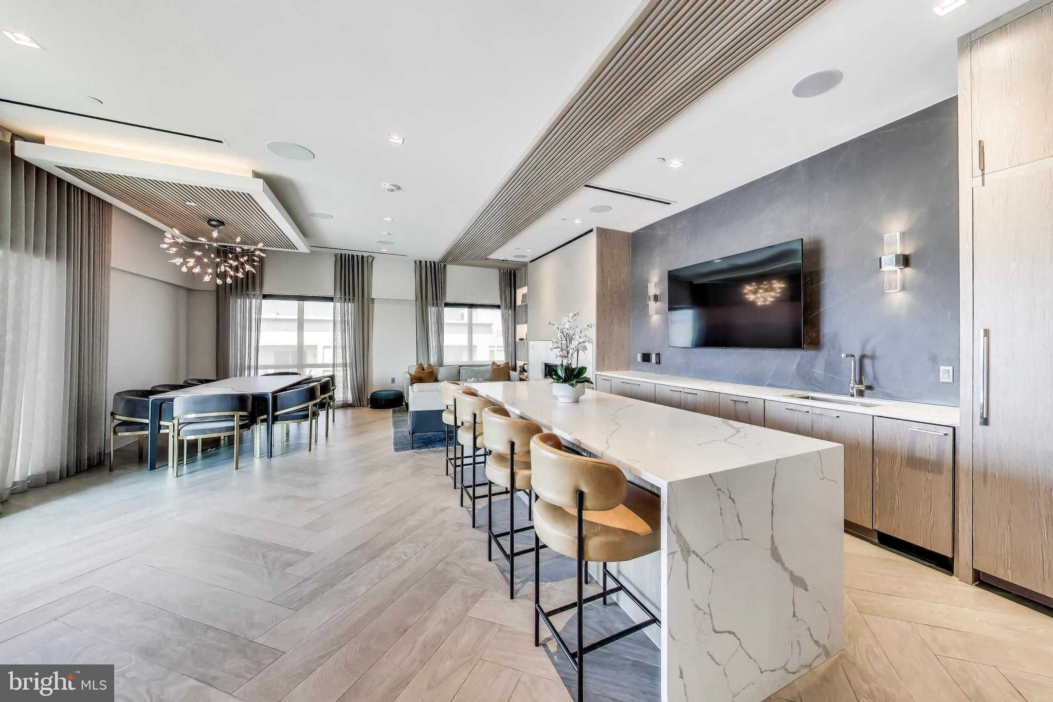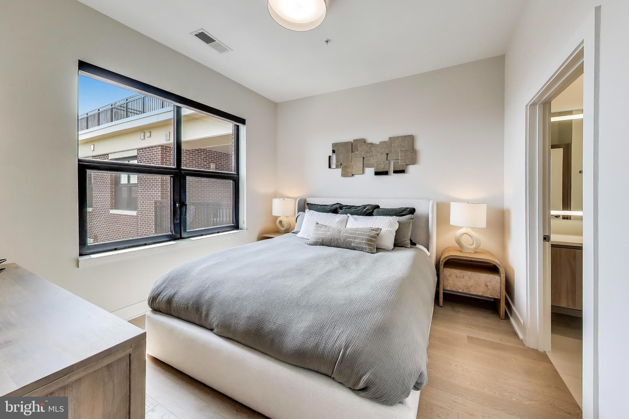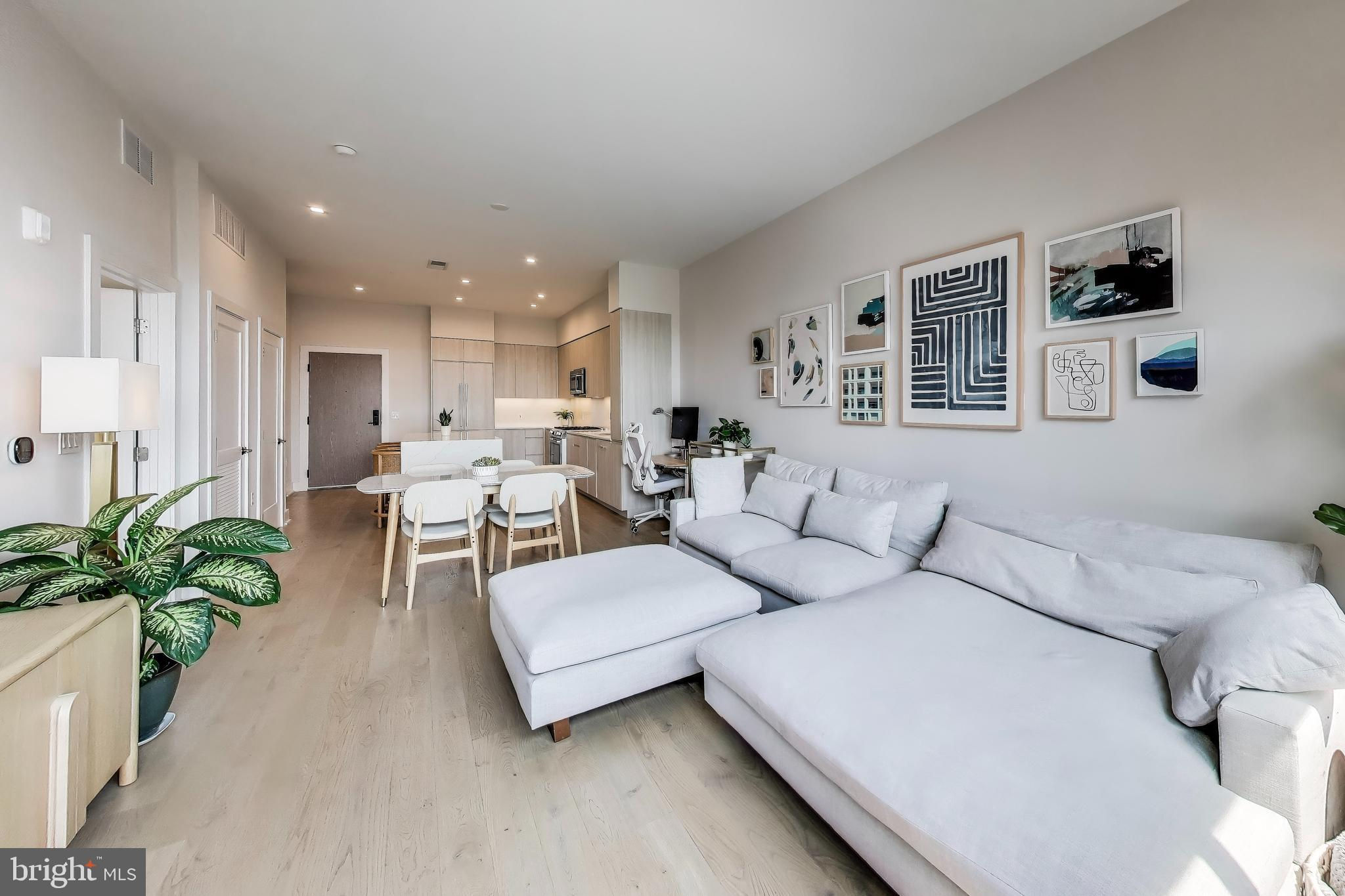 Buyer got cold feet. Their loss, your gain! Welcome to this pristine 1 bed, 1.5-bath residence at The Dylan — where modern design meets everyday convenience in one of the most connected neighborhoods in Northern Virginia. Perfectly positioned in Potomac Yard, this home offers a seamless blend of comfort and style, enhanced by the rare benefit of TWO reserved garage parking spaces located just steps from the elevator. Built in 2023, the unit exudes a fresh, sophisticated feel with wide-plank white oak flooring, stainless steel appliances, a wine fridge, and a clean, modern layout that makes entertaining effortless. The bright and open kitchen flows into spacious living and dining areas, while the primary suite is anchored by a fully custom walk-in closet with cabinet backlighting and a spa-like bathroom featuring a walk-in shower. Every detail has been thoughtfully designed with quality and ease of living in mind. The Dylan offers a curated mix of amenities, including a full gym with state-of-the-art equipment, a one-of-a-kind crafting room, pet wash station, secure bike room, stylish community lounge, and a rooftop deck with grills, comfortable seating, and panoramic views. Set in the heart of Potomac Yard, the location puts you just a short walk from the new Potomac Yard Metro Station and an expansive retail district filled with essentials and conveniences. Nearby Mount Vernon Avenue in Del Ray offers dining and shopping, while scenic trails lead to Old Town Alexandria and National Landing. A large playground and splash pad just down the block add to the neighborhood’s vibrant appeal.