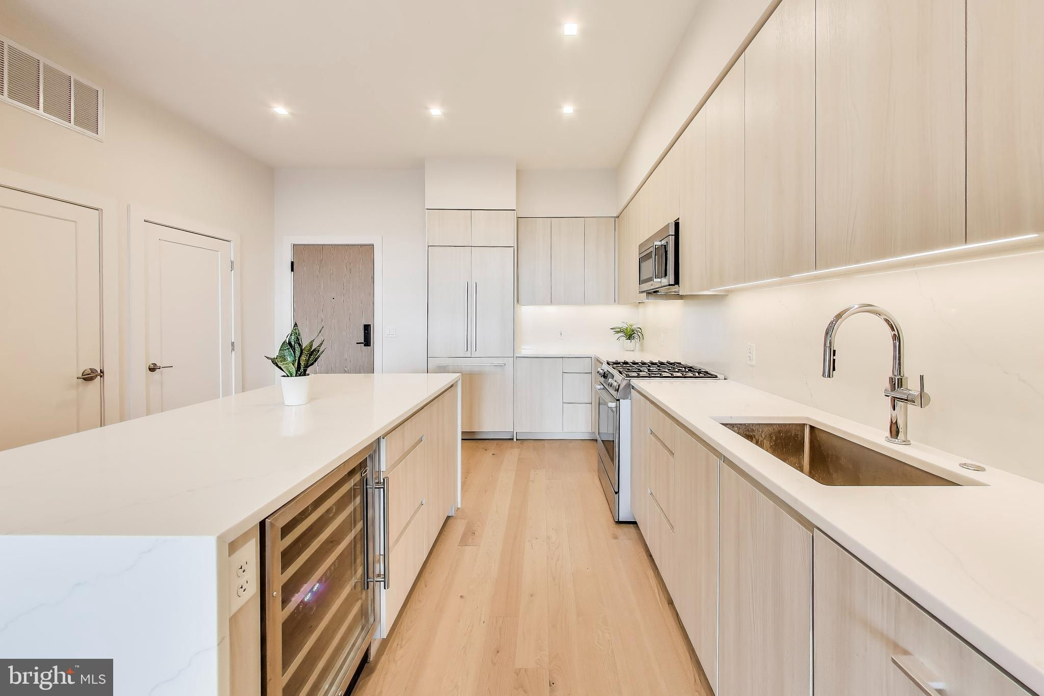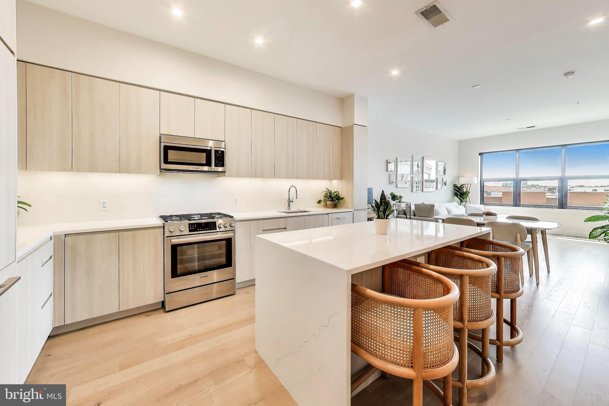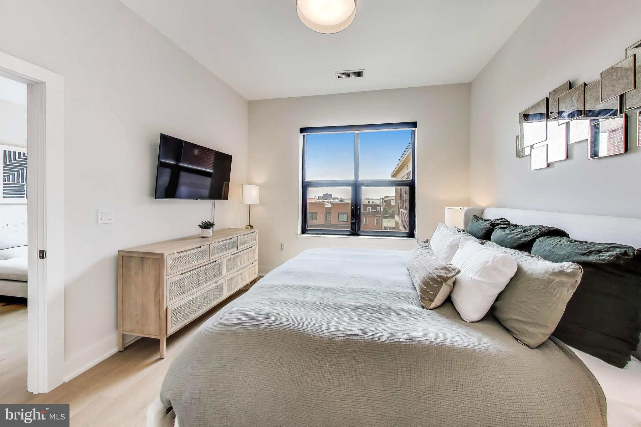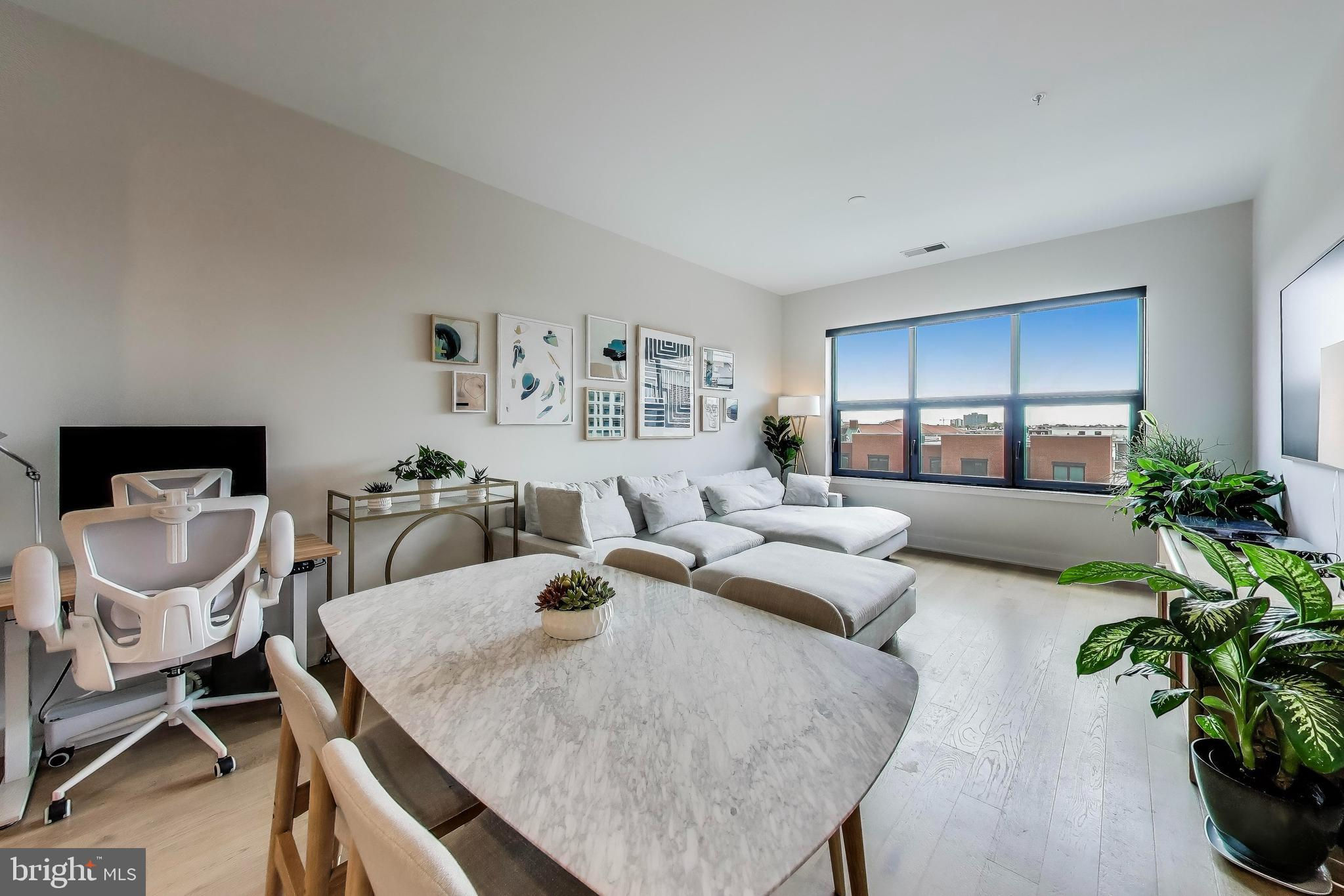 Buyer got cold feet. Their loss, your gain! Welcome to this pristine 1 bed, 1.5-bath residence at The Dylan — where modern design meets everyday convenience in one of the most connected neighborhoods in Northern Virginia. Perfectly positioned in Potomac Yard, this home offers a seamless blend of comfort and style, enhanced by the rare benefit of TWO reserved garage parking spaces located just steps from the elevator. Built in 2023, the unit exudes a fresh, sophisticated feel with wide-plank white oak flooring, stainless steel appliances, a wine fridge, and a clean, modern layout that makes entertaining effortless. The bright and open kitchen flows into spacious living and dining areas, while the primary suite is anchored by a fully custom walk-in closet with cabinet backlighting and a spa-like bathroom featuring a walk-in shower. Every detail has been thoughtfully designed with quality and ease of living in mind. The Dylan offers a curated mix of amenities, including a full gym with state-of-the-art equipment, a one-of-a-kind crafting room, pet wash station, secure bike room, stylish community lounge, and a rooftop deck with grills, comfortable seating, and panoramic views. Set in the heart of Potomac Yard, the location puts you just a short walk from the new Potomac Yard Metro Station and an expansive retail district filled with essentials and conveniences. Nearby Mount Vernon Avenue in Del Ray offers dining and shopping, while scenic trails lead to Old Town Alexandria and National Landing. A large playground and splash pad just down the block add to the neighborhood’s vibrant appeal.