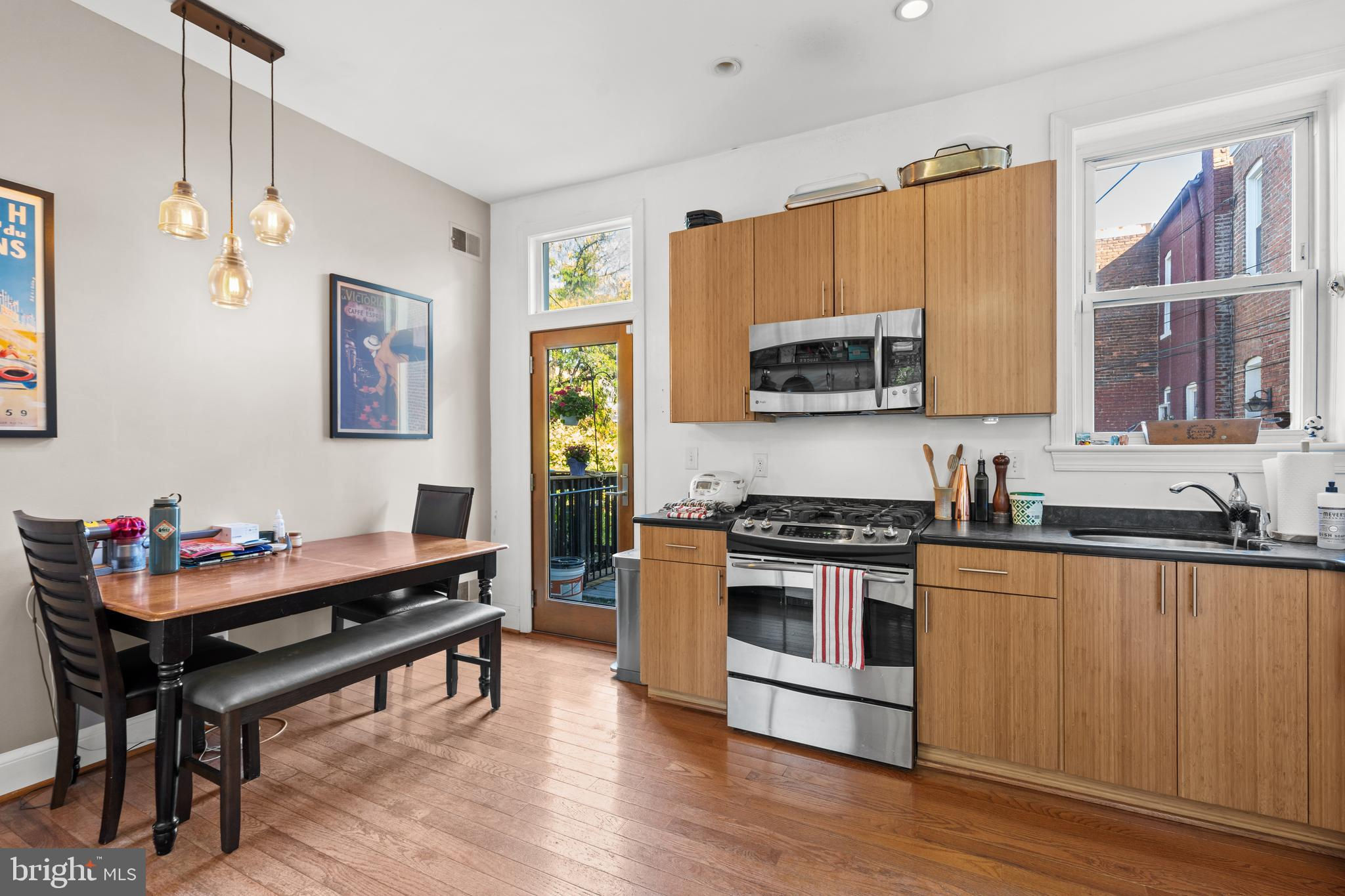 This pretty blue house checks the best boxes. 1,788 total square feet turnkey and ready. Located within the H street corridor within easy walking distance to all of Capitol Hill. Metros, restaurants, parks, just about everything that makes one want to be a part of city living. 2 spacious bedrooms and 1 1/2 bathrooms upstairs and 1 bedroom 1 bath downstairs. C of O and business license. Renovated kitchens, hardwood floors, high ceilings, 2 fireplaces and new roof. Upstairs kitchen has two under counter refrigerators that have the same volume as a standard fridge. A party size deck out back and a yard for gardening and entertaining. A great example of capitol Hill living where the original meets the contemporary.