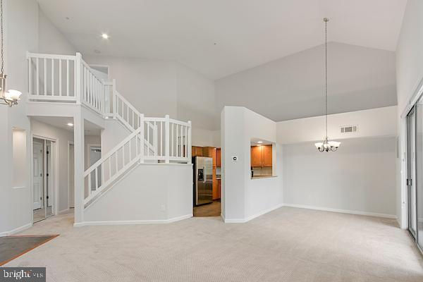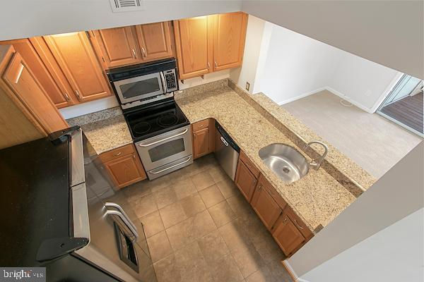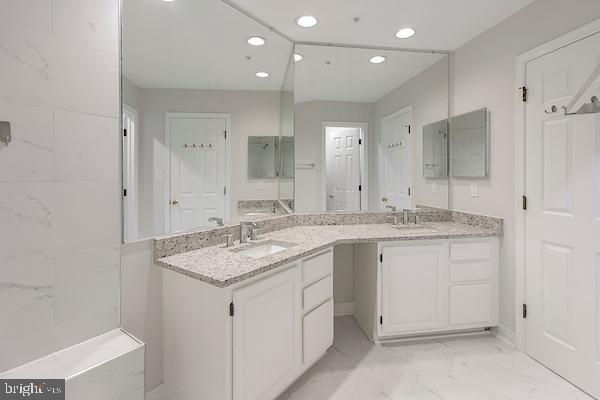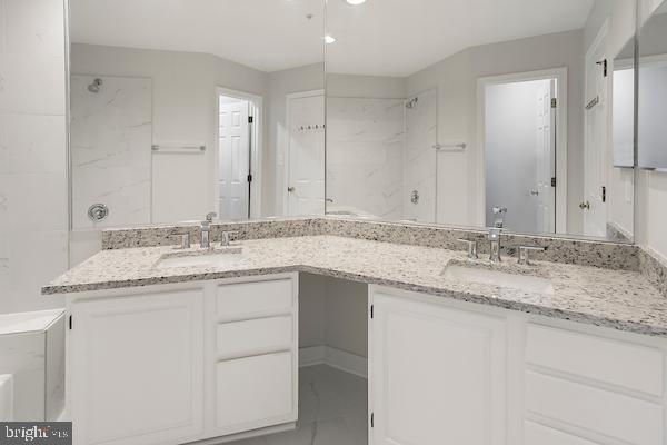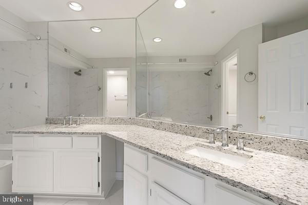 Welcome to this bright, spacious two-level condo in the heart of Kingstowne. Blending comfort with convenience, the home features an open floor plan highlighted by a dramatic skylit cathedral ceiling that fills the living spaces with natural light. The inviting living room centers around a decorative fireplace, while the adjoining dining area opens to a private deck—perfect for morning coffee or winding down in the evening. The modern kitchen is both stylish and functional, showcasing granite countertops, stainless steel appliances, and generous cabinetry—ideal for everyday living or entertaining. A main-level half bath and three large storage areas add practicality to the layout. Upstairs, two primary suites each feature a private full bath and large walk-in closet, providing comfort and privacy for roommates, guests, or anyone who appreciates dual retreats. Additional highlights include one assigned parking space and access to all of Kingstowne’s sought-after amenities—pools, fitness centers, tennis courts, playgrounds, and scenic walking trails. Conveniently located just 2.5 miles from the Franconia-Springfield Metro Station and minutes to major commuter routes, shops, and restaurants, this home offers suburban ease with quick access to the city. Thoughtfully updated for modern living, the home includes freshly painted interiors, fully renovated bathrooms (2023), and new flooring throughout. A new HVAC system plus a new washer and dryer (both 2024) ensure year-round comfort and peace of mind. Experience the best of Kingstowne living in this bright, stylish, and move-in-ready home.