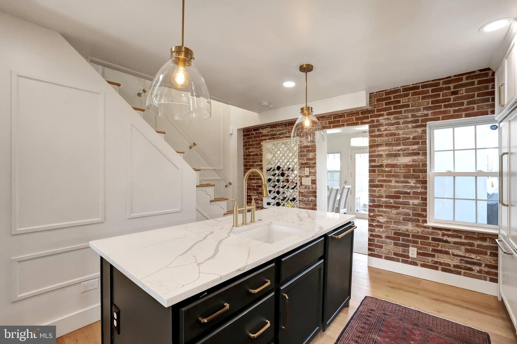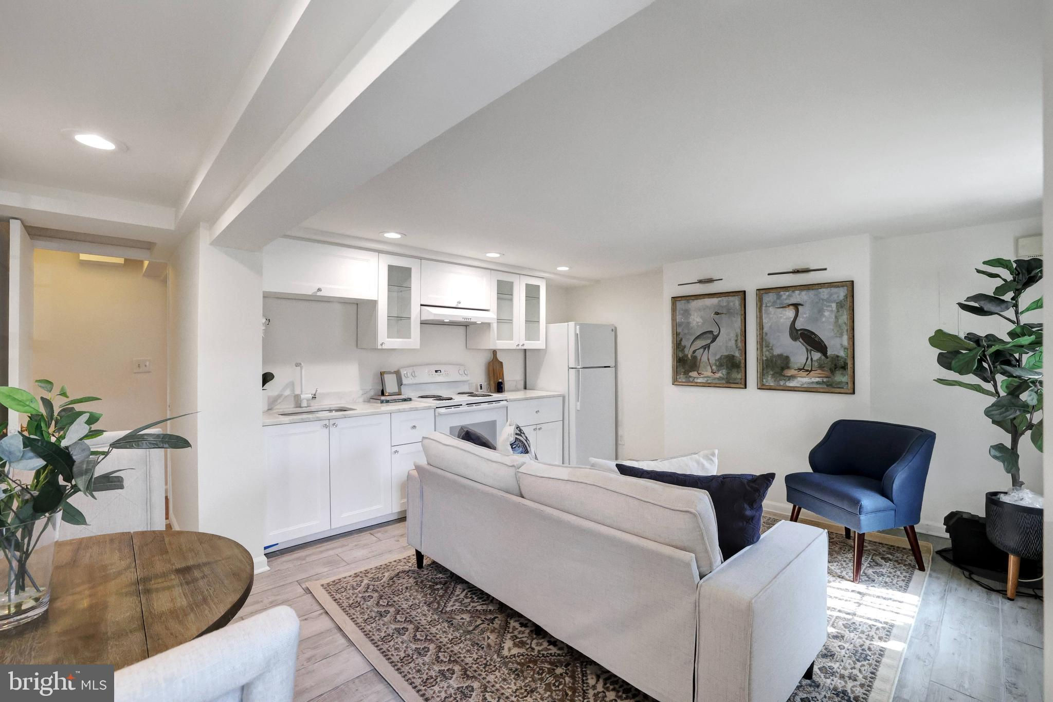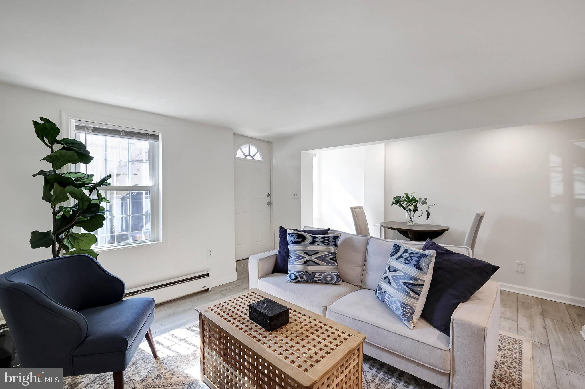 Welcome to Capitol Hill This 3-bed, 2.5-bath rowhome offers charm, versatility, and income potential in one of DC’s most desirable neighborhoods. Renovated under the guidance of a noted Texas interior designer, this home combines style with function and opportunity. Explore this beautiful residence with completely updated floors, designer lighting, and custom accents throughout. The upper unit’s main level features a bright living room with custom wall moldings and designer wall paper, a stylish dining area, and a modern kitchen with quartz countertops, cabinet-front appliances, and a convenient half bath that you will not want to miss! French doors open to a low-maintenance backyard with turf, a grilling patio, and a hot tub pad. Upstairs you'll travel up the custom rug stair runner to find two bedrooms, a beautifully renovated full bath, and new laundry. The primary bedroom includes custom closets, a drapery wall, and access to a fully floored attic for storage. The bathroom showcases a glass-enclosed shower, marble tile, and generous storage. The art work in the hallway delivers a hidden surprise - opening to a washer/dryer. The lower level is a legal 1-bed/1-bath rental, ideal for steady income, Airbnb, or an in-law suite. Consistently rented in recent years, it offers excellent mortgage offset, comes fully furnished, and was freshly painted in 2024. Updated floors, lighting and thoughtful details complete the space. Parking is available for rent directly behind the property. Located just 3.5 blocks from Eastern Market Metro and minutes from Michelin-starred restaurants, this is truly a Capitol Hill gem. *Owner has plans available for a rear addition to add a primary suite with ensuite bath and walk-in closet.* *All square footage and dimensions are approximate, based on reliable sources.*