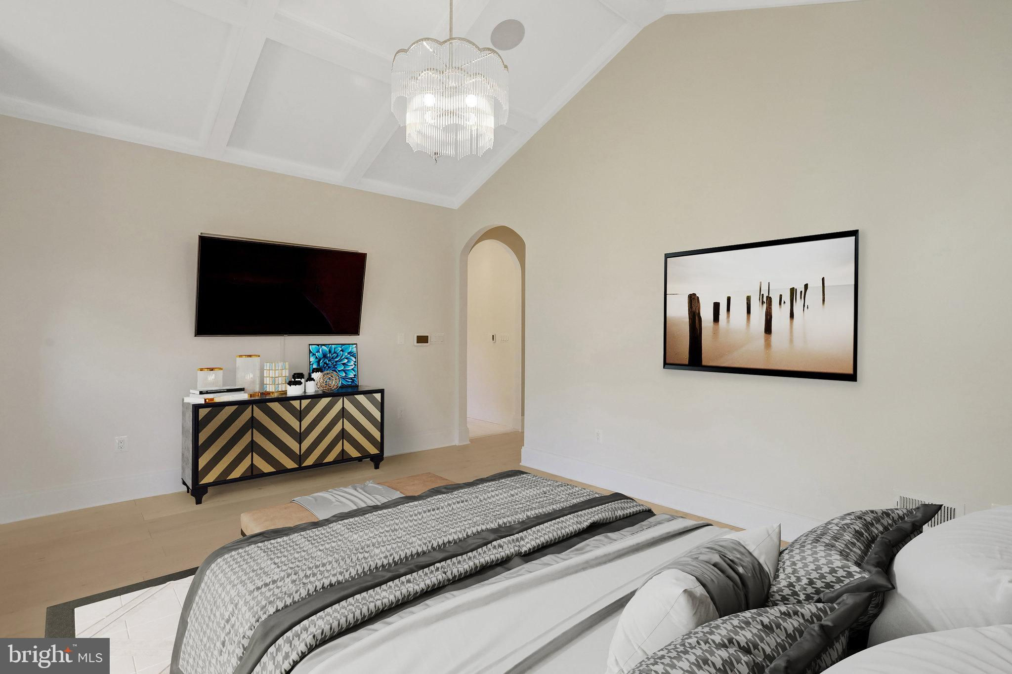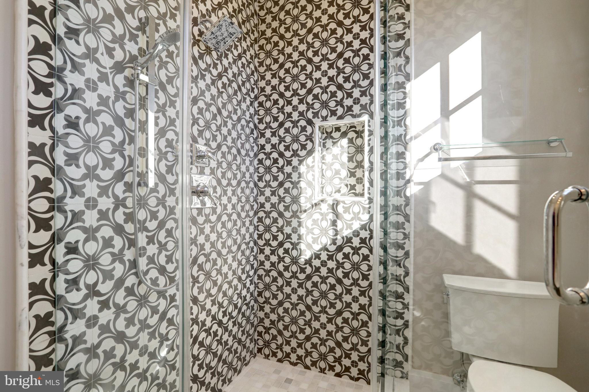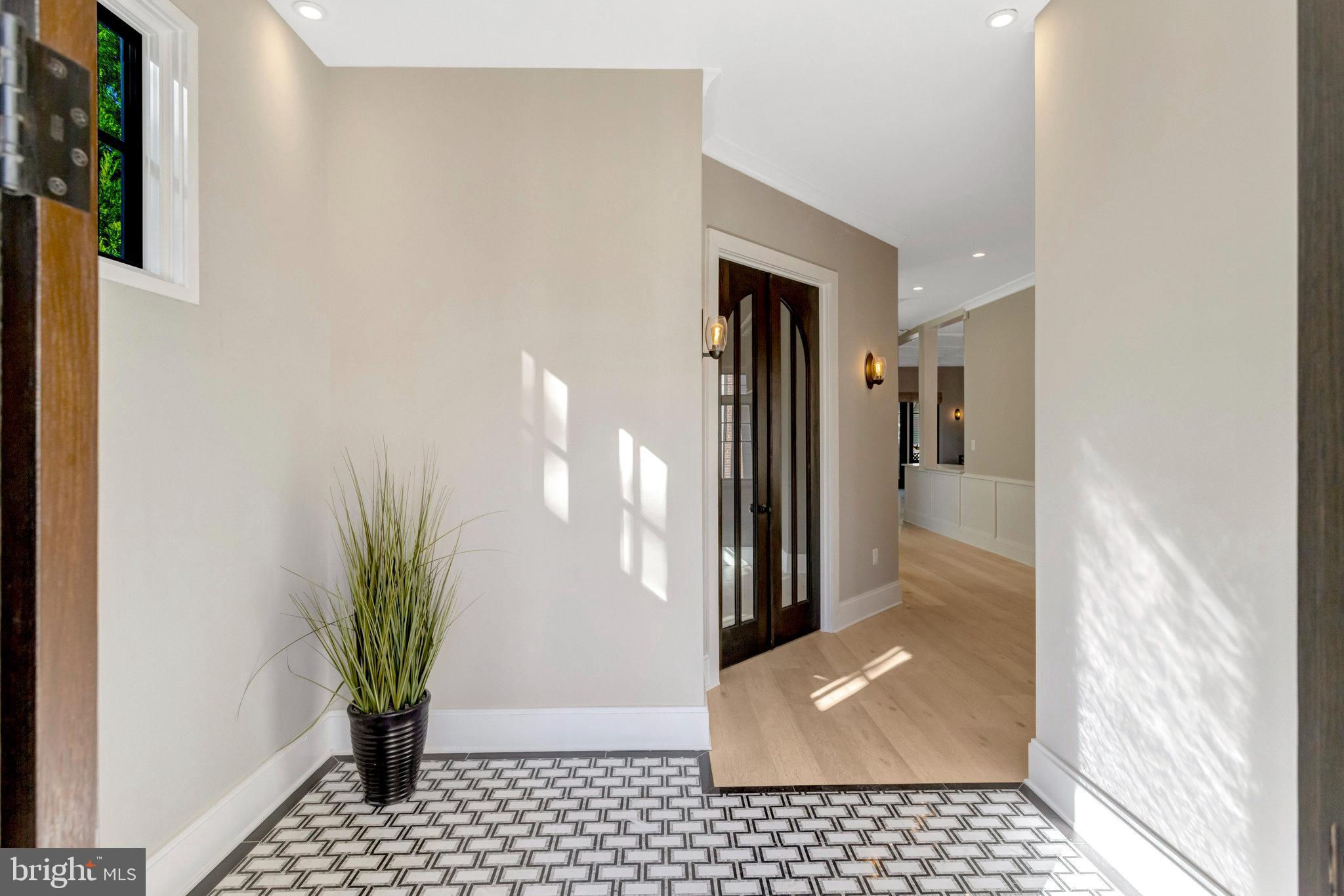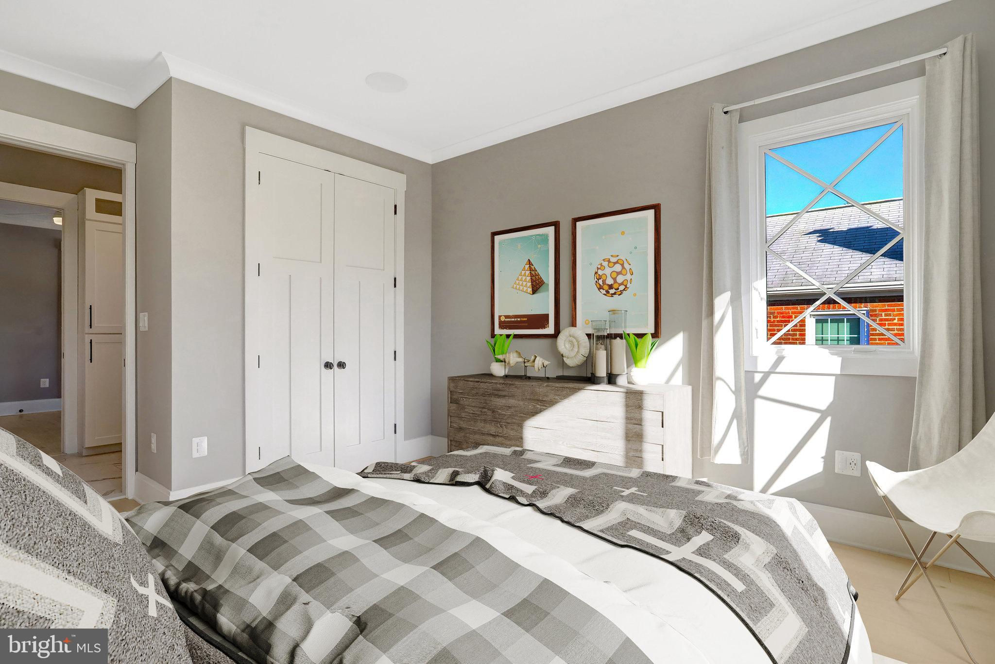 Located just 3 blocks from the Metro and across from Zitkala-Sa Park, this custom-built home offers over 5,000 square feet of beautifully designed living space. The open, contemporary floor plan feels inviting and bright, featuring 10-foot ceilings and wide-plank, hand-scraped light hardwood floors throughout the main and upper levels. The gourmet kitchen, finished in timeless white tones, enhances the home’s airy feel and flows seamlessly into the eat-in area with a built-in window seat and custom dining table that seats twelve. The family room centers around a striking custom marble fireplace, providing a comfortable space for relaxation and entertaining. A dining alcove, private study, mudroom with custom built-ins, and powder room complete the main level. Upstairs, the luxurious primary suite impresses with a cathedral ceiling, custom walk-in closet, and a stunning ensuite bath featuring a soaking tub, glass-enclosed shower, dual vanity, dedicated makeup counter, and private water closet. The upper level also includes two spacious bedrooms with a shared bath, a fourth bedroom with ensuite, and a conveniently located laundry room. The lower level offers a fifth bedroom, full bath, fully outfitted gym with mirrored wall and glass door, and a large recreation room featuring a built-in wine wall and wet bar with microwave and storage. Double doors lead to a walk-up exit and the fenced rear yard. Set on a .15-acre lot, the outdoor space includes a raised composite deck and a step-down to a flat, usable yard—perfect for entertaining or play.