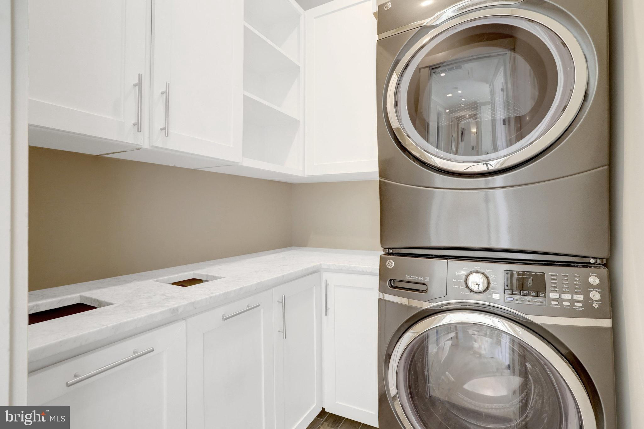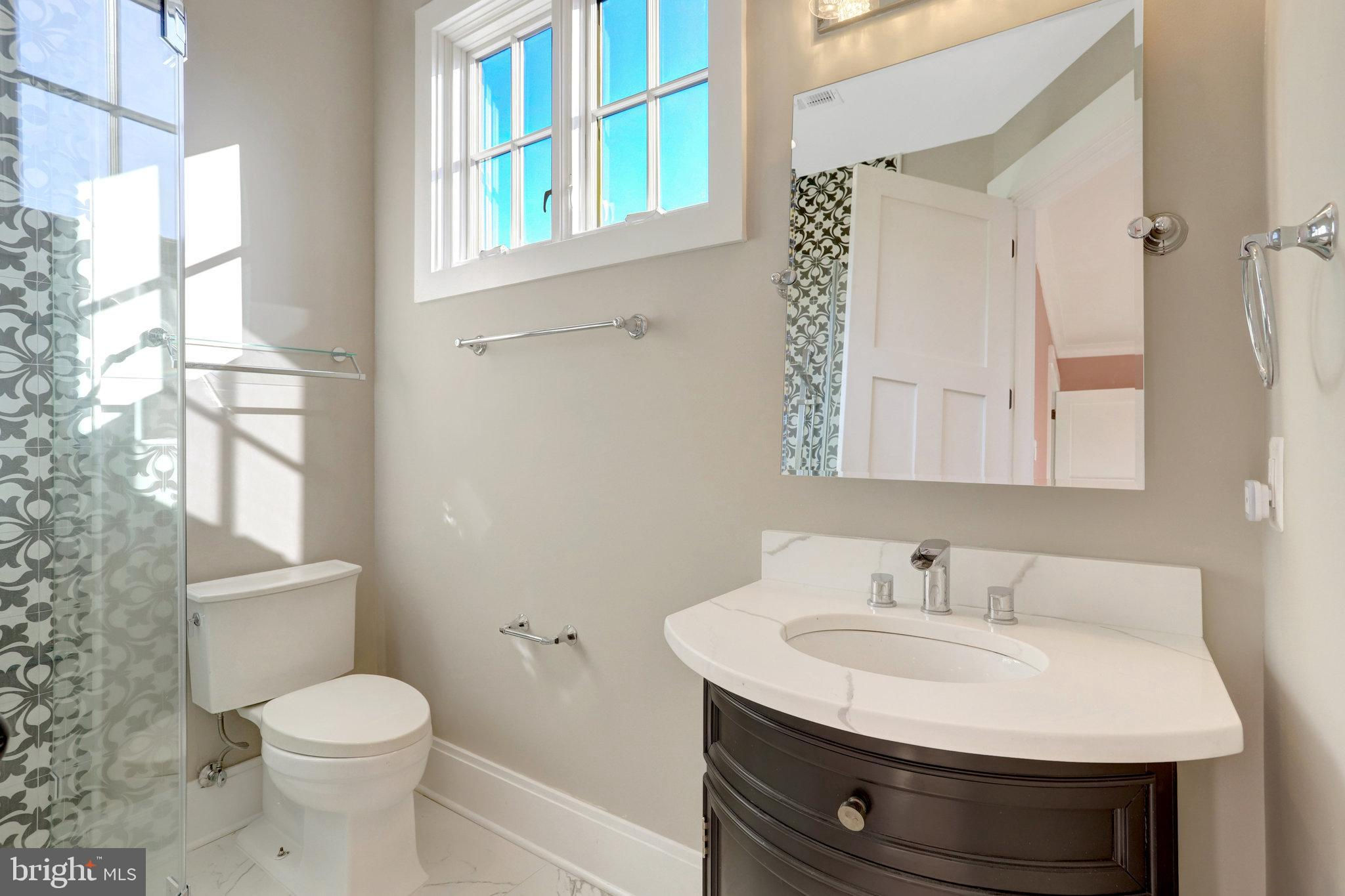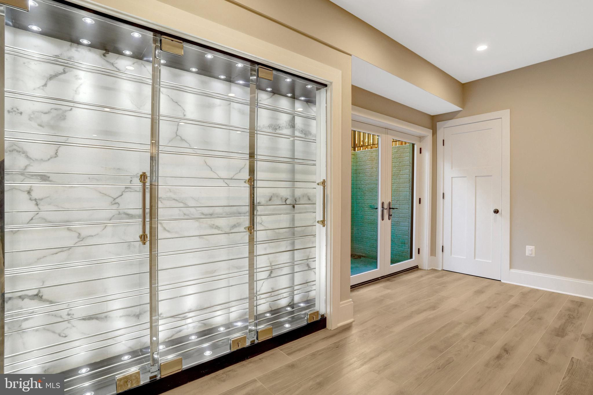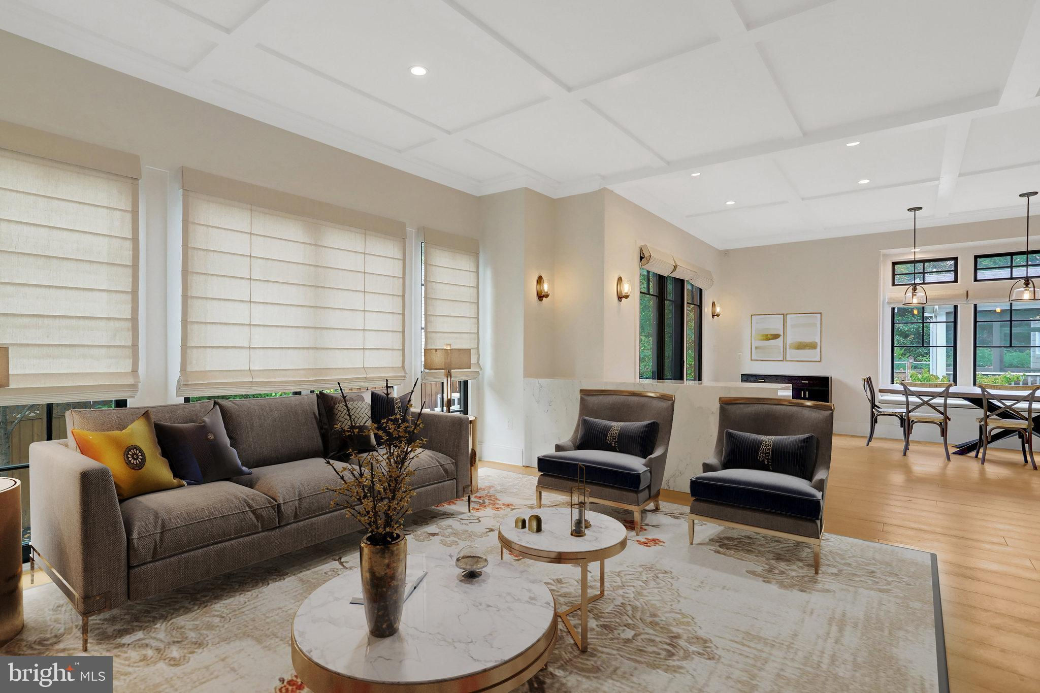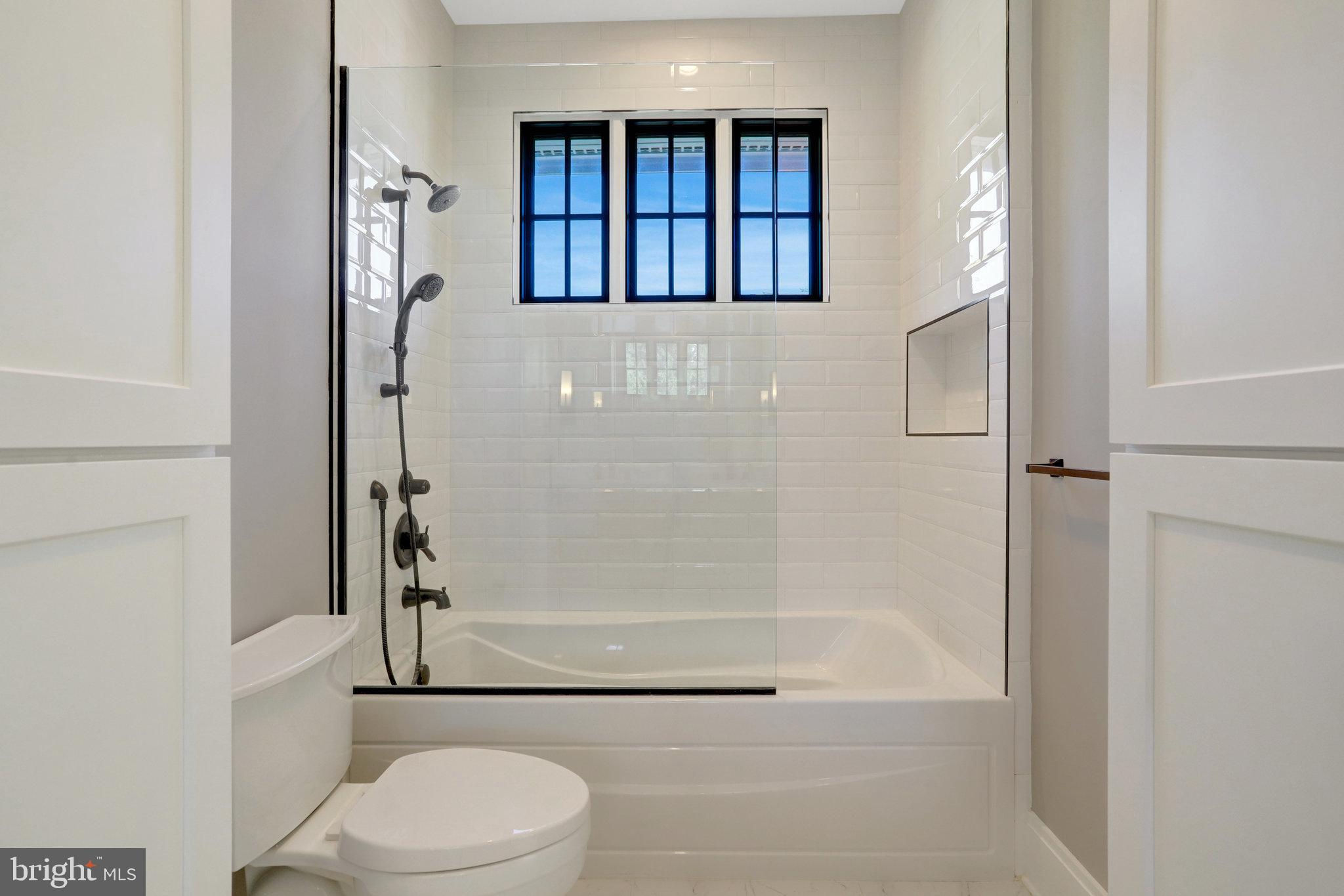 Located just 3 blocks from the Metro and across from Zitkala-Sa Park, this custom-built home offers over 5,000 square feet of beautifully designed living space. The open, contemporary floor plan feels inviting and bright, featuring 10-foot ceilings and wide-plank, hand-scraped light hardwood floors throughout the main and upper levels. The gourmet kitchen, finished in timeless white tones, enhances the home’s airy feel and flows seamlessly into the eat-in area with a built-in window seat and custom dining table that seats twelve. The family room centers around a striking custom marble fireplace, providing a comfortable space for relaxation and entertaining. A dining alcove, private study, mudroom with custom built-ins, and powder room complete the main level. Upstairs, the luxurious primary suite impresses with a cathedral ceiling, custom walk-in closet, and a stunning ensuite bath featuring a soaking tub, glass-enclosed shower, dual vanity, dedicated makeup counter, and private water closet. The upper level also includes two spacious bedrooms with a shared bath, a fourth bedroom with ensuite, and a conveniently located laundry room. The lower level offers a fifth bedroom, full bath, fully outfitted gym with mirrored wall and glass door, and a large recreation room featuring a built-in wine wall and wet bar with microwave and storage. Double doors lead to a walk-up exit and the fenced rear yard. Set on a .15-acre lot, the outdoor space includes a raised composite deck and a step-down to a flat, usable yard—perfect for entertaining or play.