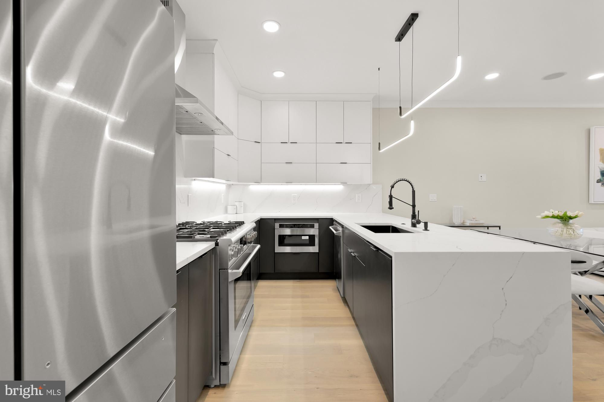 DC Landmark Historic Property, former residence Eugene Charles Allen, who was the longest serving and White House Head Butler. Eugene served over 8 US Presidents at the White House for 34 years until his retirement as head butler in 1986. He lived at the prestigious 710 Otis Place NW, a property that played a role in inspiring the 2013 film The Butler and is also included as a DC Stop for the Historic Park View walking trail. This full gut renovation proudly showcases an array of premium features designed to elevate your lifestyle to new heights. Step into the gourmet kitchen and be captivated by the THOR premium appliance package, featuring a 36-inch industrial range with air fry feature, perfect for culinary enthusiasts. The kitchen also showcases full-height Calacatta Gold Quartz countertops and custom European cabinetry, offering both style and functionality. Entertainment is seamless with the full-house audio package, complete with receivers installed throughout the home. Say goodbye to tangled wires, thanks to hardwired internet, coax cable, and HDMI connections in every room. Luxury extends into the bathrooms, where wall-to-wall designer tile packages and LED mirrors create a spa-like atmosphere. The master bedroom features a custom closet for ample storage and organization, while a minibar with beer/wine cooler adds convenience and elegance to your entertaining space. Effortlessly control your environment with Nest Thermostats on each level, allowing for independent temperature control. Elevate your outdoor experience with a rooftop deck boasting water and gas connections, ideal for seamless entertaining under the sky. Meanwhile, waterproofed rear decks seamlessly extend your living space, blurring the lines between indoors and outdoors for a harmonious lifestyle. Inside, a flute panelled fire place captivates, along with the grandeur of 8-foot-tall doors complemented by 9-foot ceilings, enhancing the sense of space and luxury throughout the home. Security is paramount with a smart lock for the main entry door, providing peace of mind for you and your loved ones. Separately deeded parking with roll up garage doors & Add wired for EV supercharger. Finally, indulge in the rich texture of 3⁄4” thick, 6" wide premium engineered hardwood flooring throughout the home, adding warmth and sophistication to every room. Experience the pinnacle of luxury living at 710 Otis Place NW – where every detail is meticulously crafted to exceed your expectations. A $32 million budget has been approved by DC Department of parks and recreations to renovate the Park View Recreation Center and the adjacent park near Otis Place in Washington, D.C.