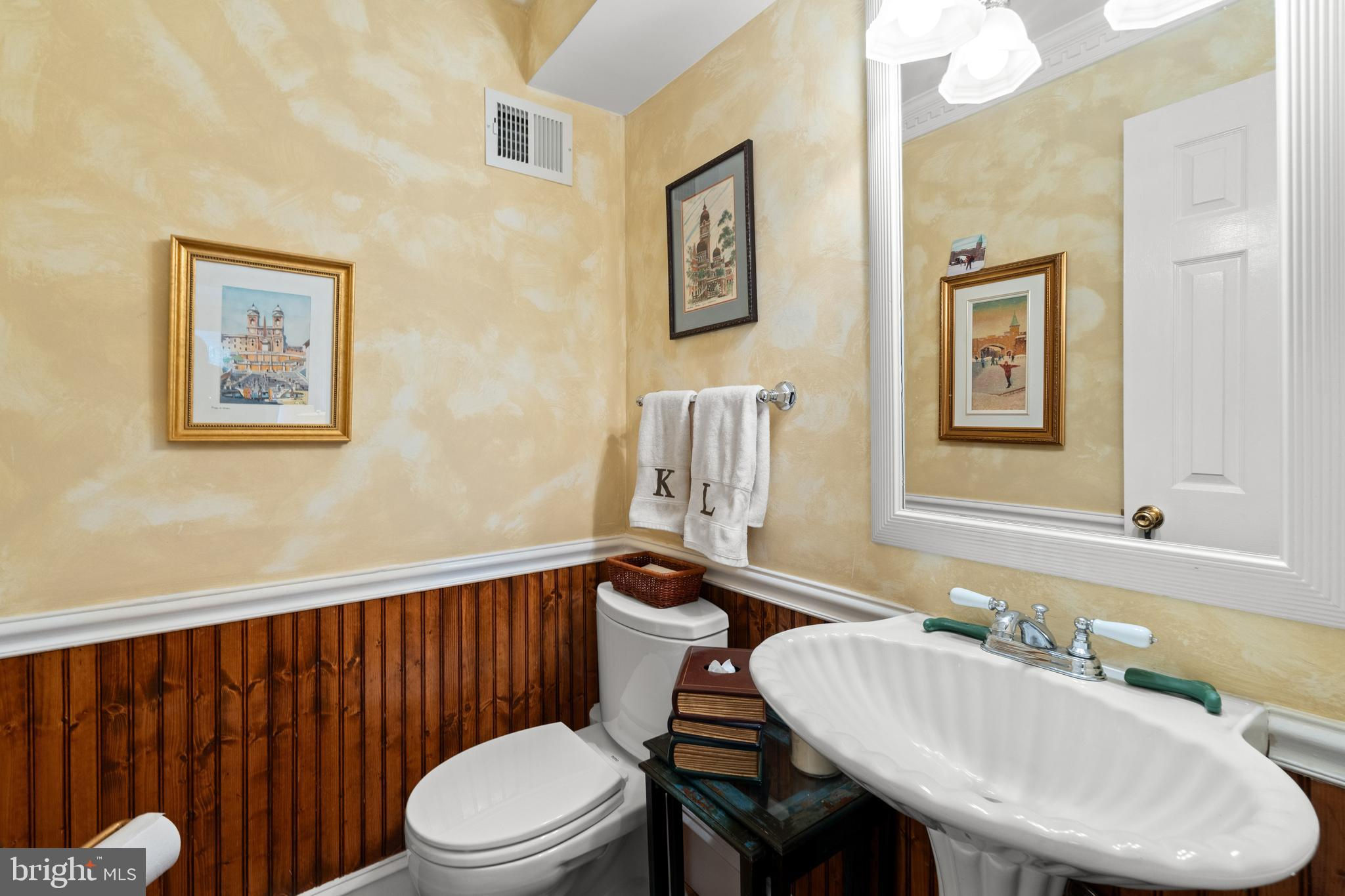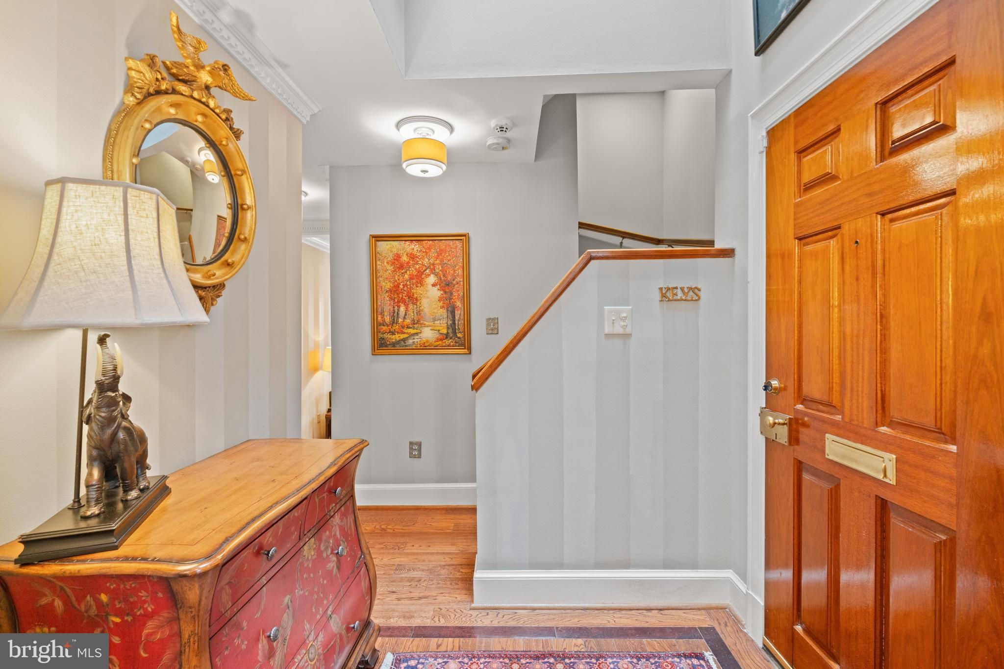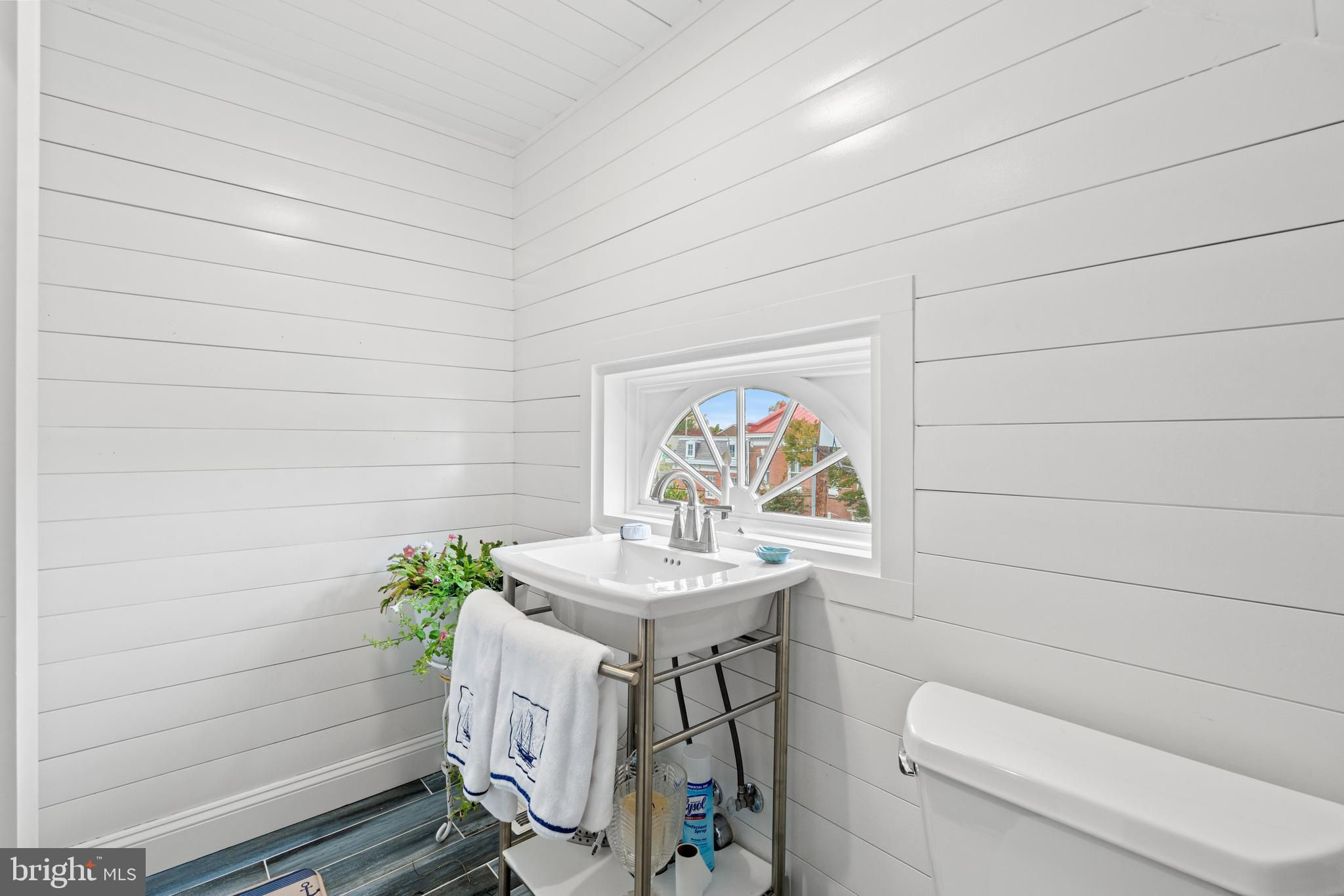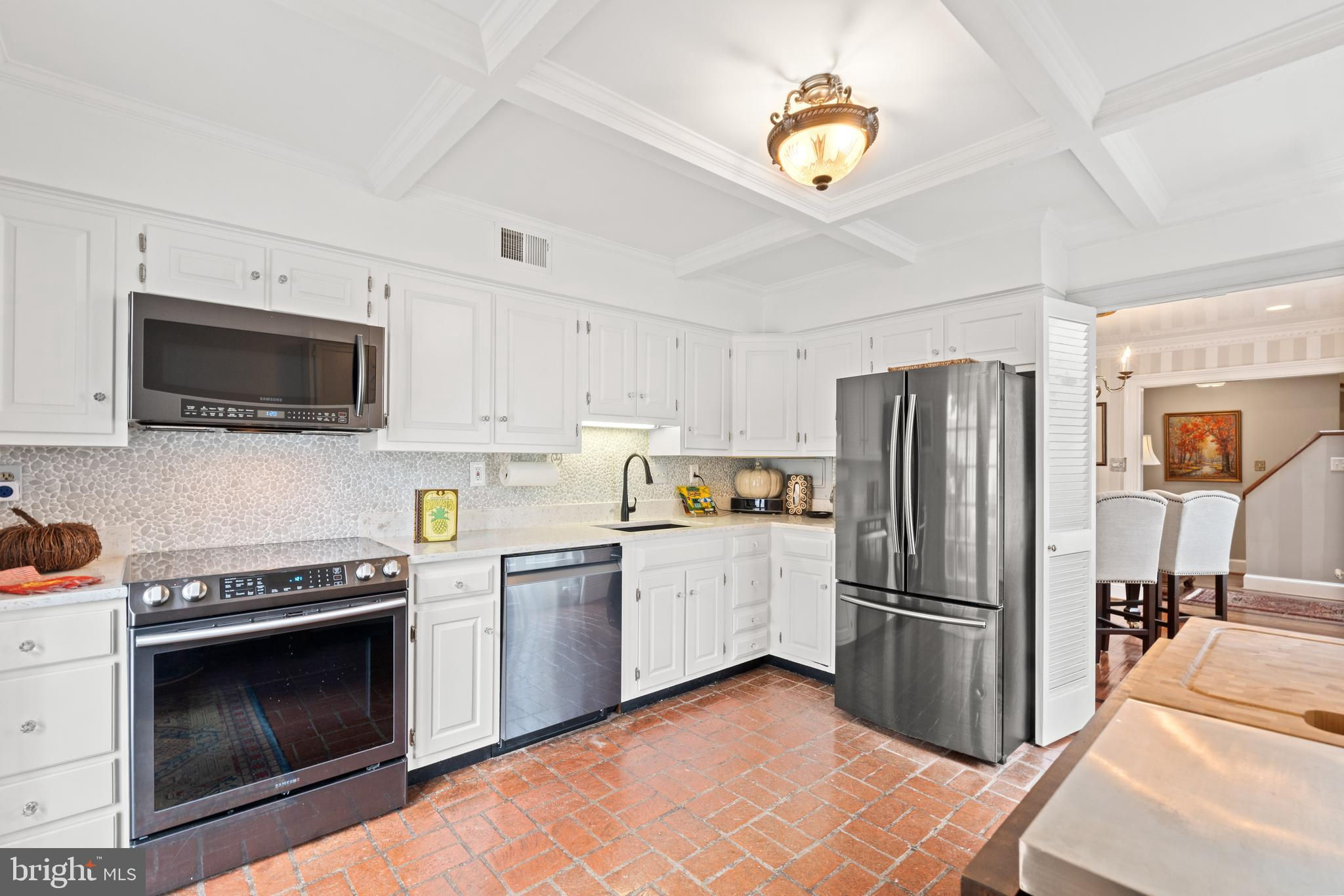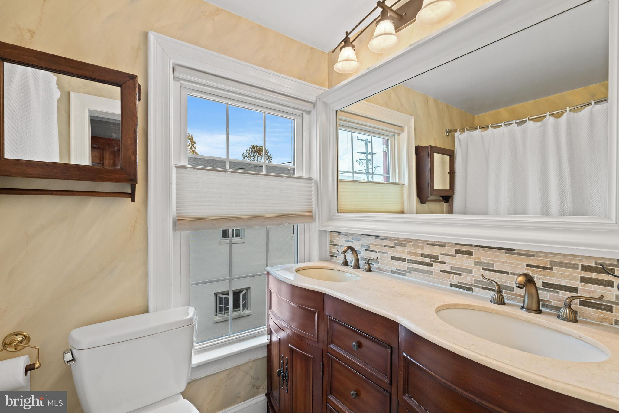 A rare opportunity in the heart of Old Town. Step through a solid wood front door with an oversized colonial-style brass lock into a dramatic three-story foyer crowned by an oversized skylight. Sun-filled rooms and classic craftsmanship set an elegant tone throughout. The living room features a 9’2” coffered ceiling, three-piece dentil crown molding, a bay window, and a wood-burning brick fireplace. Radiant-heated hardwood floors with a contrasting inlay add warmth and detail. A formal dining room showcases dentil crown, chair rail, wainscoting, and a seven-layer lacquered ceiling. The eat-in kitchen offers an antique handmade brick floor, coffered ceiling, and French doors that open to an all-season patio garden—perfect for everyday living and entertaining. Upstairs, a front bedroom enjoys a private full bath. The primary suite includes a French door to a Juliet balcony overlooking the patio, custom plantation shutters, two closets, a seven-layer lacquered ceiling, and wide-plank hardwood floors. The adjoining full bath features a double vanity set in an antique-style cabinet. A bedroom-level laundry closet provides side-by-side washer/dryer convenience. The top floor is a showstopper: a third bedroom/loft with cathedral ceiling, hardwood floors, and windows on all sides, plus a Nantucket-style full bath with shower, classic wainscoting, and storage tucked into the eaves. Outside, enjoy perennial gardens on the front, side, and rear—fully gated for privacy. Entry is via a private alley to two paved off-street parking spaces. A true “home for all seasons,” designed for comfortable living and effortless entertaining.