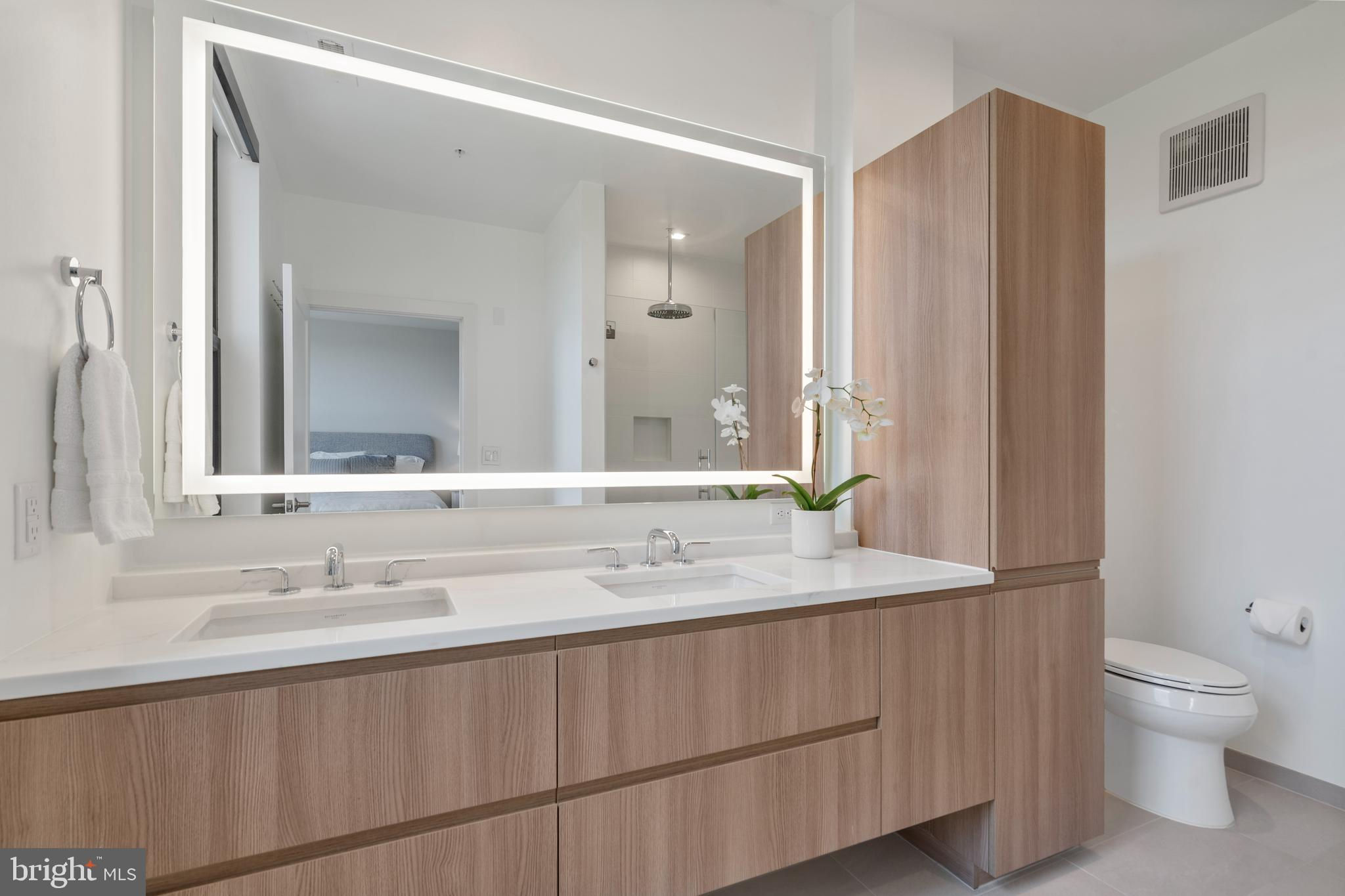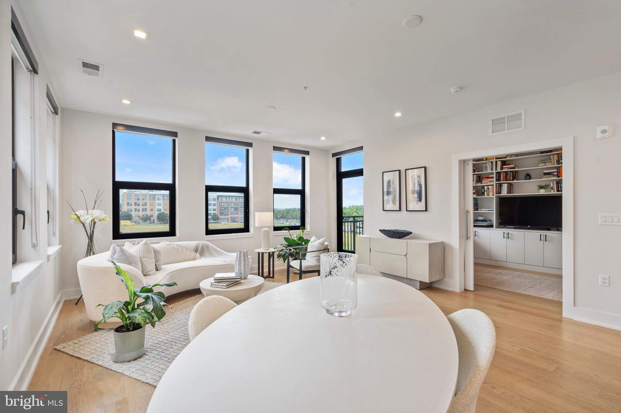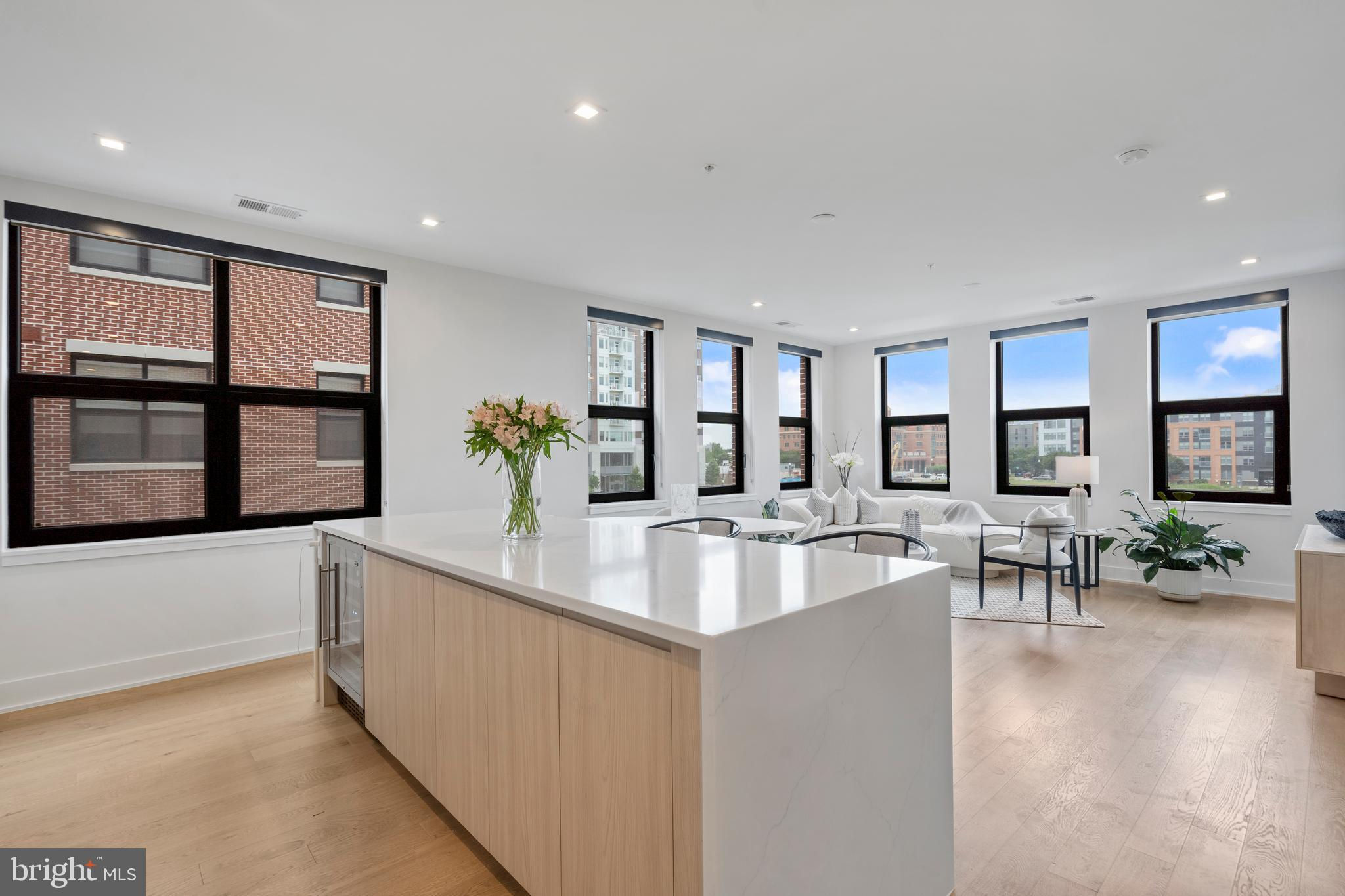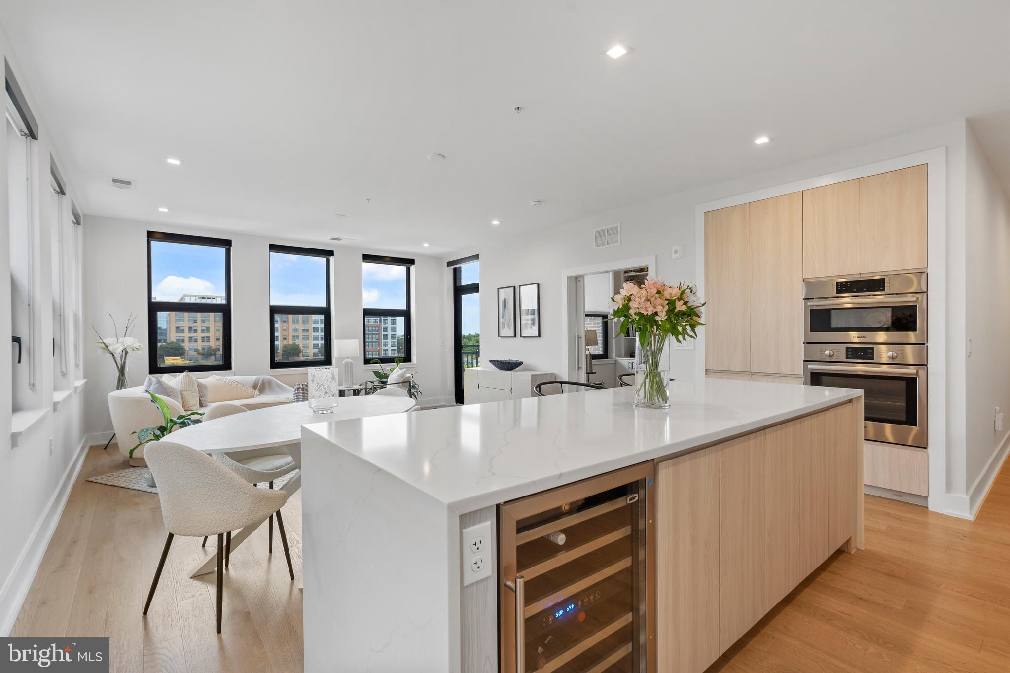 Welcome home to this stunning condo in Potomac Yard! This home offers over 1600 square feet of luxury living and features two bedrooms, two full baths, a powder room, a separate office and private outdoor space. PLUS there are two dedicated garage parking places (one with its own charging station). Newly constructed in 2023 by Dylan, this condo embodies sophisticated style, high-end appliances and fixtures and exceptional designer touches. The property is a rare corner unit flooded with light from two exposures. A true gourmet kitchen offers fine contemporary design: stylish cabinets, a gorgeous island with waterfall white Calacatta quartz countertops, refrigerated wine storage, and wood paneled premium Bosch appliances. Waterworks and Kohler fixtures are found throughout the unit. The spa-inspired bathrooms feature floor to ceiling tile, with the master bathroom offering dual sinks. The large bedrooms offer plenty of space and have large closets, with the master having two walk-in closets. Top-of-the-line shelving has been added throughout the unit to closets and storage. The den offers a wonderful retreat and has been enhanced with built-in bookcases. Residents enjoy an exceptional array of amenities: an innovative fitness center and yoga room, a fabulous rooftop lounge and terrace with stunning DC and Old Town views, a conference room, a beautiful lobby with concierge, and a bike room, among other amenities. The condo offers the consummate location – steps to the metro and numerous fine restaurants and retail. It is adjacent to Potomac Yard Park with over 20 acres of walking and bike trails, tennis, basketball and large playgrounds. Outstanding in every way, this upscale architectural masterpiece is the perfect refuge to call “home”.